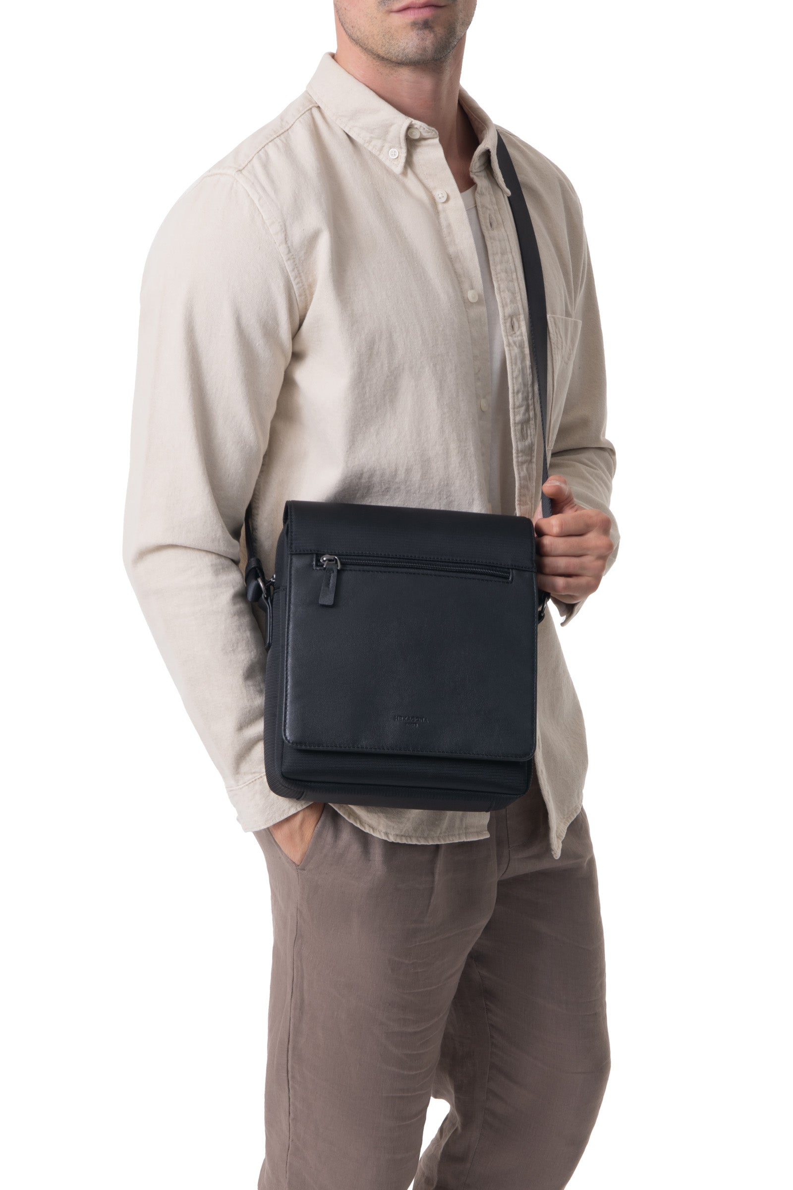 - Extérieur : 1 poche avant plate. 1 poche arrière plate zippée.
