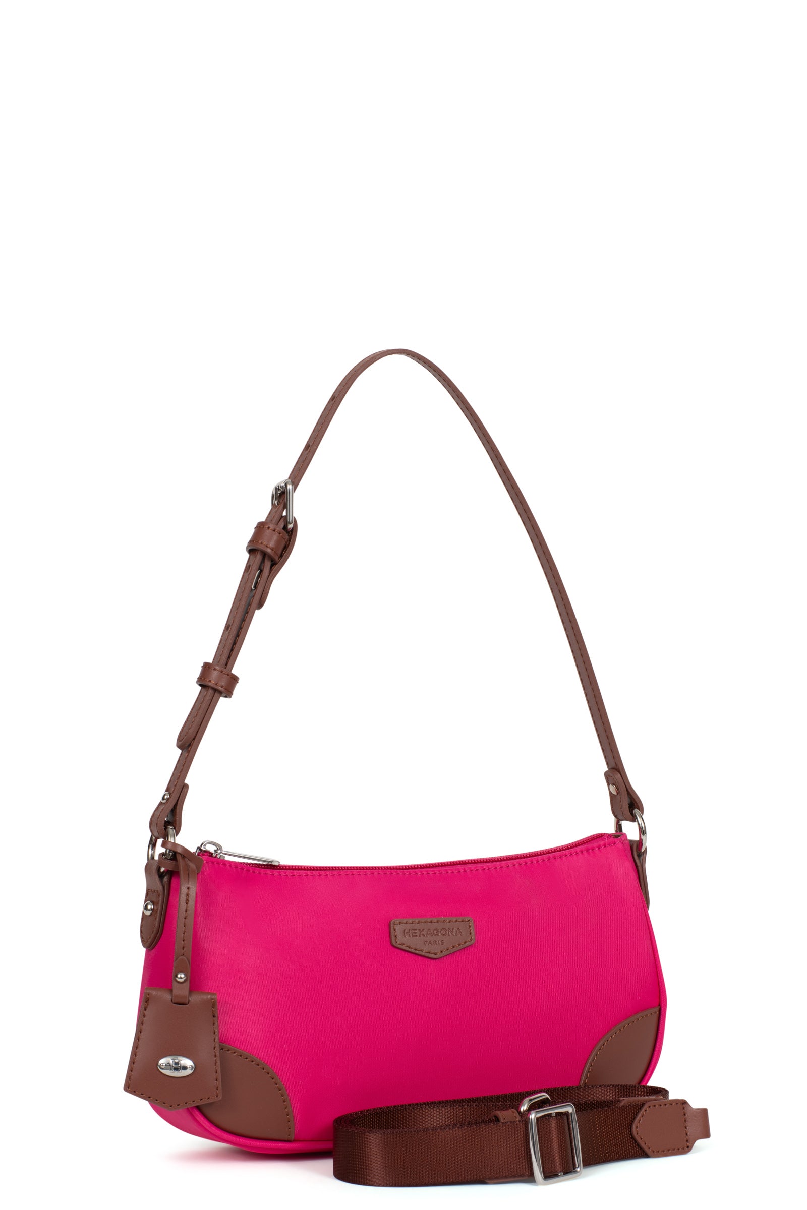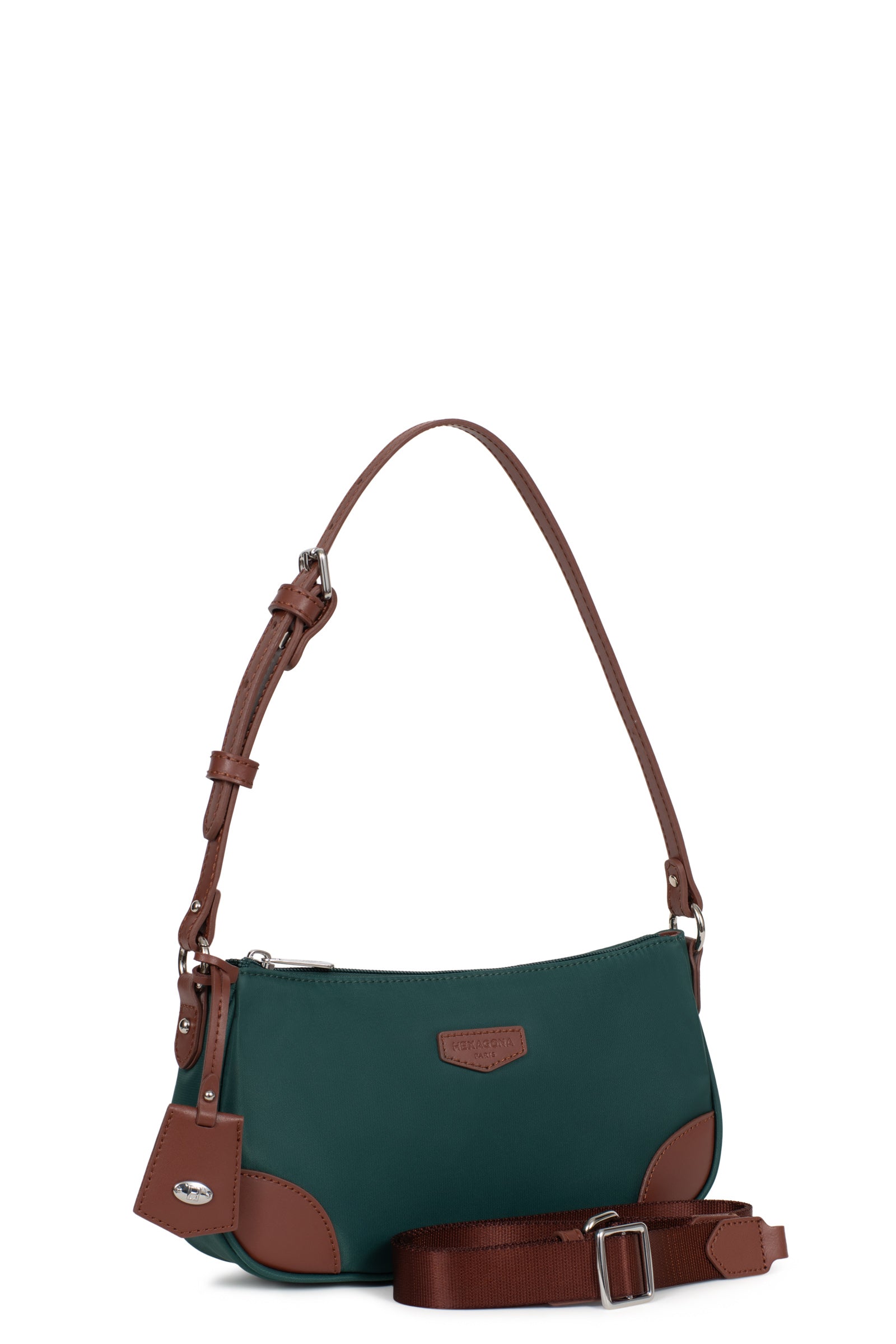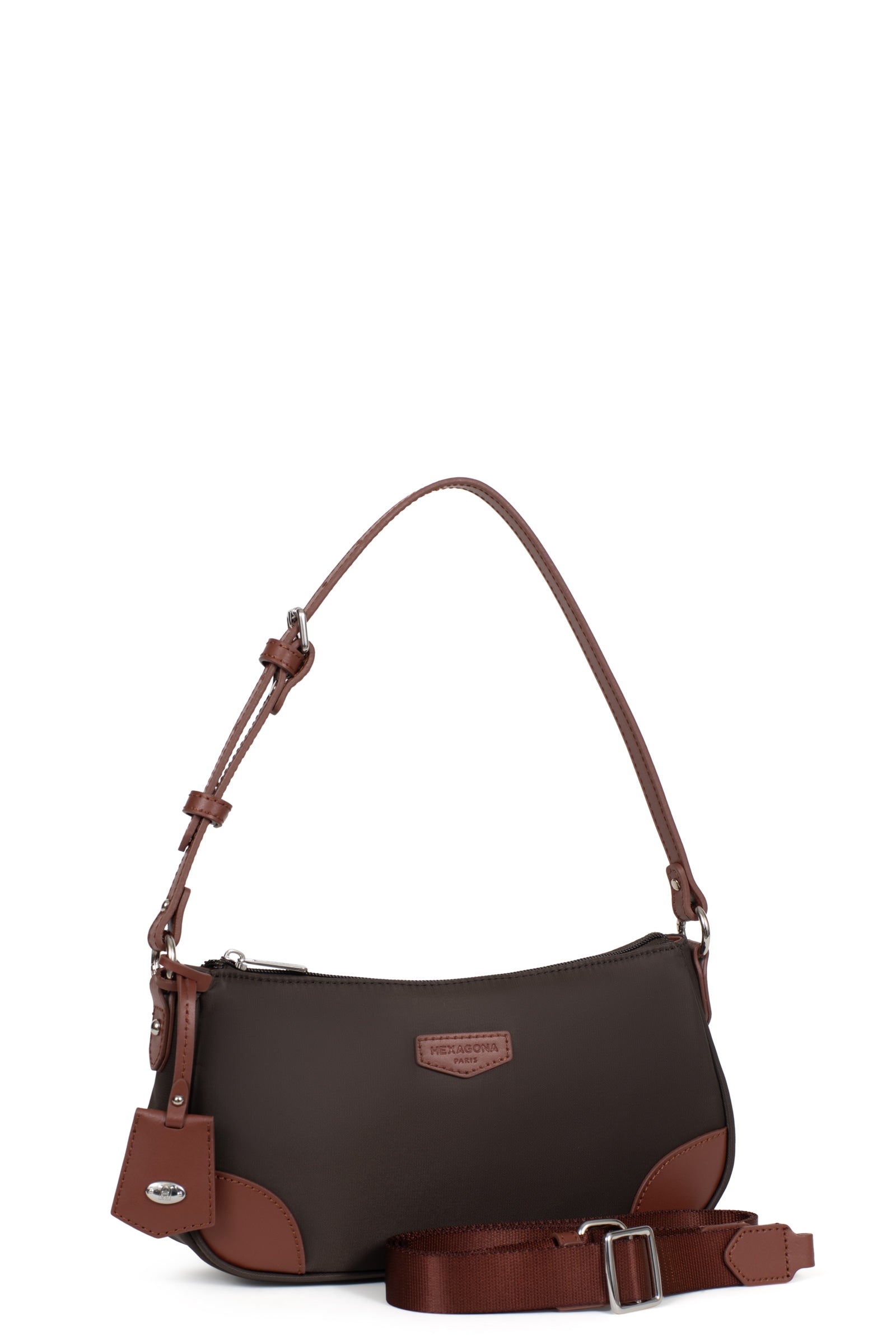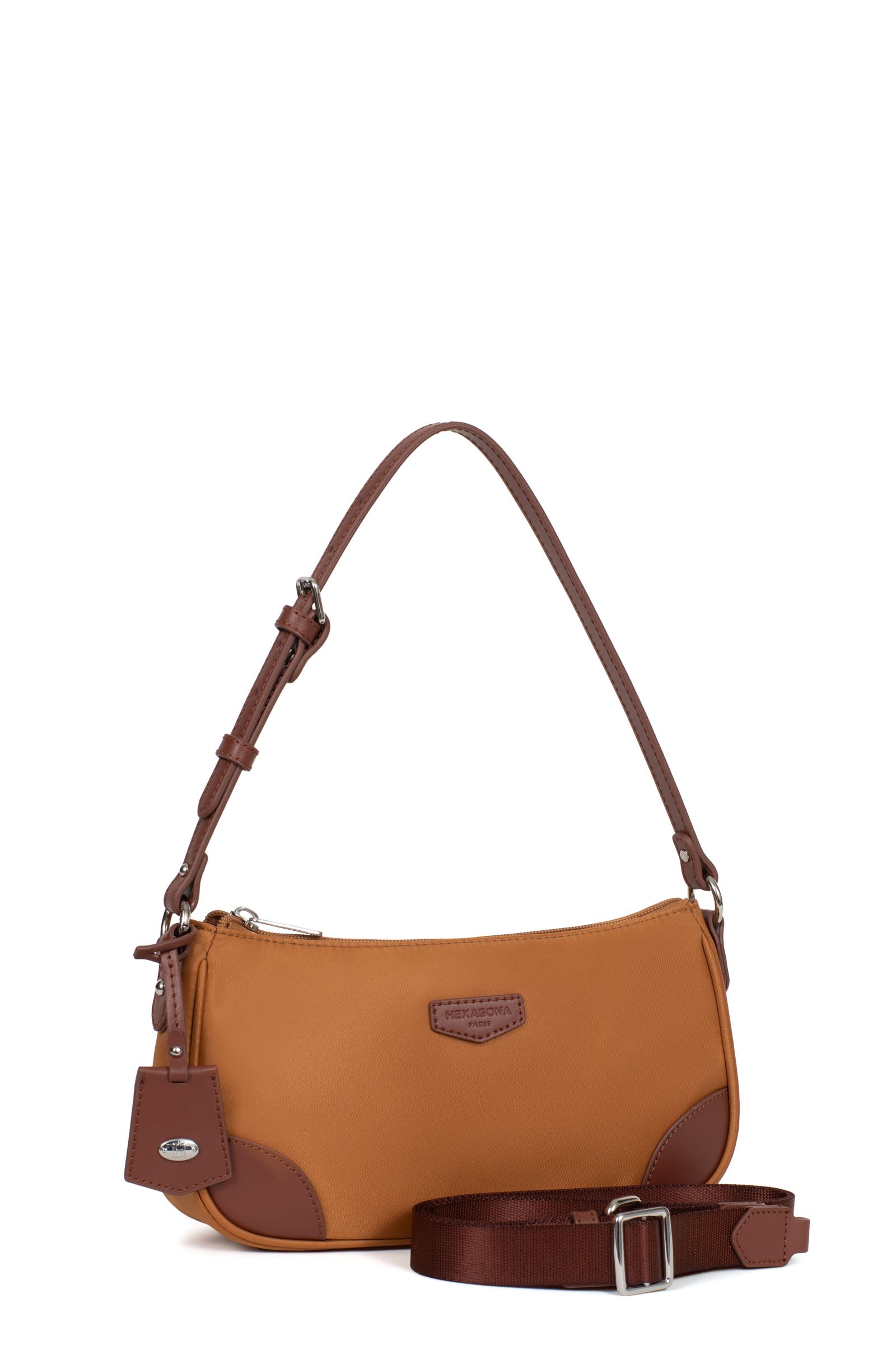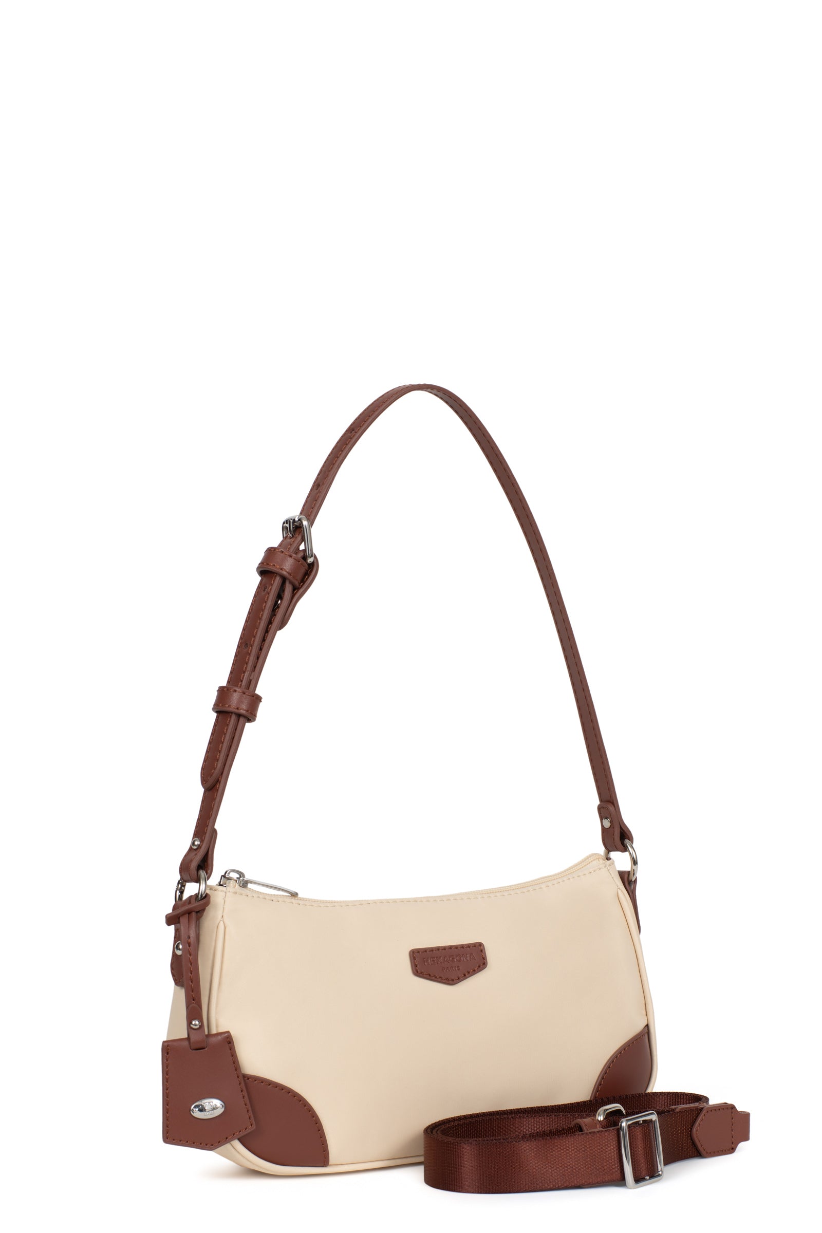 1 anse réglable 5 crans amovible (47 cm mini/57 cm maxi). 1 bandoulière supplémentaire réglable amovible (70 cm mini/137 cm maxi).