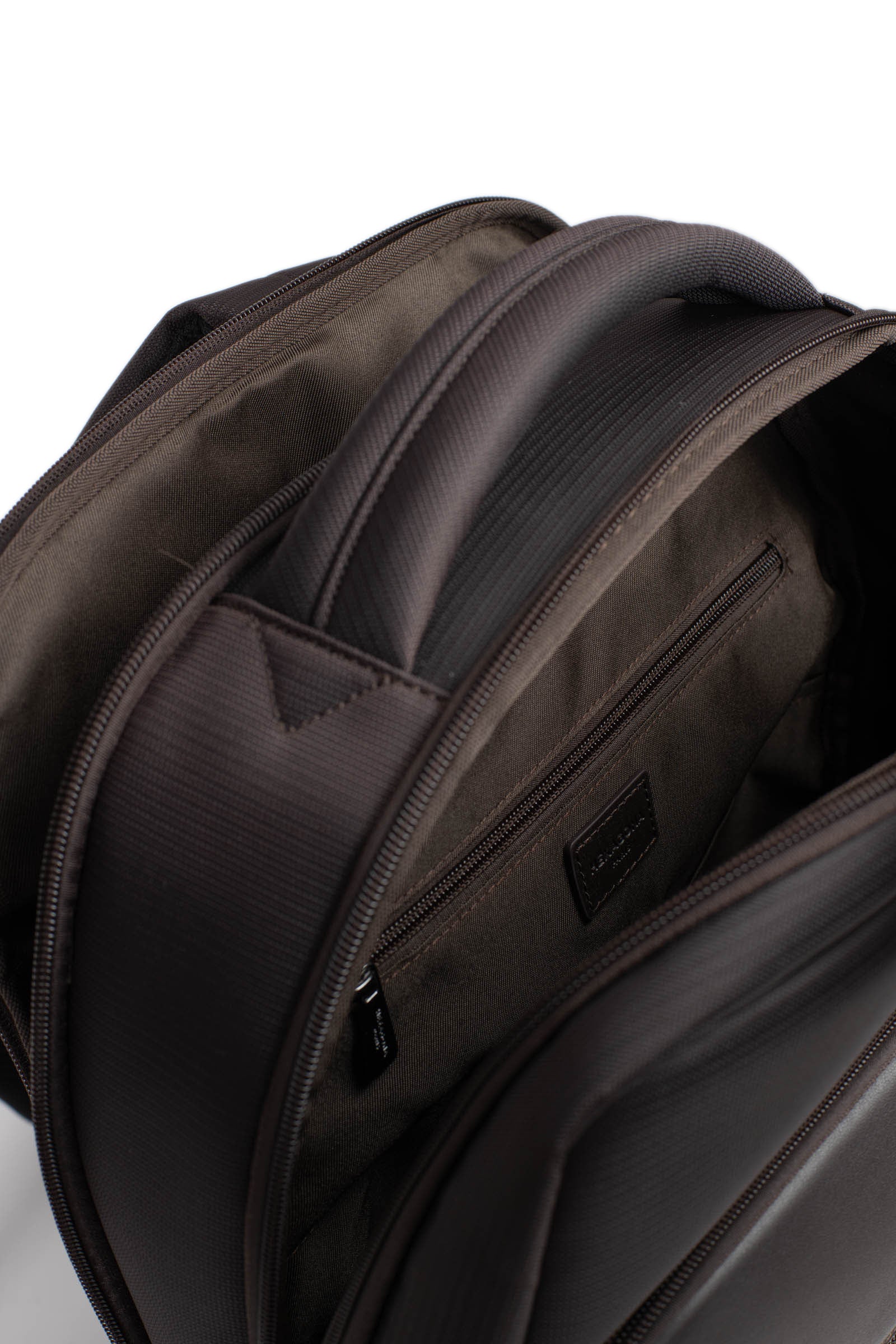 - Intérieur : 2 compartiments principaux avec 1 compartiment ordinateur rembourré. 1 poche plate zippée. 3 poches plates (dont 1 compartiment téléphone). 2 espaces stylo.