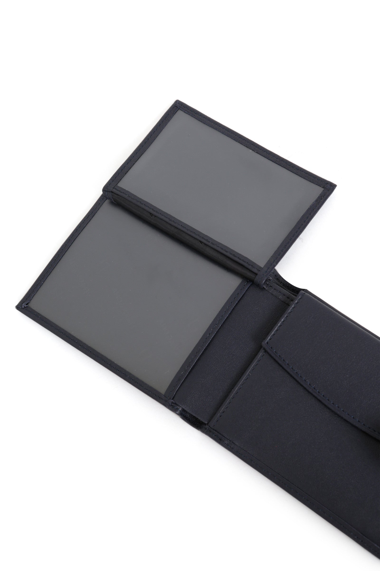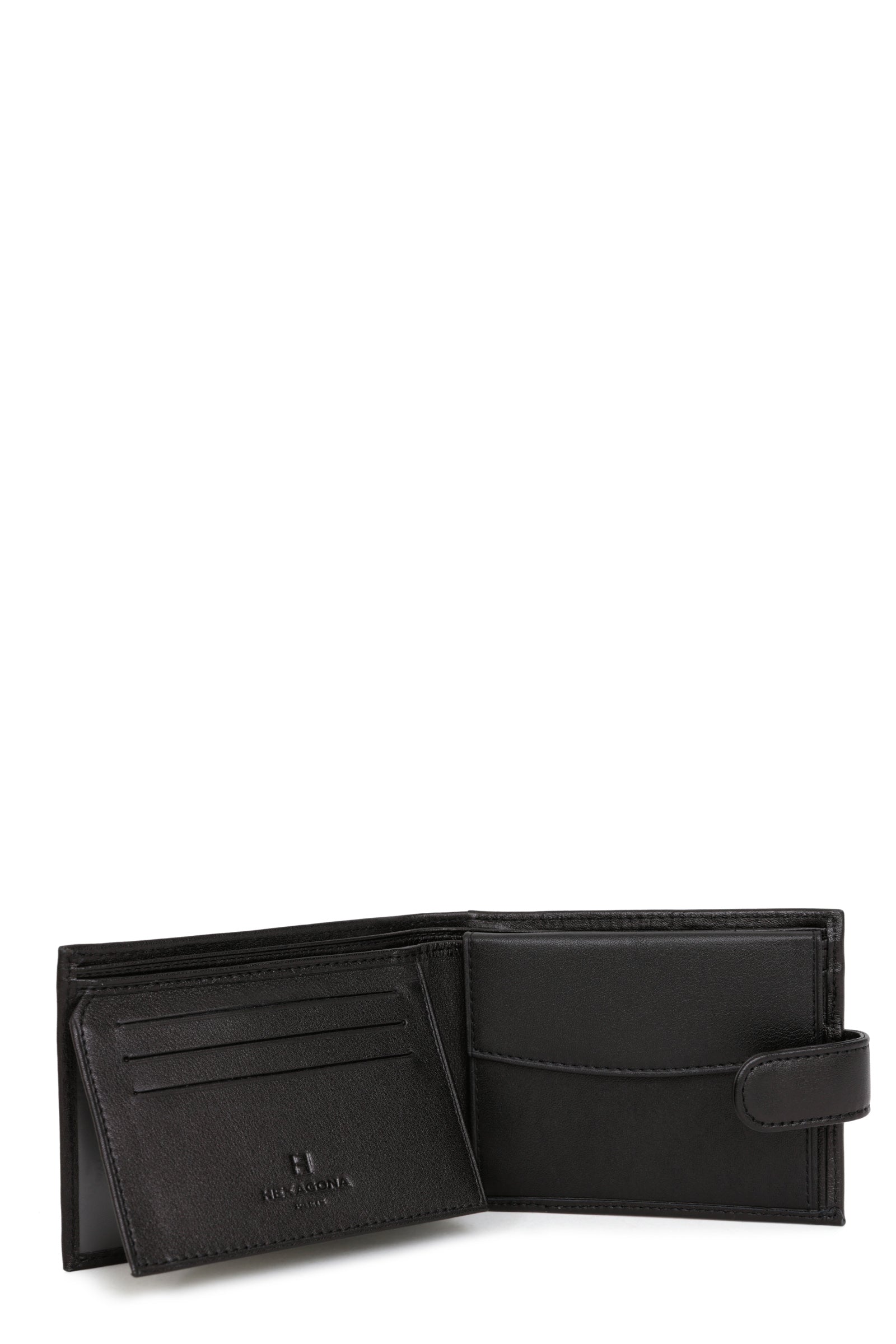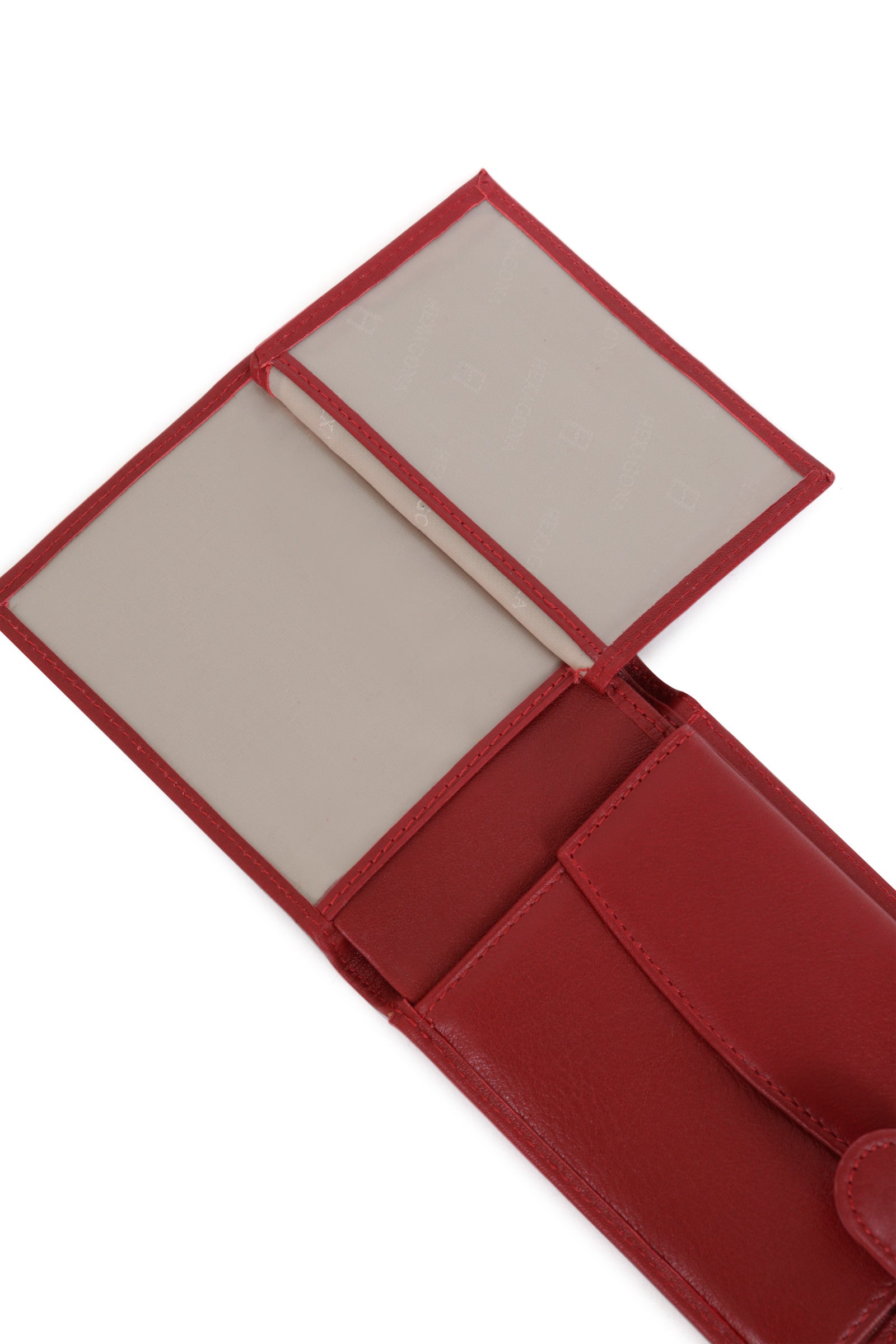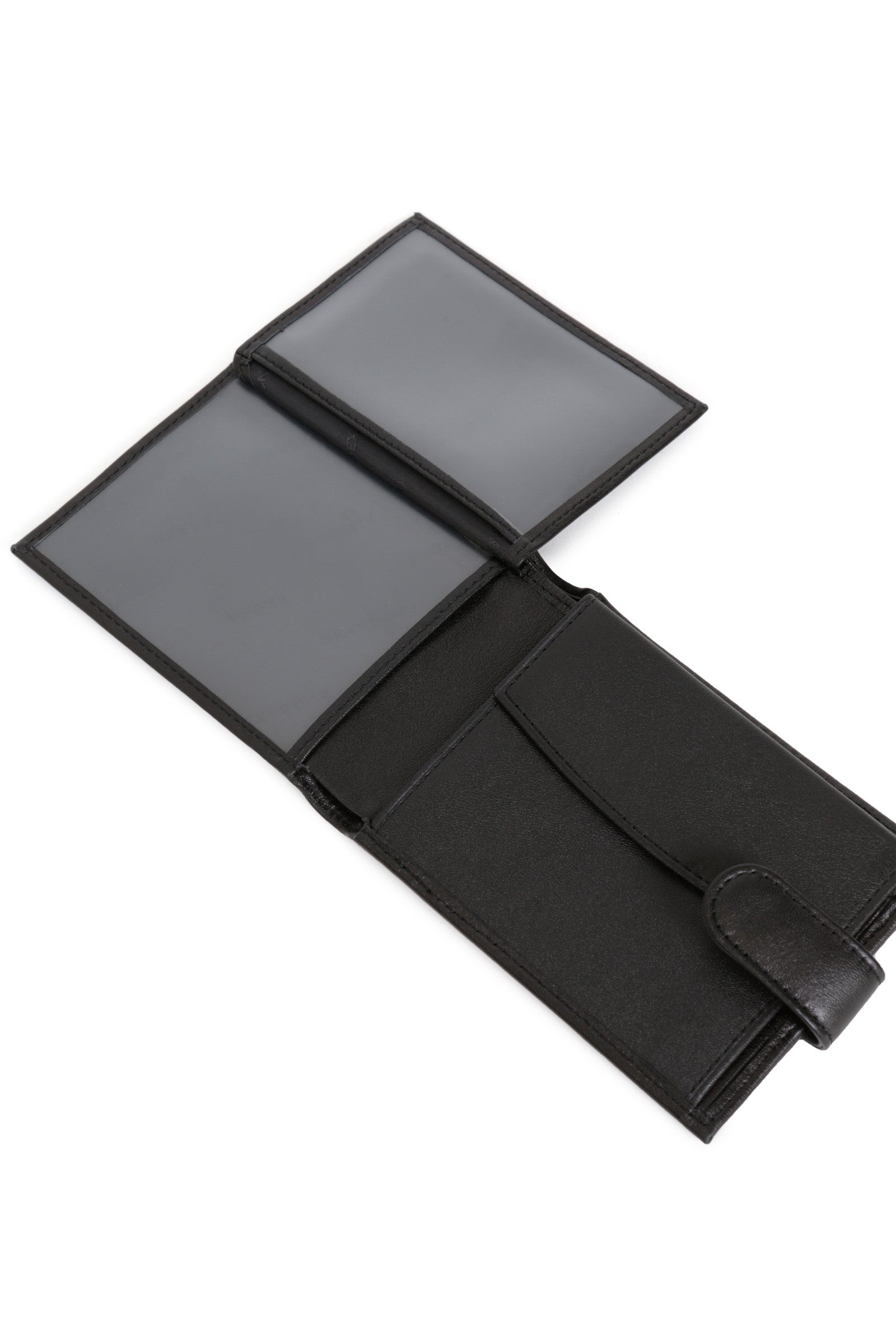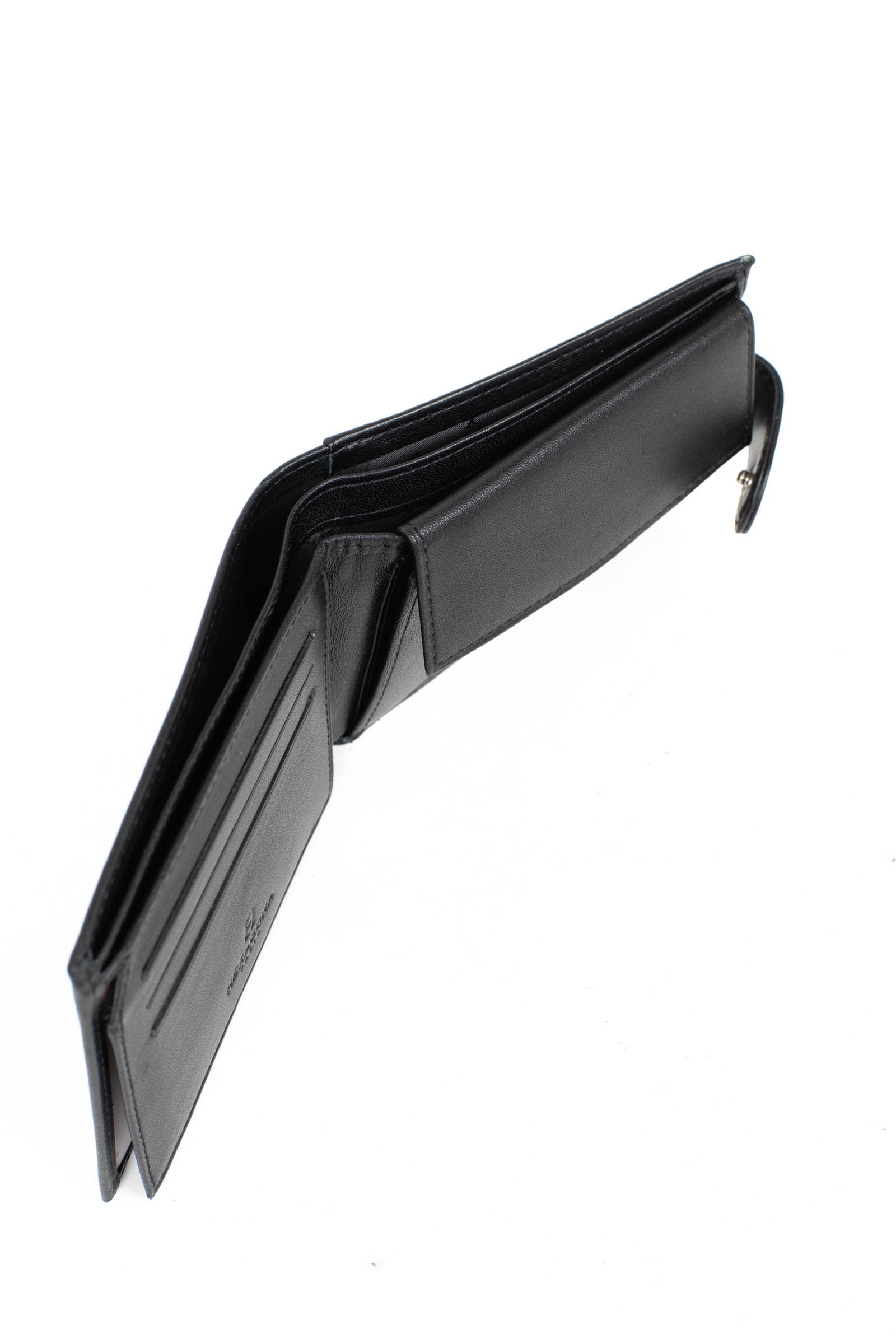Innen: 2 Fächer. 1 Druckknopf-Geldbörse mit Klappe. 3 flache Taschen (davon 2 mit durchsichtigem Sichtfenster). 3 Kartenfächer. 2 Geldscheintaschen.