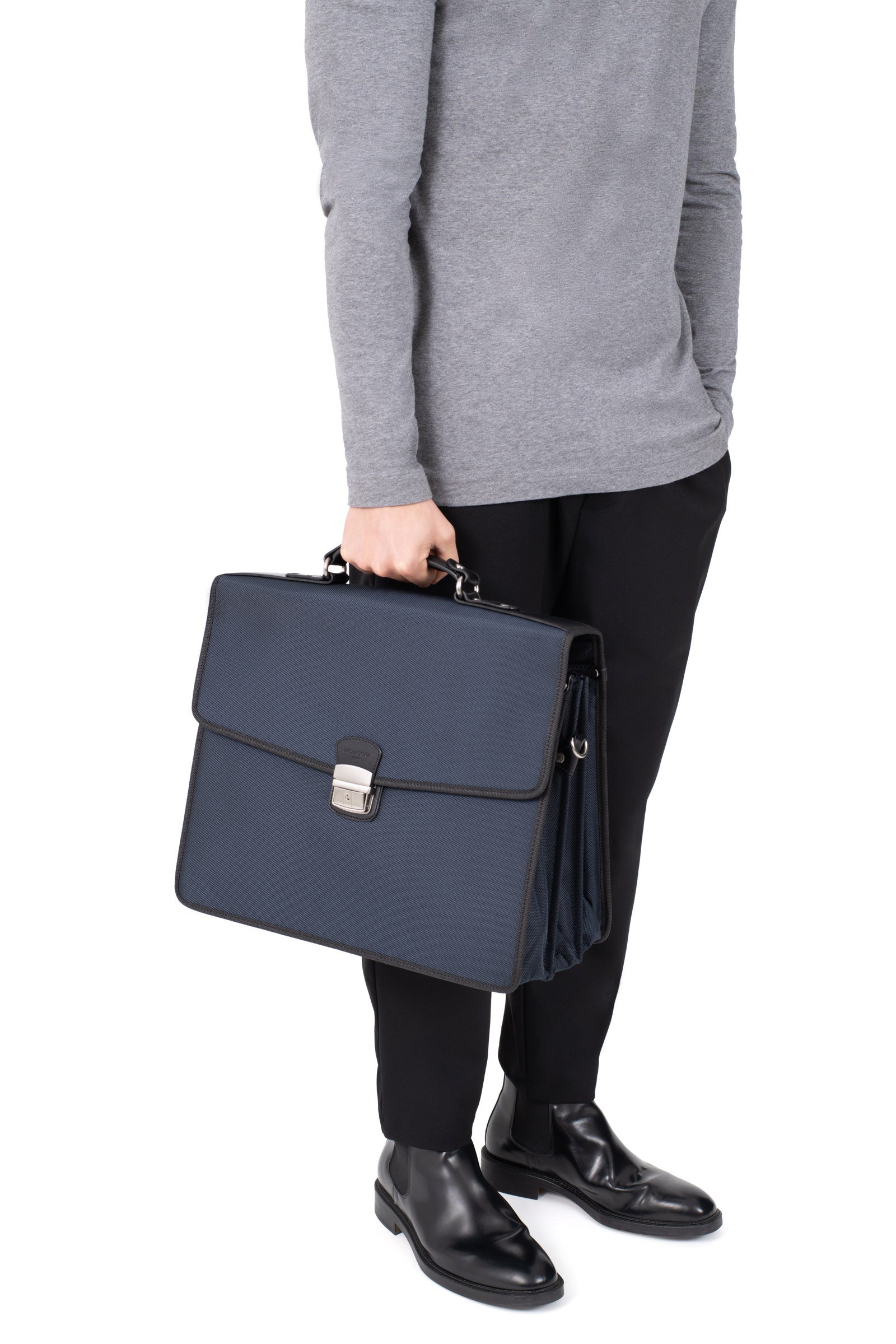 Das rechteckige Design ist ideal für den Transport von Dokumenten im A4-Format, und der Klappenverschluss mit einem Metallverschluss sorgt für die Sicherheit des Inhalts. Im Inneren ist die Organisation optimal dank mehrerer Fächer, einschließlich einer Reißverschlusstasche für Wertsachen und Fächern für Stifte und Karten.