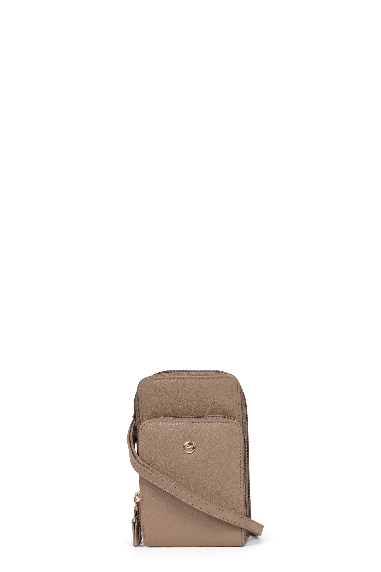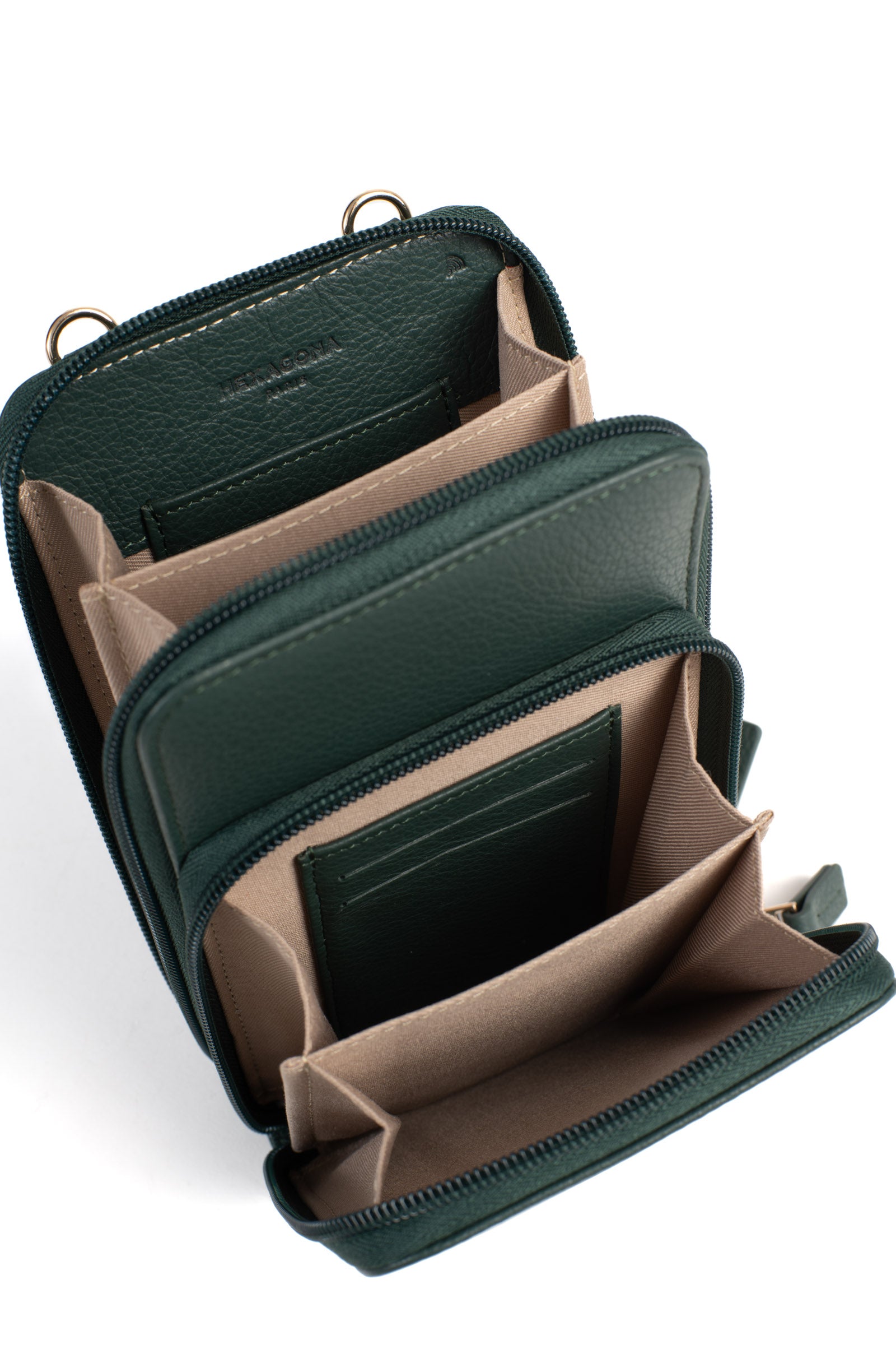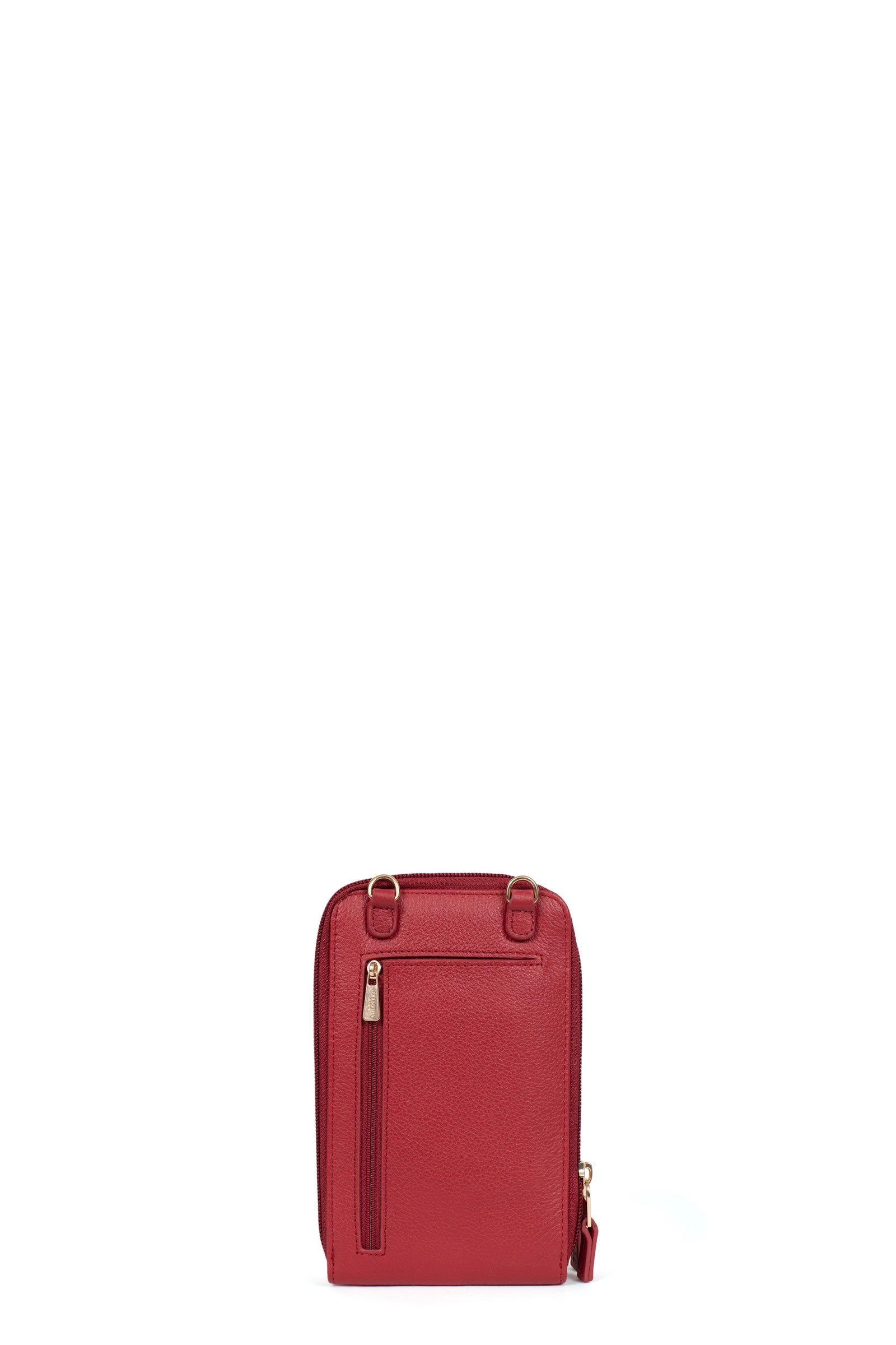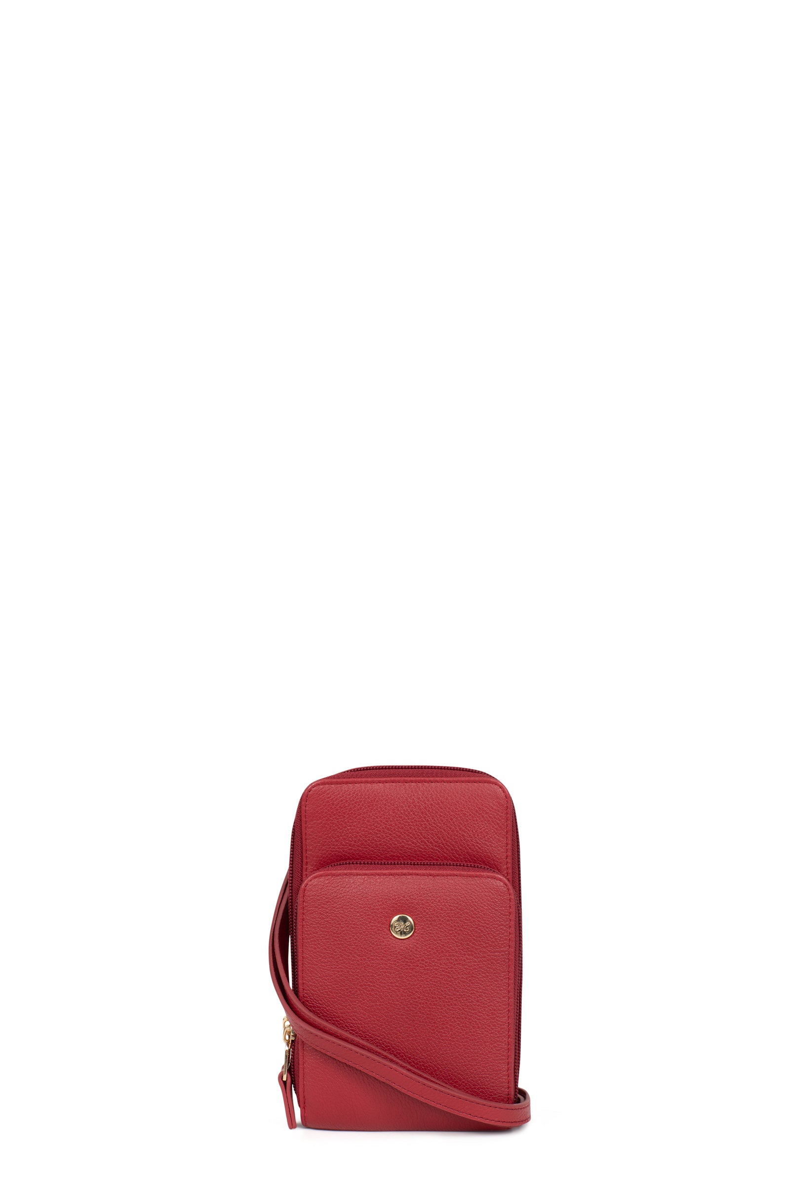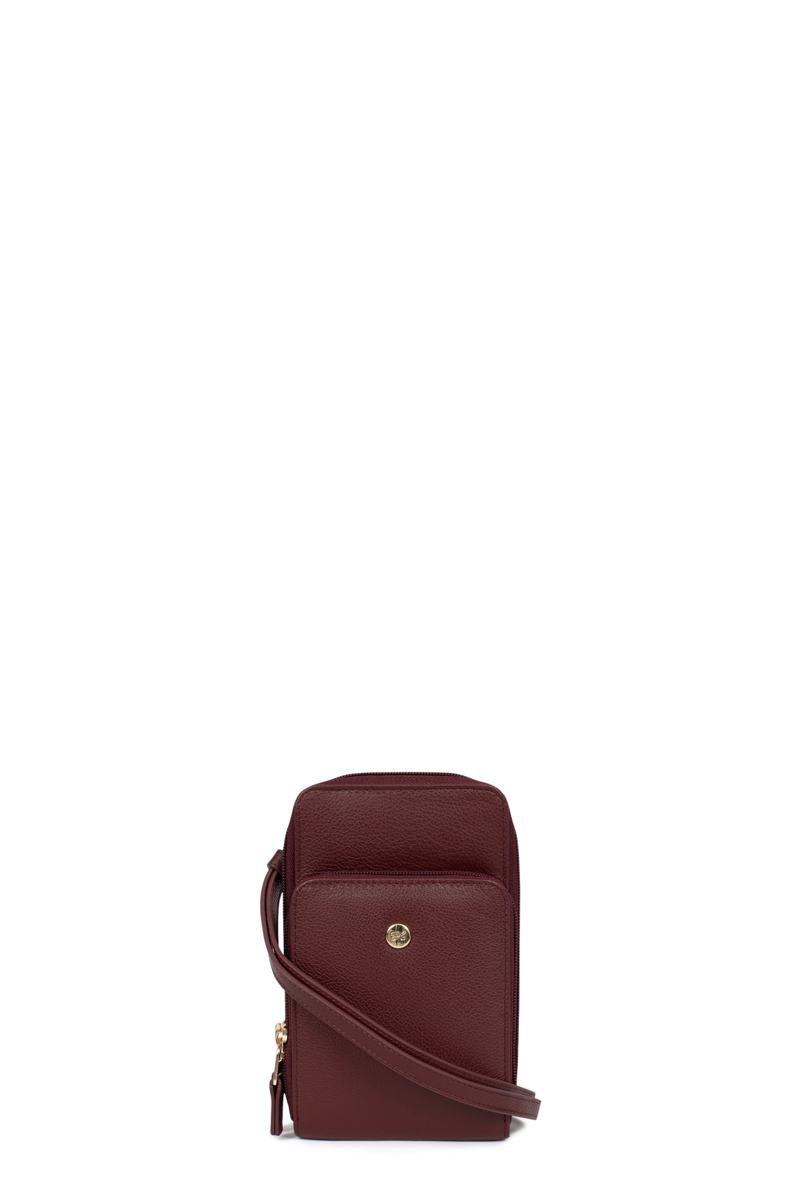 Diese Handytasche vereint Eleganz und Praktikabilität, entworfen zum Schutz Ihrer Karten und Ihres Handys, während sie Ihrem Look eine raffinierte Note verleiht. Hergestellt aus geprägtem Rindsleder, ist sie in mehreren Farben erhältlich, darunter schwarz, gold, orange, pflaume, dunkelrot, silber, Tannengrün und keksfarben.