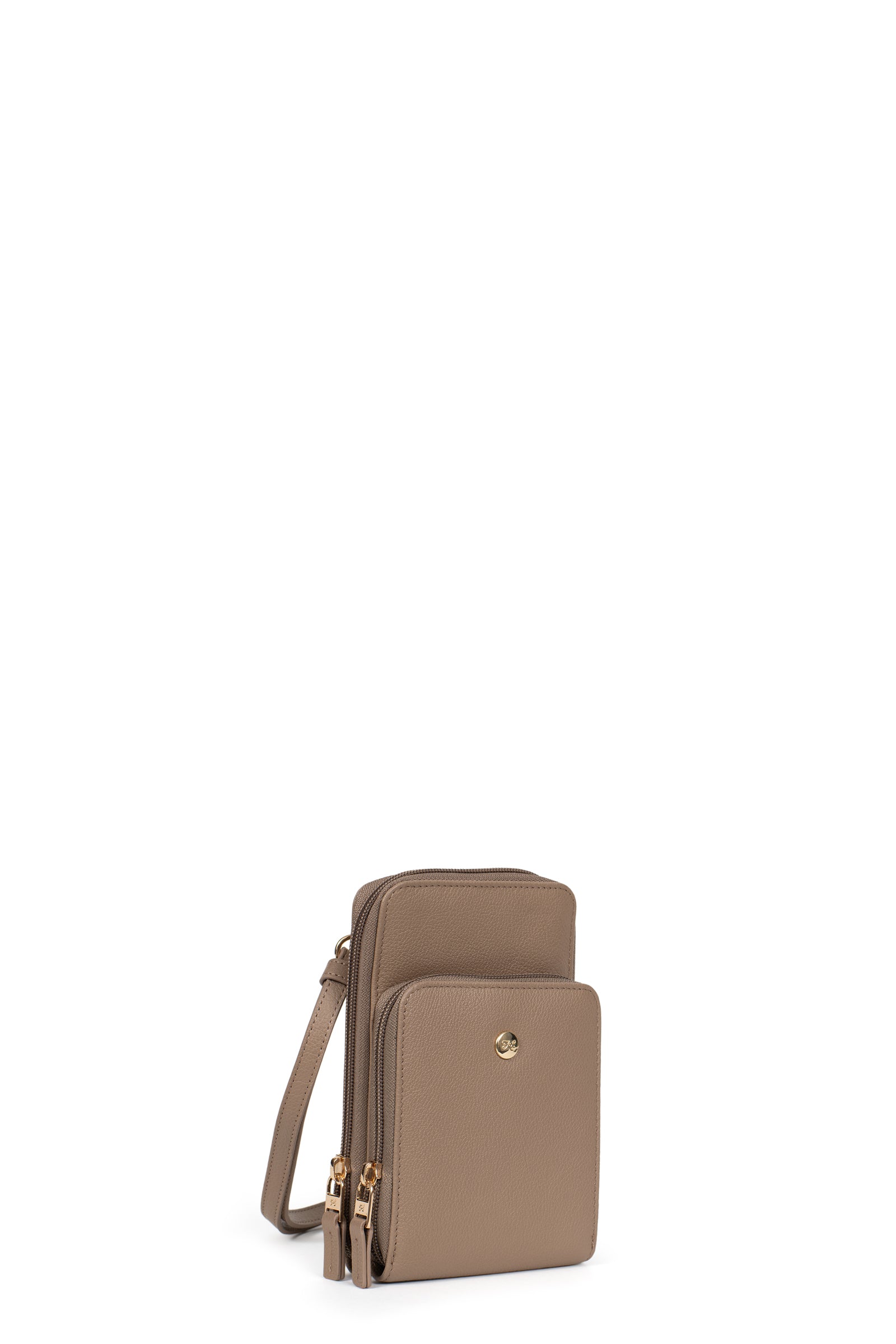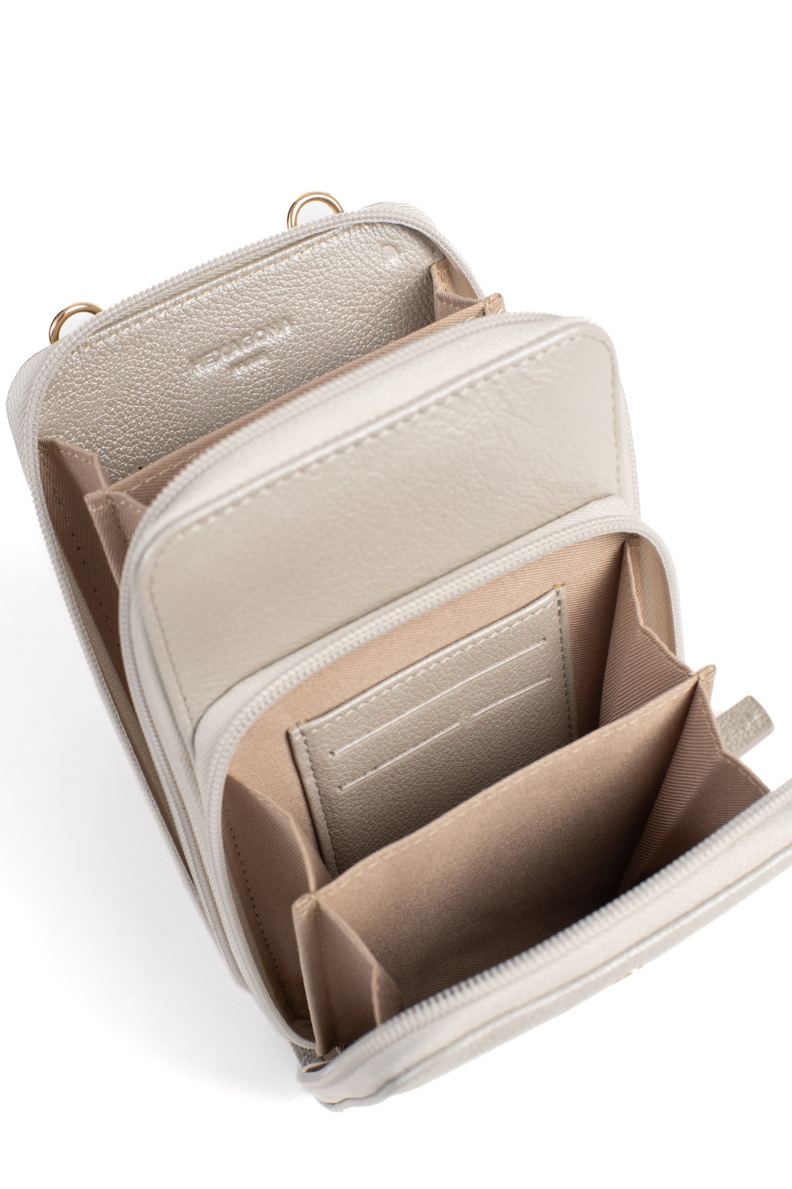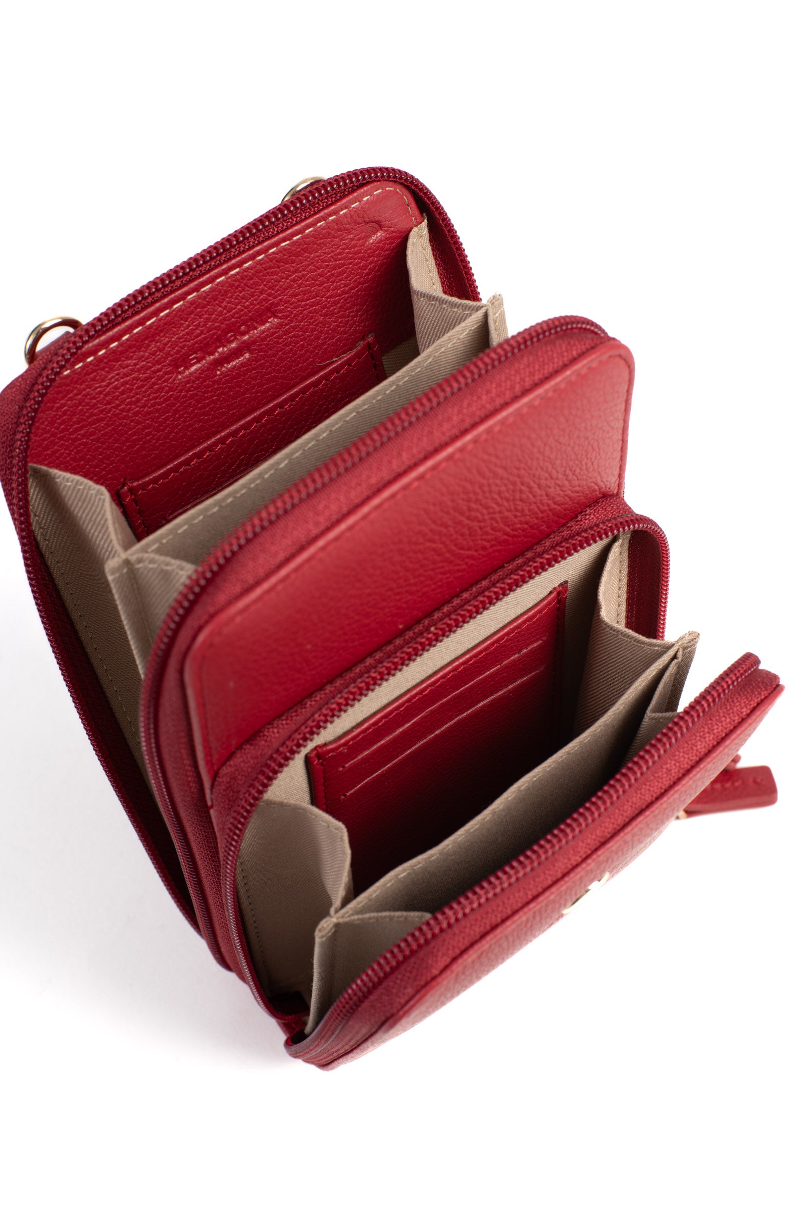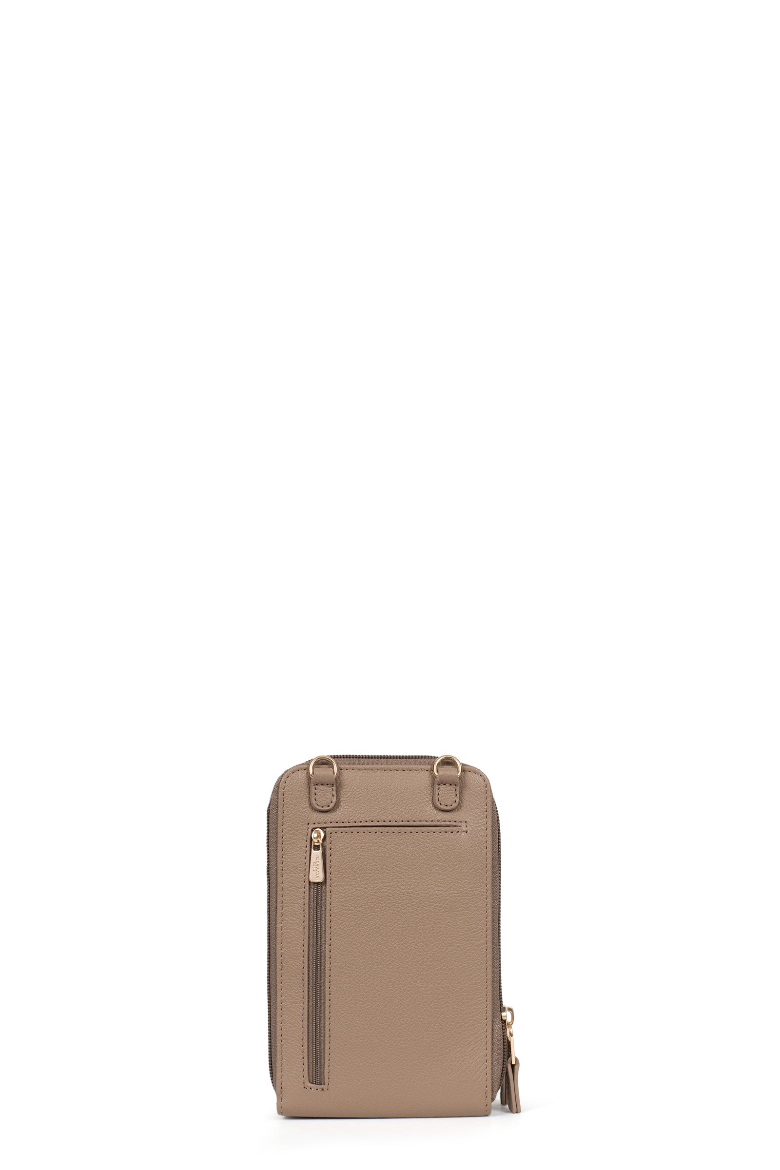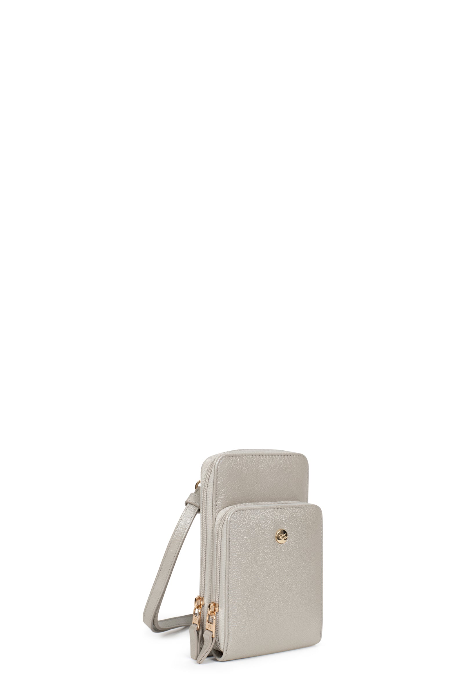 Diese Handytasche vereint Eleganz und Praktikabilität, entworfen zum Schutz Ihrer Karten und Ihres Handys, während sie Ihrem Look eine raffinierte Note verleiht. Hergestellt aus geprägtem Rindsleder, ist sie in mehreren Farben erhältlich, darunter schwarz, gold, orange, pflaume, dunkelrot, silber, Tannengrün und keksfarben.