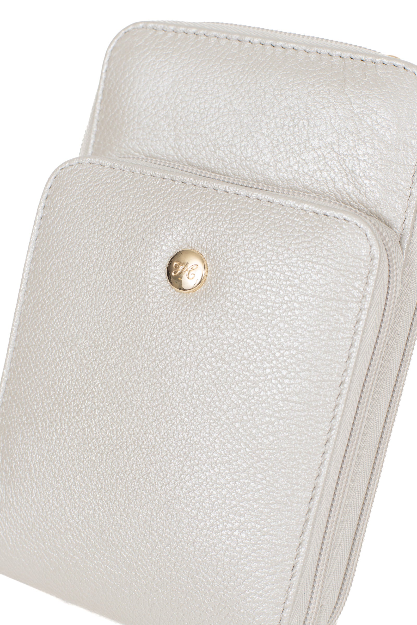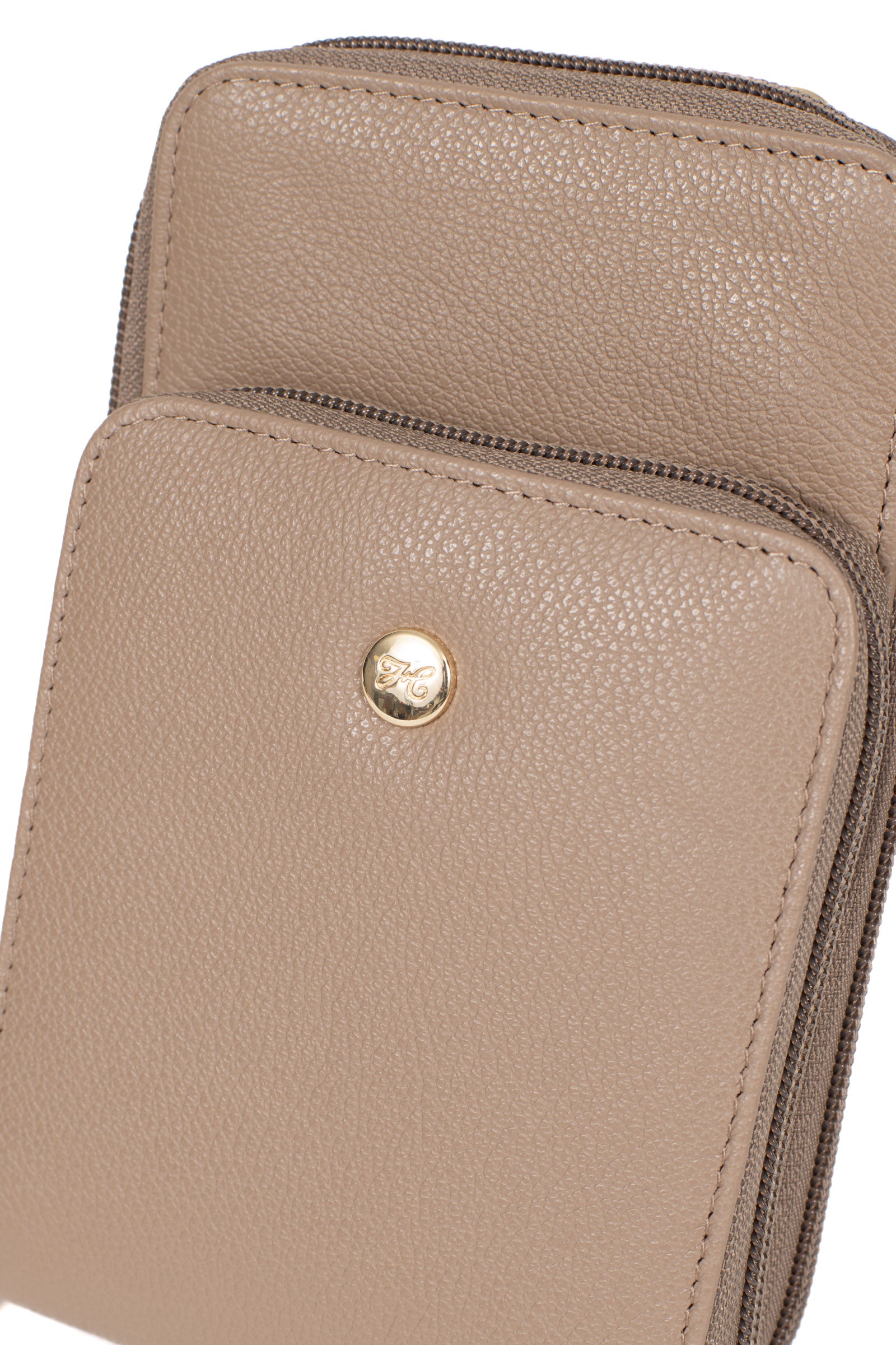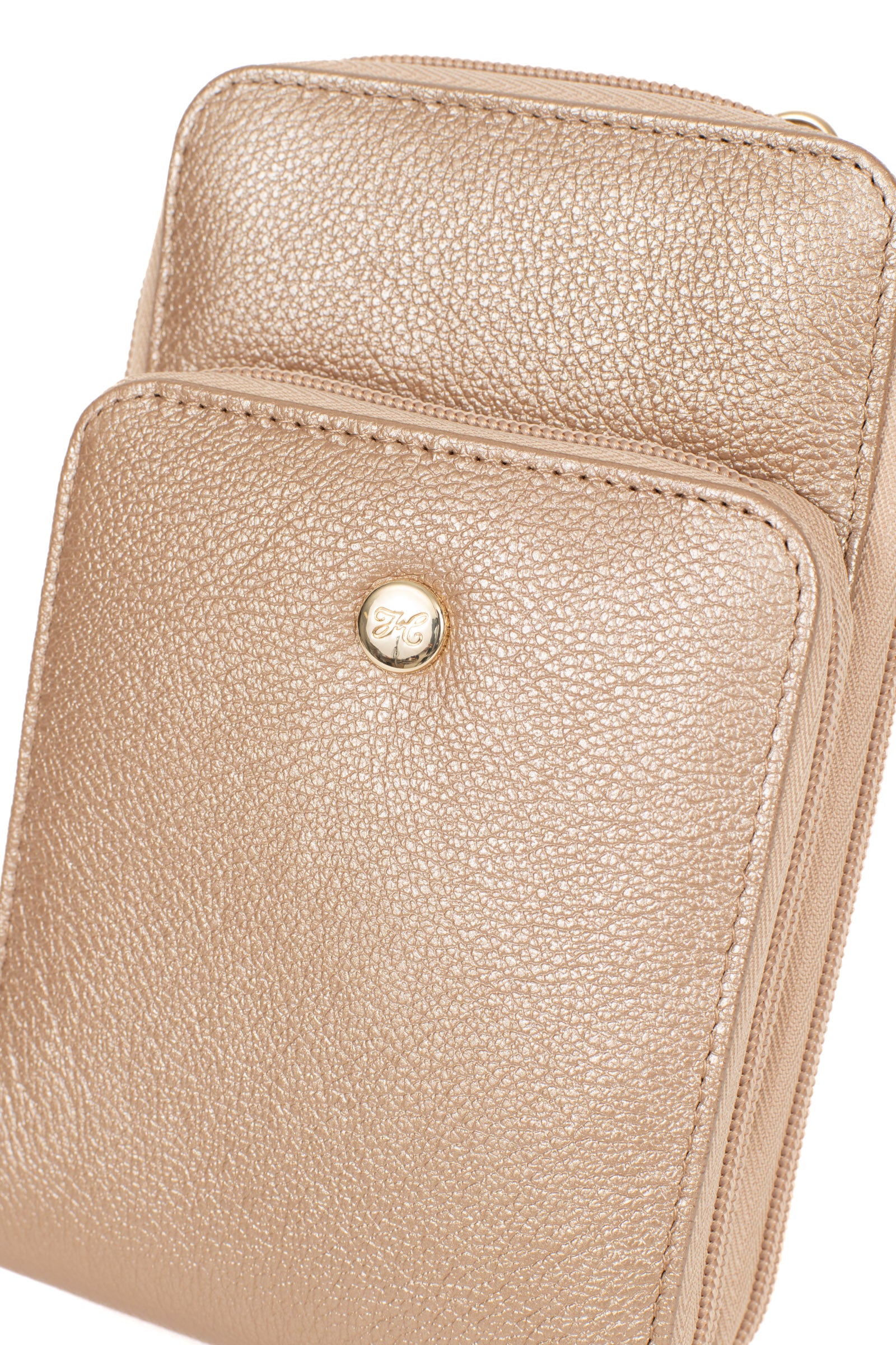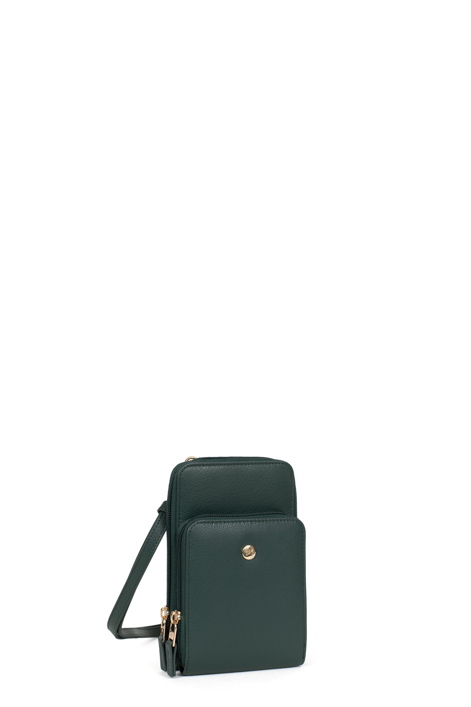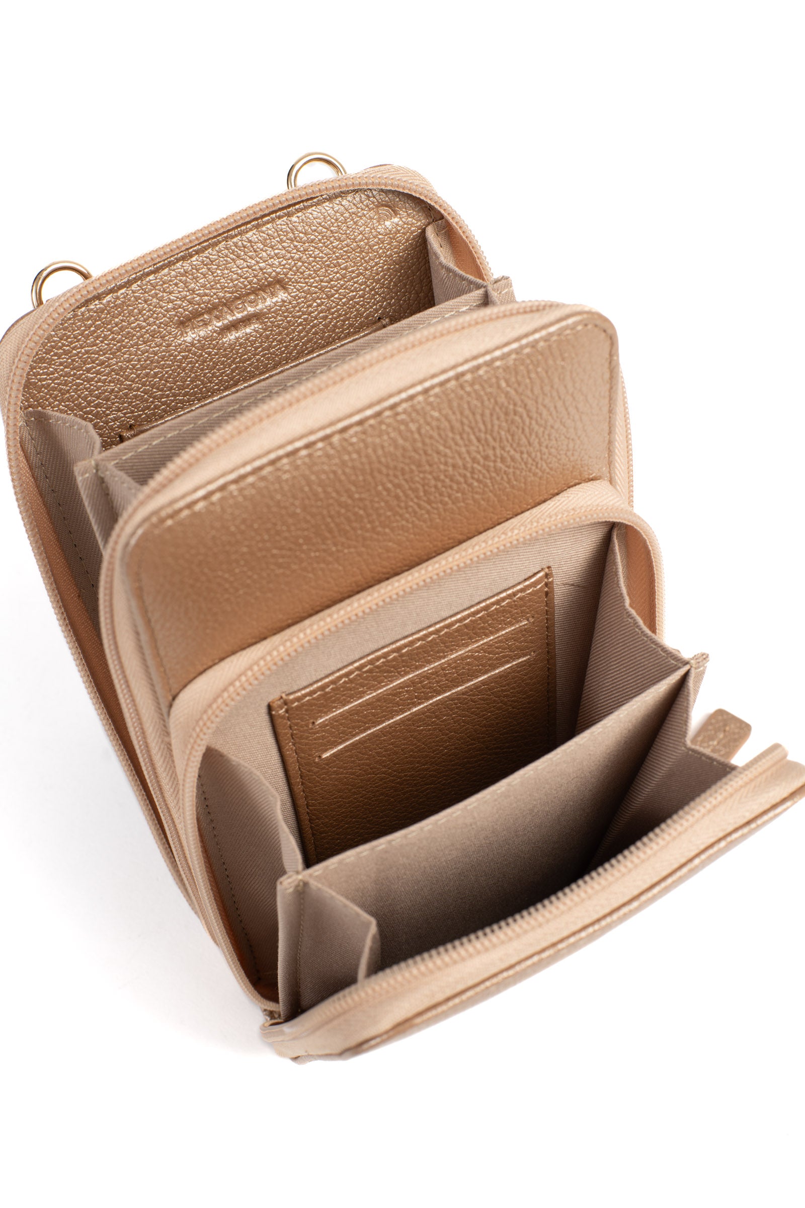 Diese Handytasche vereint Eleganz und Praktikabilität, entworfen zum Schutz Ihrer Karten und Ihres Handys, während sie Ihrem Look eine raffinierte Note verleiht. Hergestellt aus geprägtem Rindsleder, ist sie in mehreren Farben erhältlich, darunter schwarz, gold, orange, pflaume, dunkelrot, silber, Tannengrün und keksfarben.