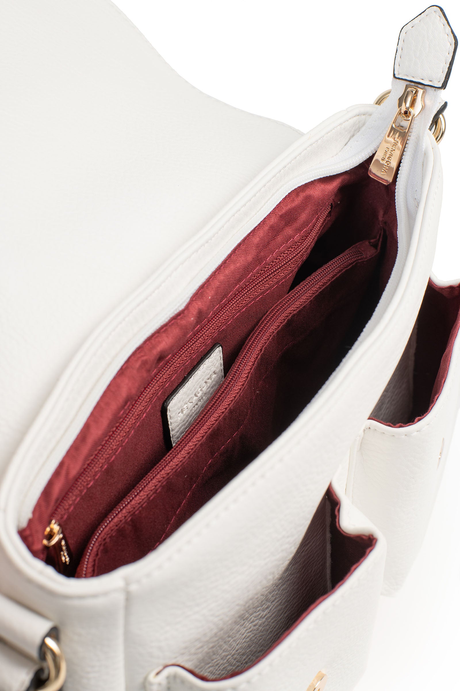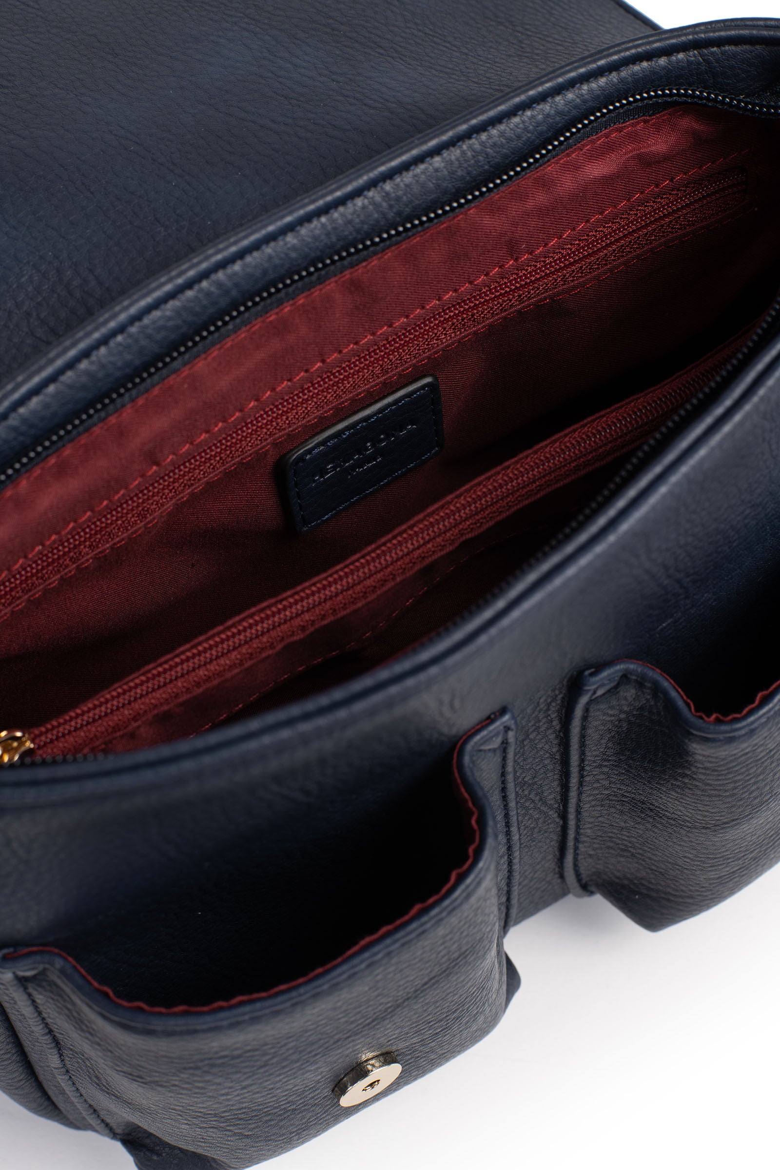 - Innen: 1 Hauptfach mit 1 Reißverschluss-Trennfach. 1 flaches Reißverschlussfach. 2 flache Fächer (darunter 1 Telefonfach).
