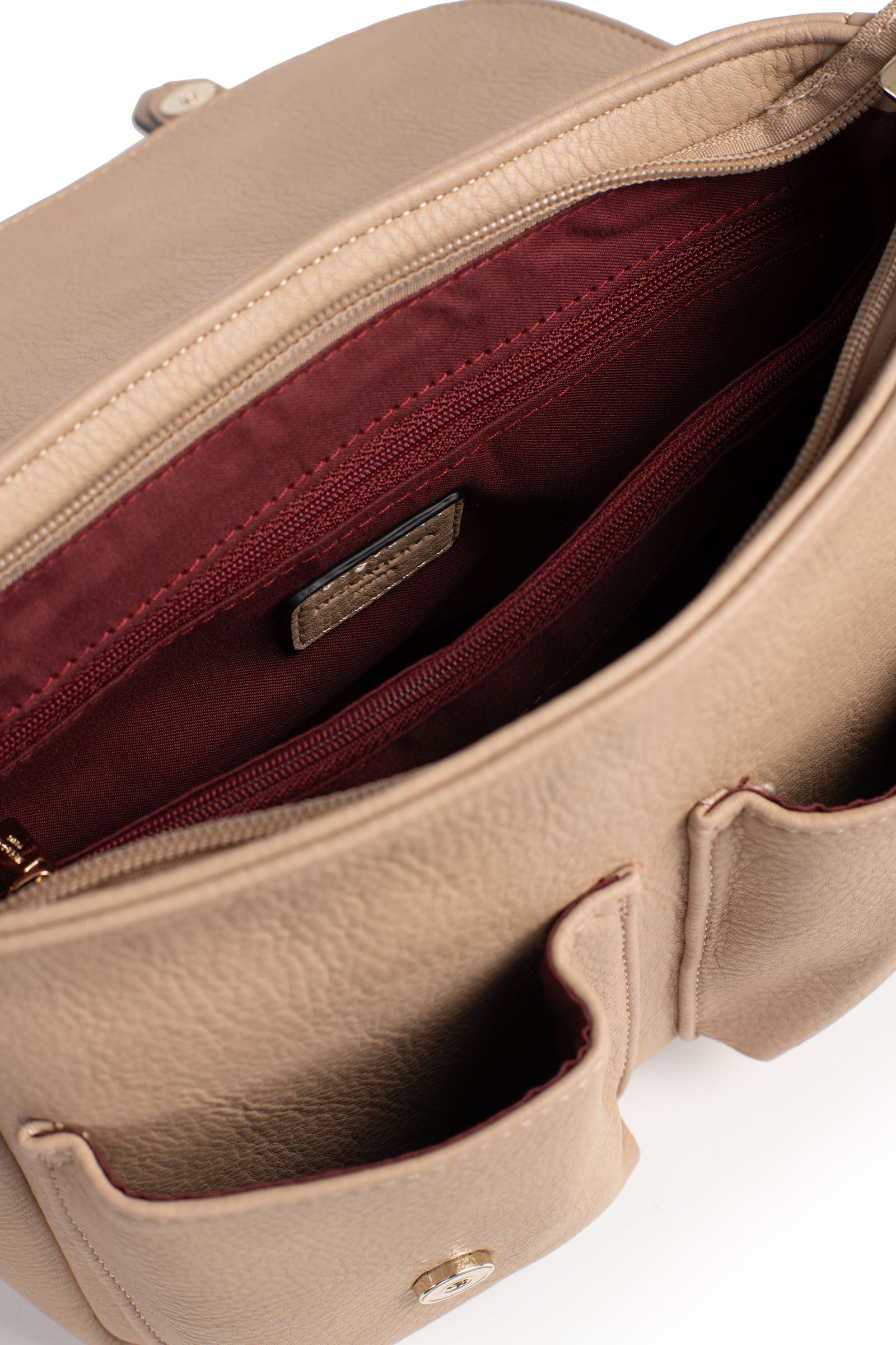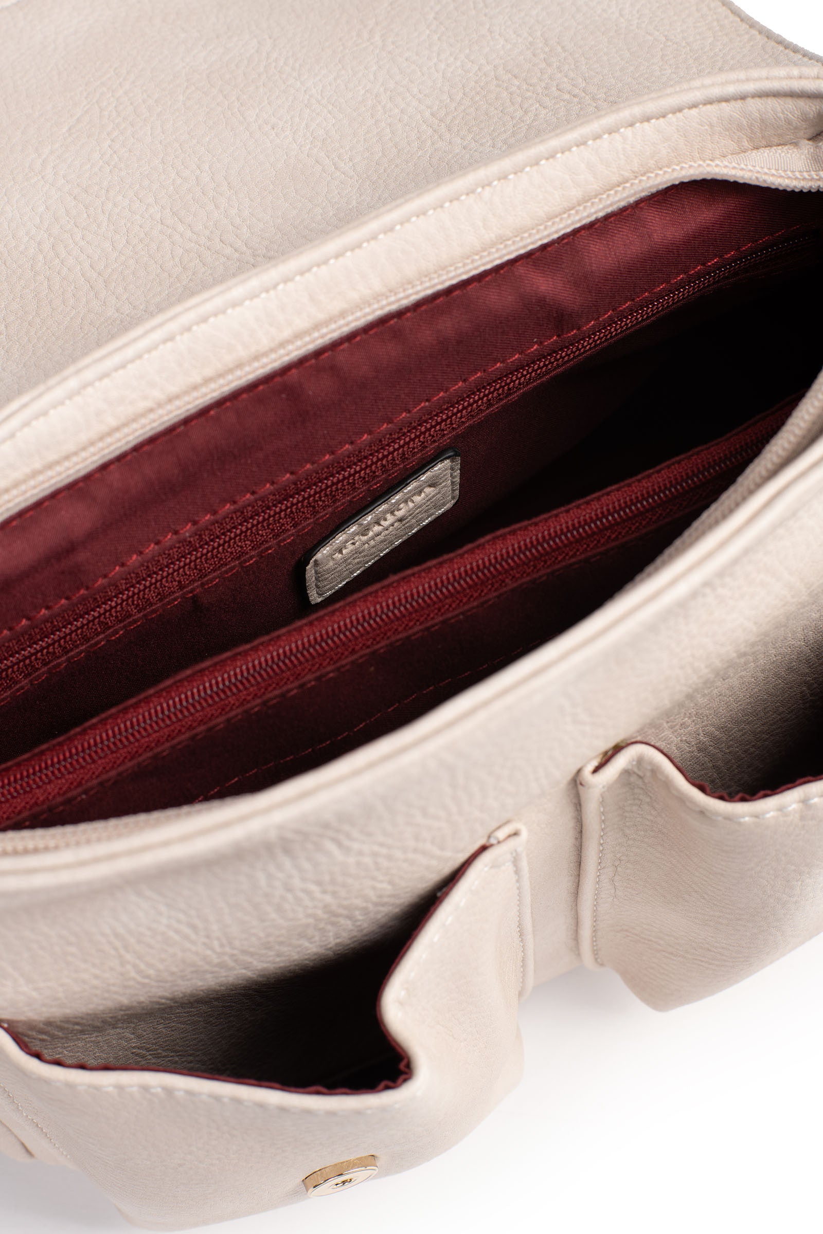 Innen: 1 Hauptfach mit 1 Reißverschluss-Trennfach. 1 flaches Reißverschlussfach. 2 flache Fächer (davon 1 Handyfach).