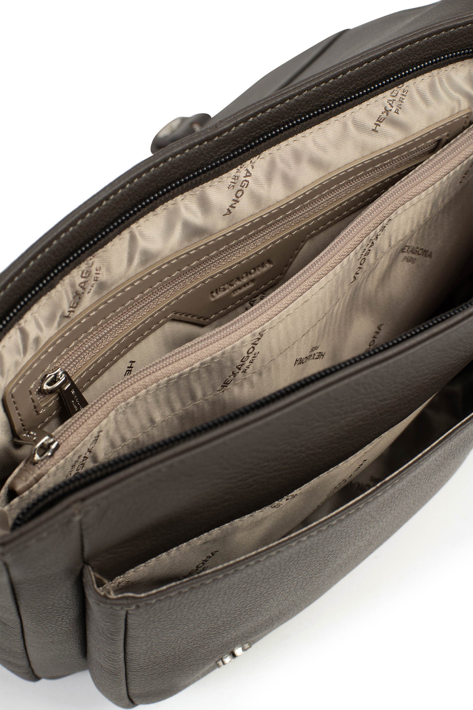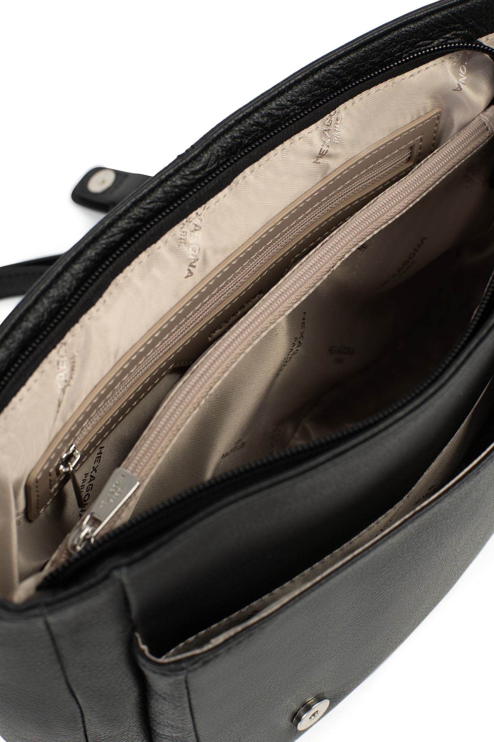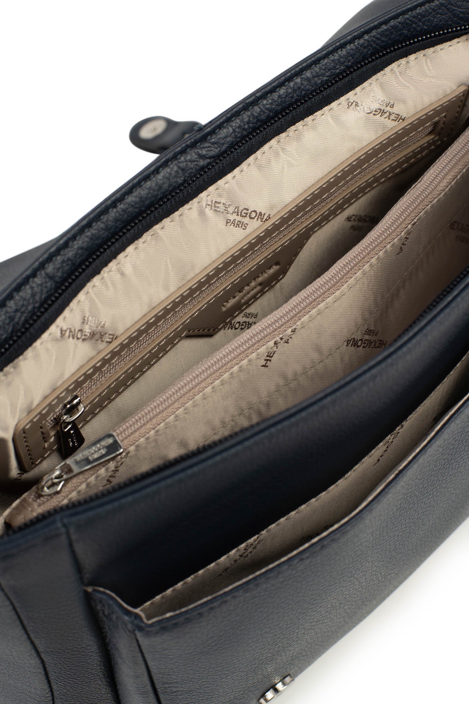 - Innen: 1 Hauptfach mit 1 Reißverschluss-Trennfach. 1 flaches Reißverschlussfach. 2 flache Fächer (darunter 1 Telefonfach).