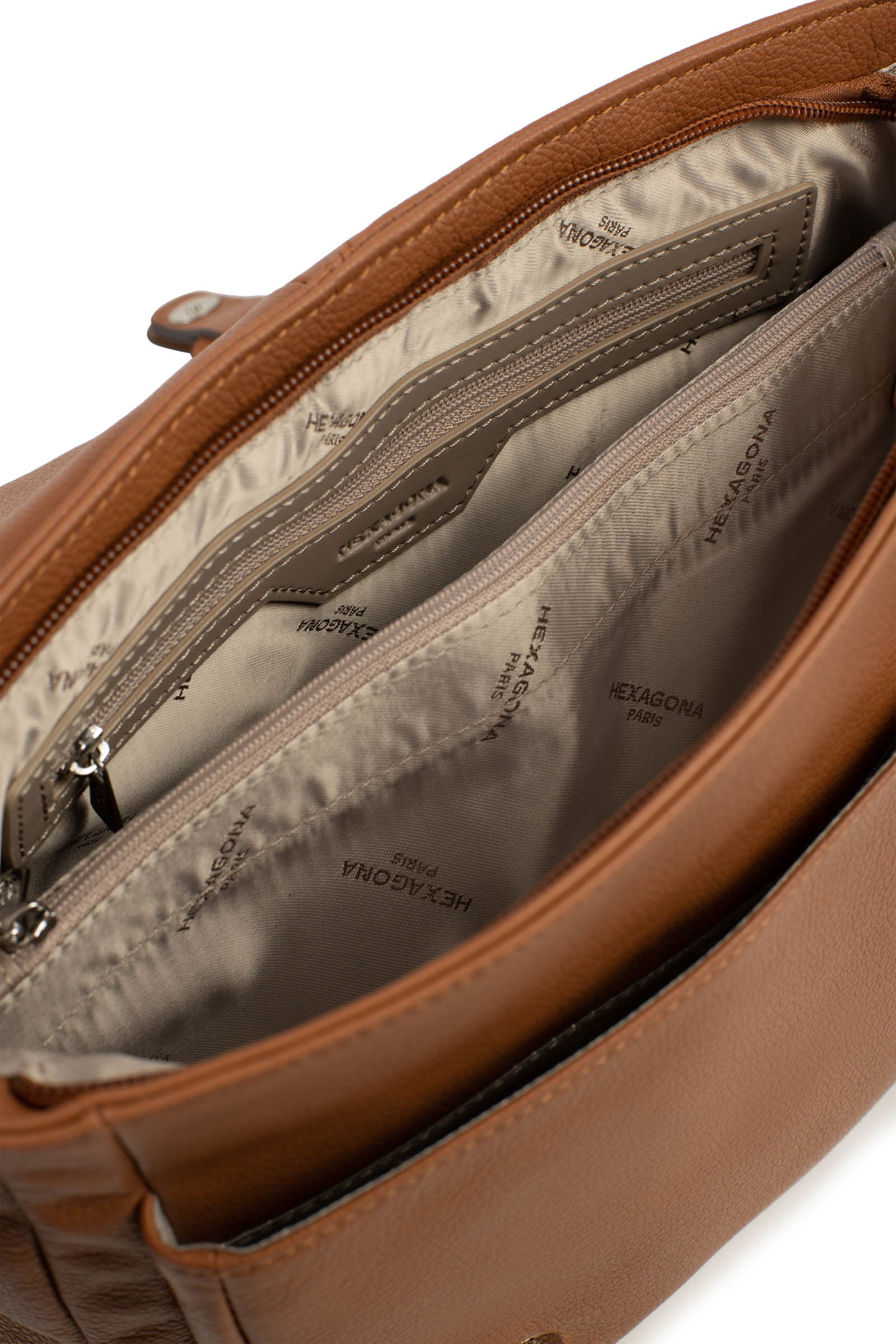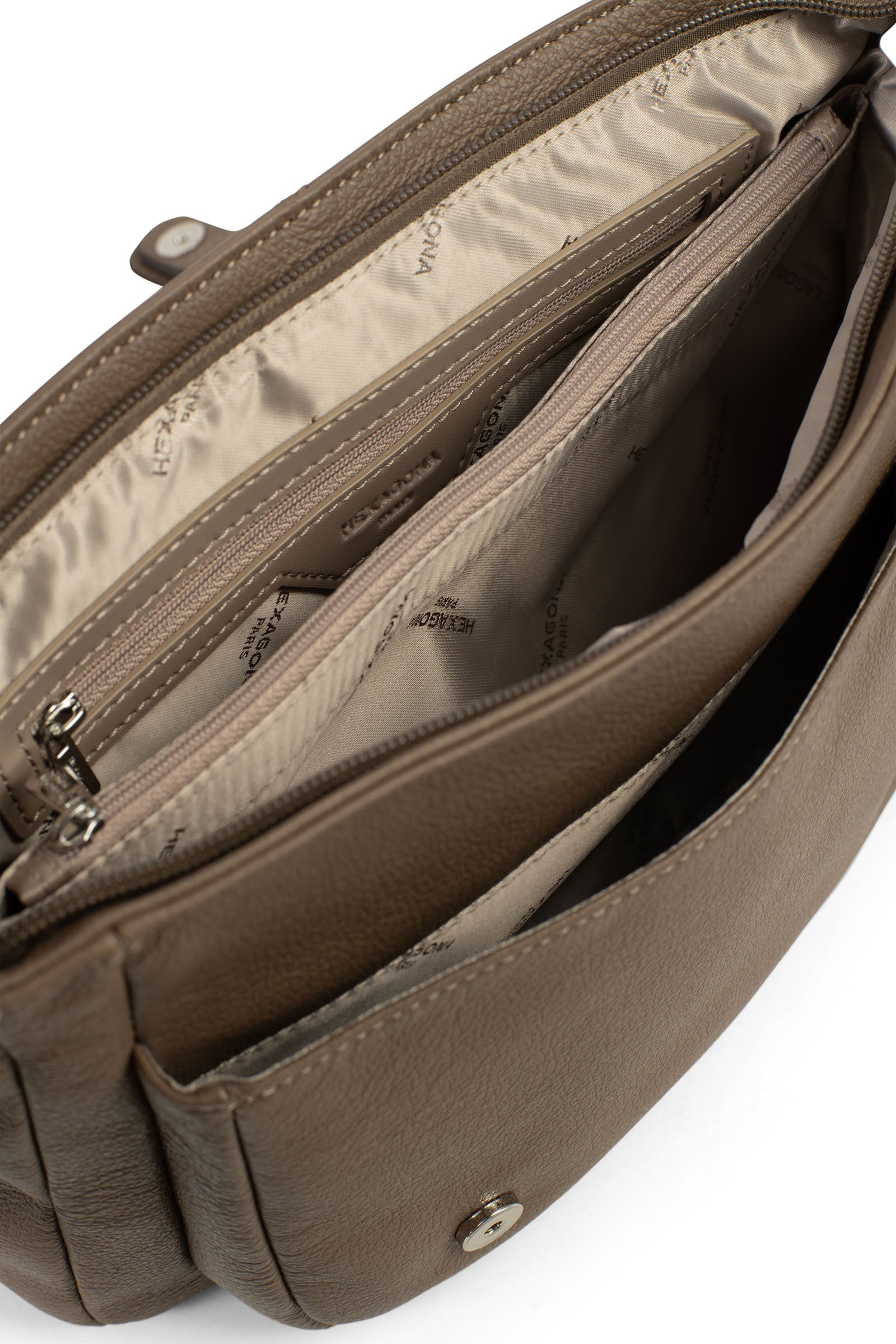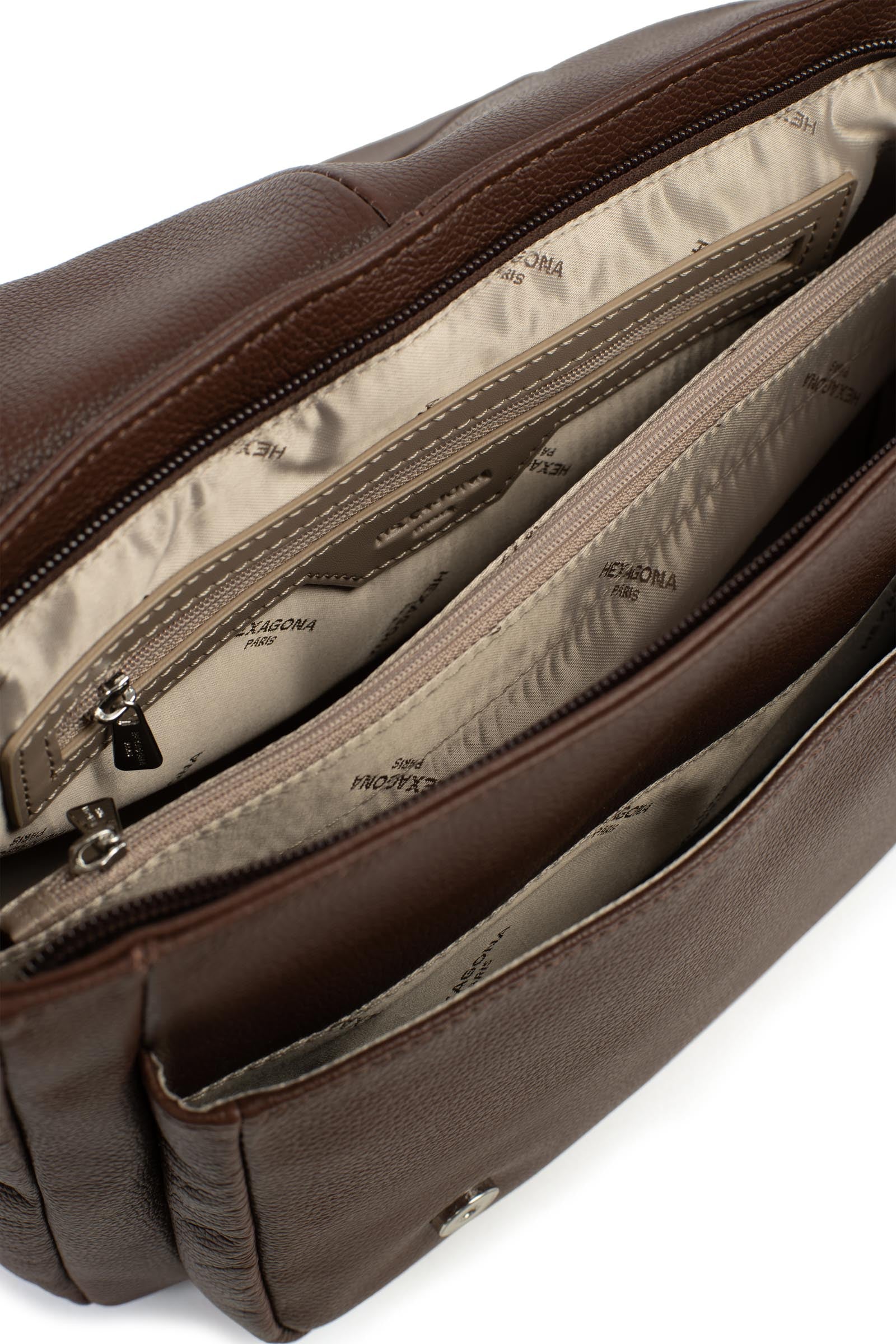 - Innen: 1 Hauptfach mit 1 Reißverschluss-Trennfach. 1 flaches Reißverschlussfach. 2 flache Fächer (darunter 1 Telefonfach).