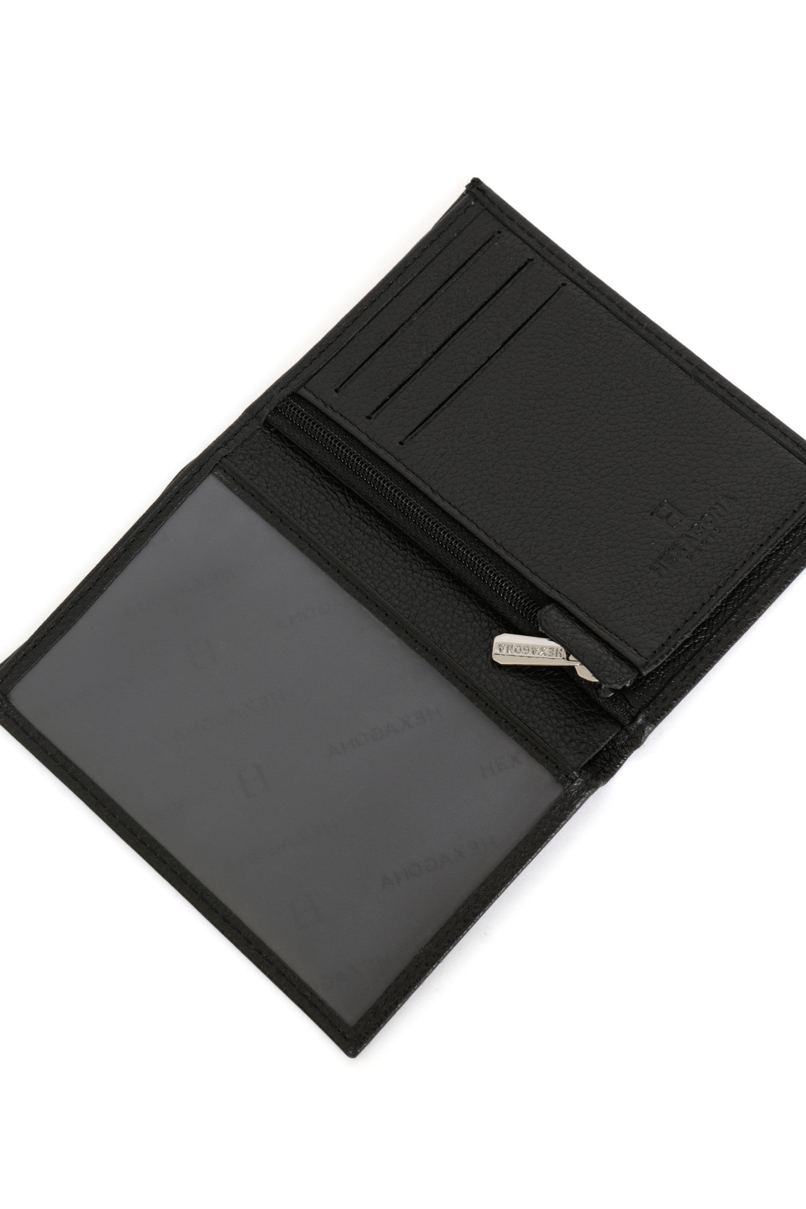 Innen: 1 Fach. 1 Reißverschluss-Geldbörse. 2 flache Taschen (davon 1 mit durchsichtigem Sichtfenster). 3 Kartenfächer. 1 Geldscheinfach.