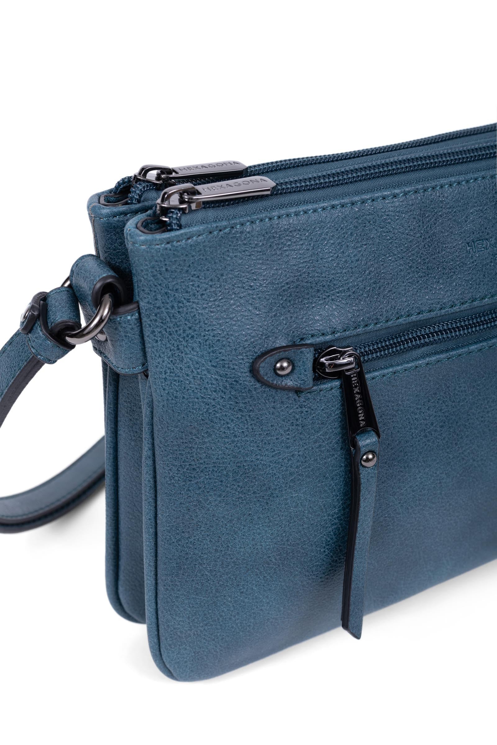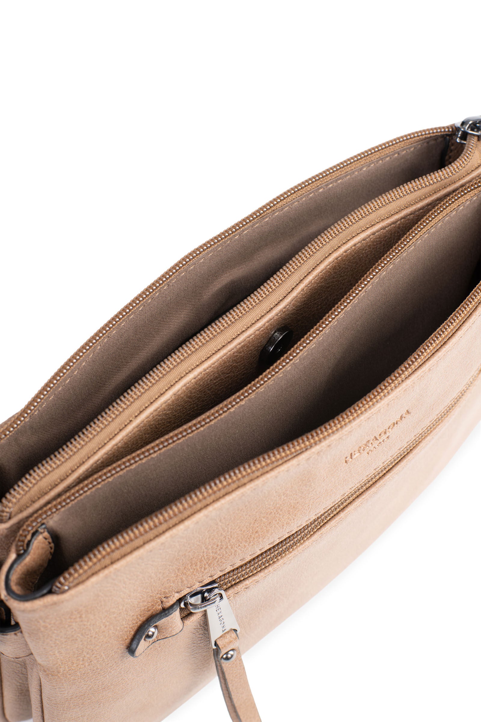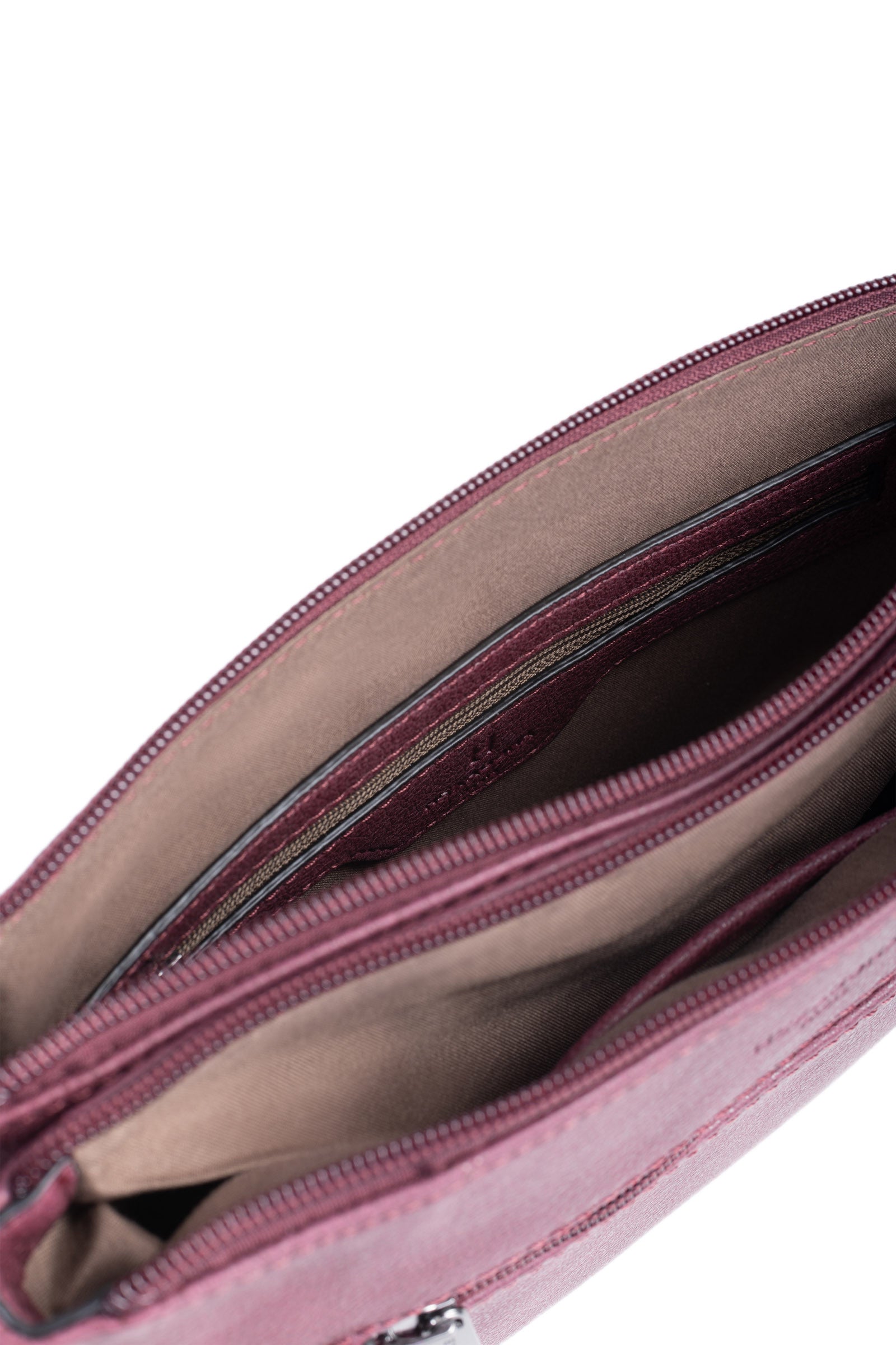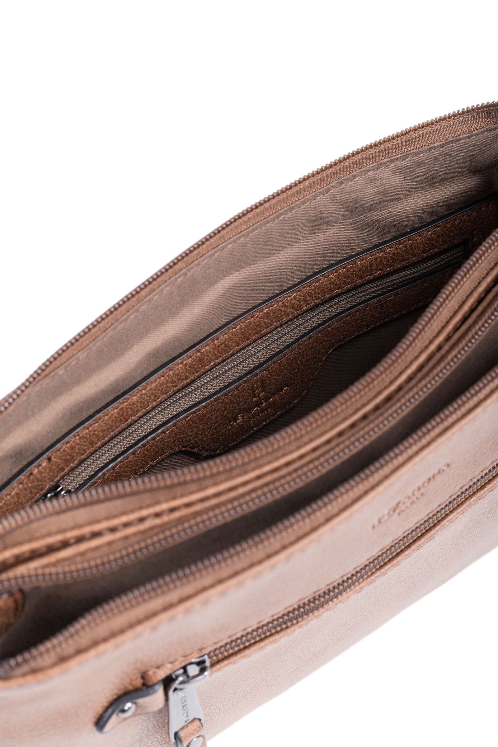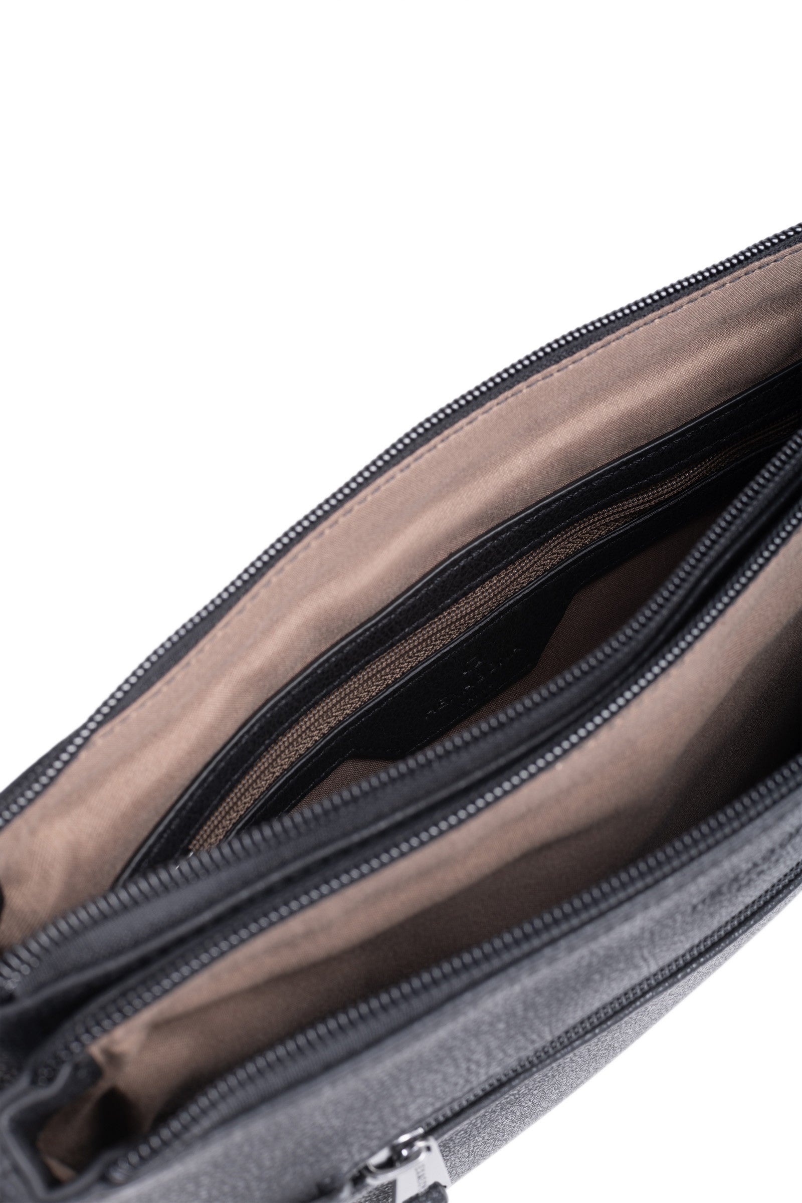 Innen: 3 Hauptfächer mit 1 flacher, zipbarer Tasche. 1 Telefonfach.