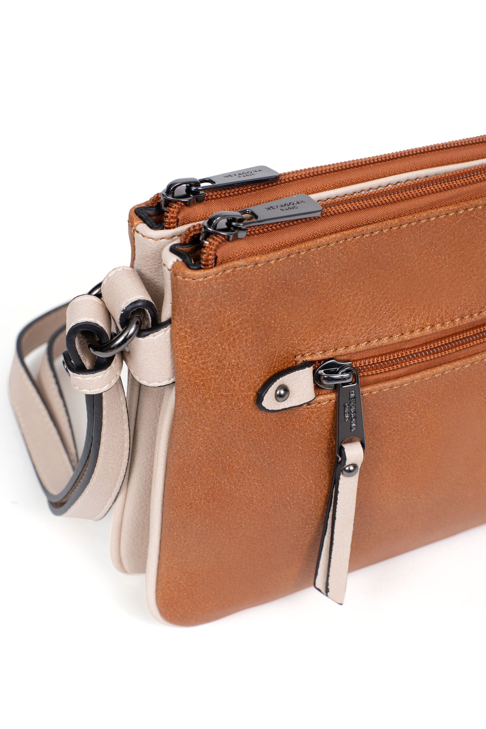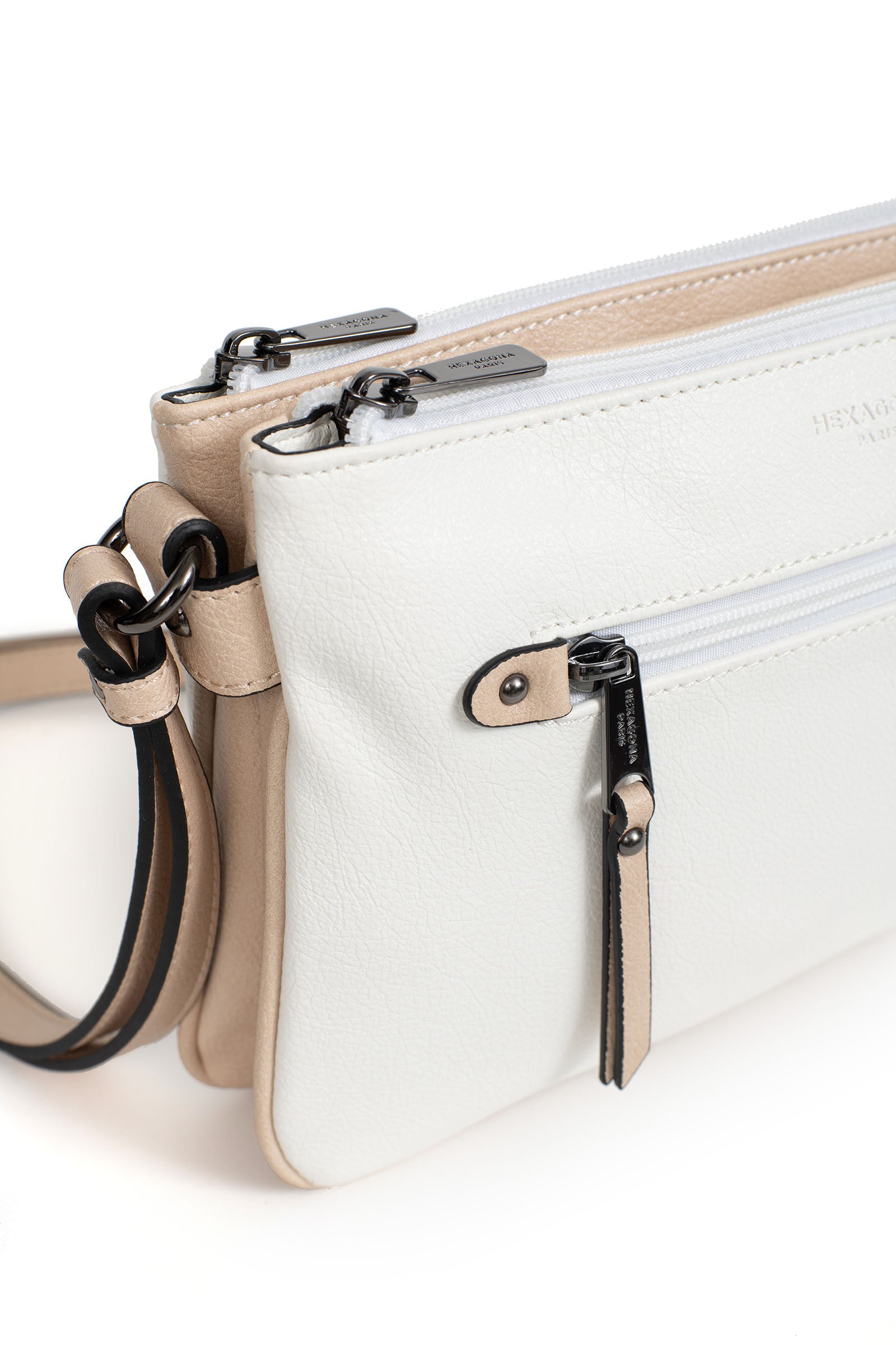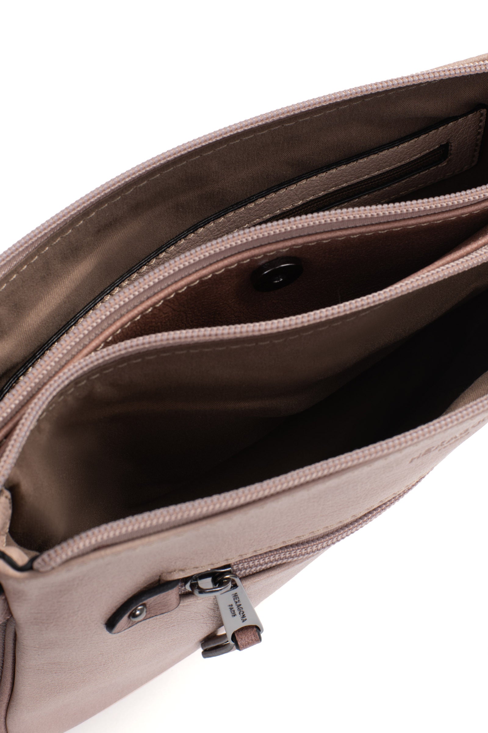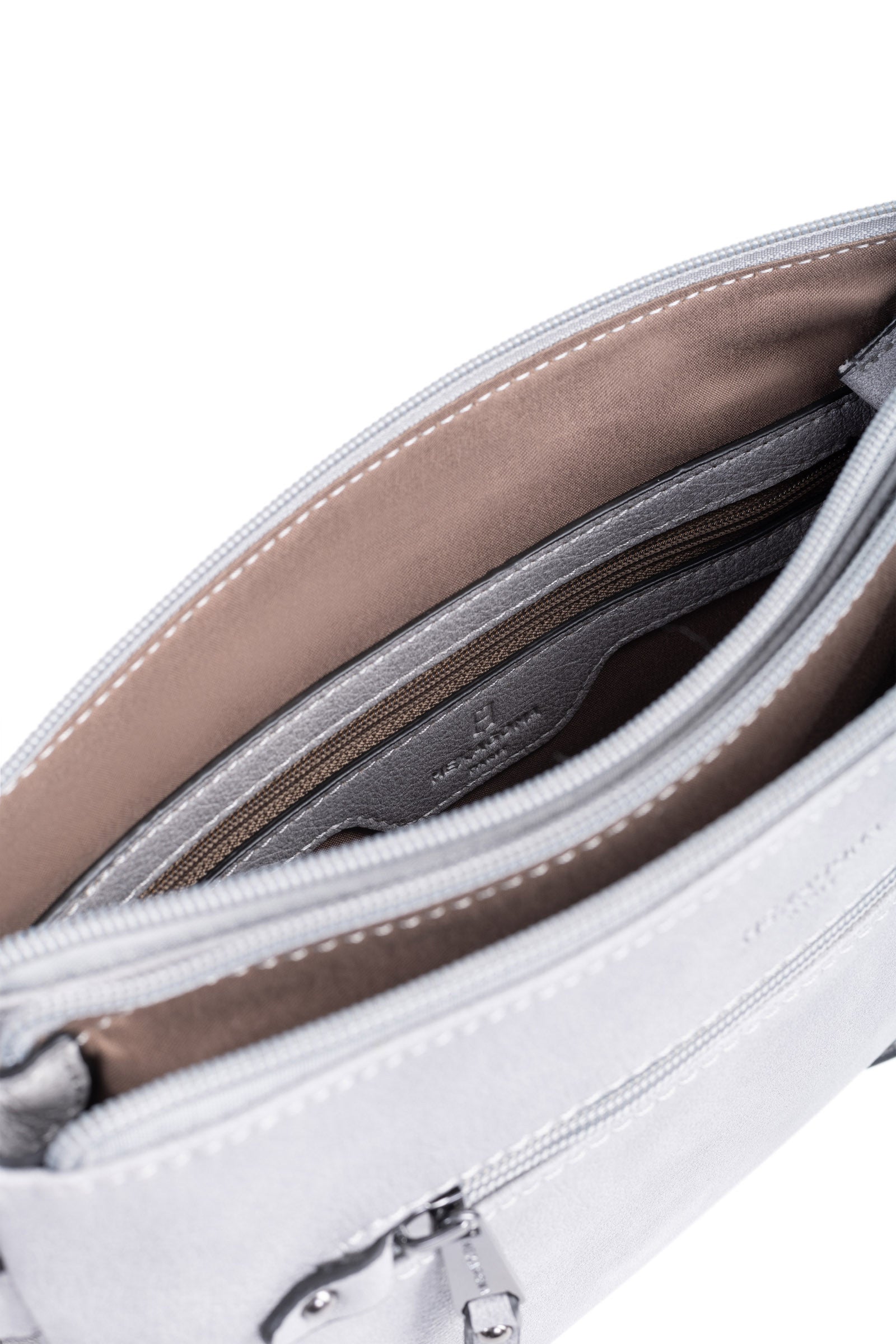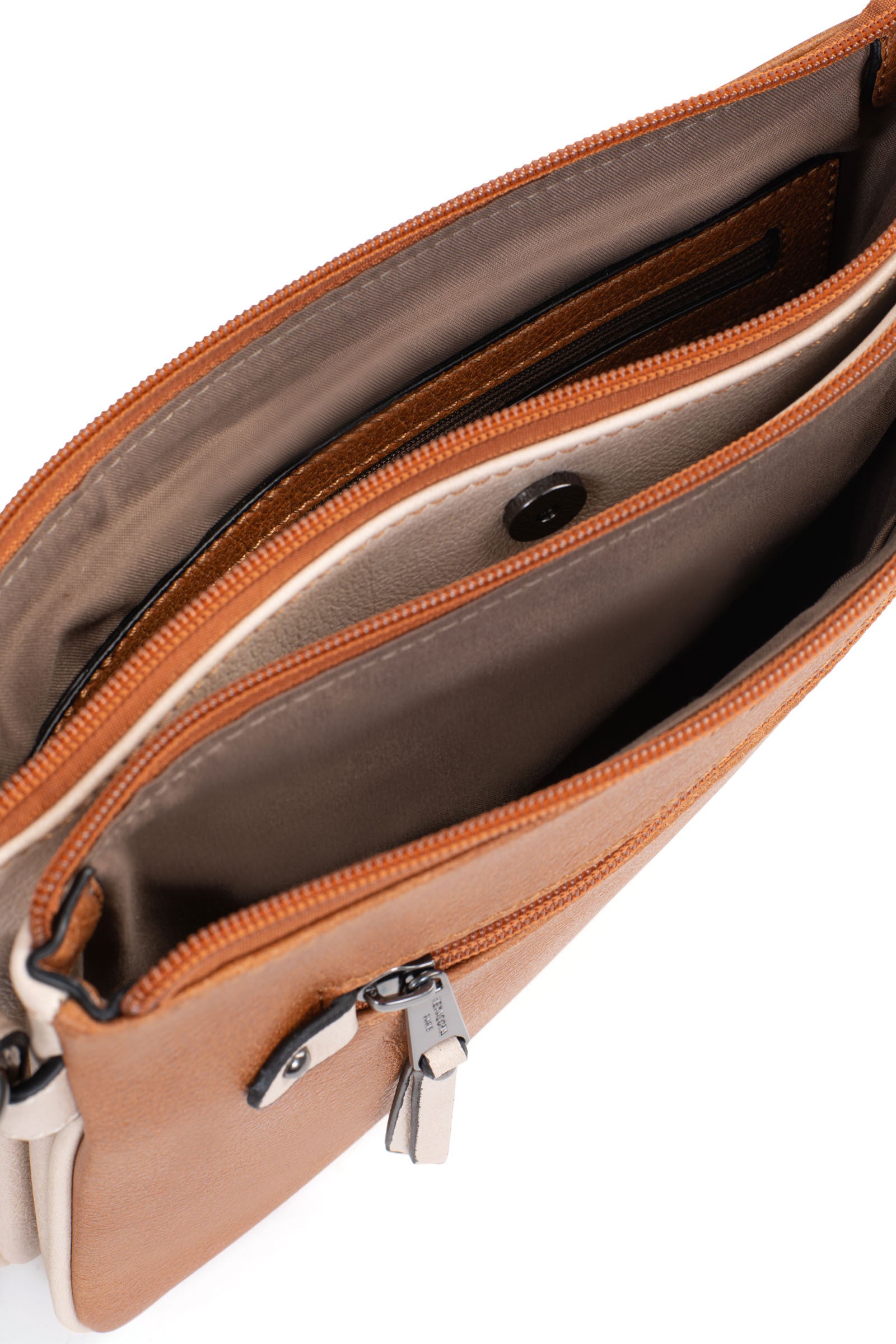 Innen: 3 Hauptfächer mit 1 flacher, zipbarer Tasche. 1 Telefonfach.