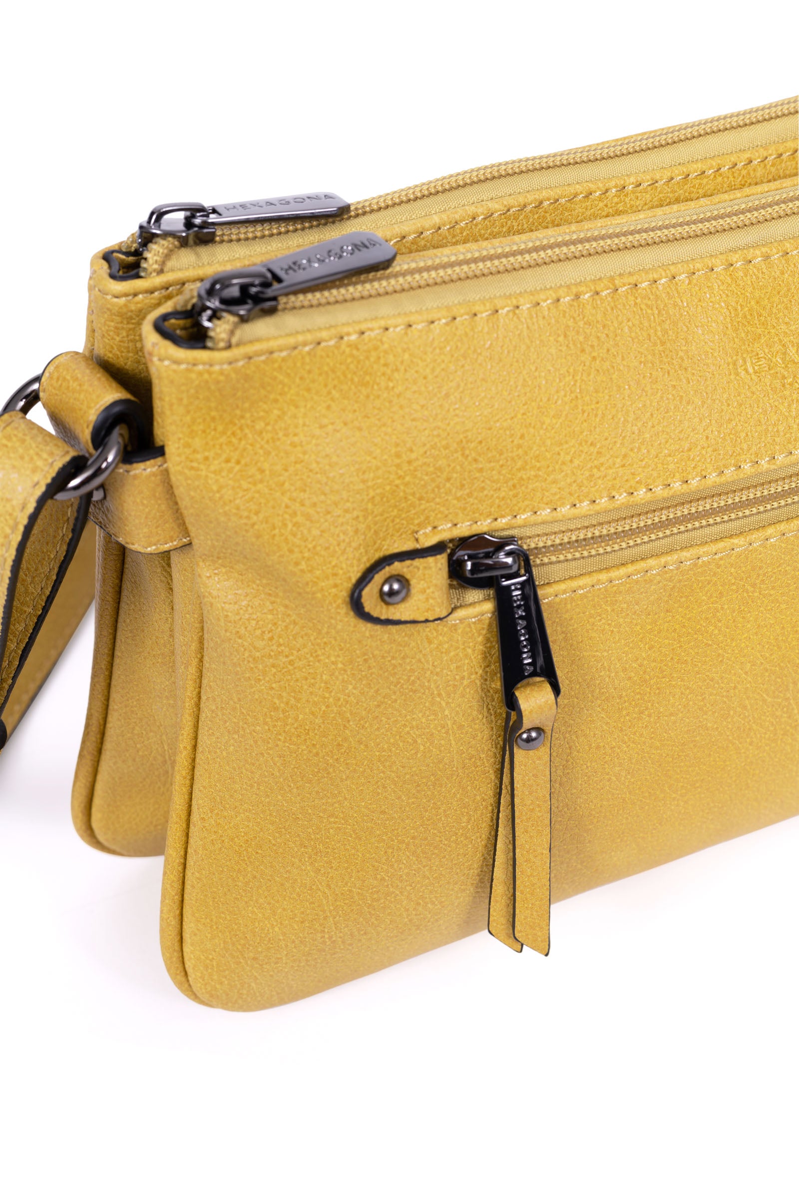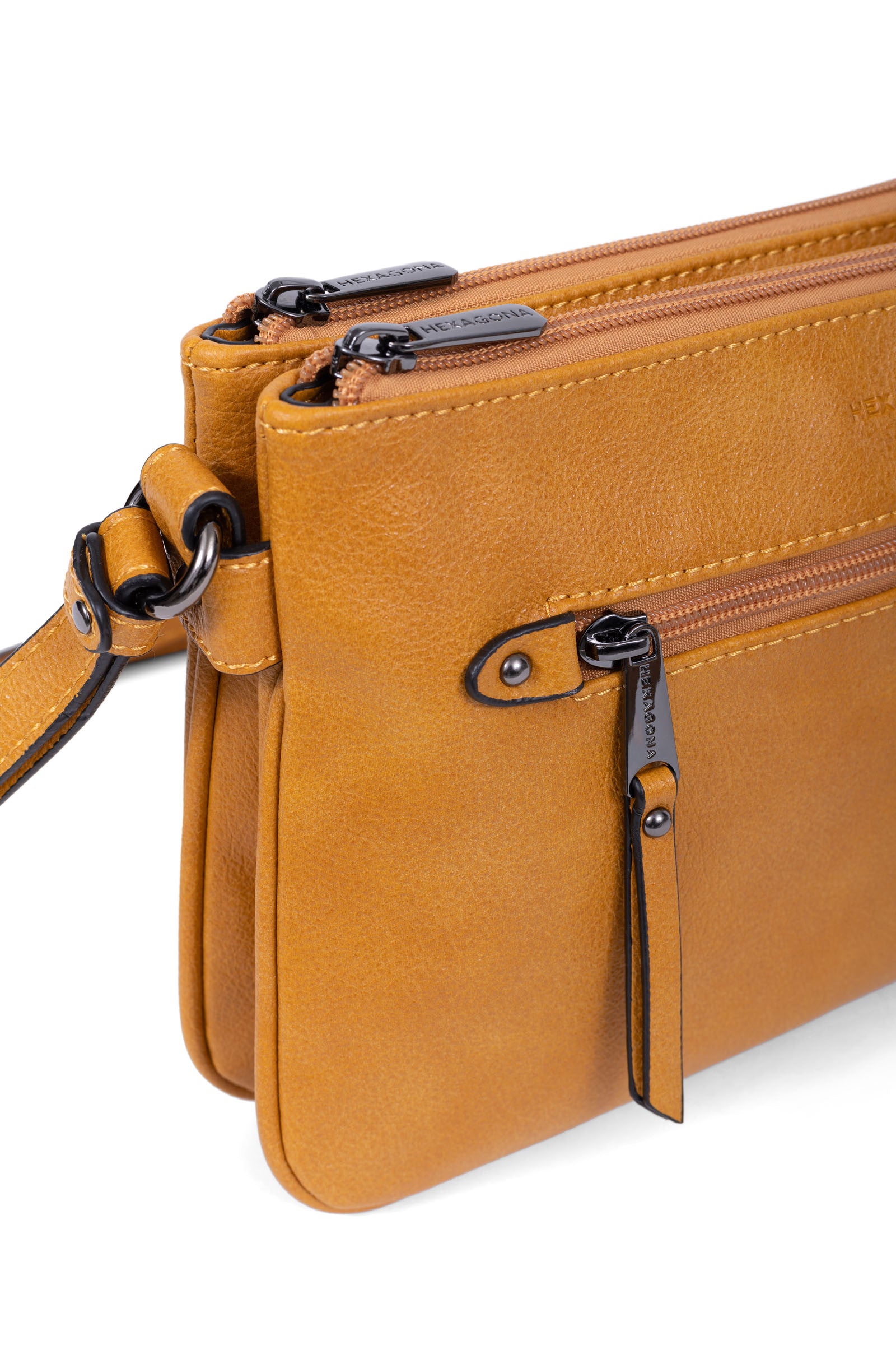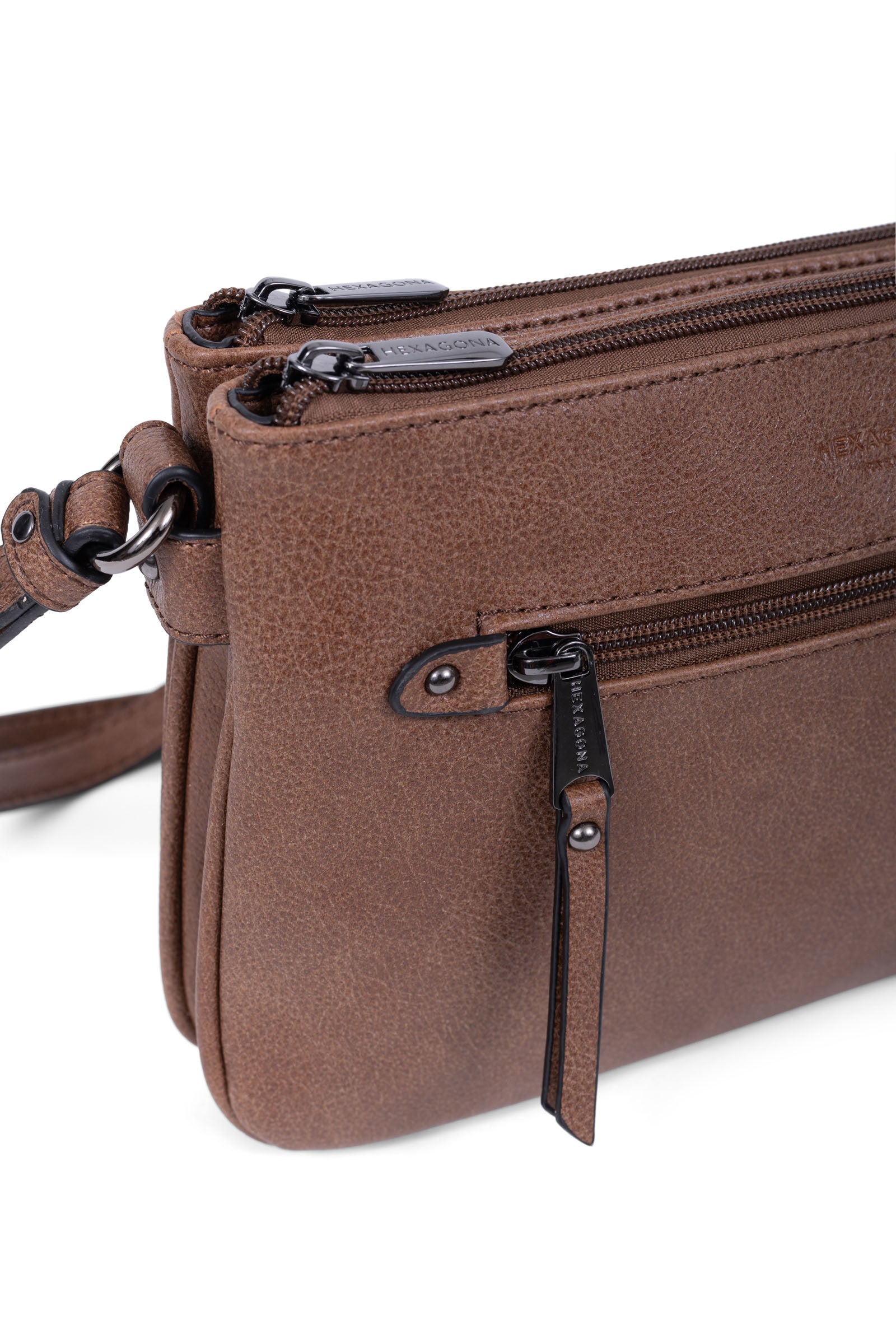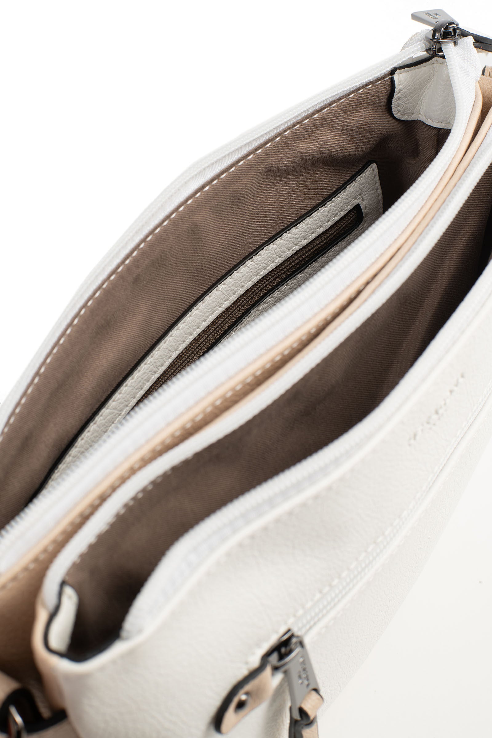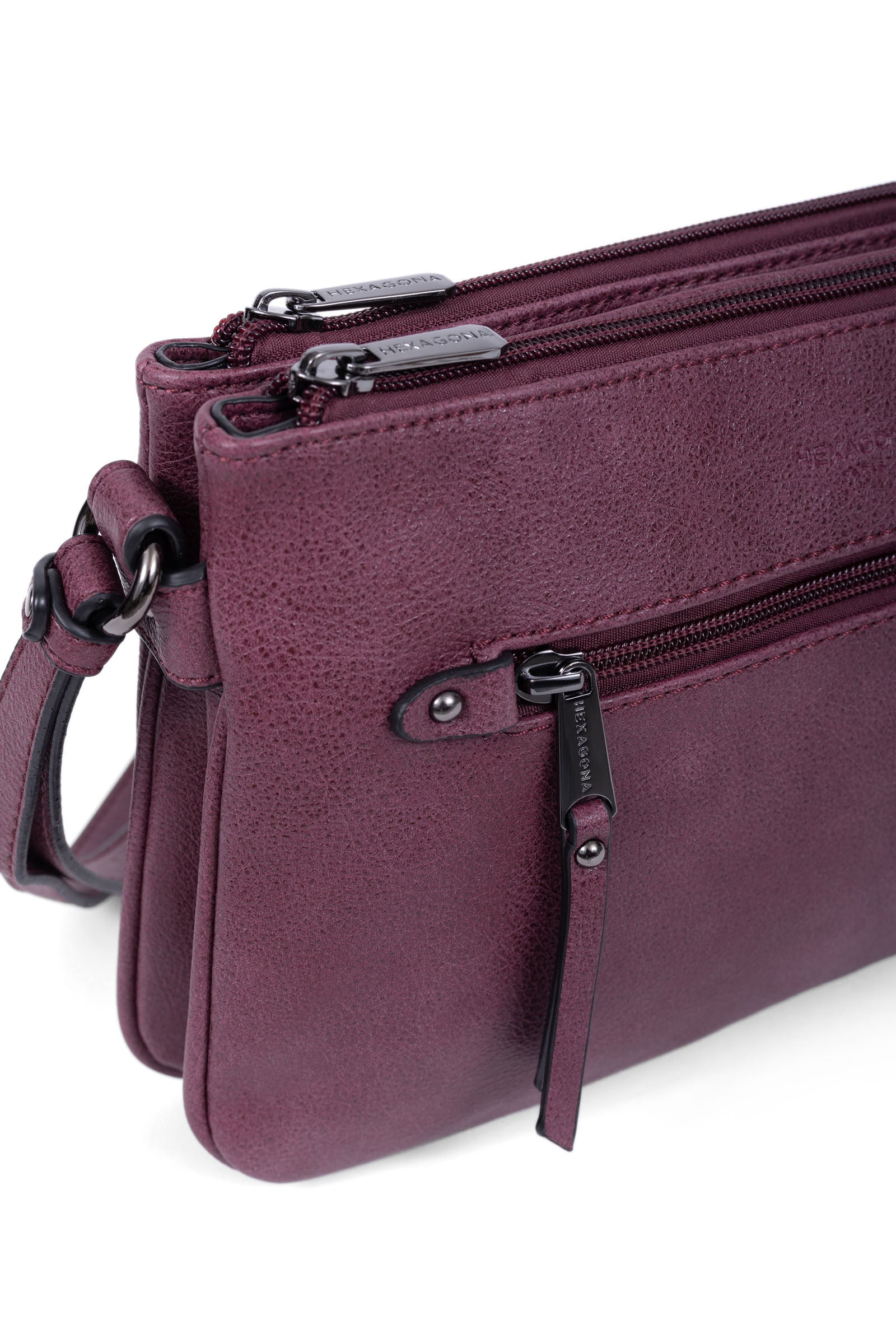 Innen: 3 Hauptfächer mit 1 flacher, zipbarer Tasche. 1 Telefonfach.
