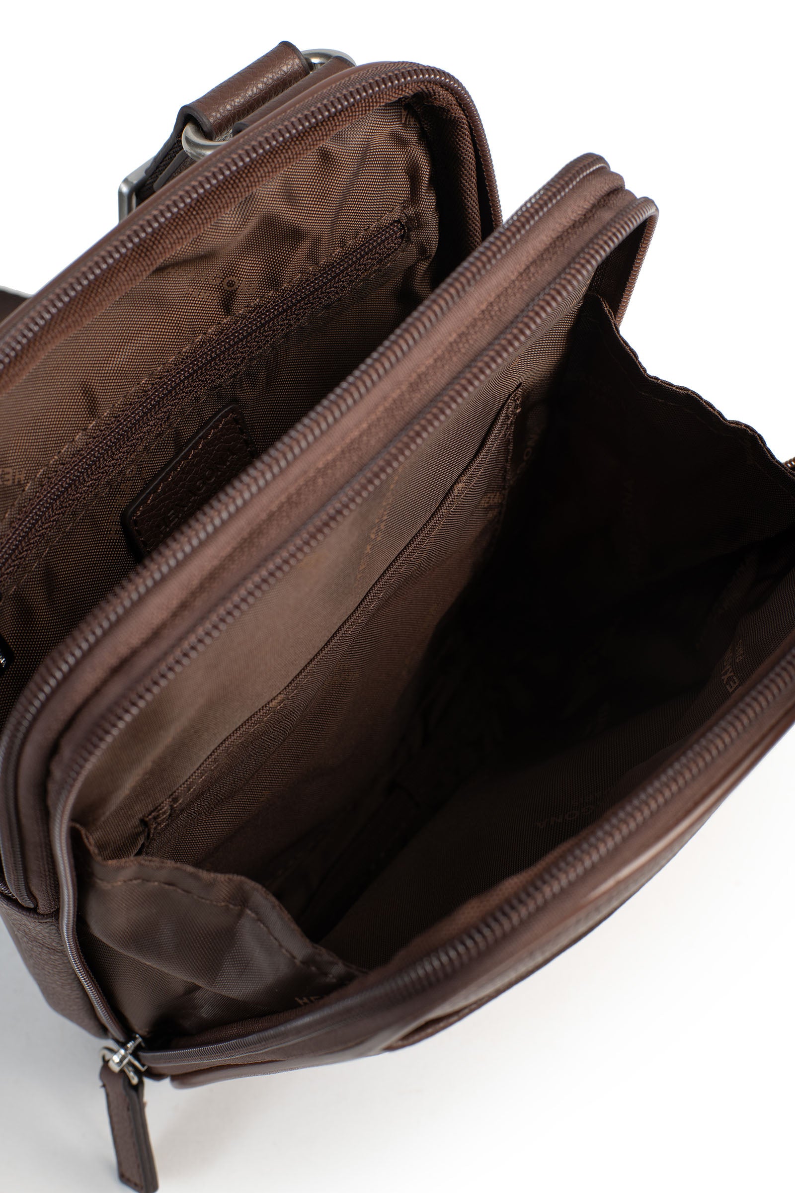Mit ihrer rechteckigen Silhouette ist diese Tasche für einen bequemen Schultertragekomfort konzipiert. Die Metallverzierungen und die tonalen Steppnähte verleihen einen Hauch von Luxus, während ihre Fähigkeit, ein Telefon und andere wichtige Dinge aufzunehmen, sie zu einer funktionalen Wahl für moderne Männer macht.