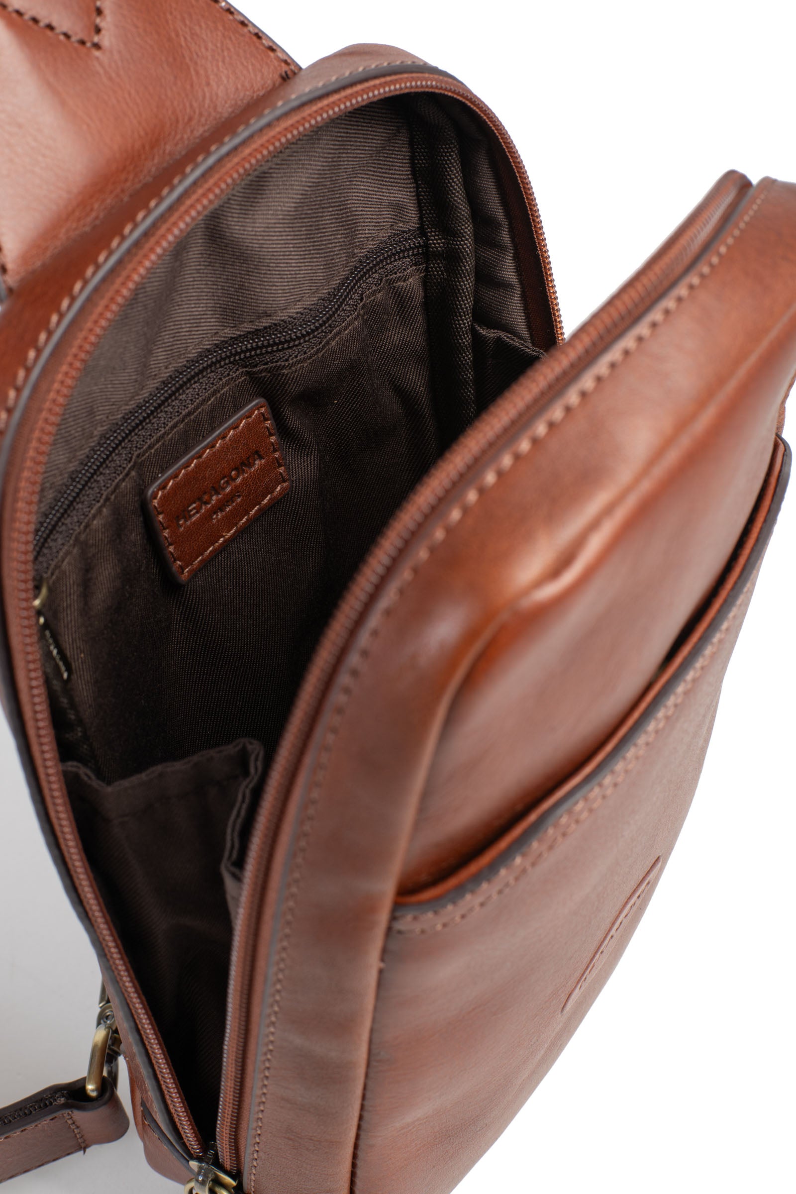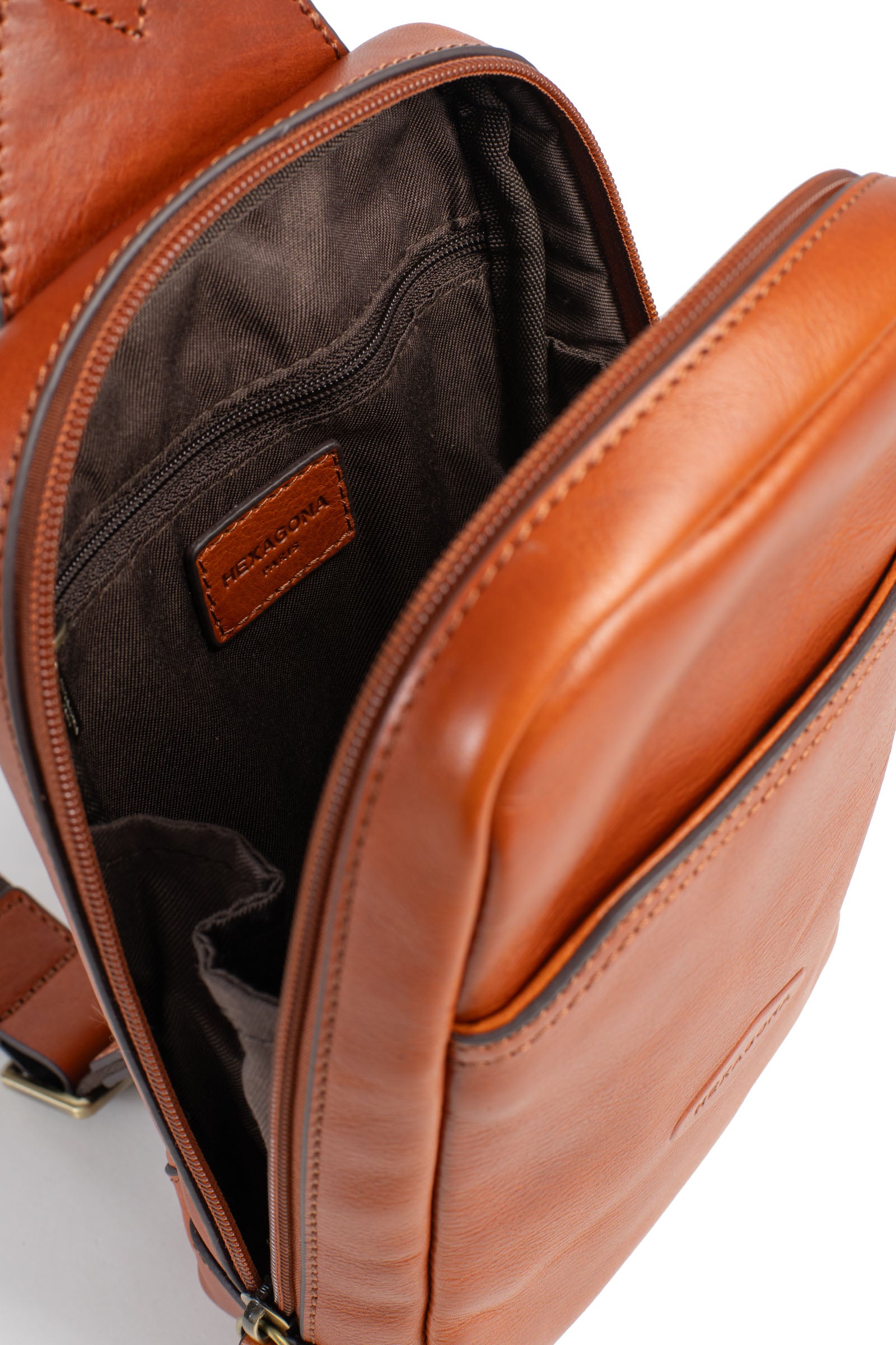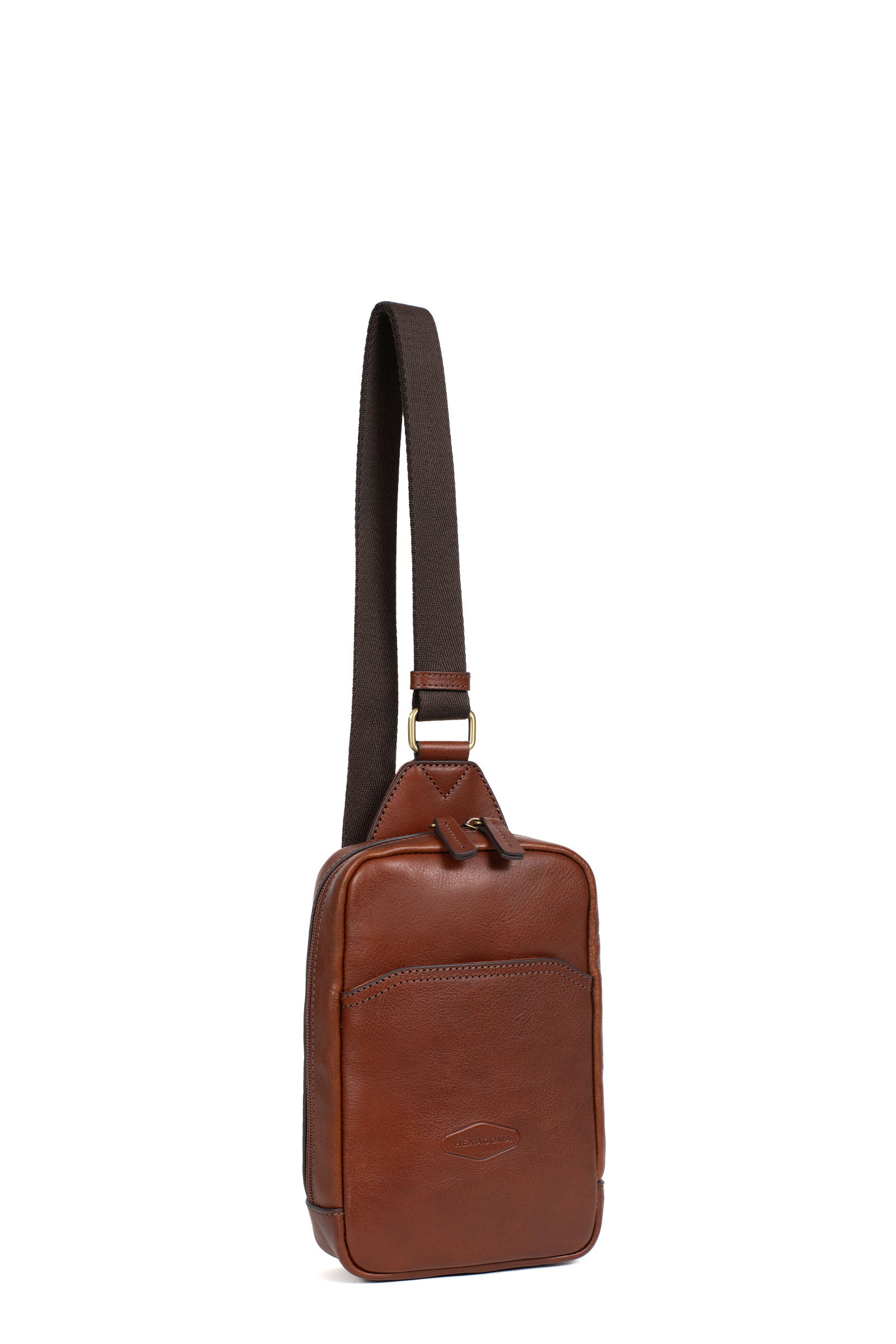Diese Umhängetasche aus Leder aus der Kollektion Stuart ist darauf ausgelegt, sich an Ihre Alltagslooks anzupassen. Ihre rechteckige Form und der verstellbare Schultergurt ermöglichen einen bequemen Tragekomfort und einen einfachen Zugang zu Ihren Essentials. Hergestellt aus hochwertigem Rindsleder, zeichnet sie sich durch ihre glatte Textur und die gebürsteten Metallverzierungen in Bronze aus, die Ihrem Outfit einen Hauch von Raffinesse verleihen.