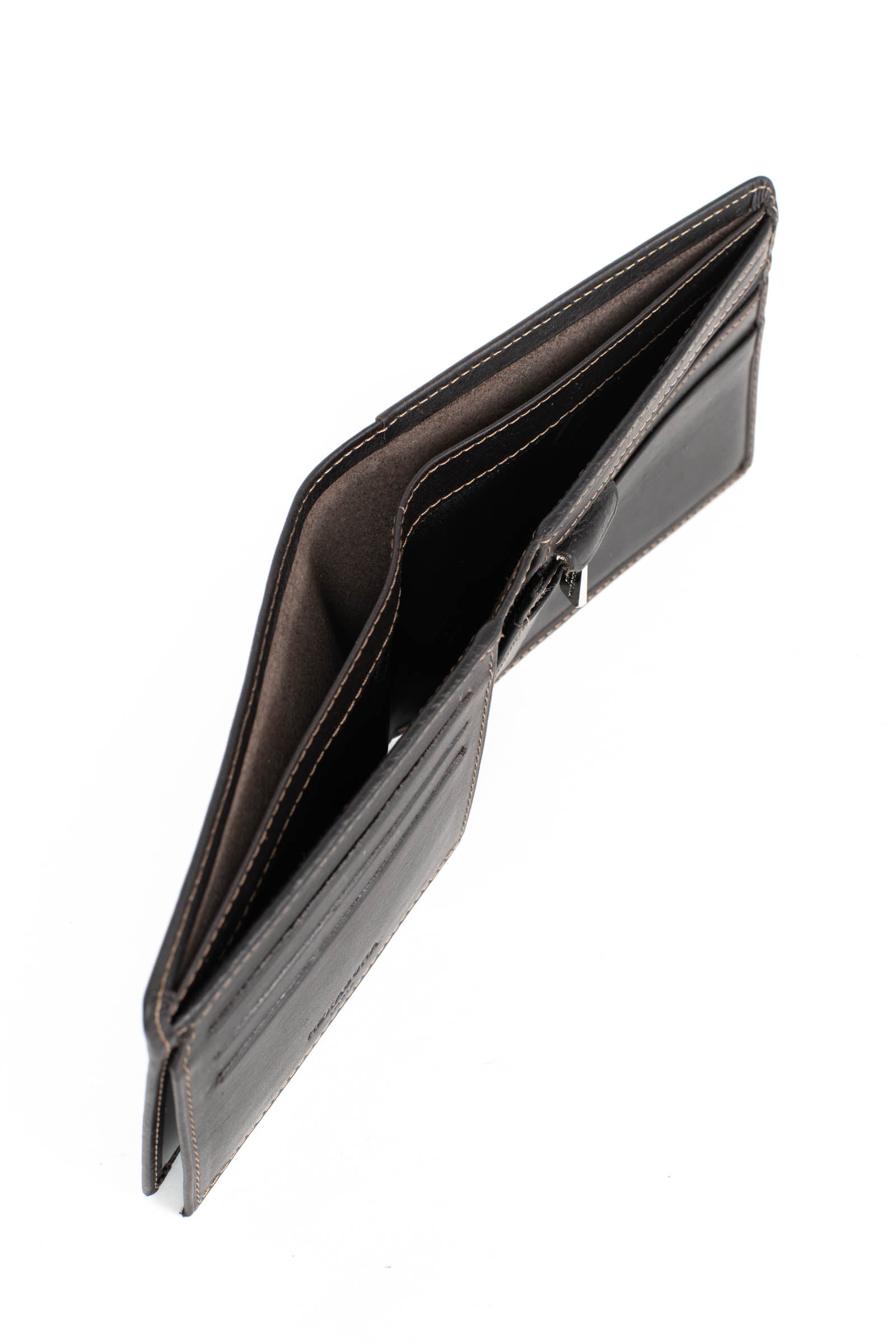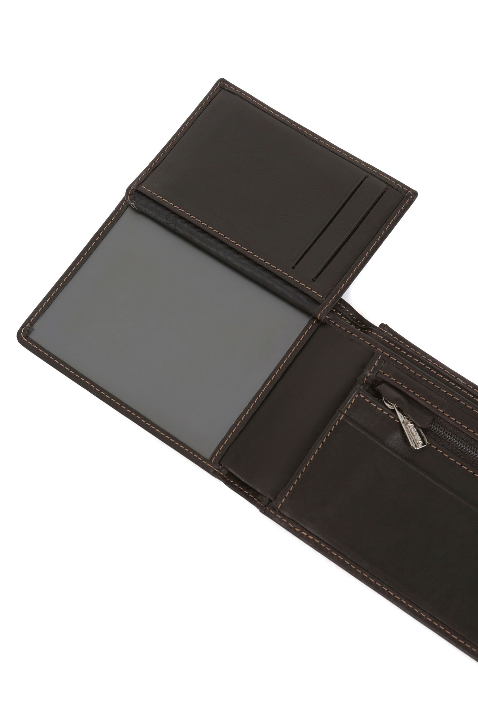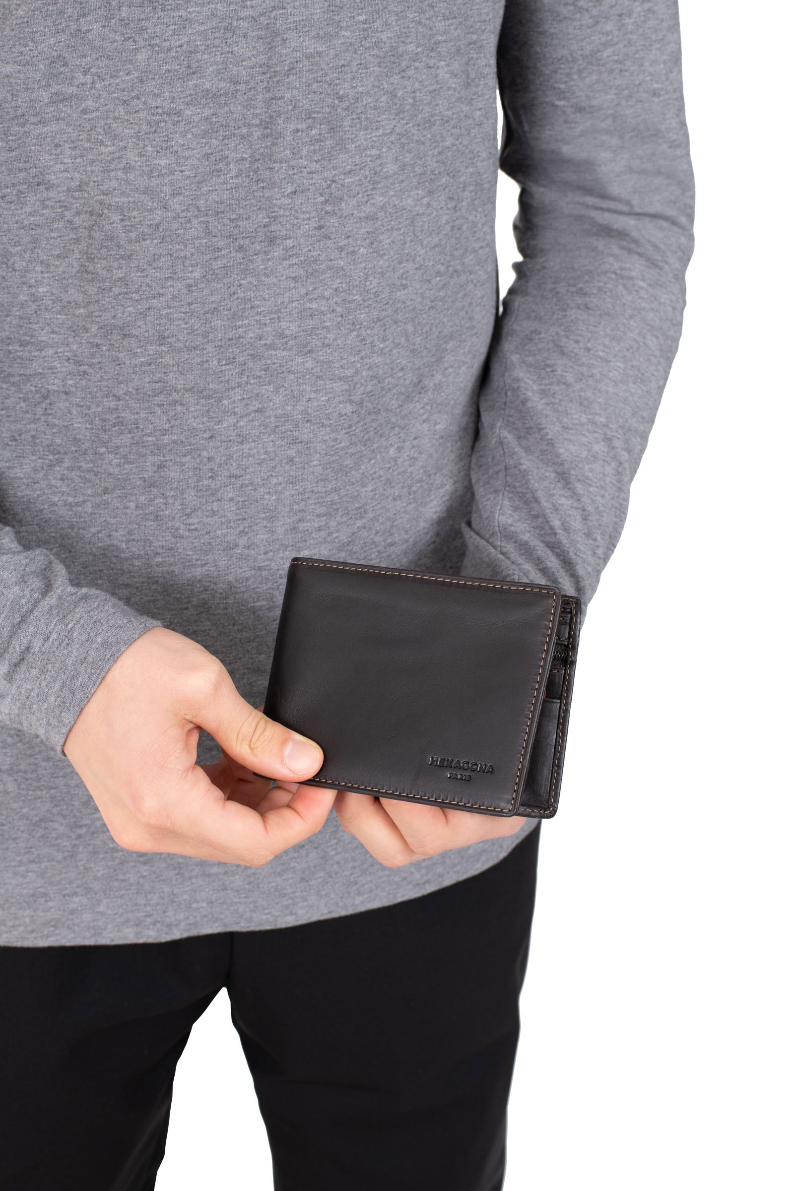 Dieses Portemonnaie zeichnet sich durch seine Schlankheit und Eleganz aus, ideal um jedes Ihrer Outfits zu vervollständigen. Die Herstellung aus Rindsleder verleiht ihm eine einzigartige Textur und einen zeitlosen Stil. Erhältlich in dunkelbraun und schwarz, passt es sich leicht verschiedenen Stilen an.