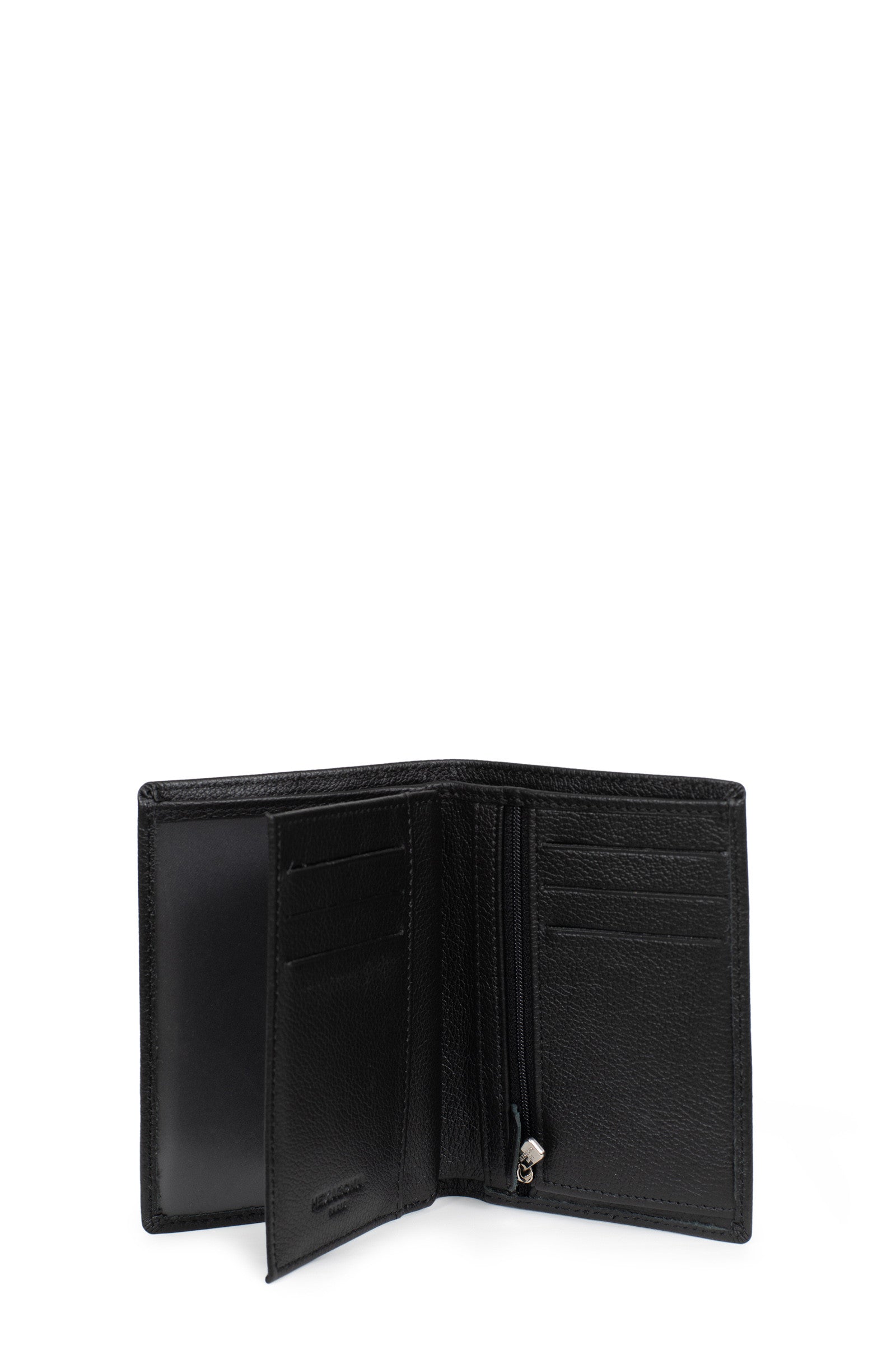 - Innen: 2 Fächer. 1 Reißverschluss-Geldbörse. 5 flache Taschen (darunter 2 mit transparentem Sichtfenster). 6 Kartenfächer. 1 Geldscheintasche. 1 abnehmbarer Kunststoffetui.