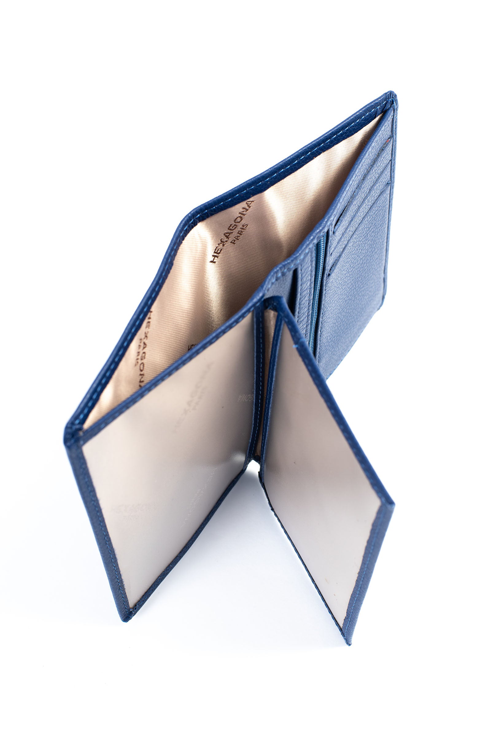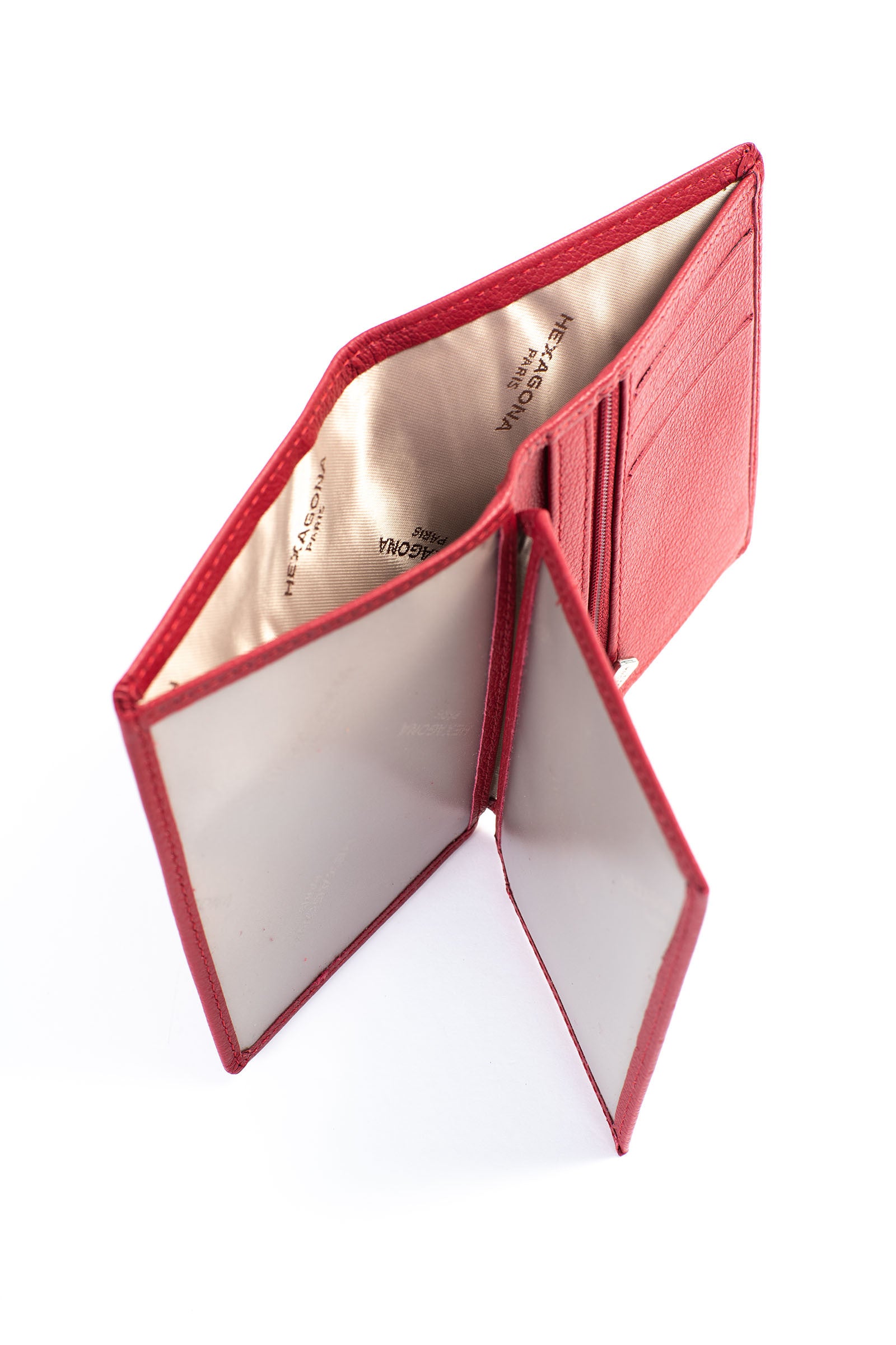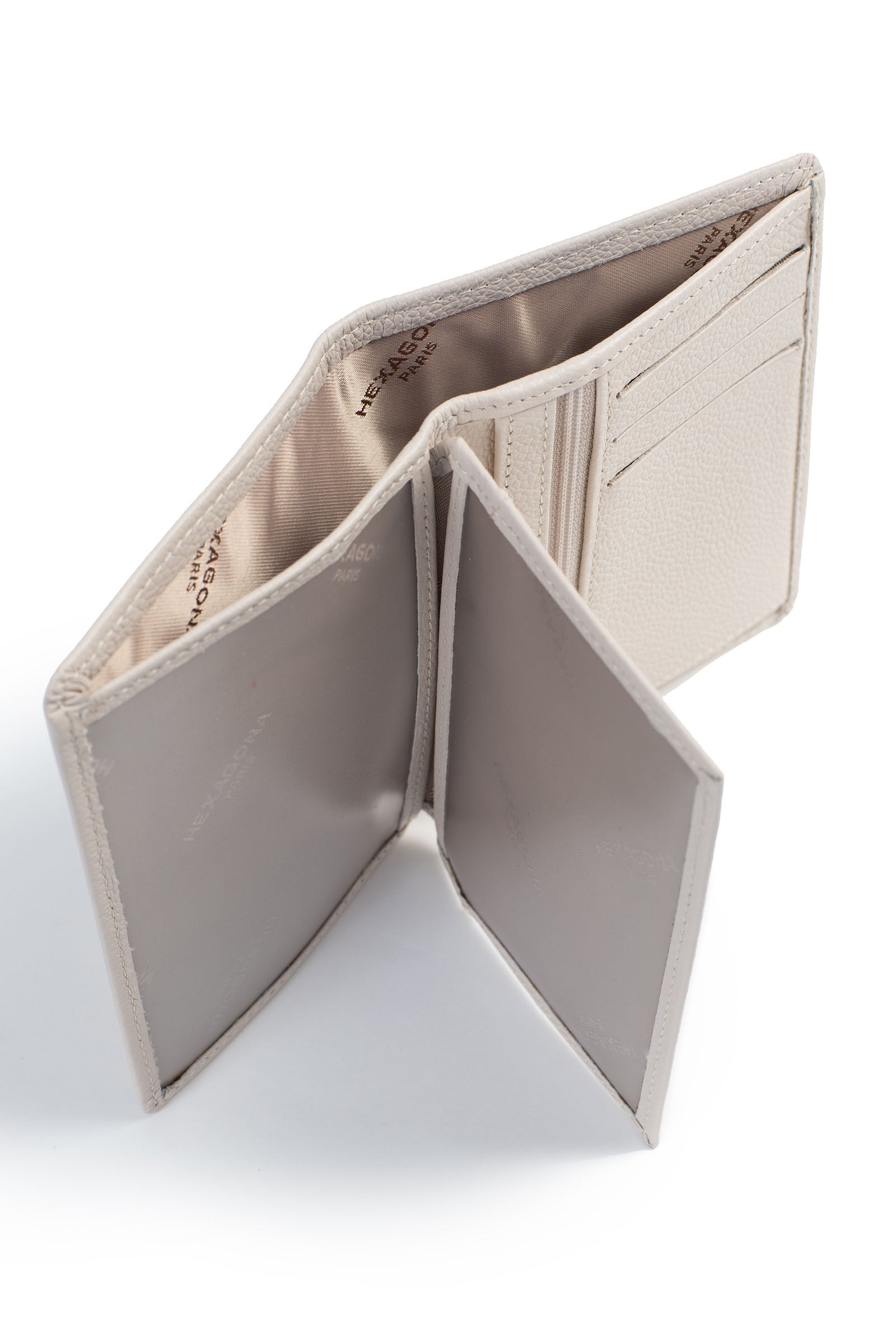 Innen: 2 Fächer. 1 Reißverschluss-Geldbörse. 5 flache Taschen (davon 2 mit durchsichtigem Sichtfenster). 6 Kartenfächer. 1 Geldscheintasche. 1 abnehmbares Kunststoffetui.