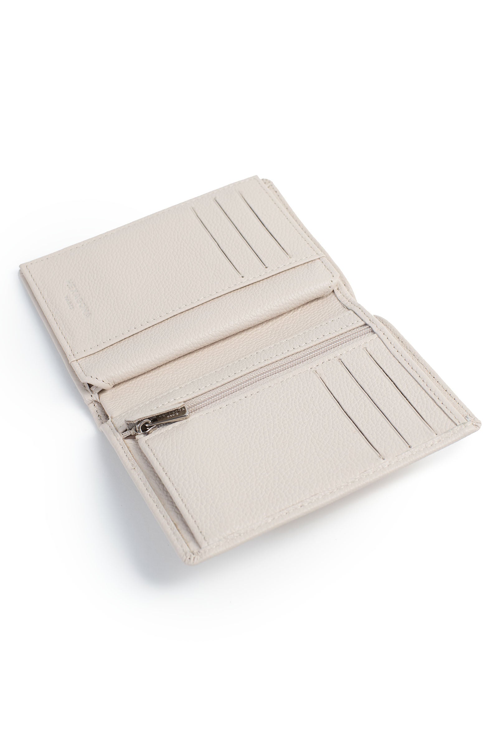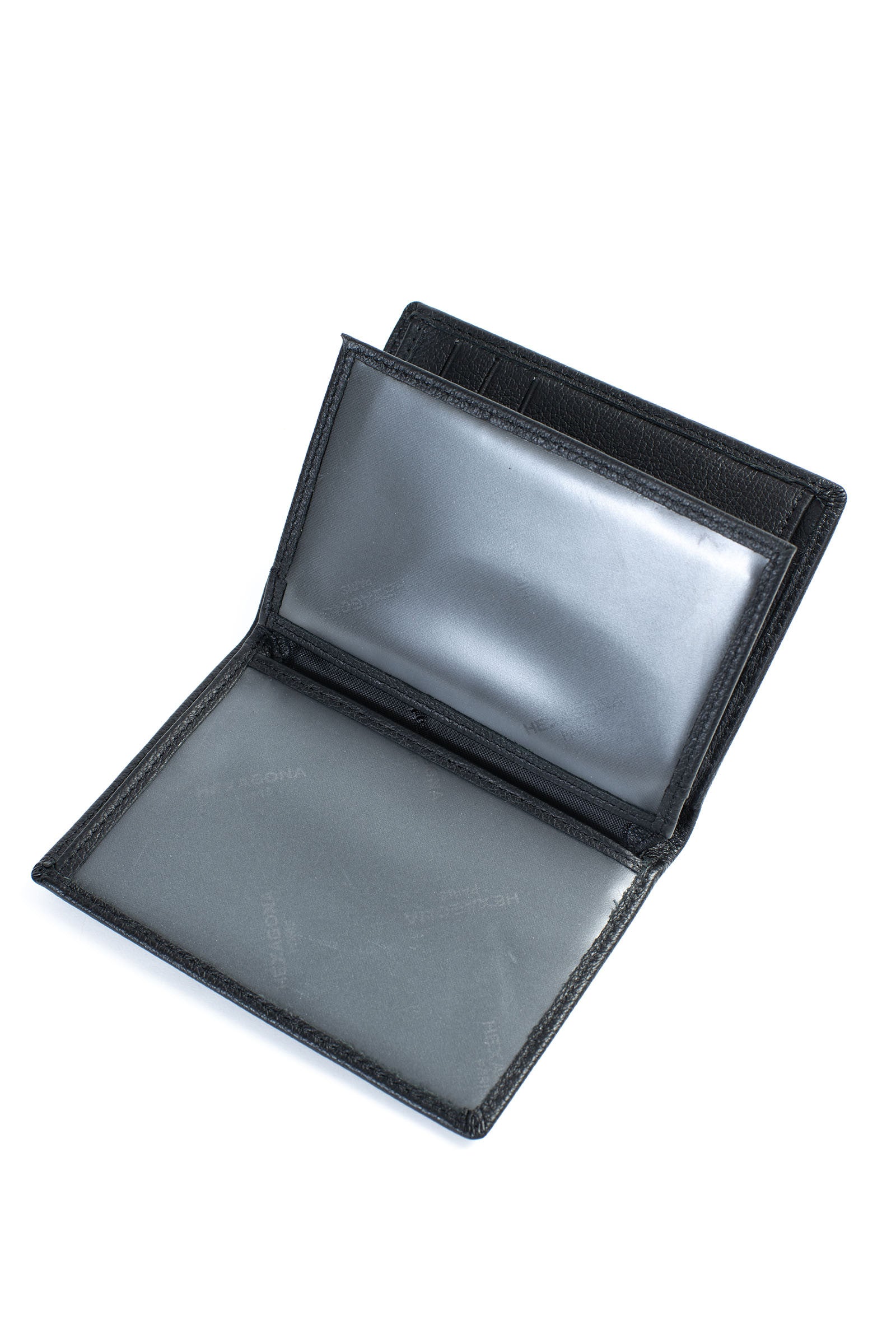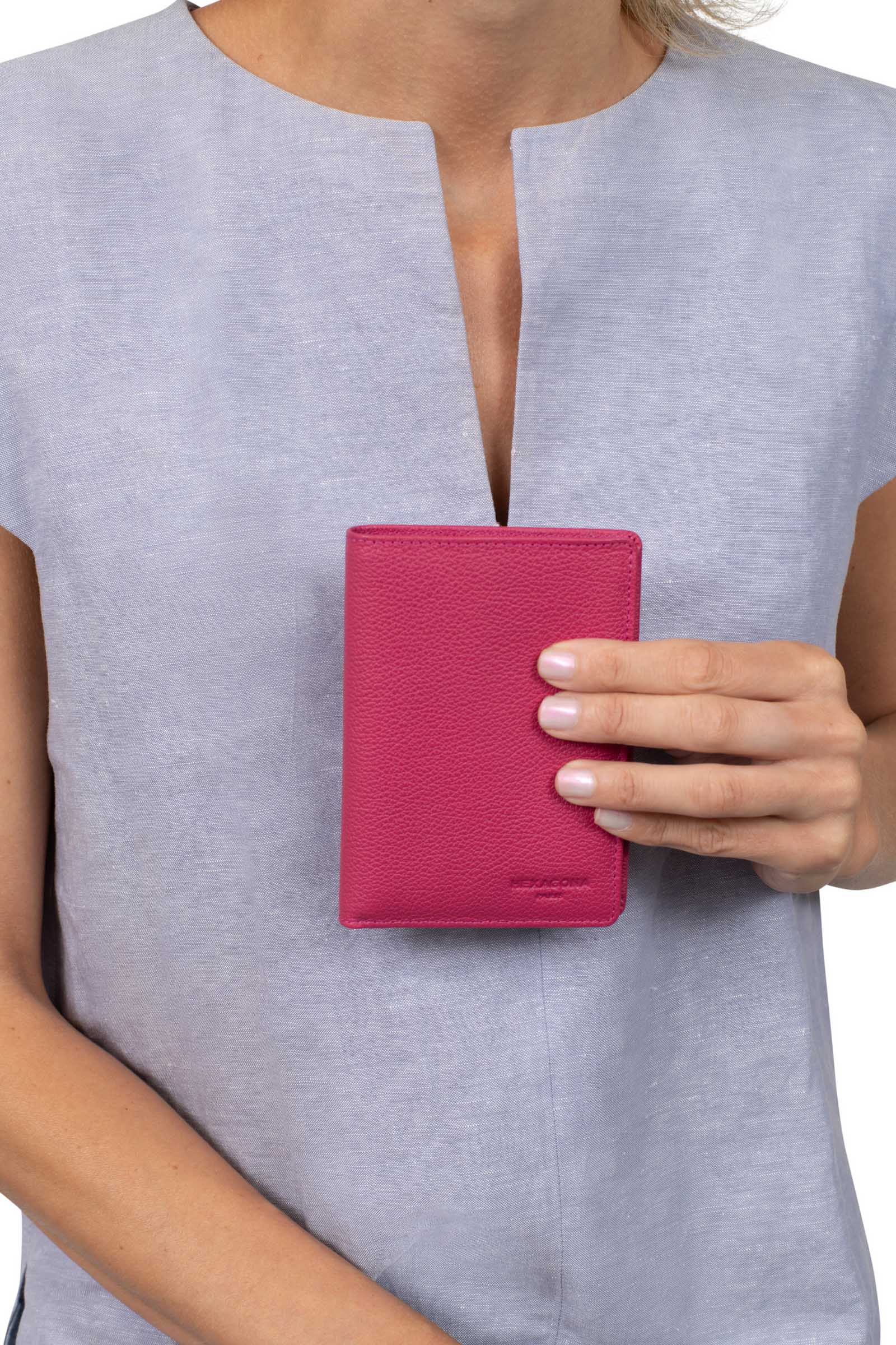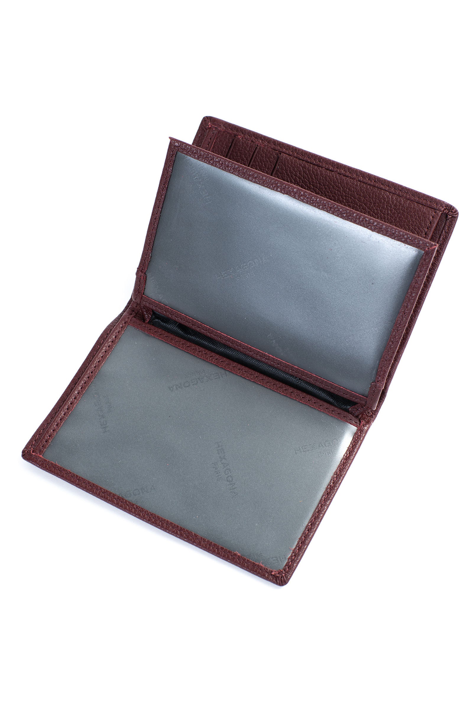 Innen: 2 Fächer. 1 Reißverschluss-Geldbörse. 5 flache Taschen (davon 2 mit durchsichtigem Sichtfenster). 6 Kartenfächer. 1 Geldscheintasche. 1 abnehmbares Kunststoffetui.
