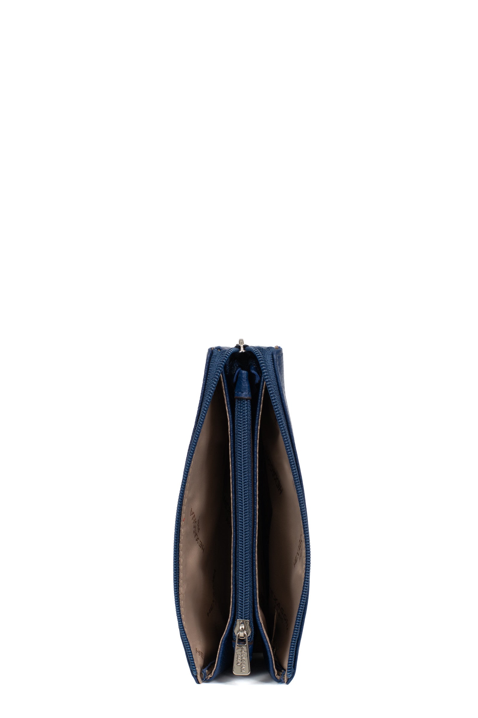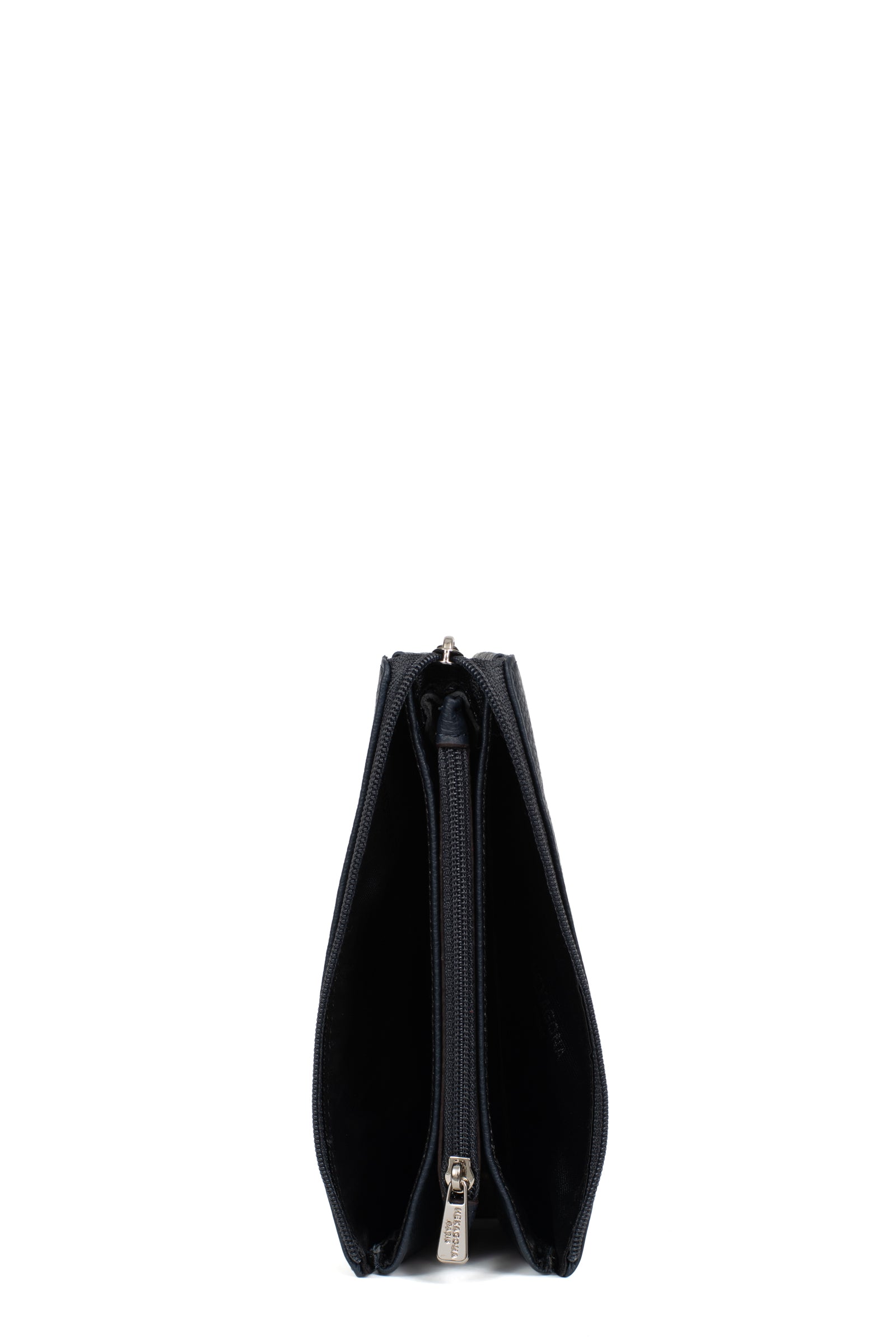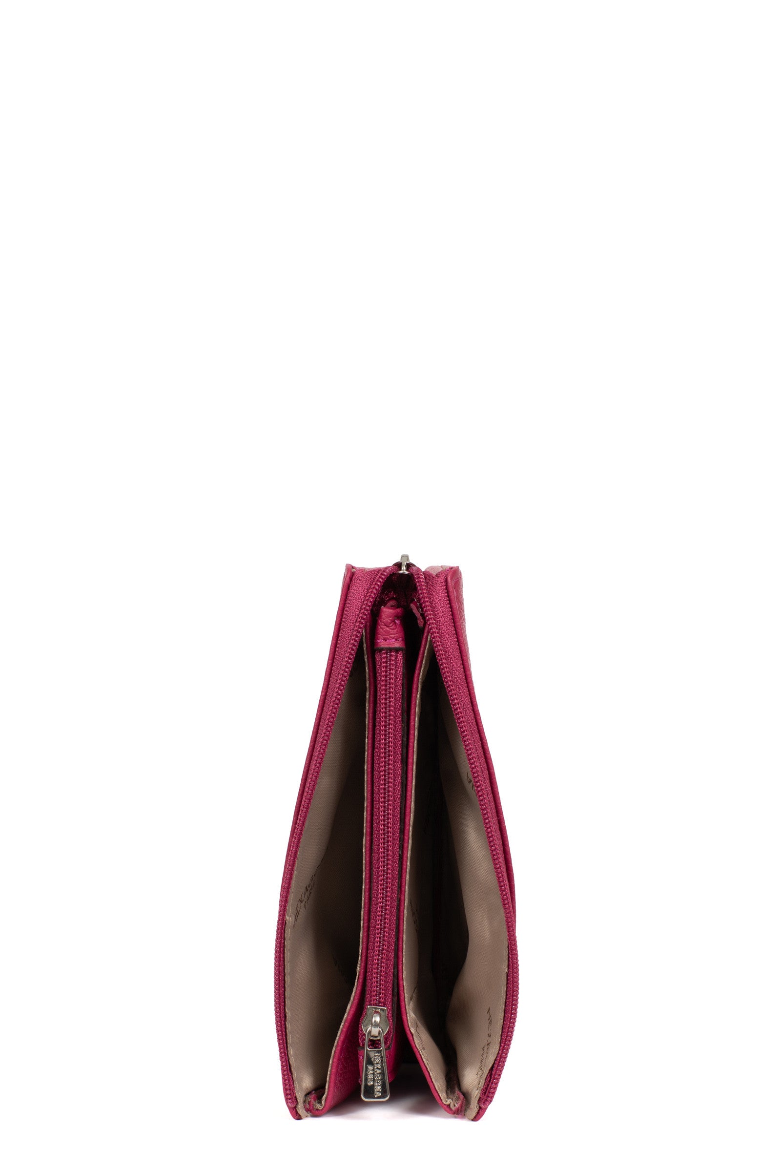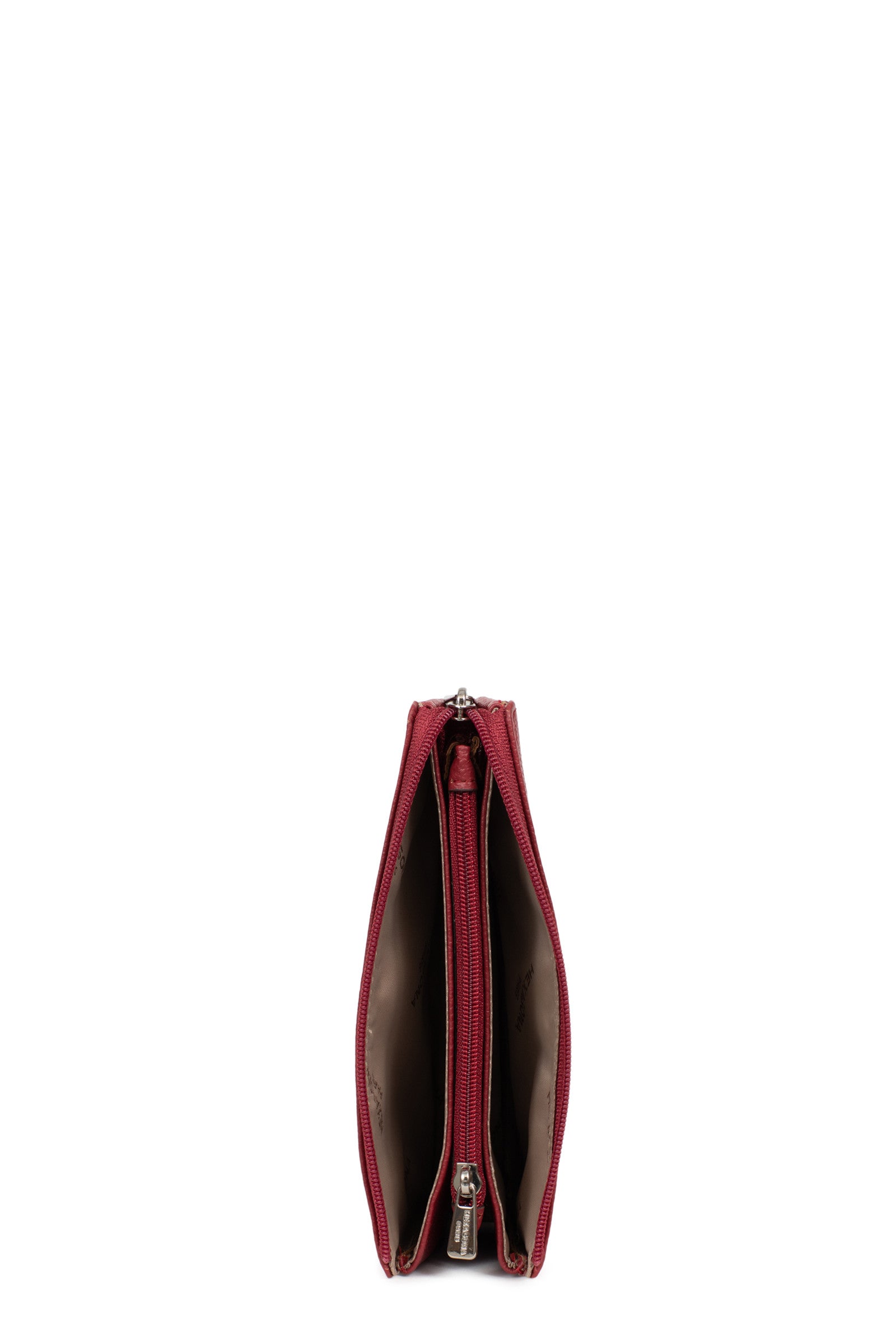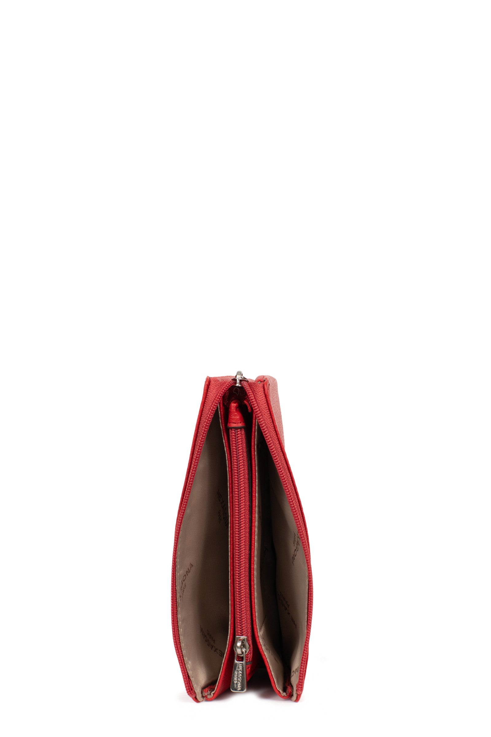 - Innen: 2 Hauptfächer. 1 Reißverschluss-Geldbörse.