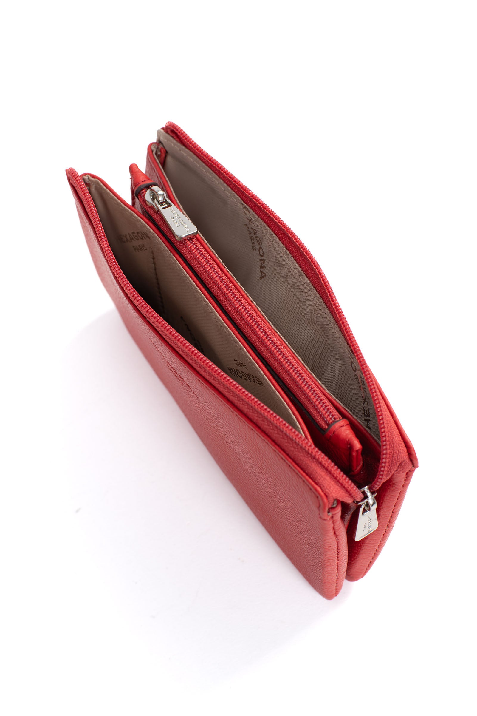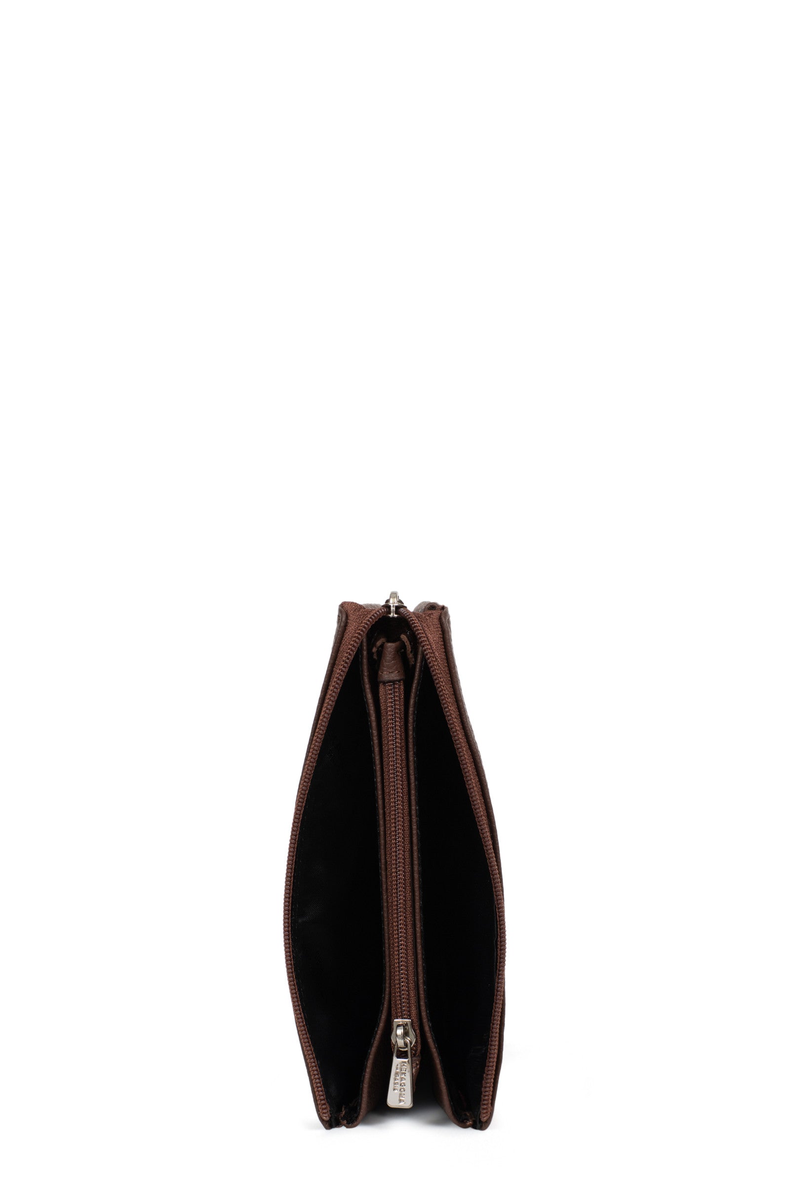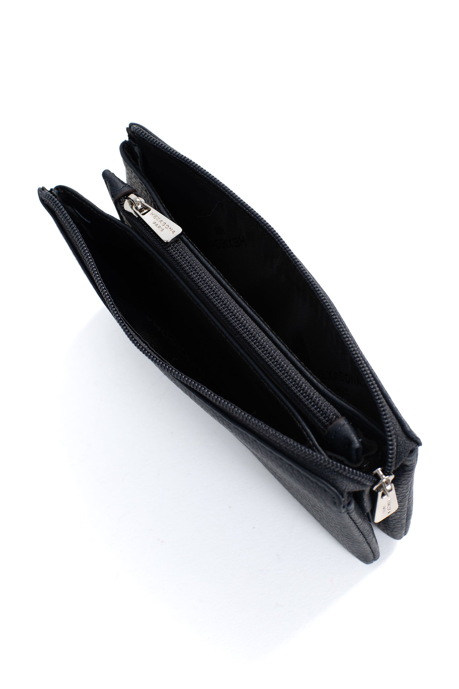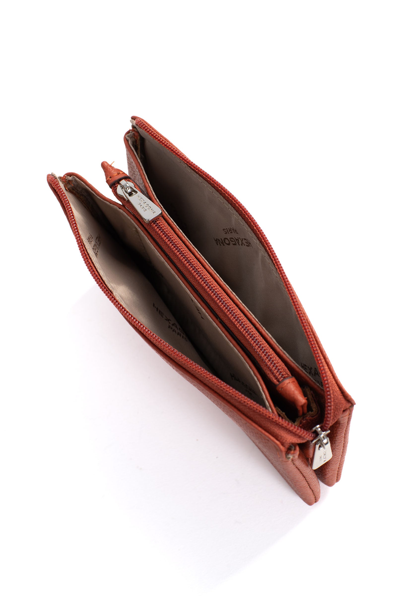 - Innen: 2 Hauptfächer. 1 Reißverschluss-Geldbörse.