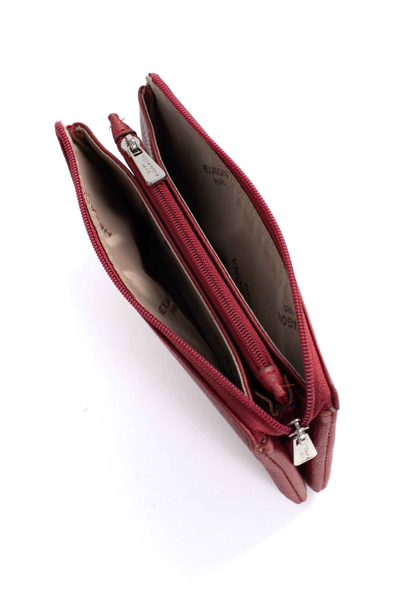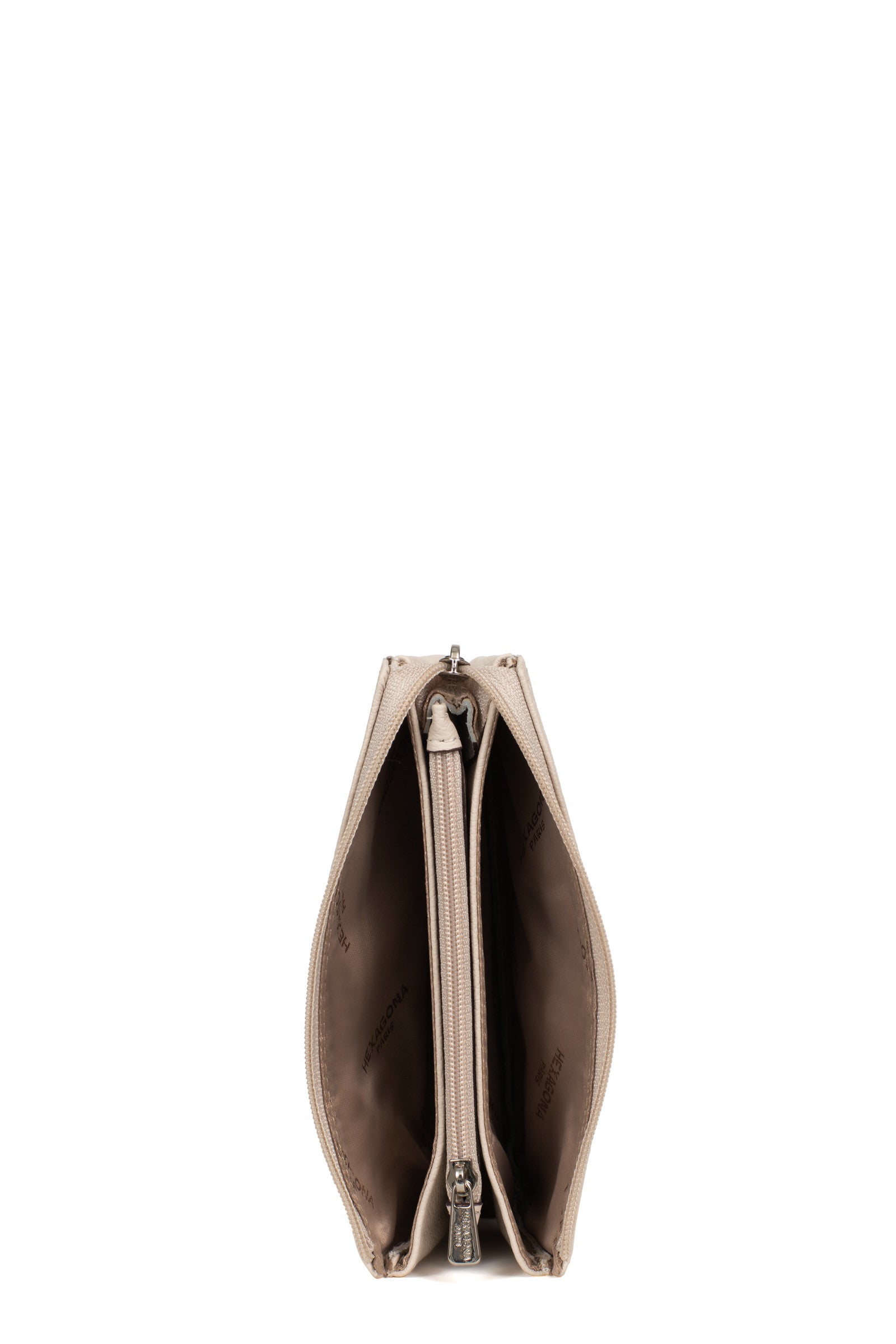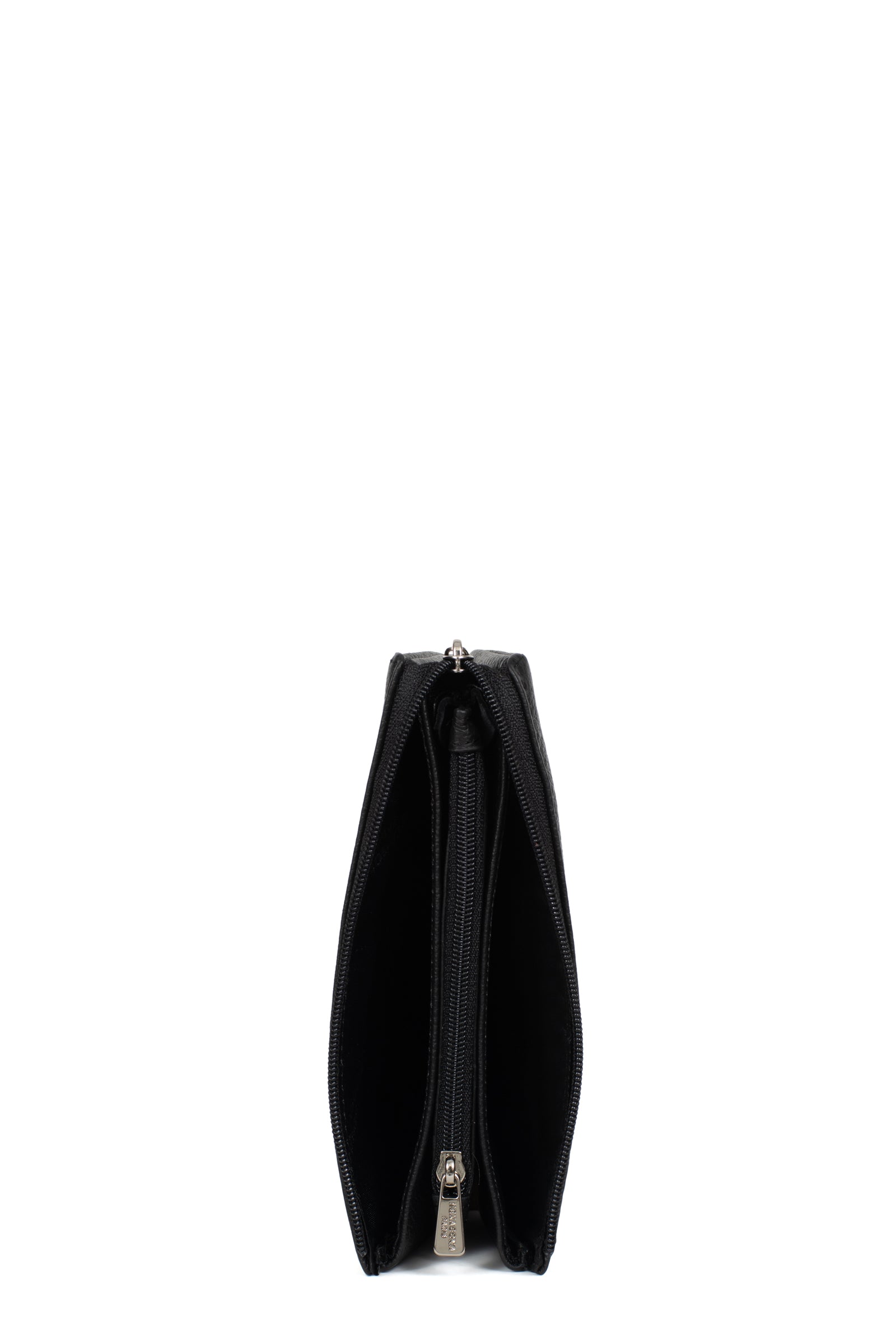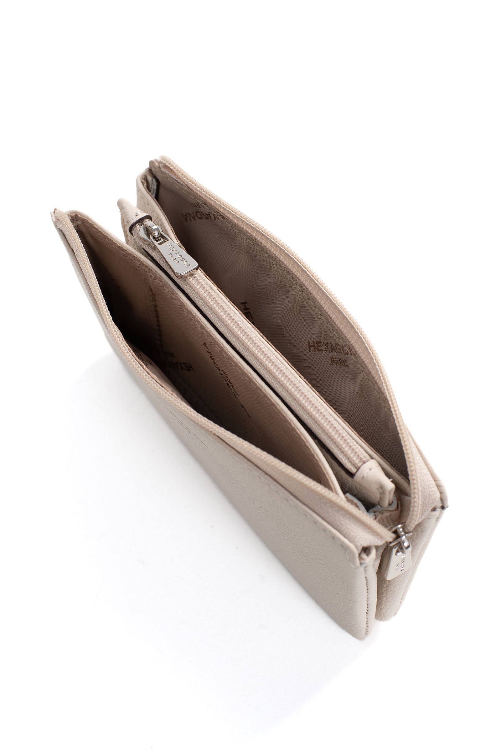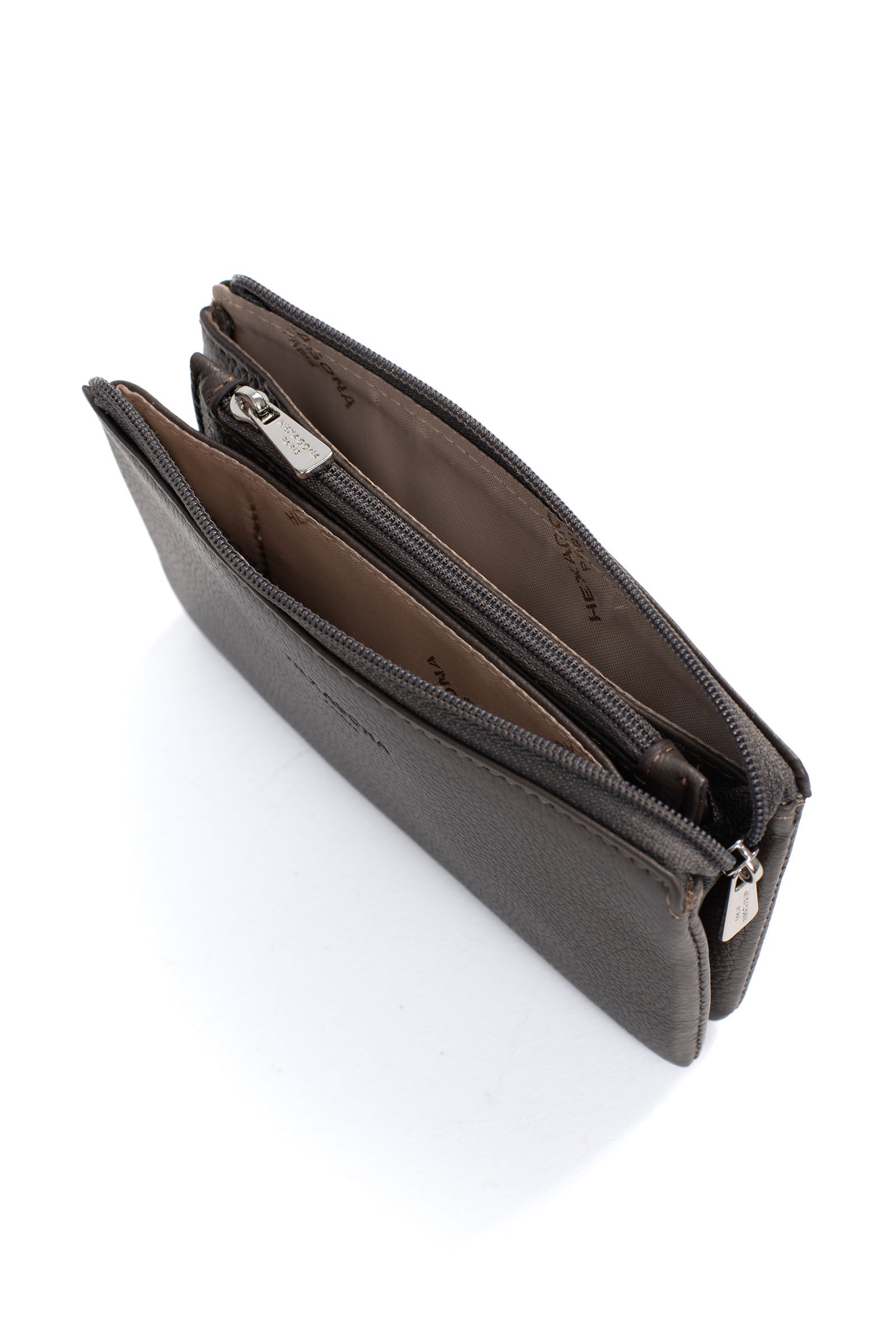 - Innen: 2 Hauptfächer. 1 Reißverschluss-Geldbörse.