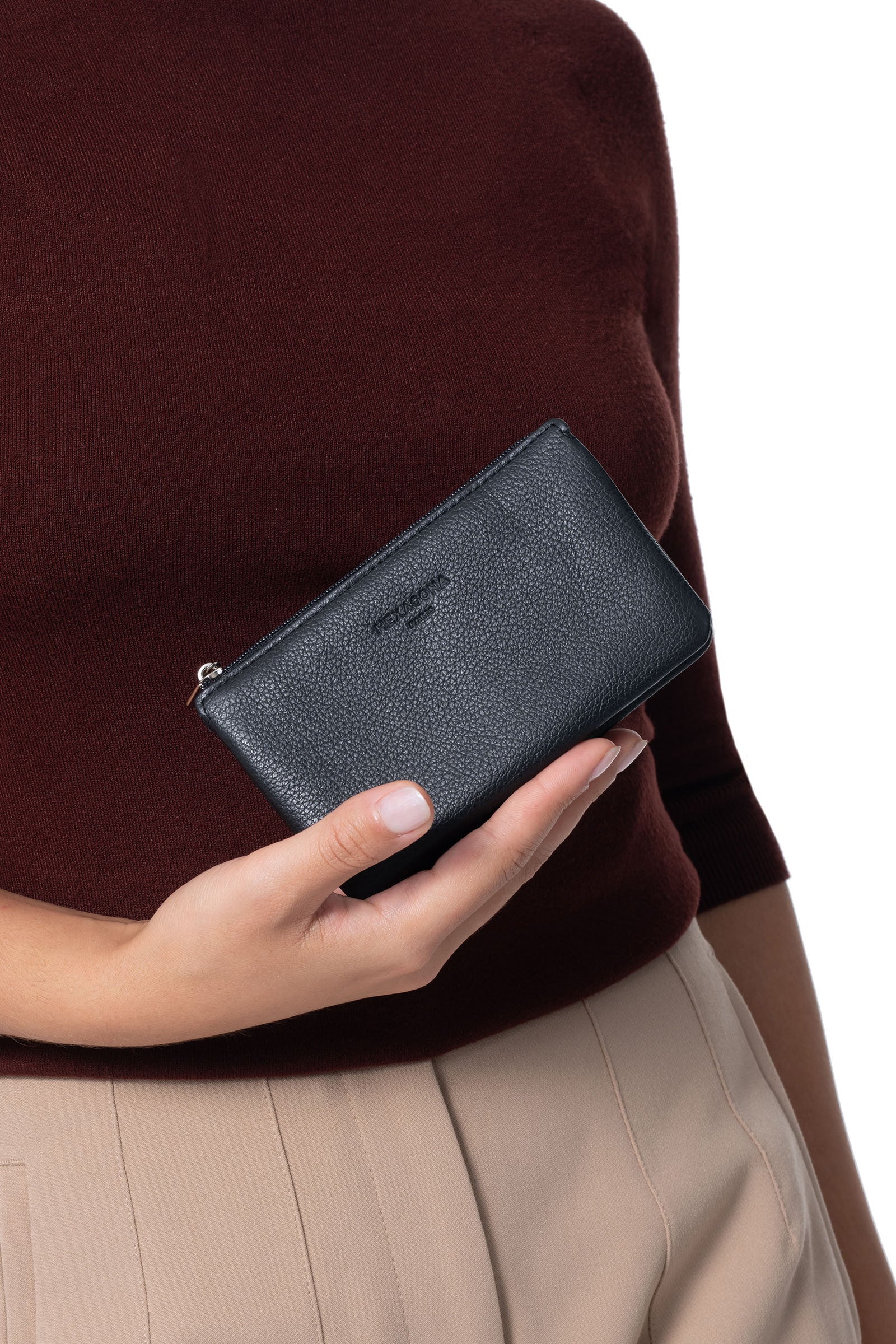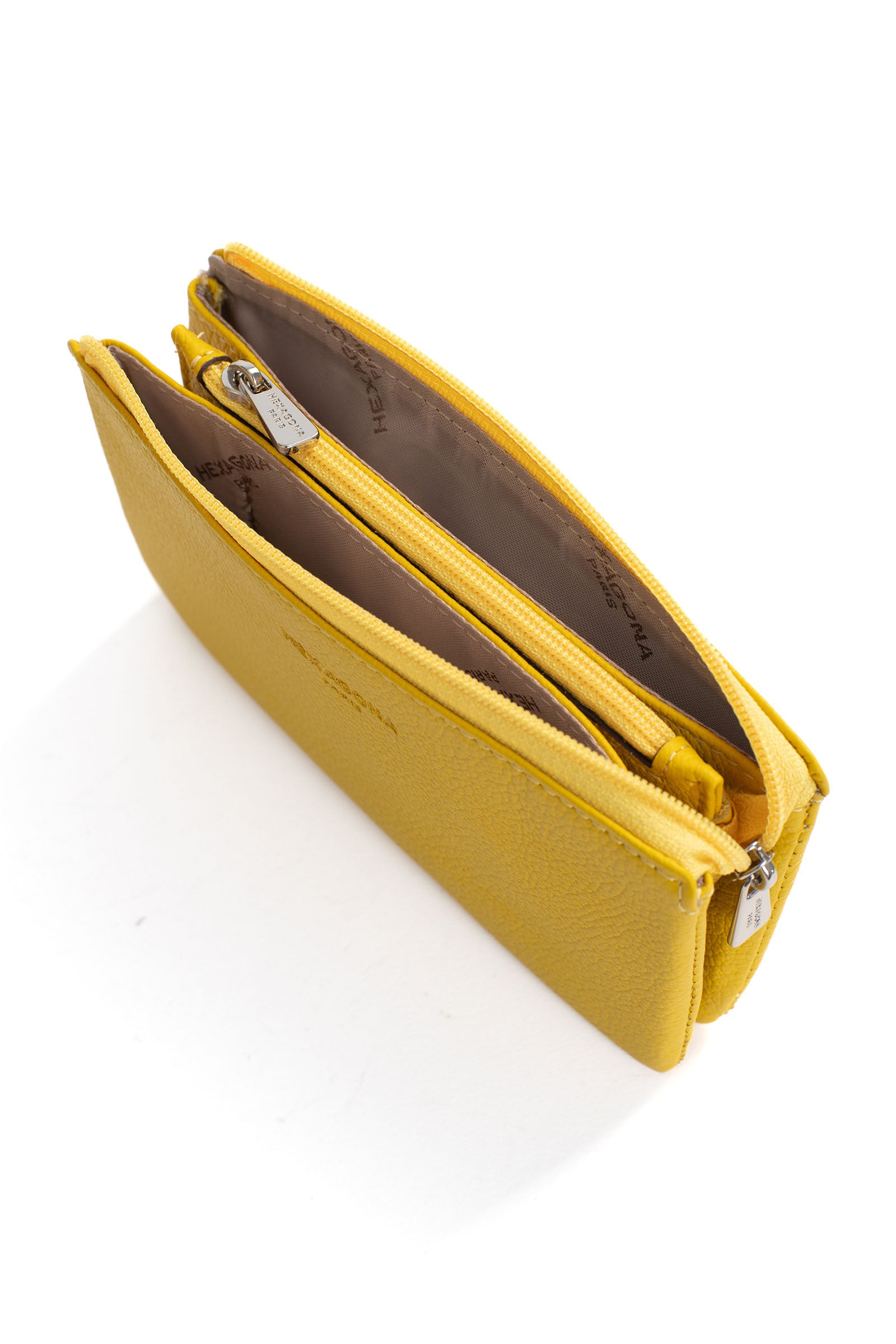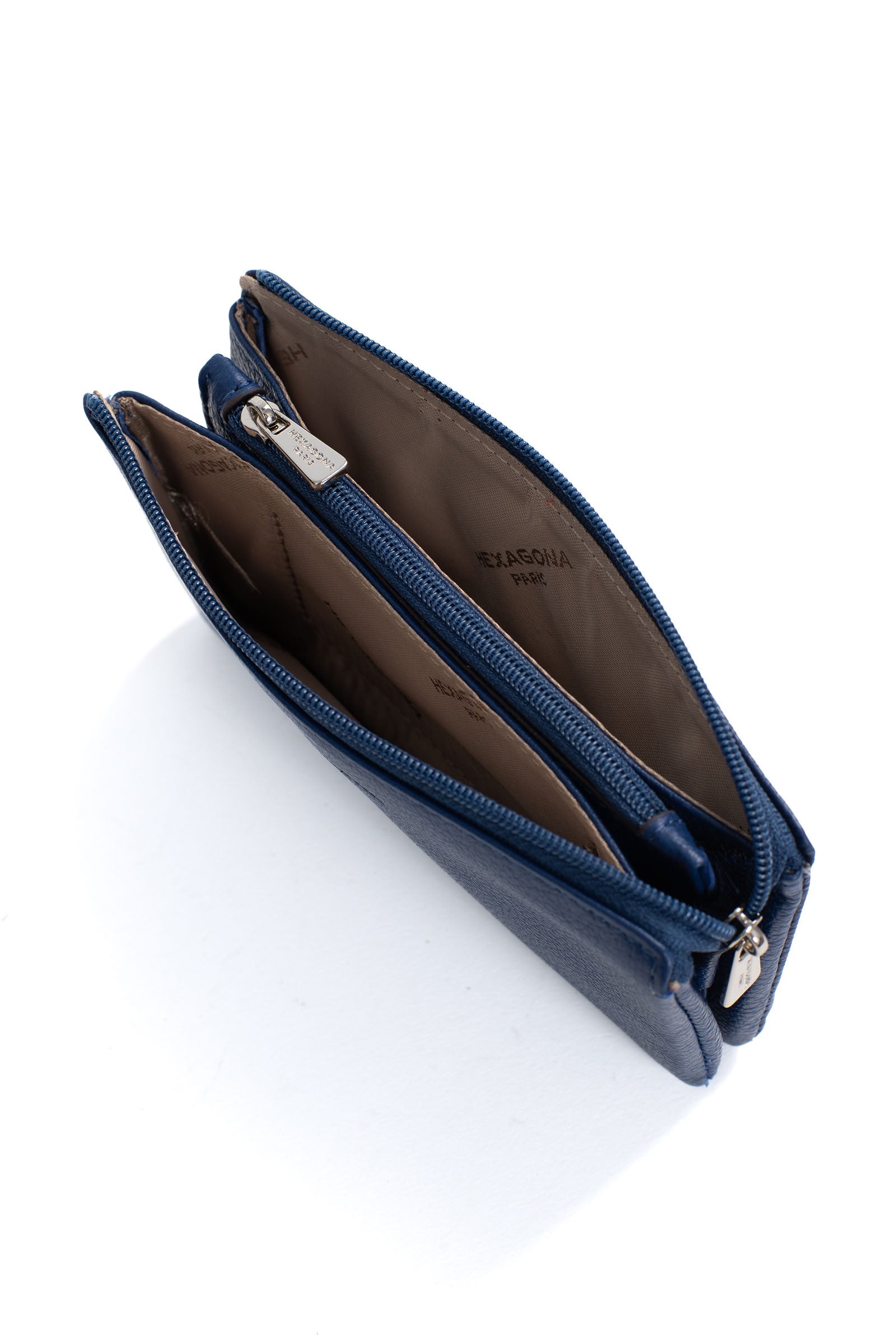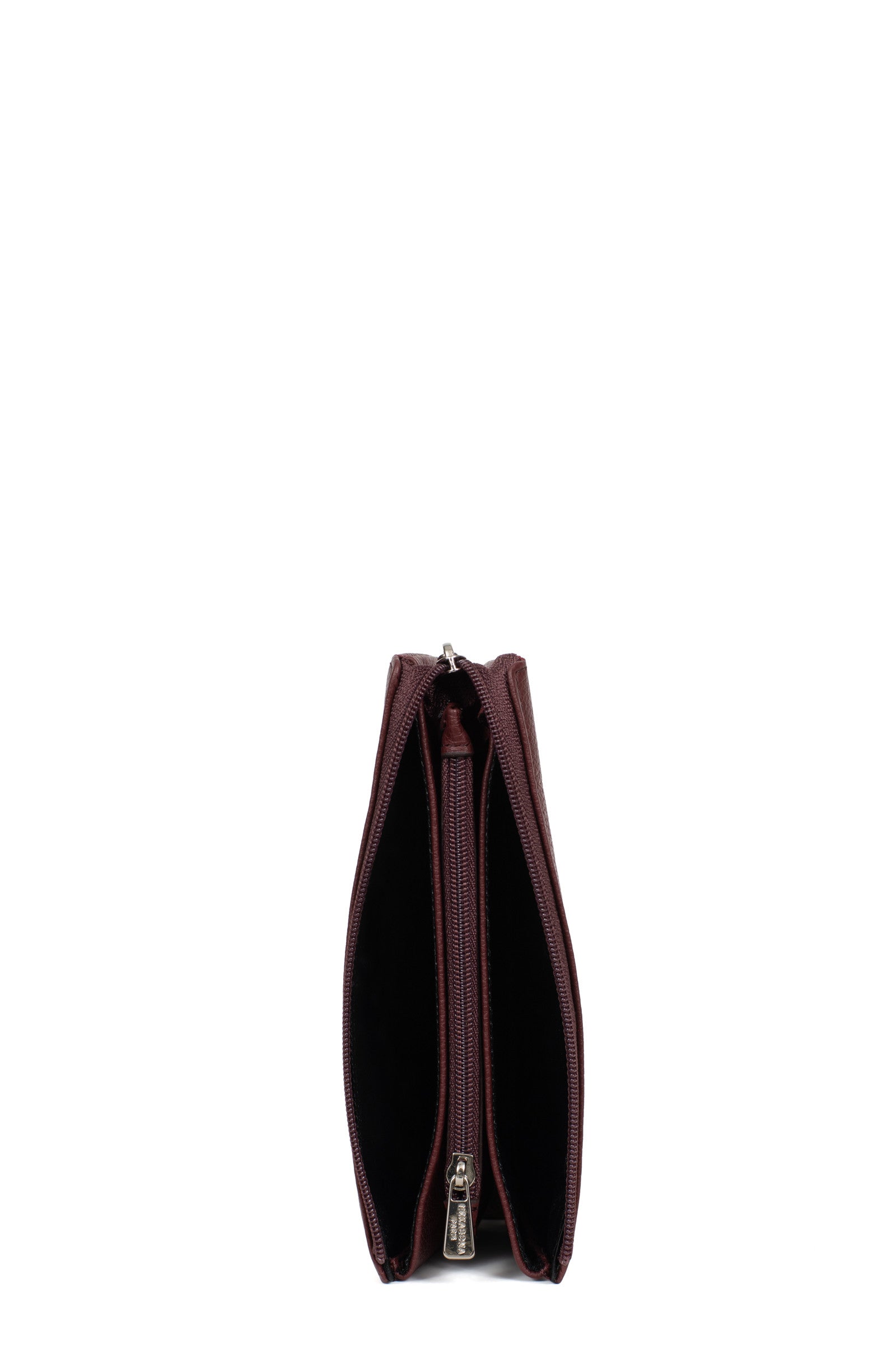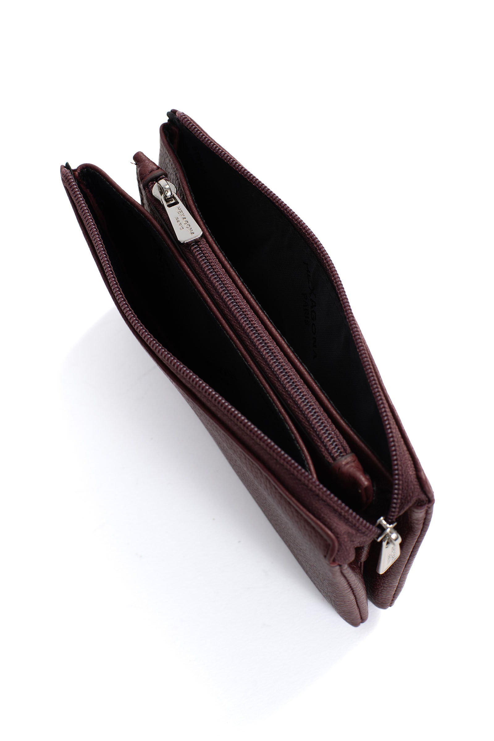 - Innen: 2 Hauptfächer. 1 Reißverschluss-Geldbörse.