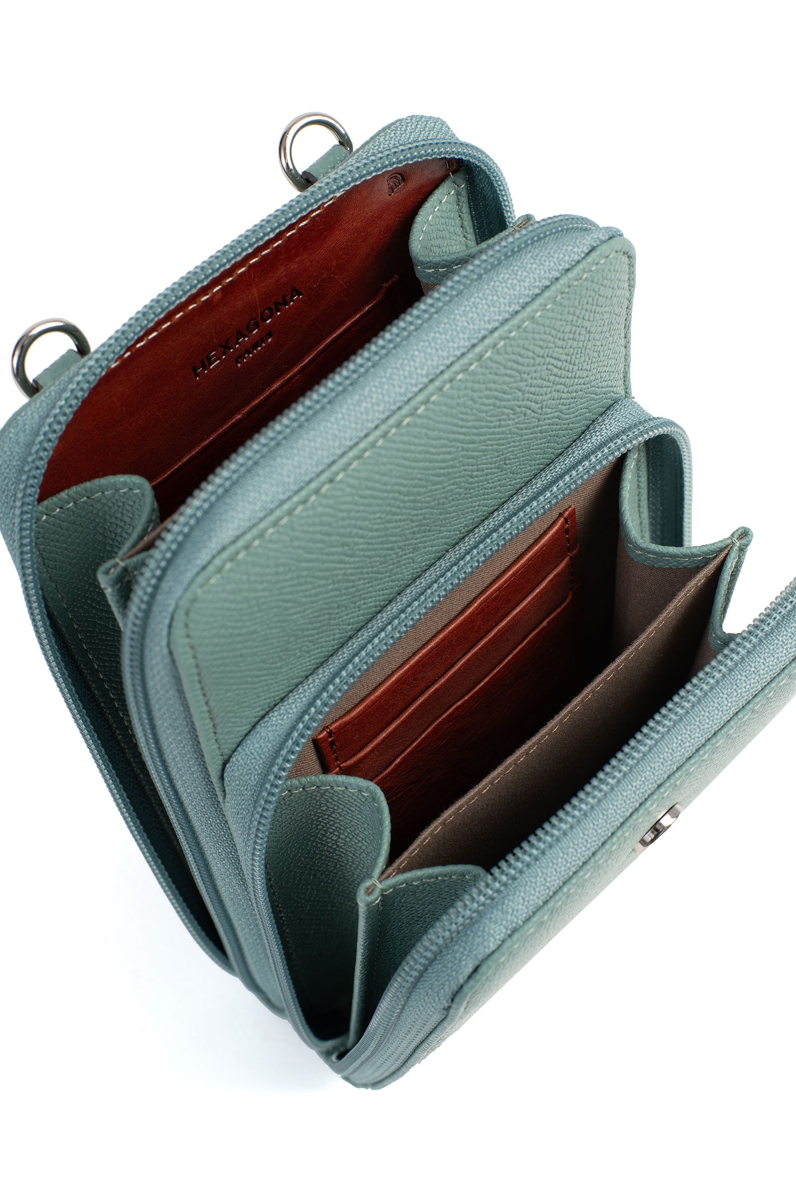 Die Telefonhülle mit Kartenhalter aus der Kollektion Ava verkörpert Eleganz und Praktikabilität. Mit ihren originellen Formen und dem farbigen Mikrofaser-Material wurde sie entwickelt, um Ihre kleinen Gegenstände sicher und stilvoll zu transportieren. Ihr rechteckiges und modernes Design, kombiniert mit strukturiertem Kunstleder, bietet ein Gefühl von Luxus, während es langlebig und pflegeleicht ist.