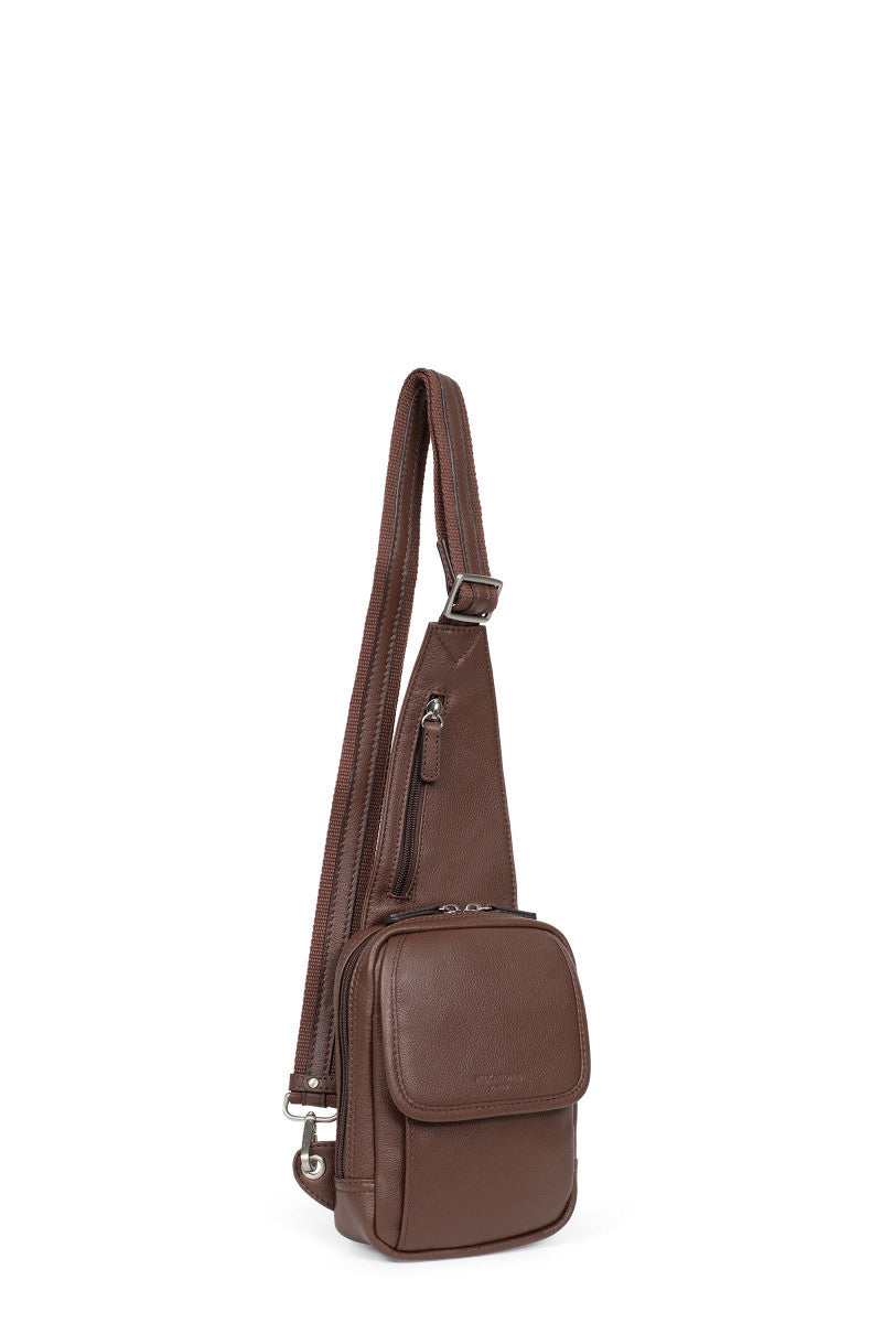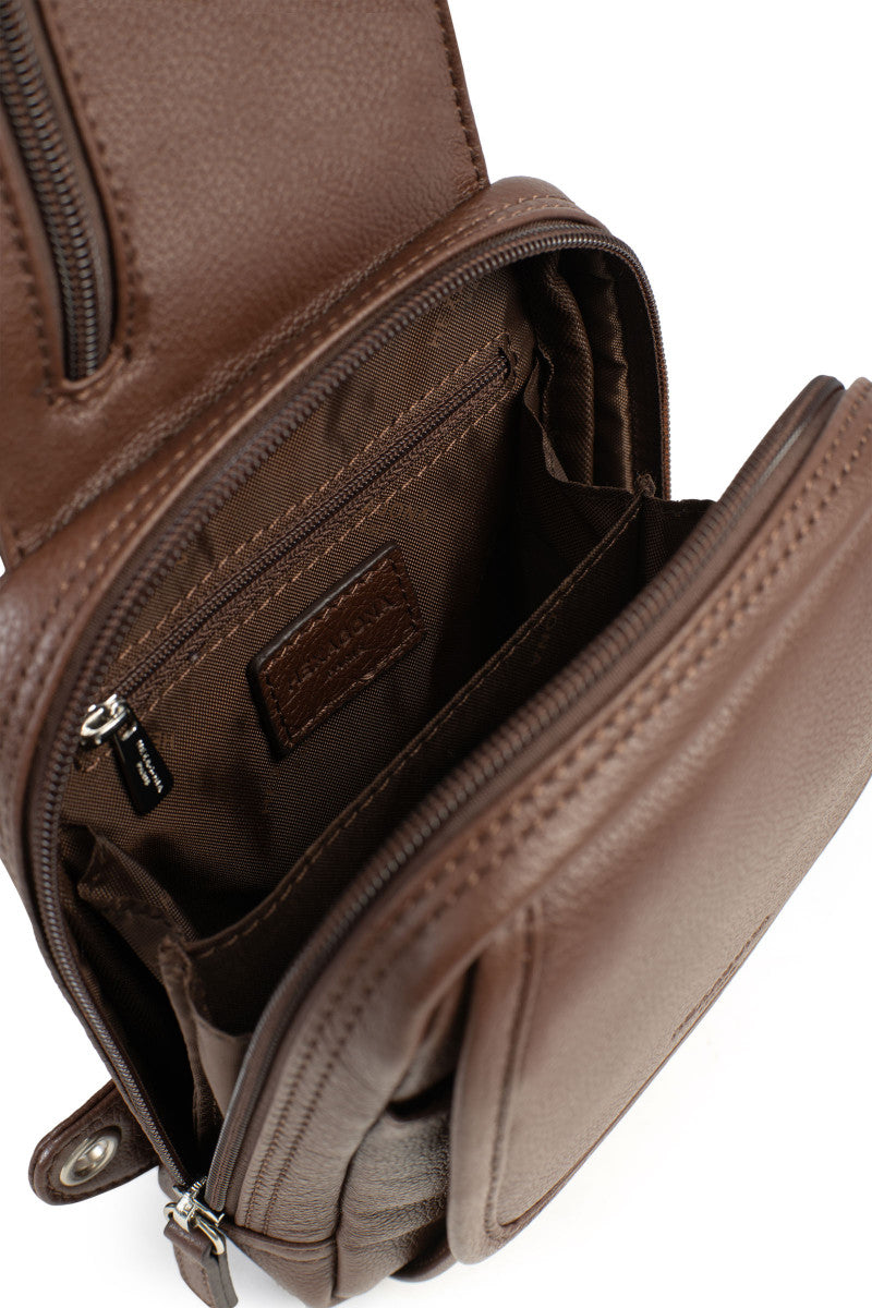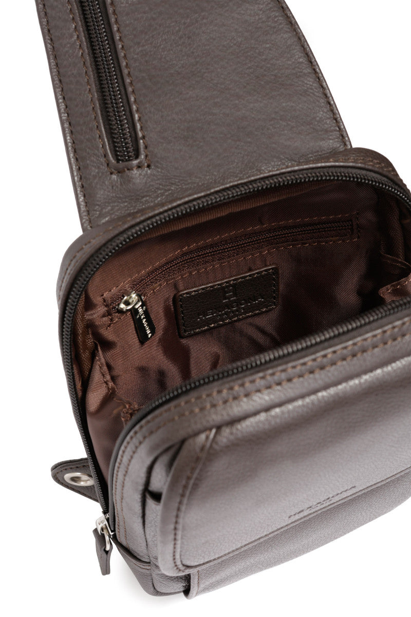Diese einseitige Tasche aus Rindsleder mit genarbter Oberfläche ist die perfekte Verbindung von Eleganz und Praktikabilität. Die Edles ihres Materials und die tonalen Steppnähte machen die Linie Confort zu einer zeitlosen Wahl, die Textur und Wärme in jedes Ihrer Outfits bringt.