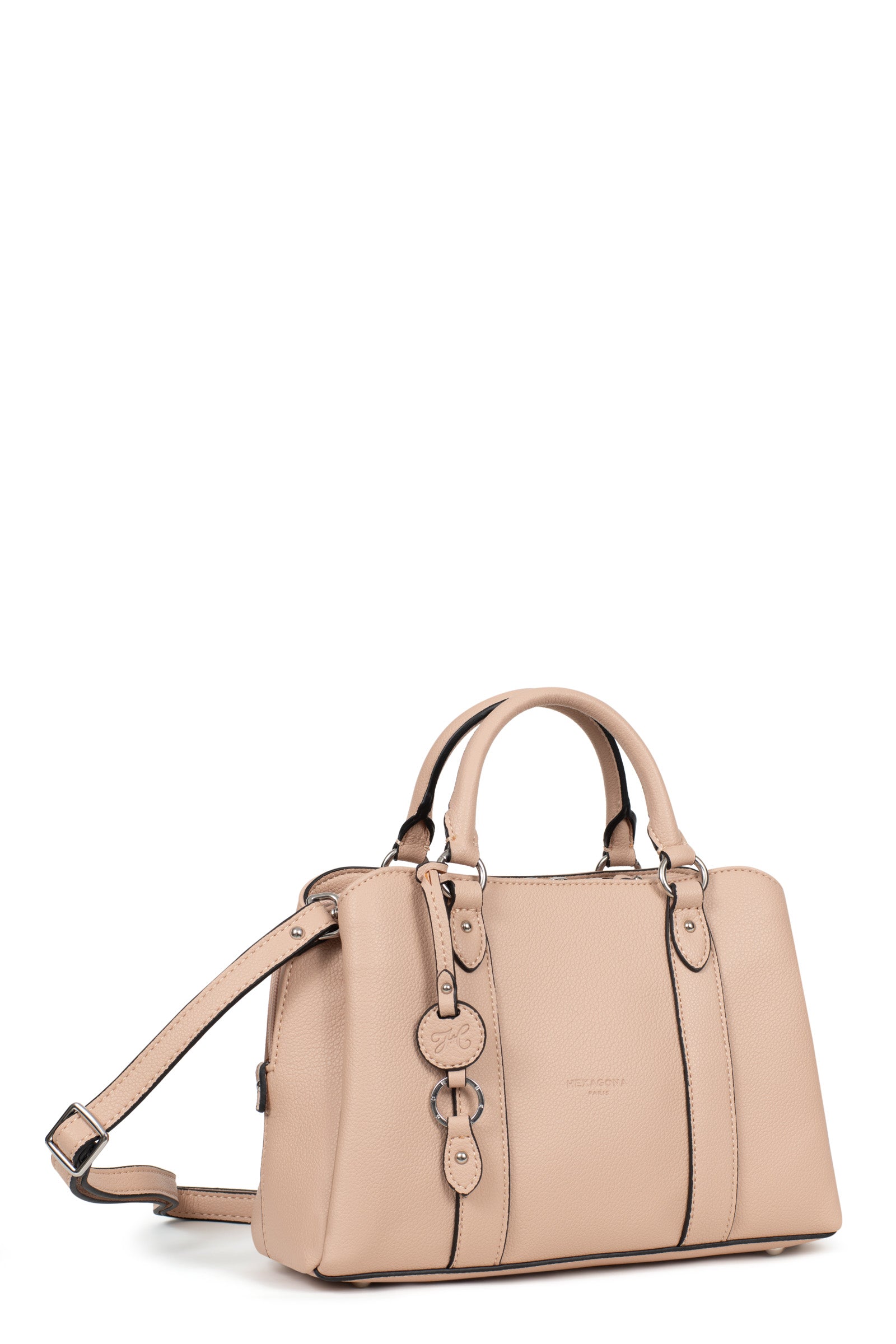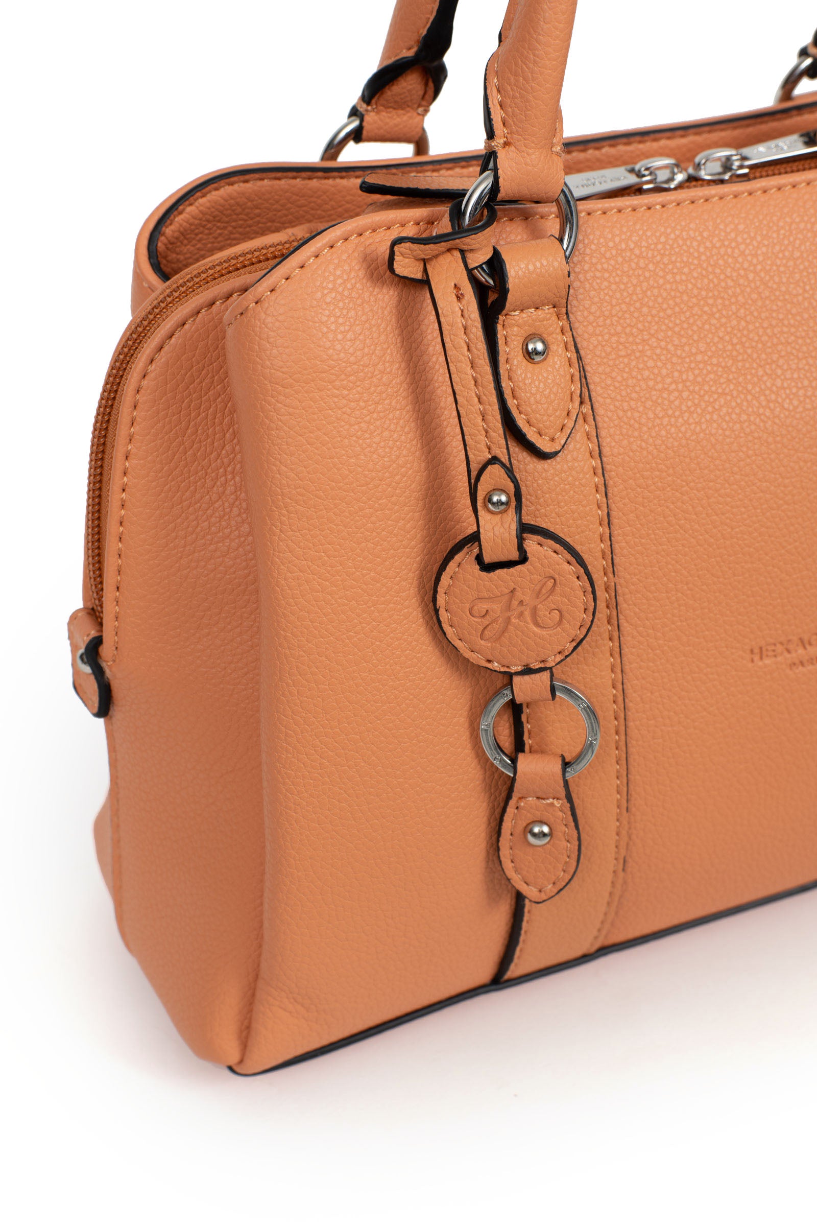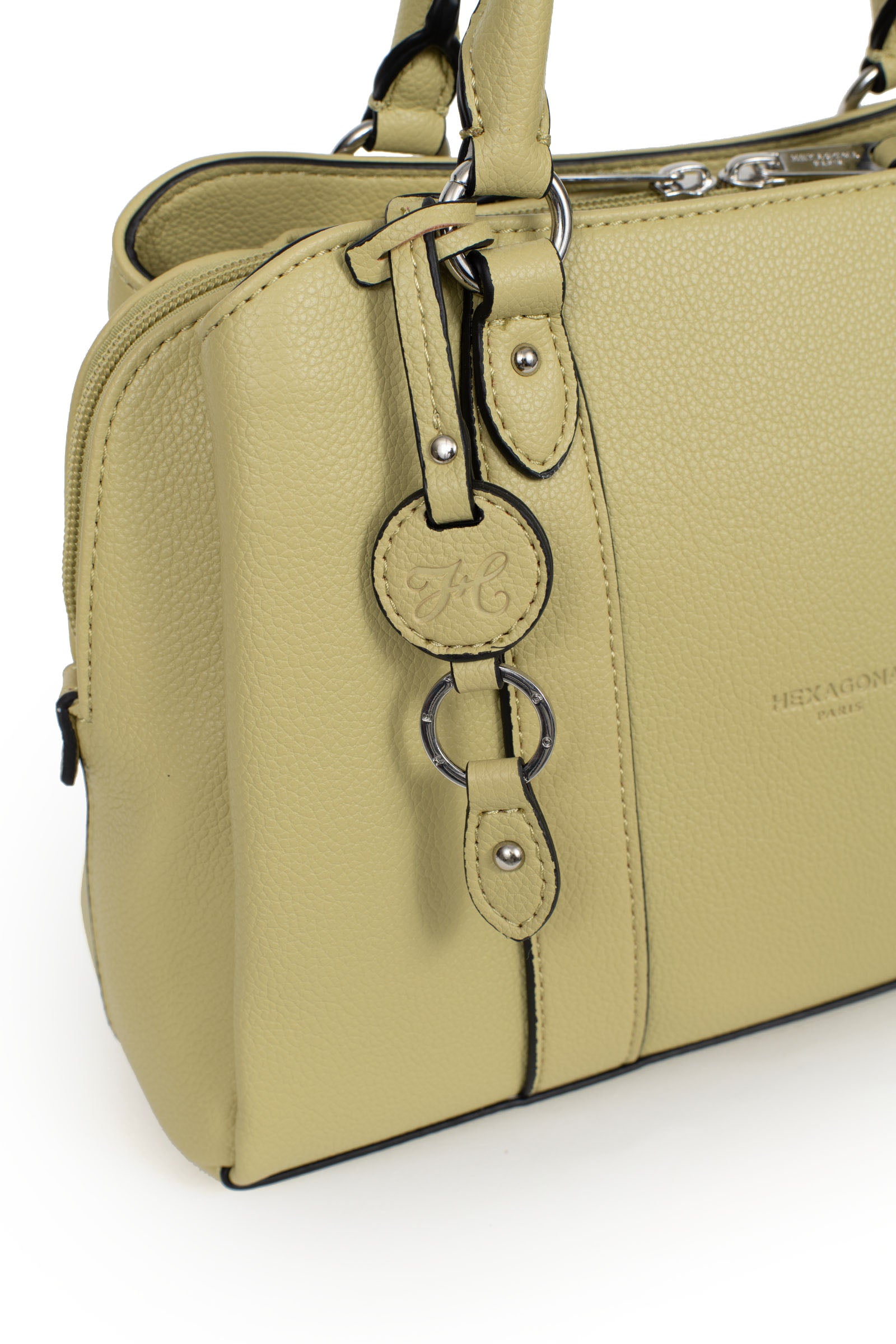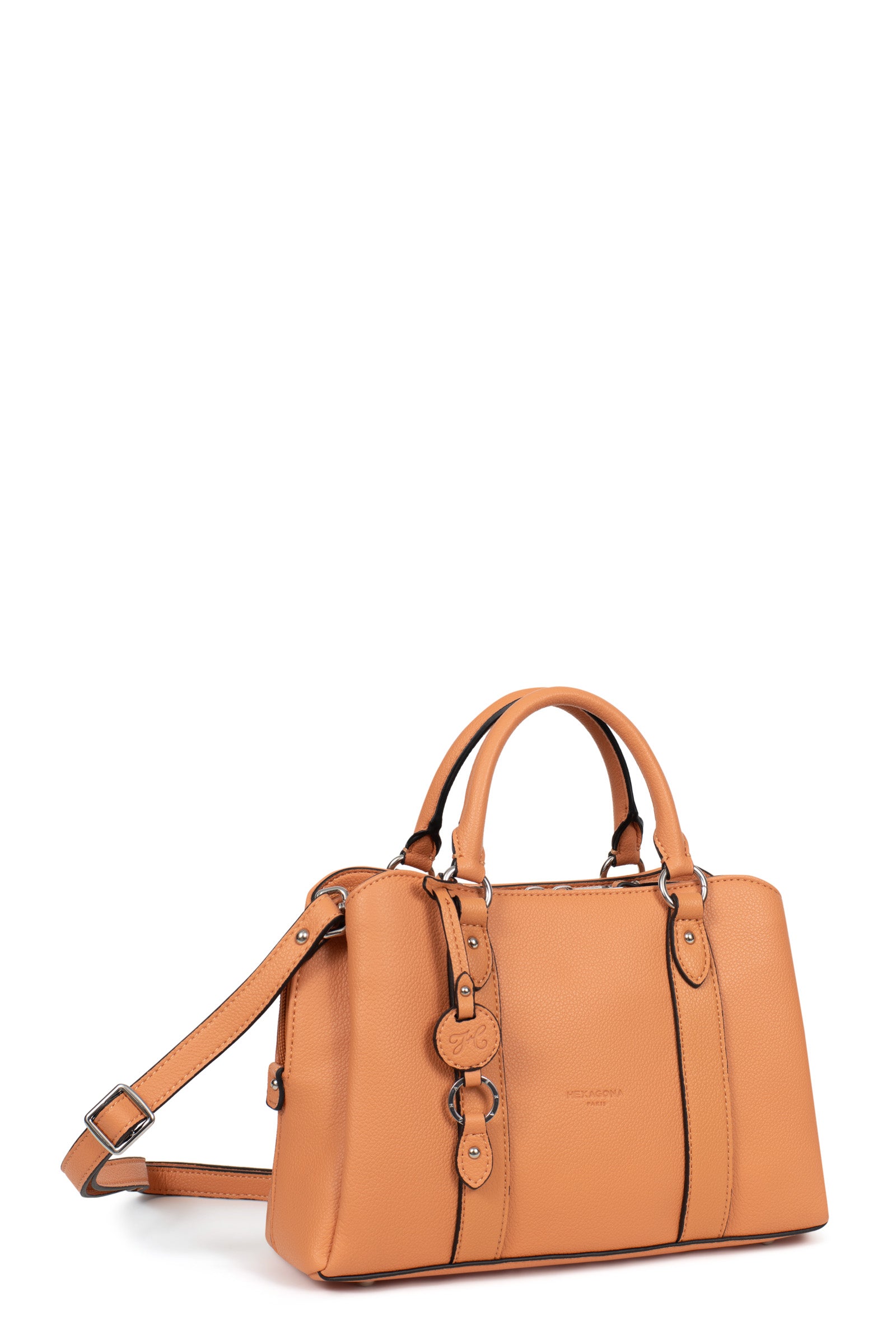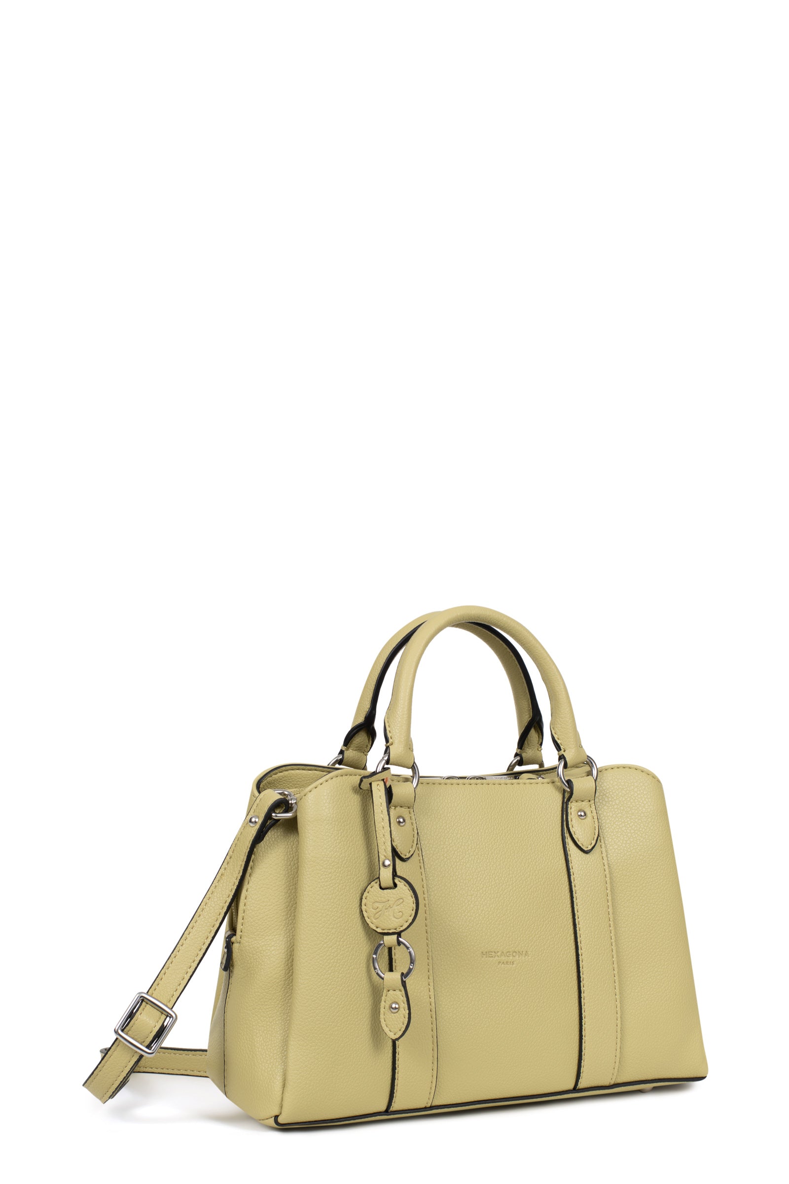 Diese Handtasche der Marke Hexagona zeichnet sich durch ihre Eleganz und Praktikabilität aus. Ihre strukturierte und leicht abgerundete Silhouette verleiht ihr ein modernes und klassisches Aussehen. Sie wurde für das Tragen in der Hand mit ihren beiden robusten Griffen entworfen, bietet jedoch auch die Möglichkeit, sie über der Schulter oder quer zu tragen, dank ihres abnehmbaren Schultergurts.