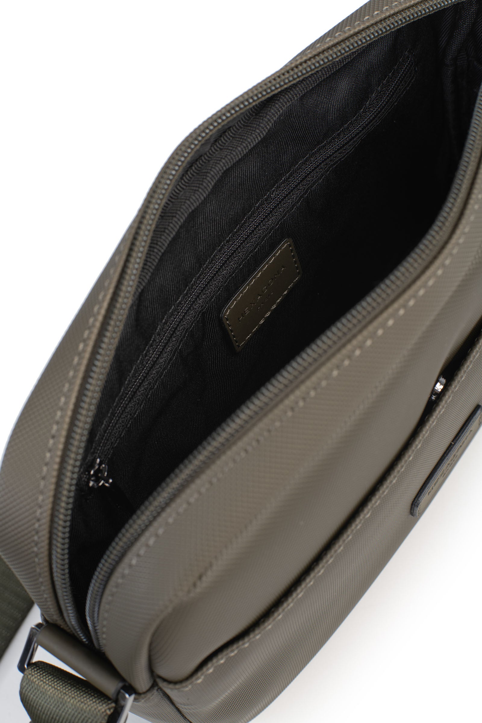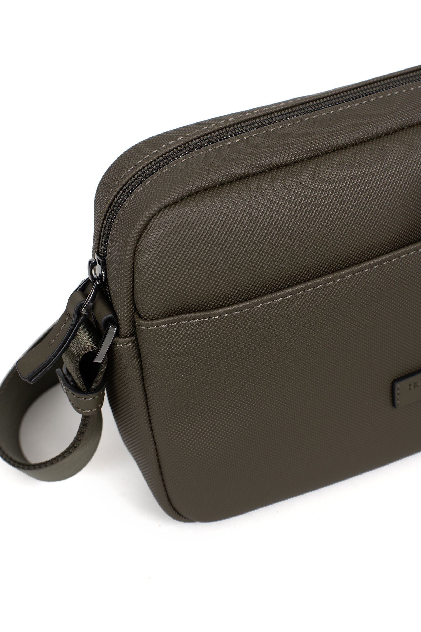 Hergestellt aus synthetischem Material, weist diese Tasche eine glatte und widerstandsfähige Textur auf, die eine gewisse Wasserbeständigkeit gewährleistet. Erhältlich in mehreren Farben wie khaki, schwarz und blau, passt sie sich leicht an alle Ihre Outfits an, ob lässig oder eleganter.