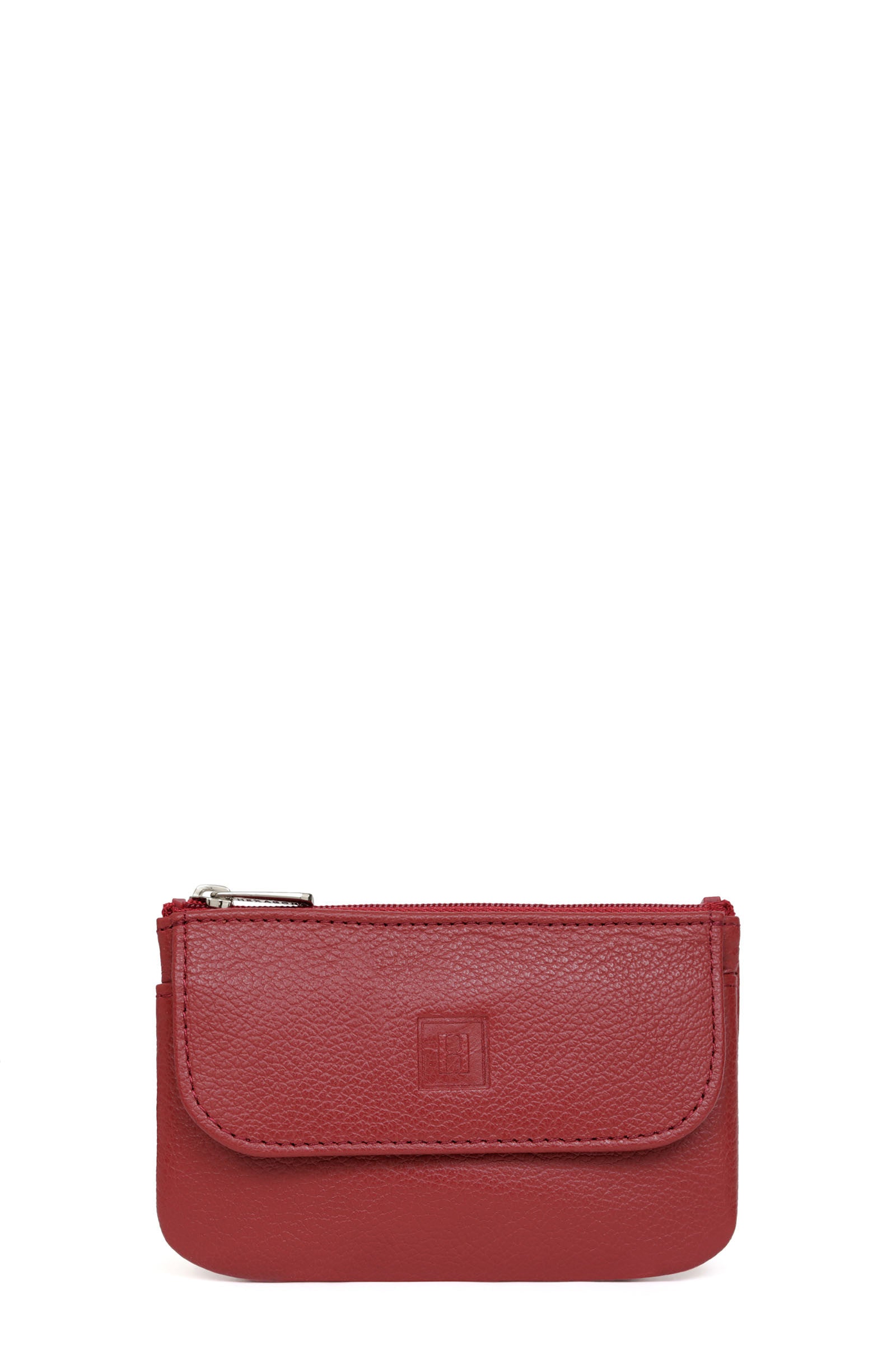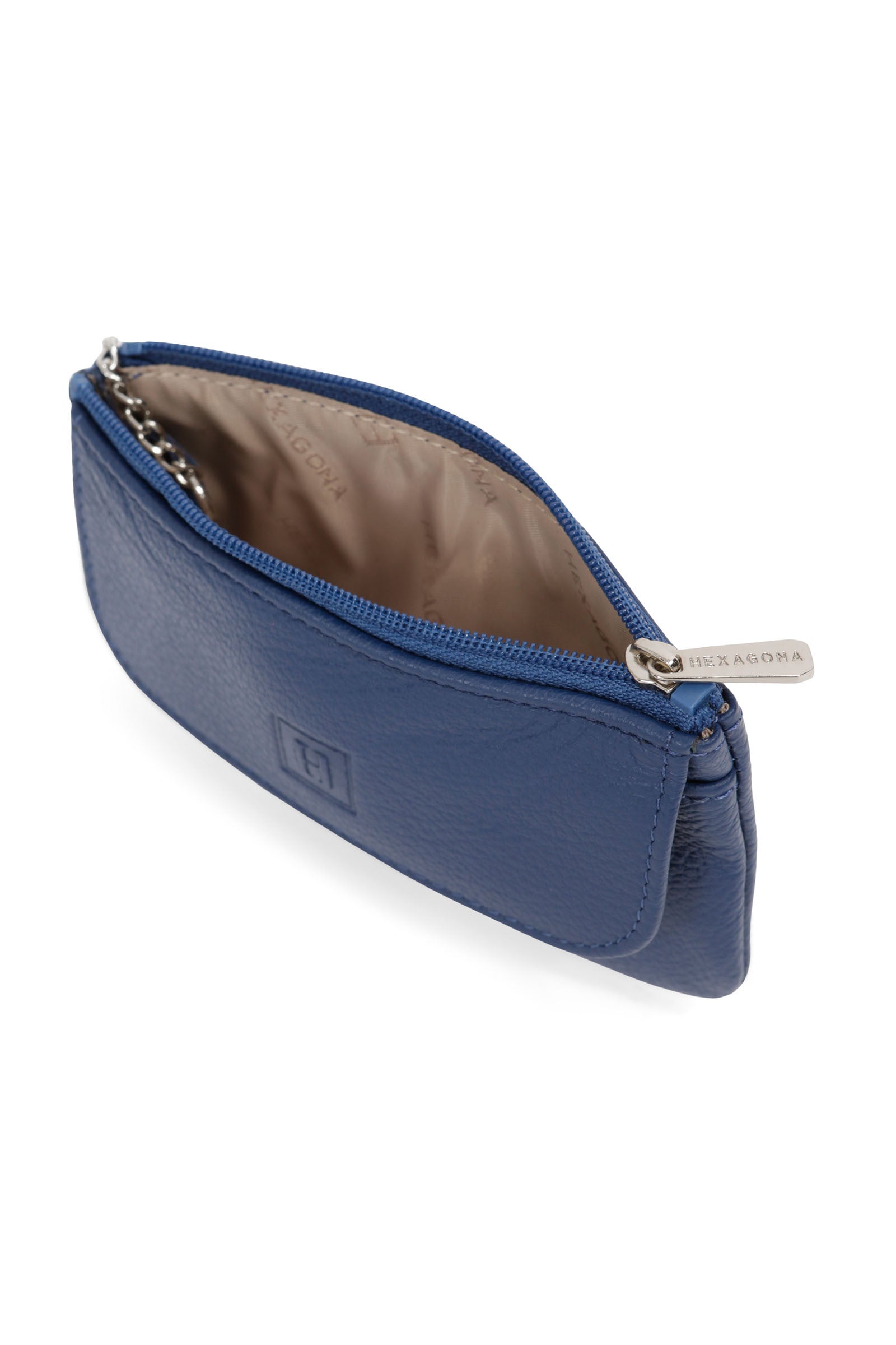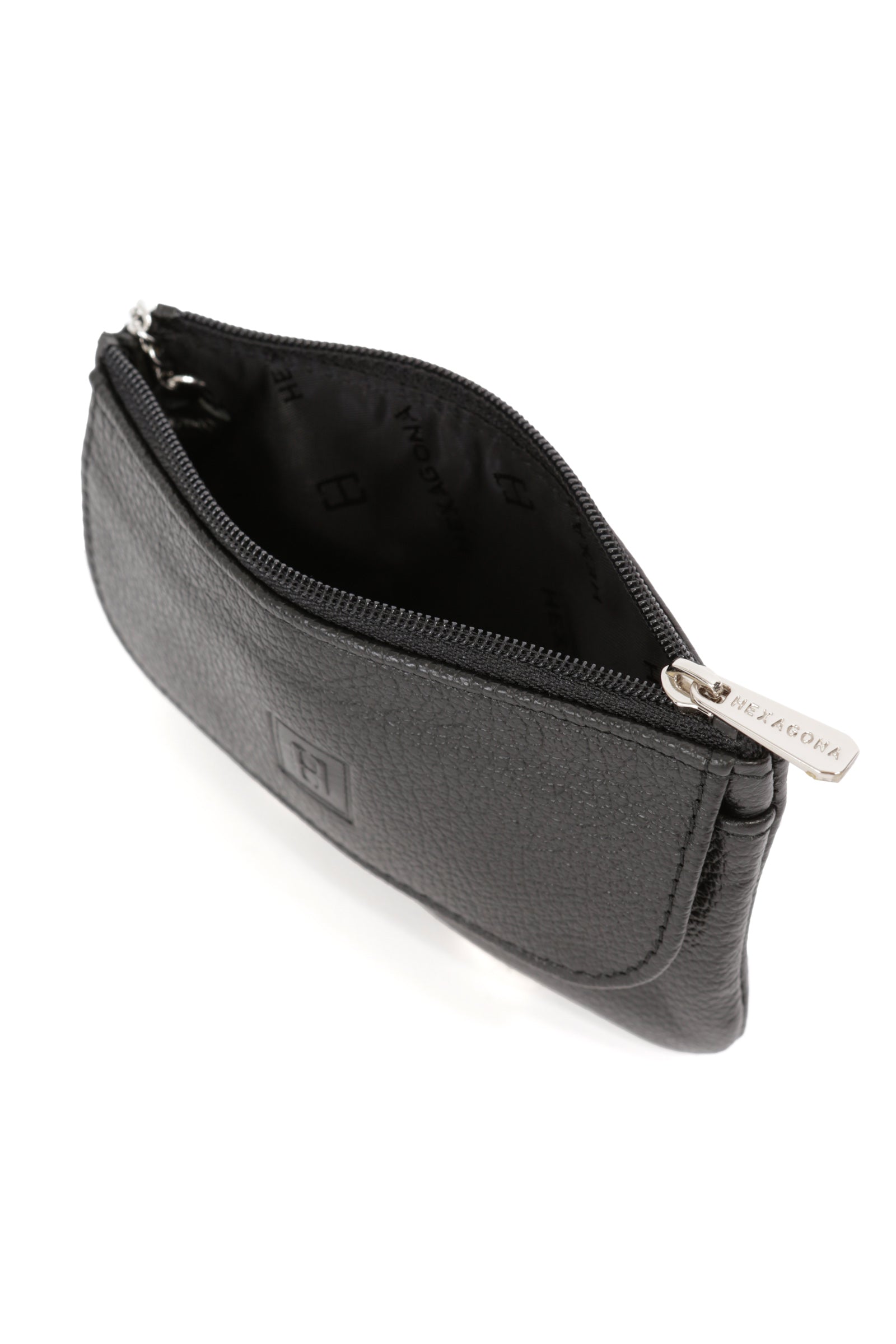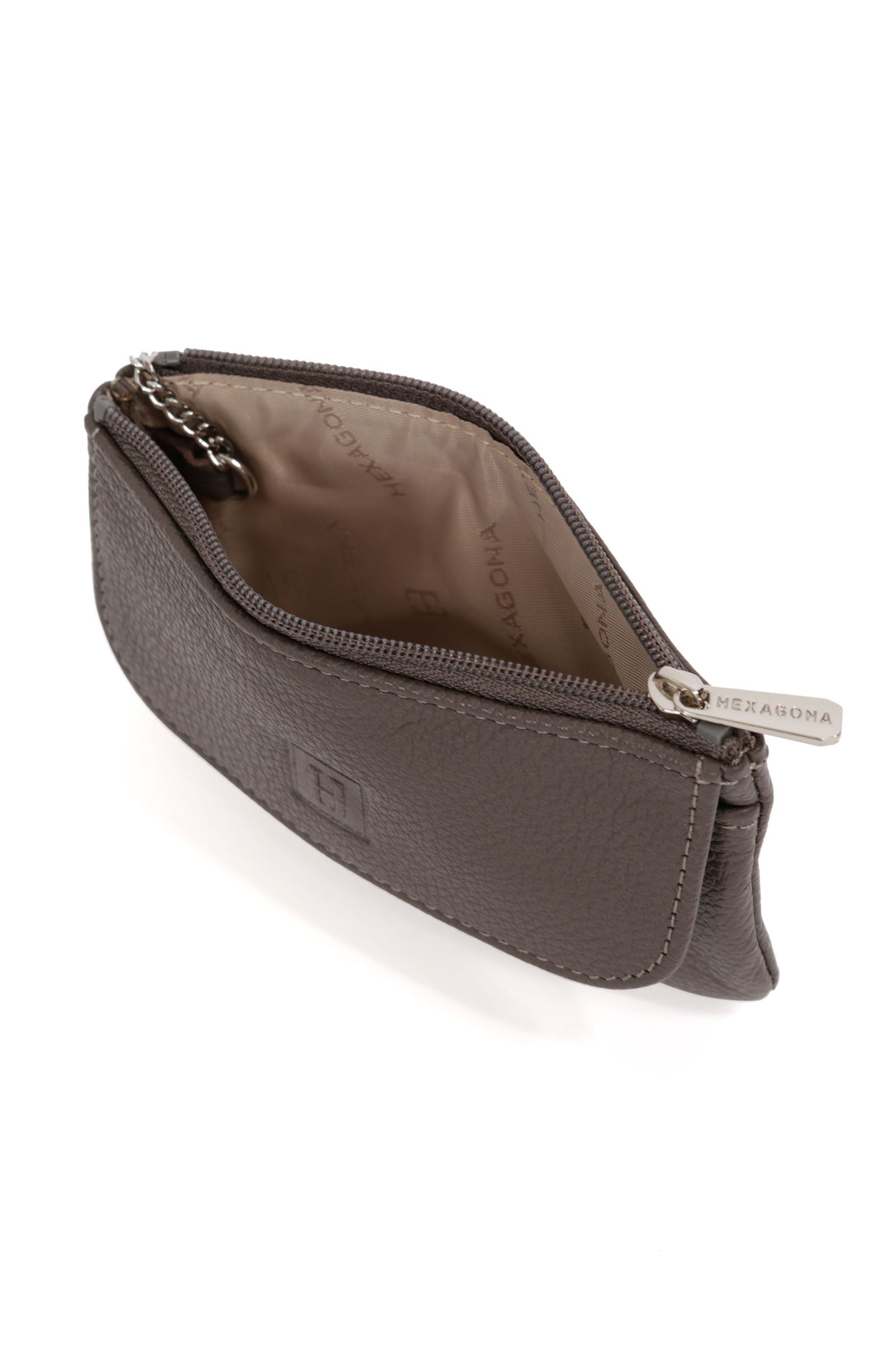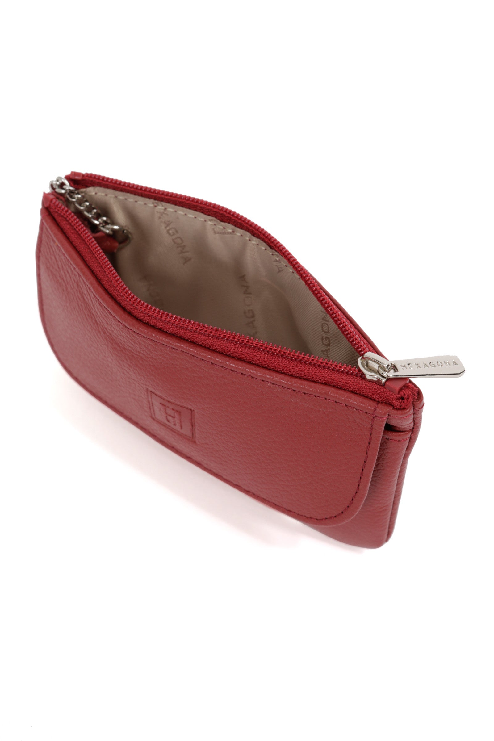 - Innen: 1 Reißverschluss-Münzfach. 1 flaches Fach mit Druckknopf. 2 Kartenfächer.