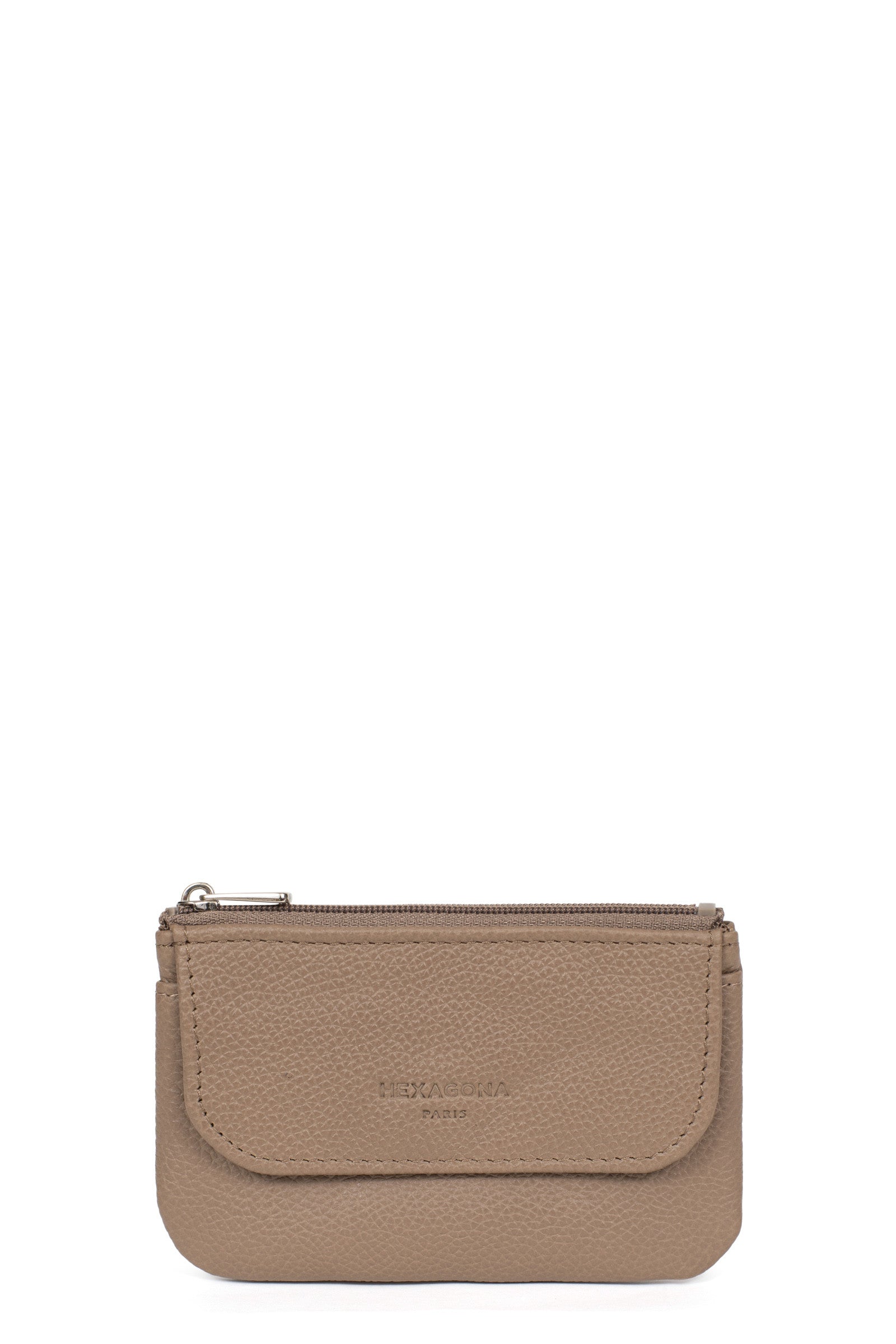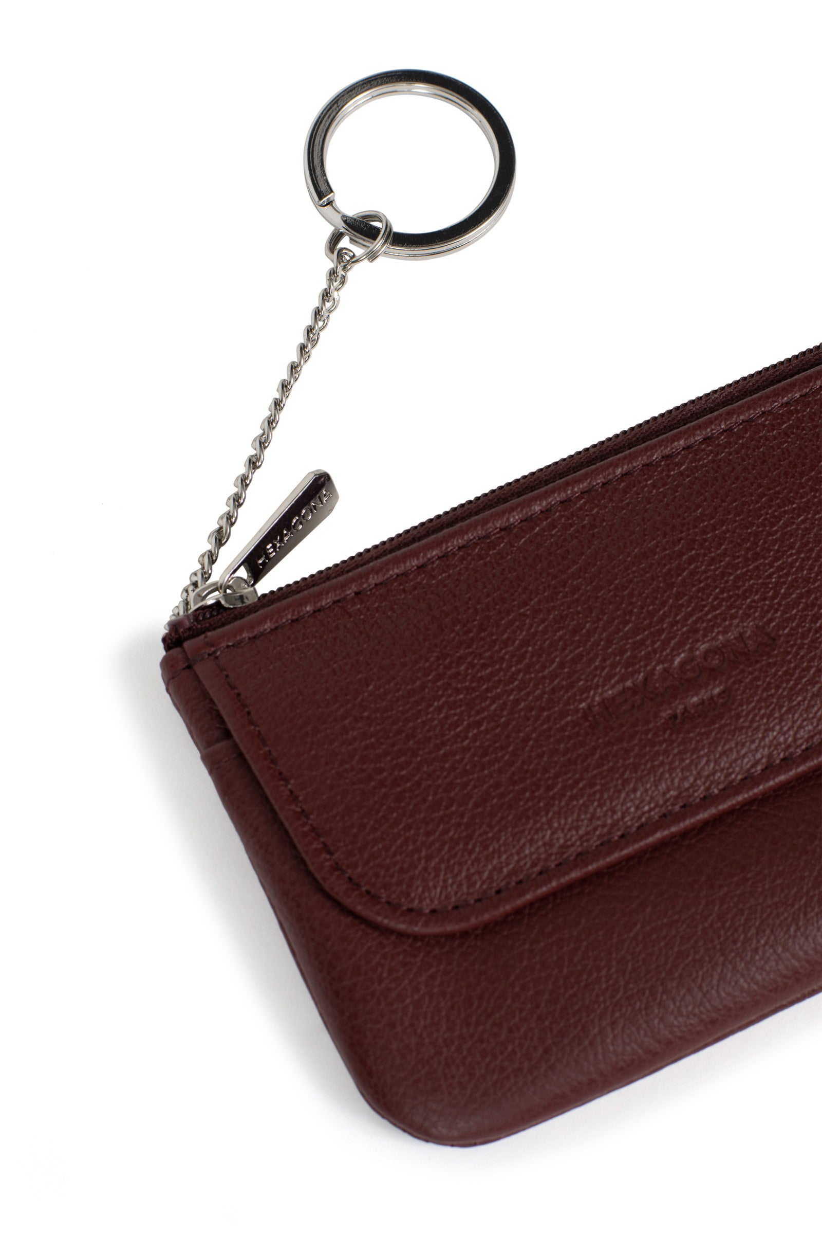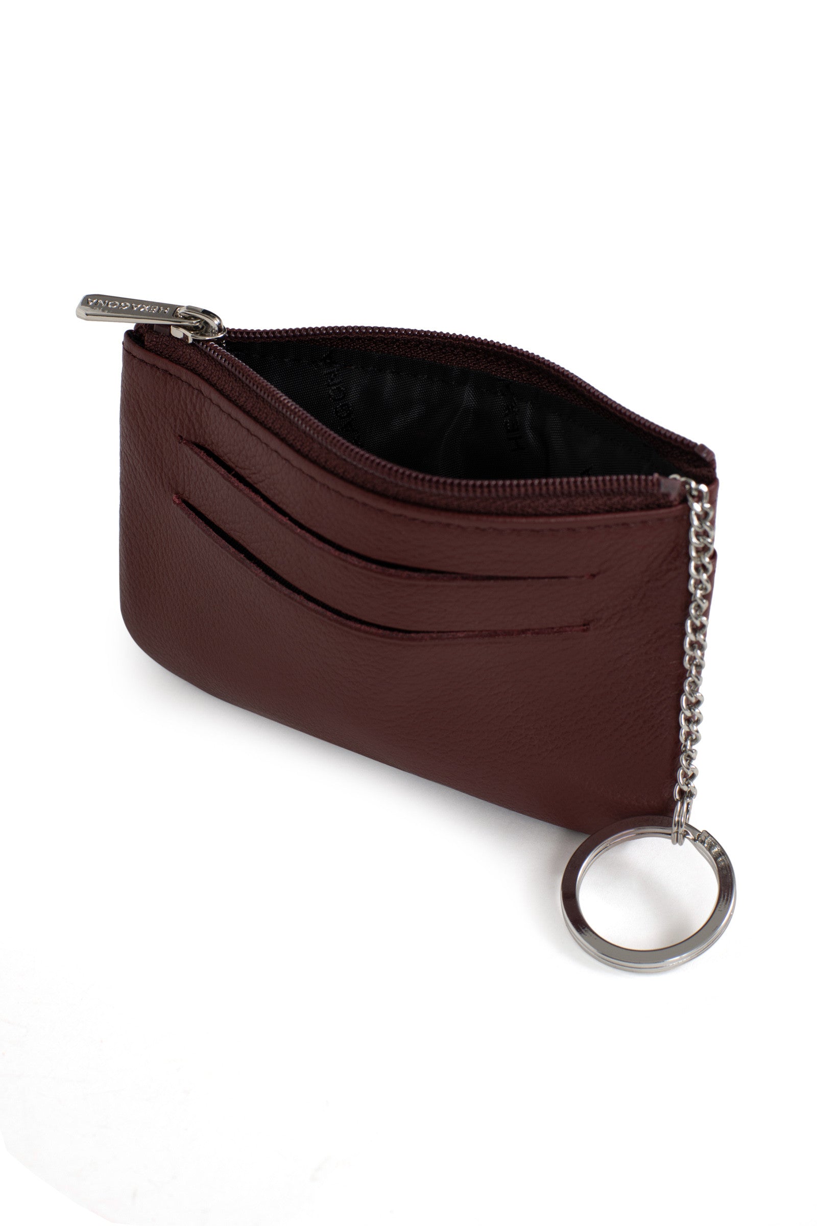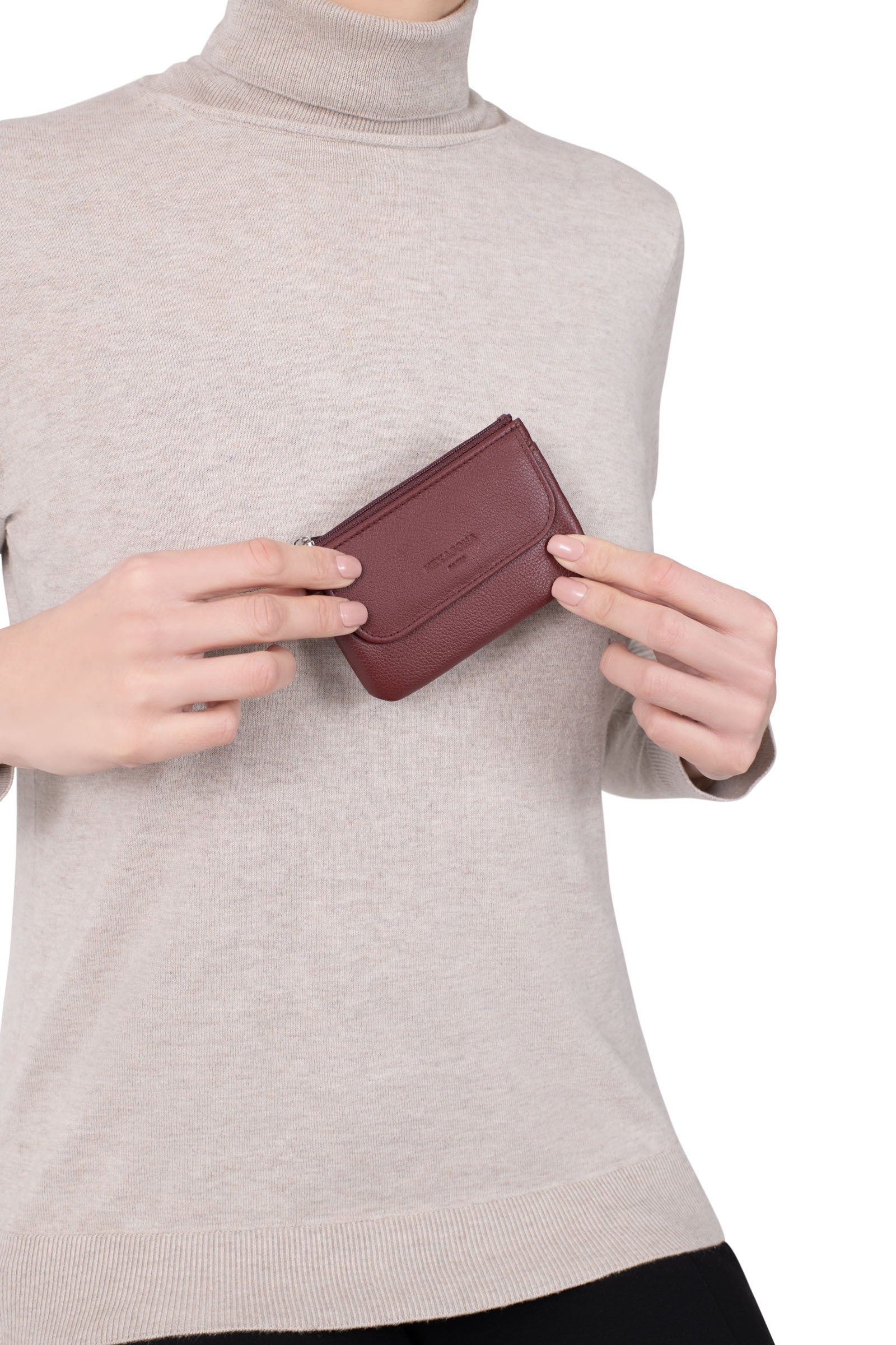 - Innen: 1 Reißverschluss-Münzfach. 1 flaches Fach mit Druckknopf. 2 Kartenfächer.