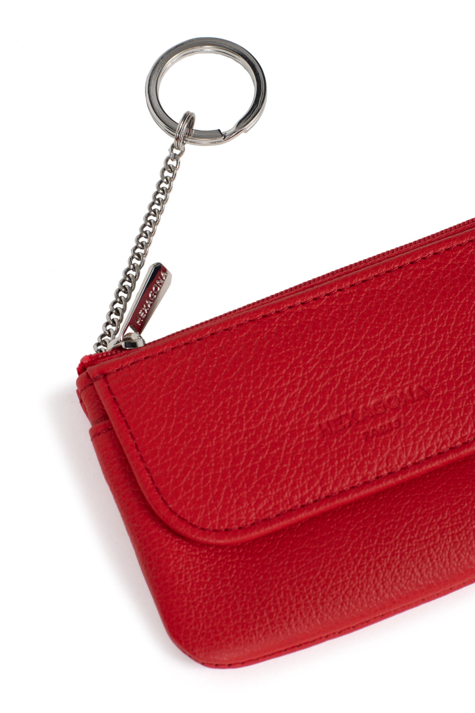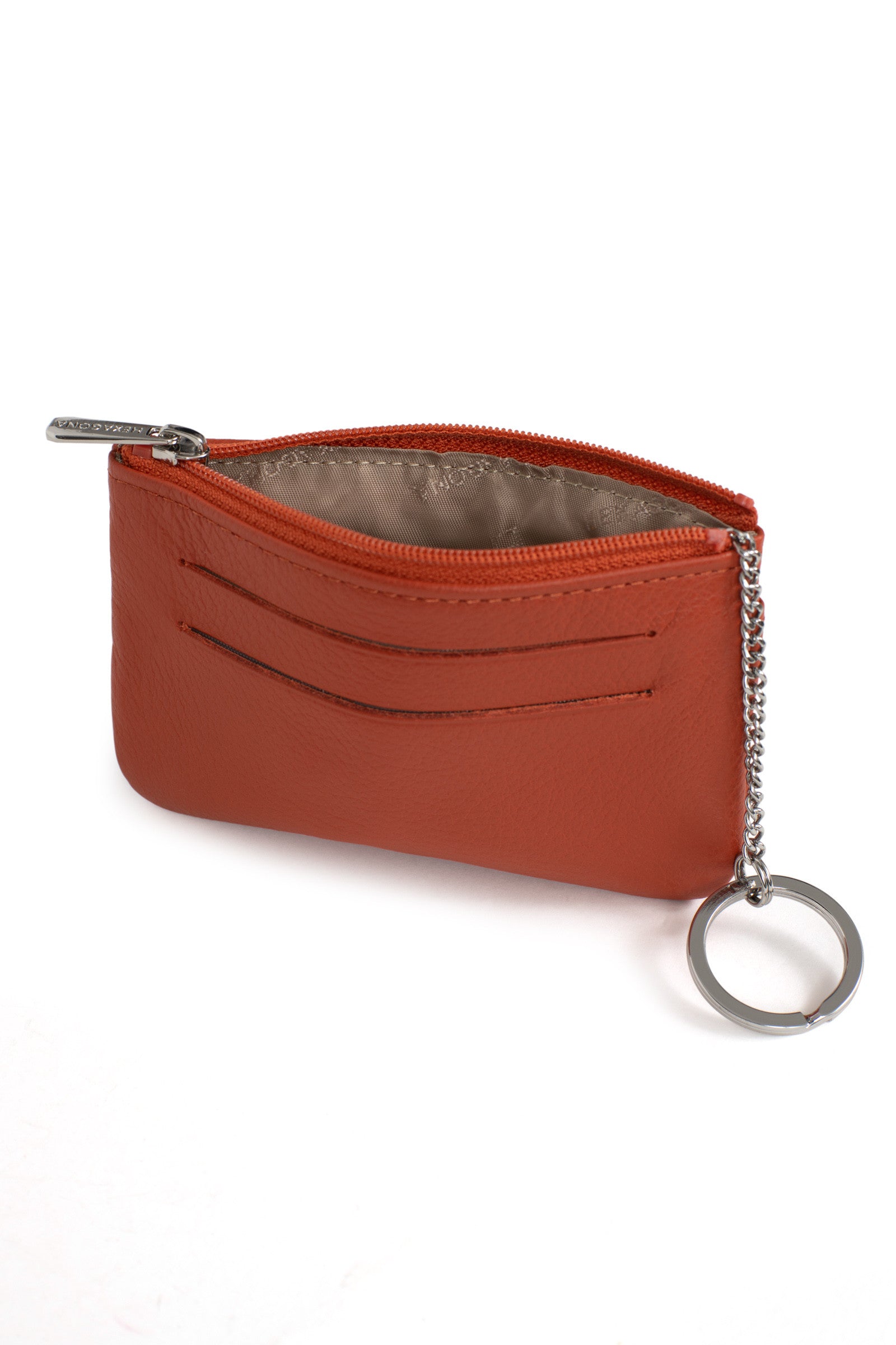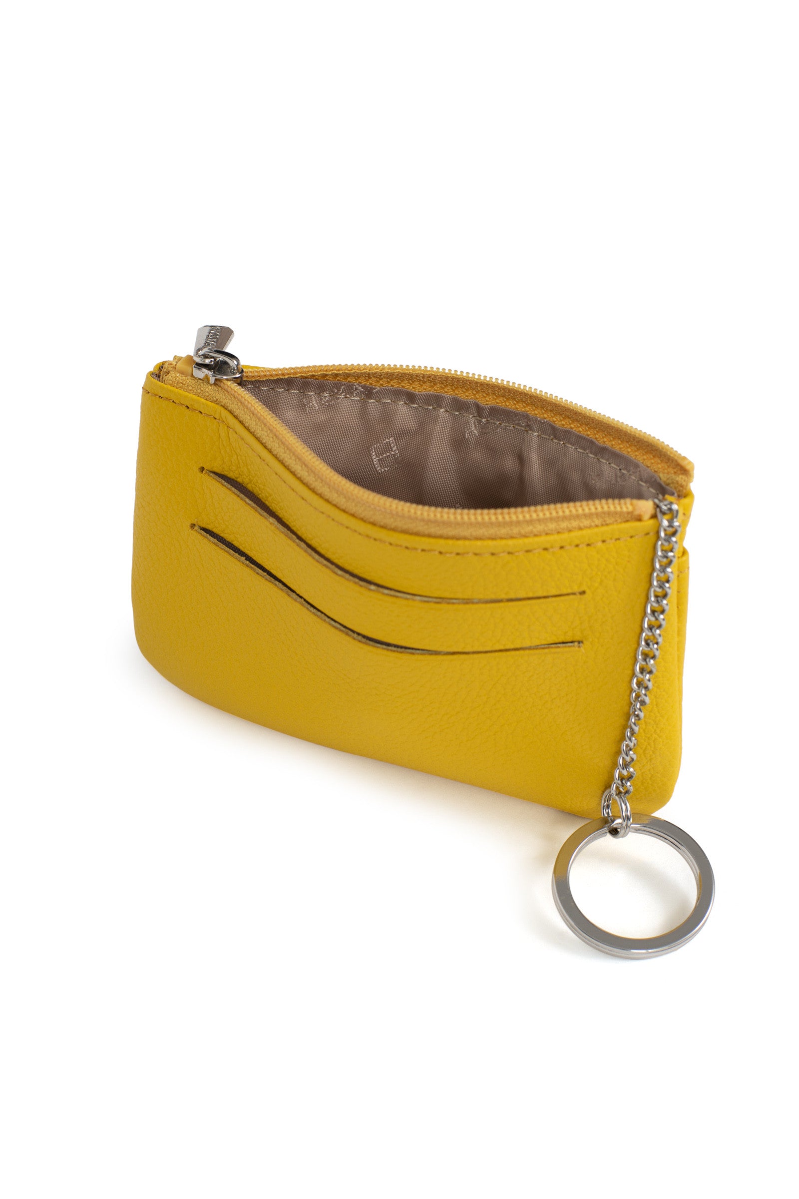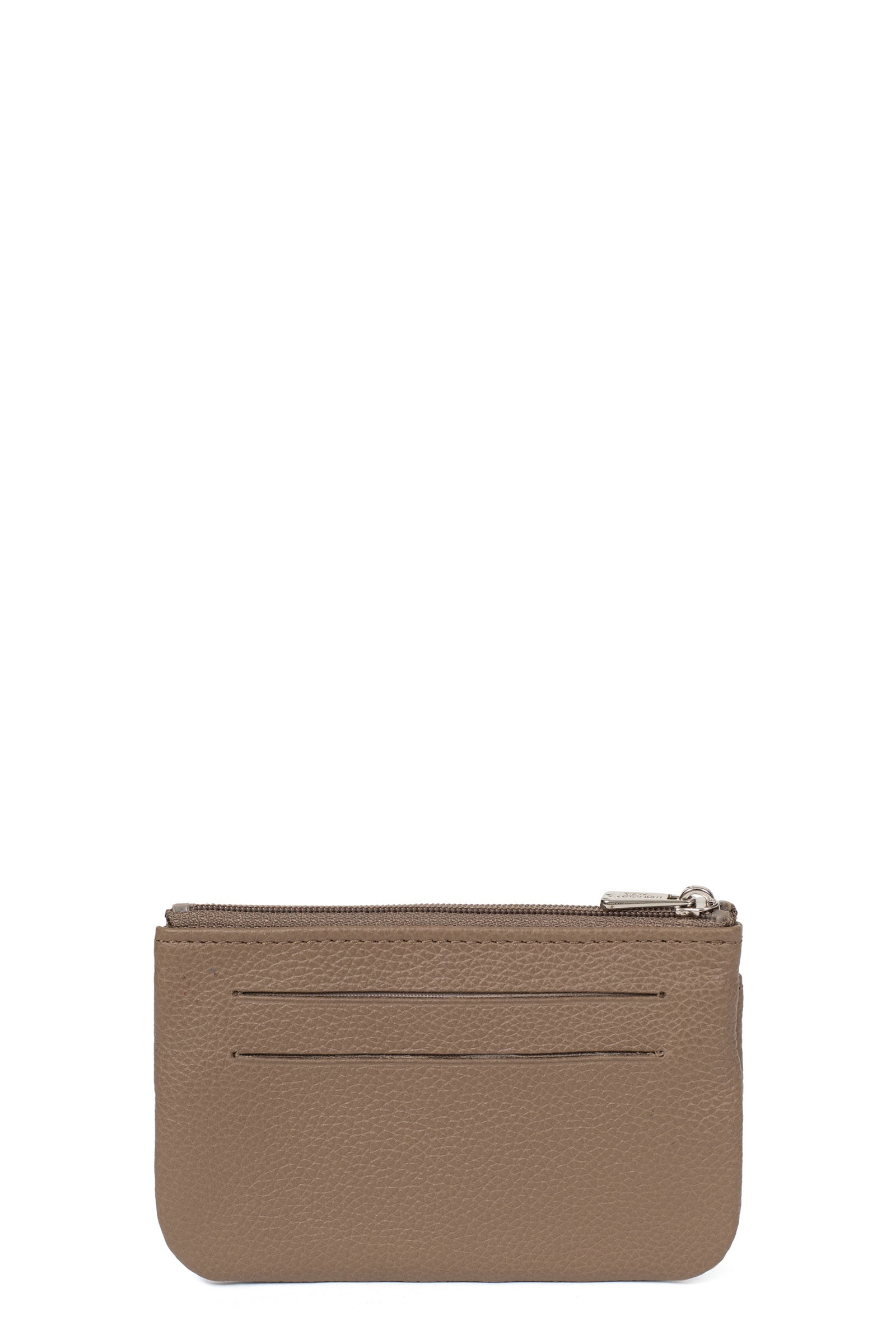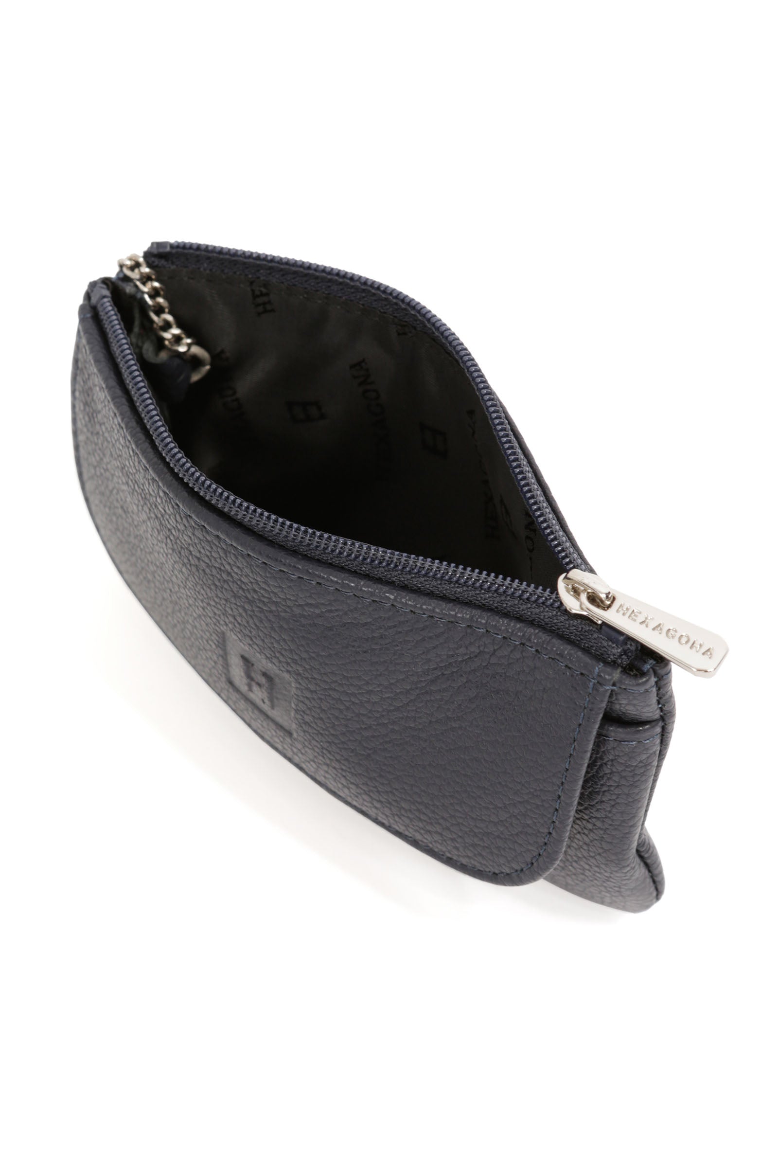 - Innen: 1 Reißverschluss-Münzfach. 1 flaches Fach mit Druckknopf. 2 Kartenfächer.