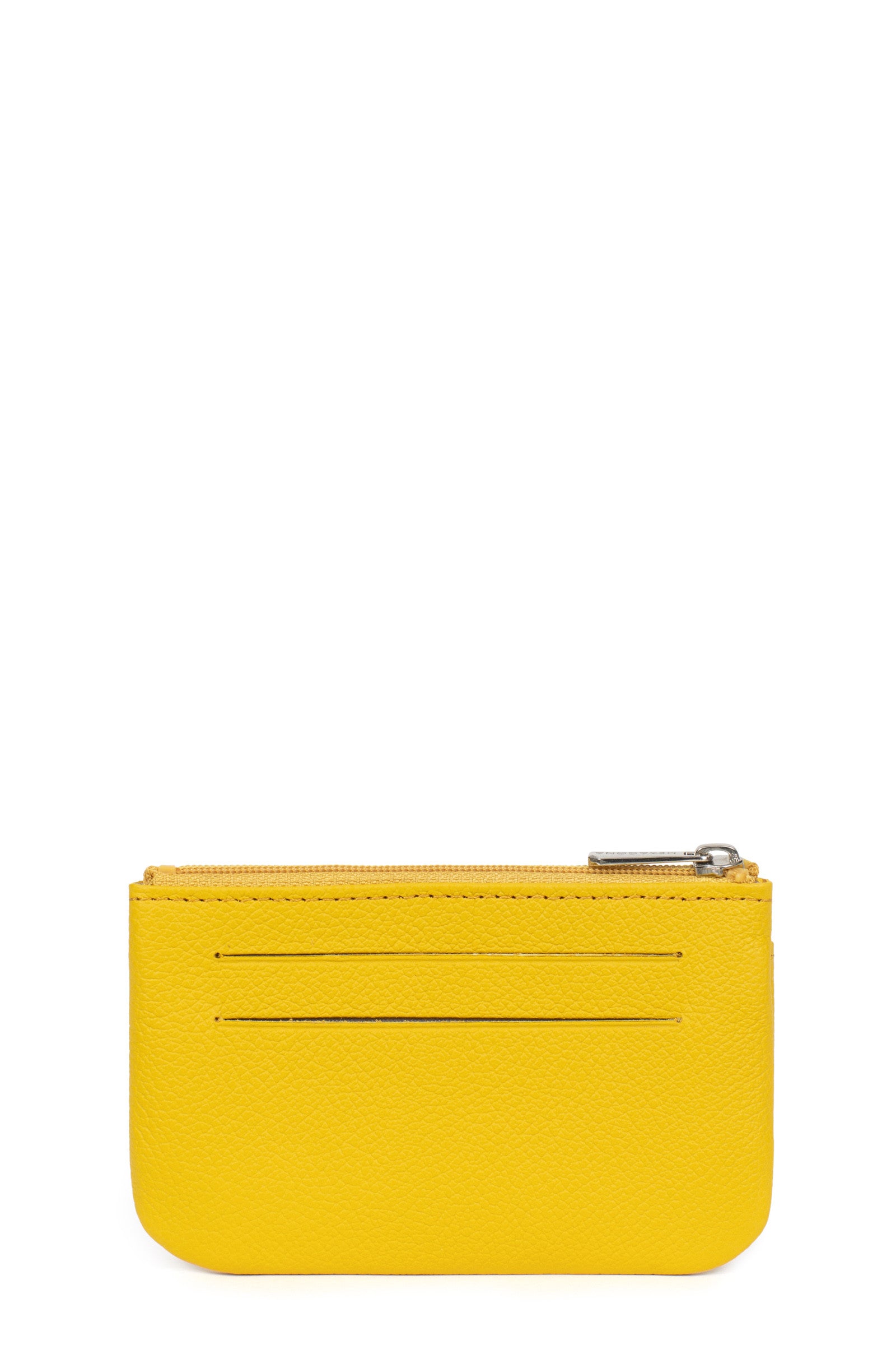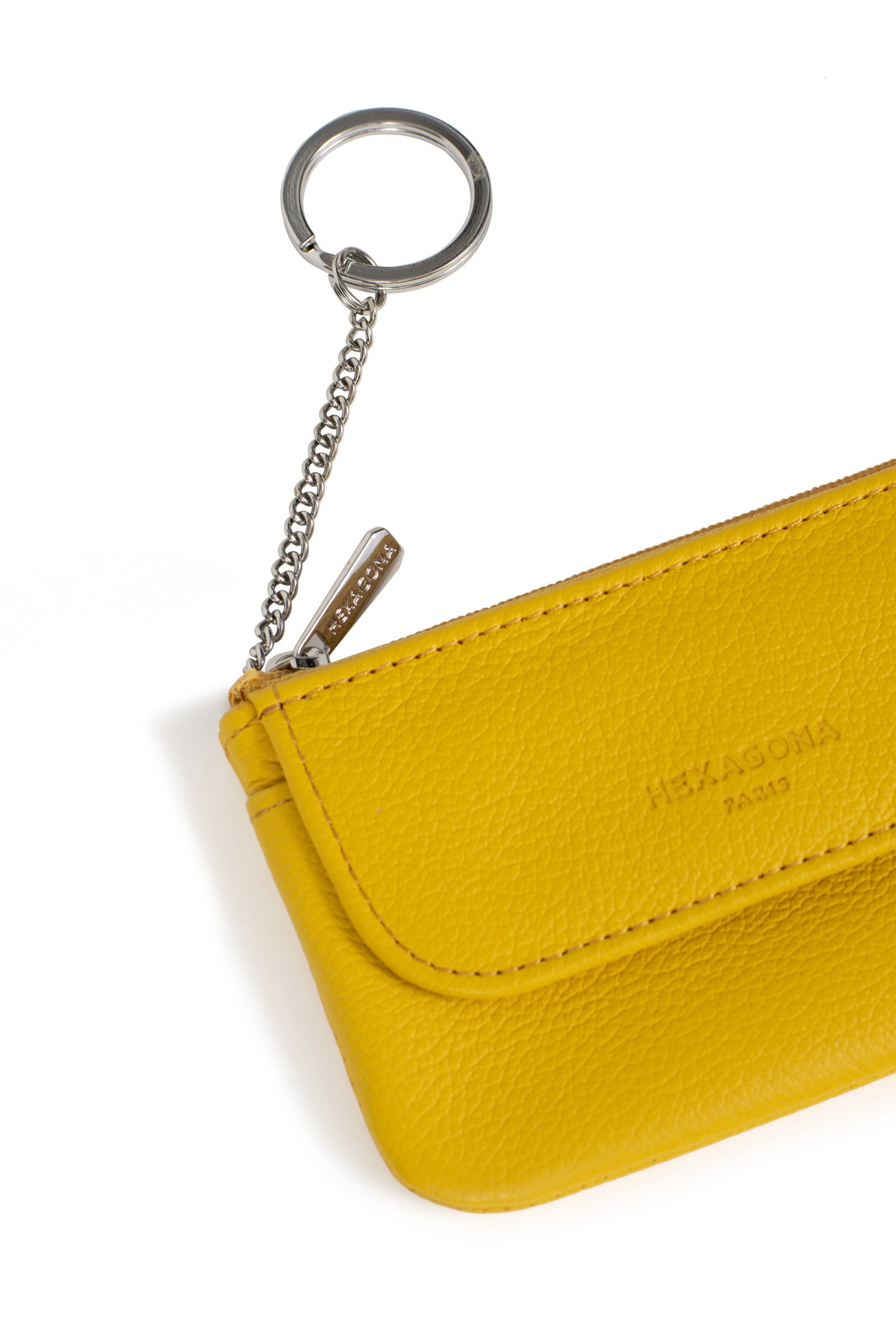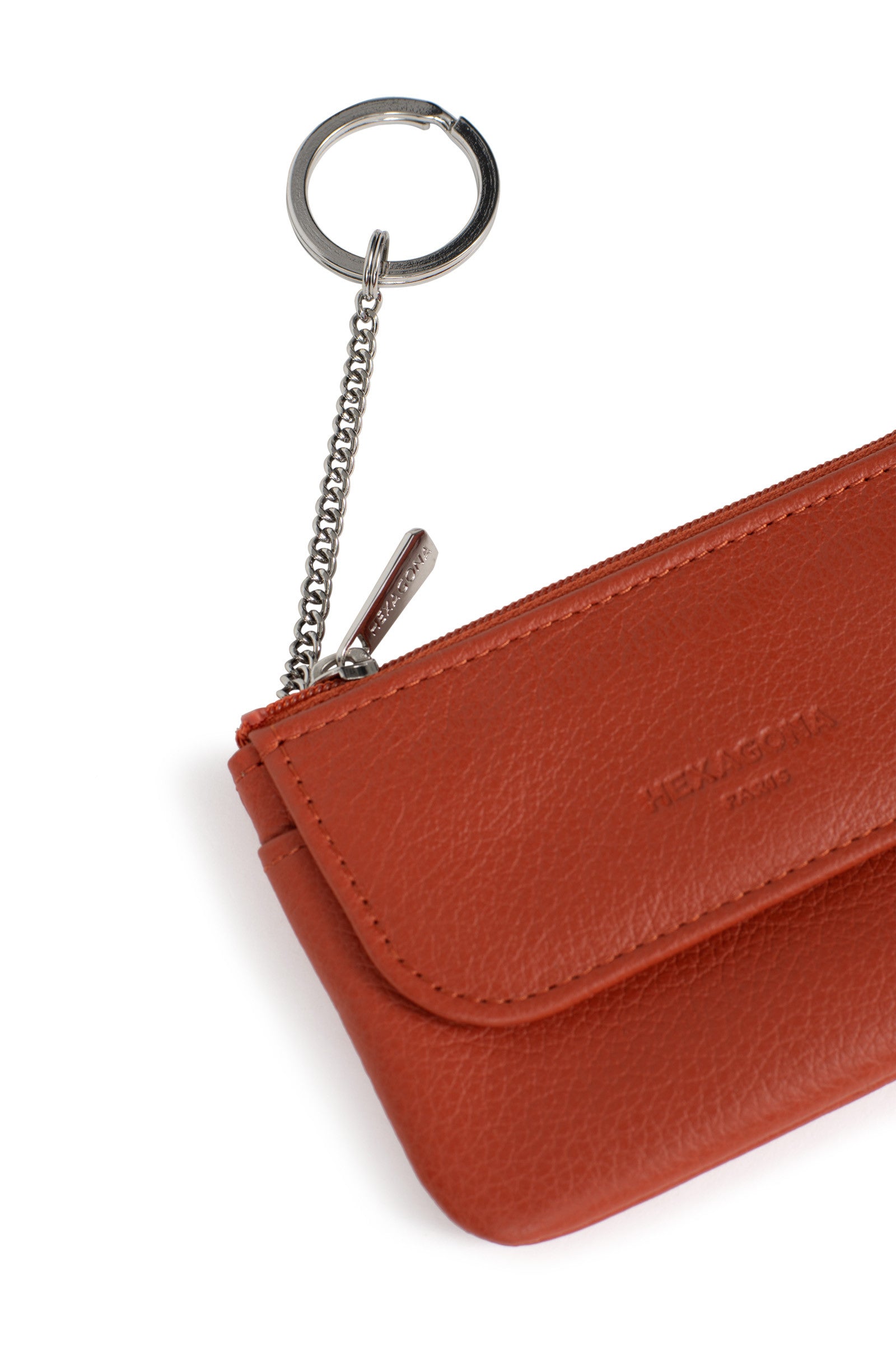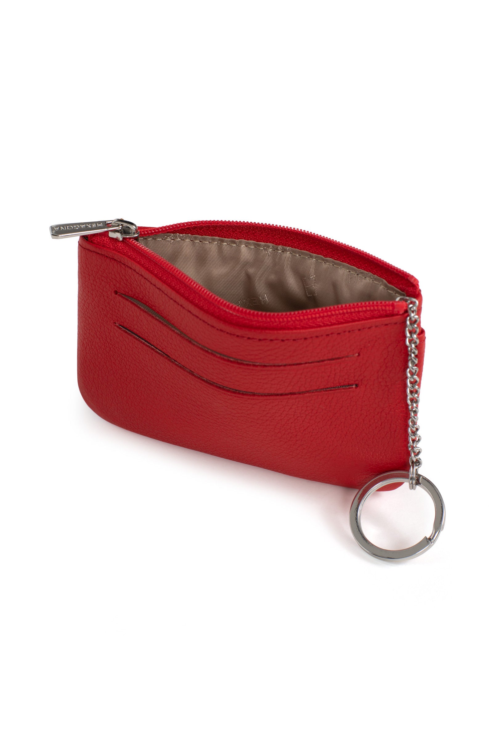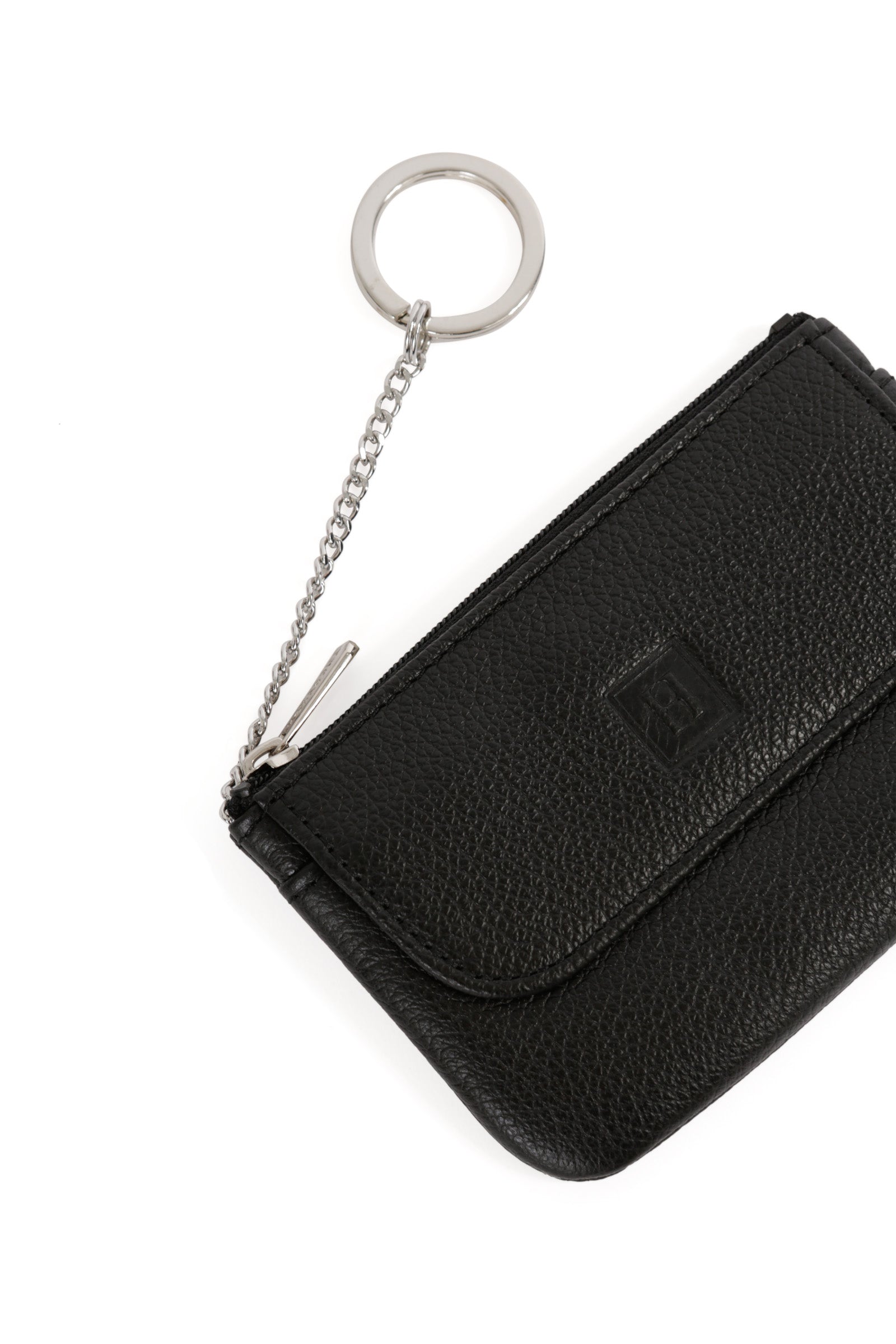 - Innen: 1 Reißverschluss-Münzfach. 1 flaches Fach mit Druckknopf. 2 Kartenfächer.