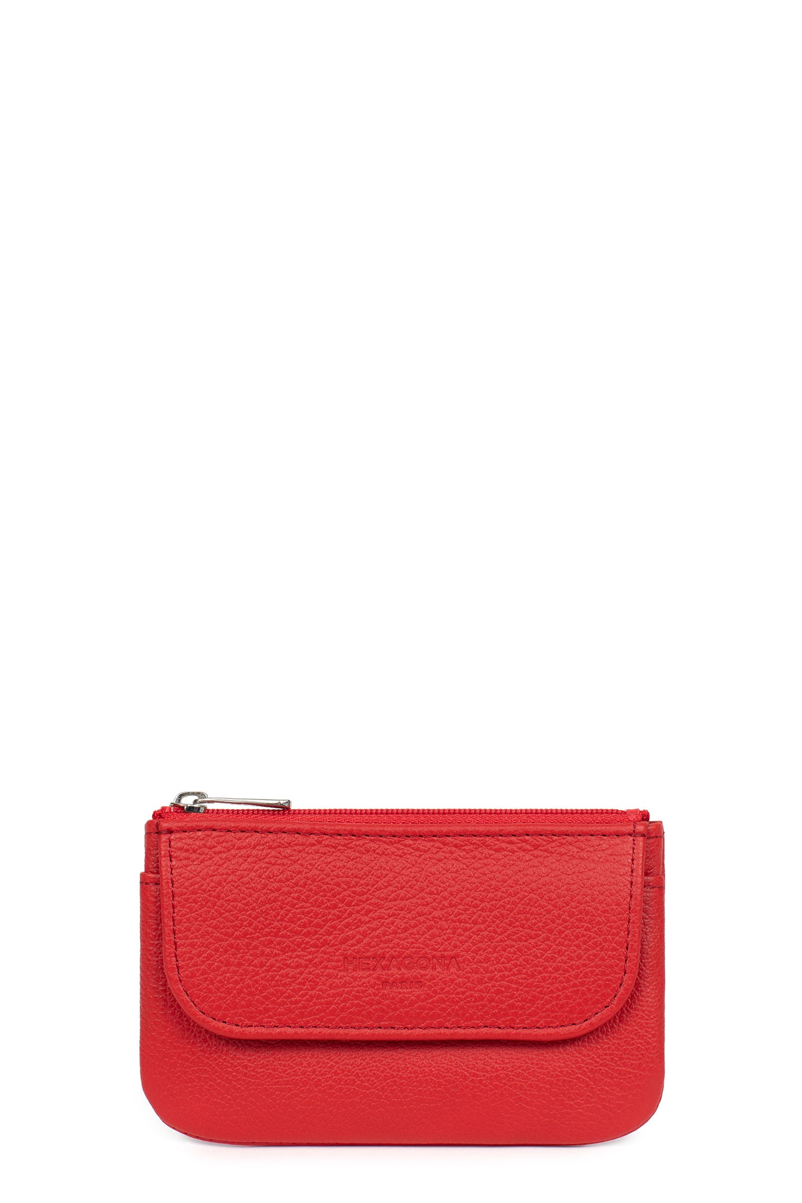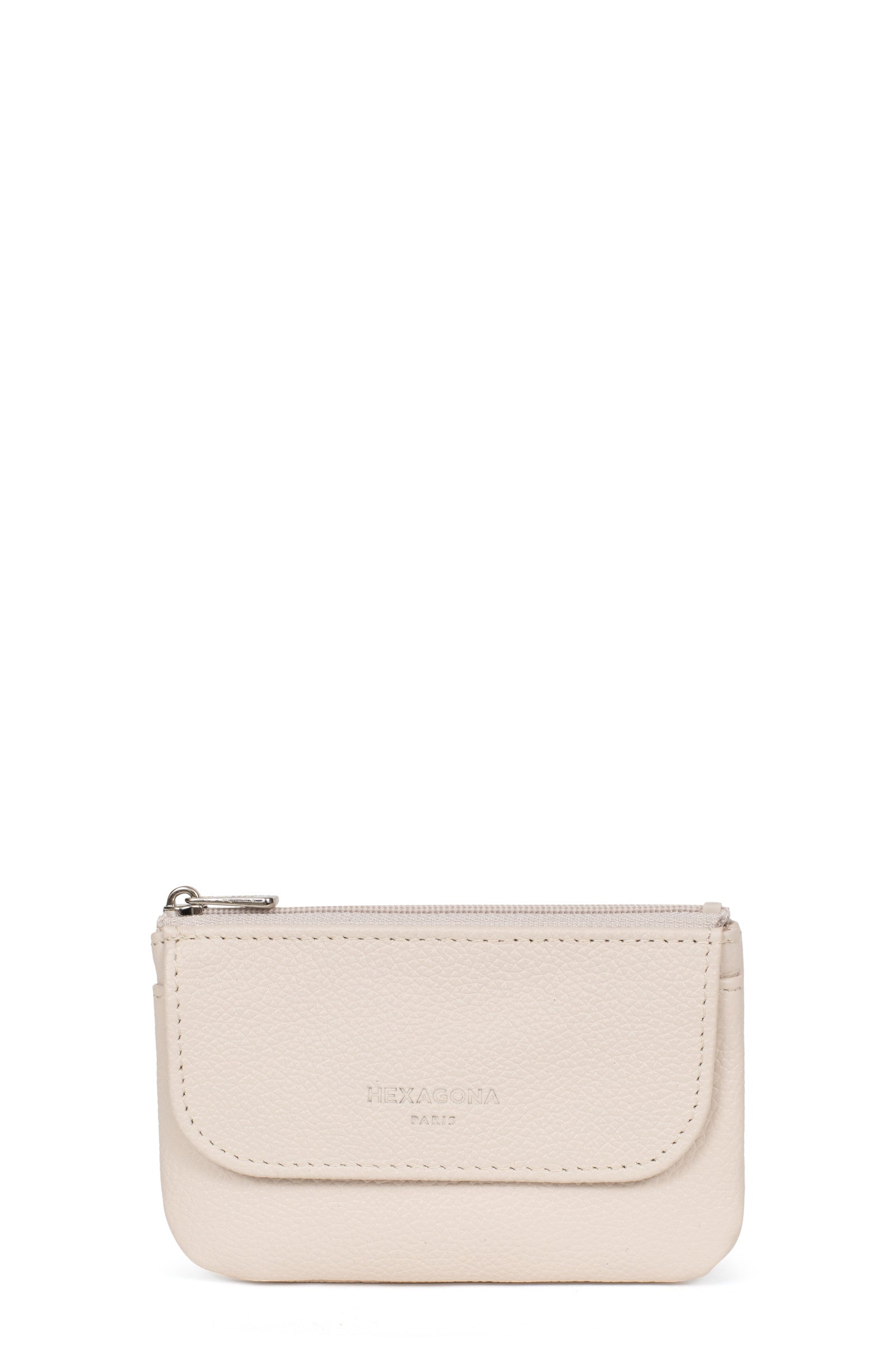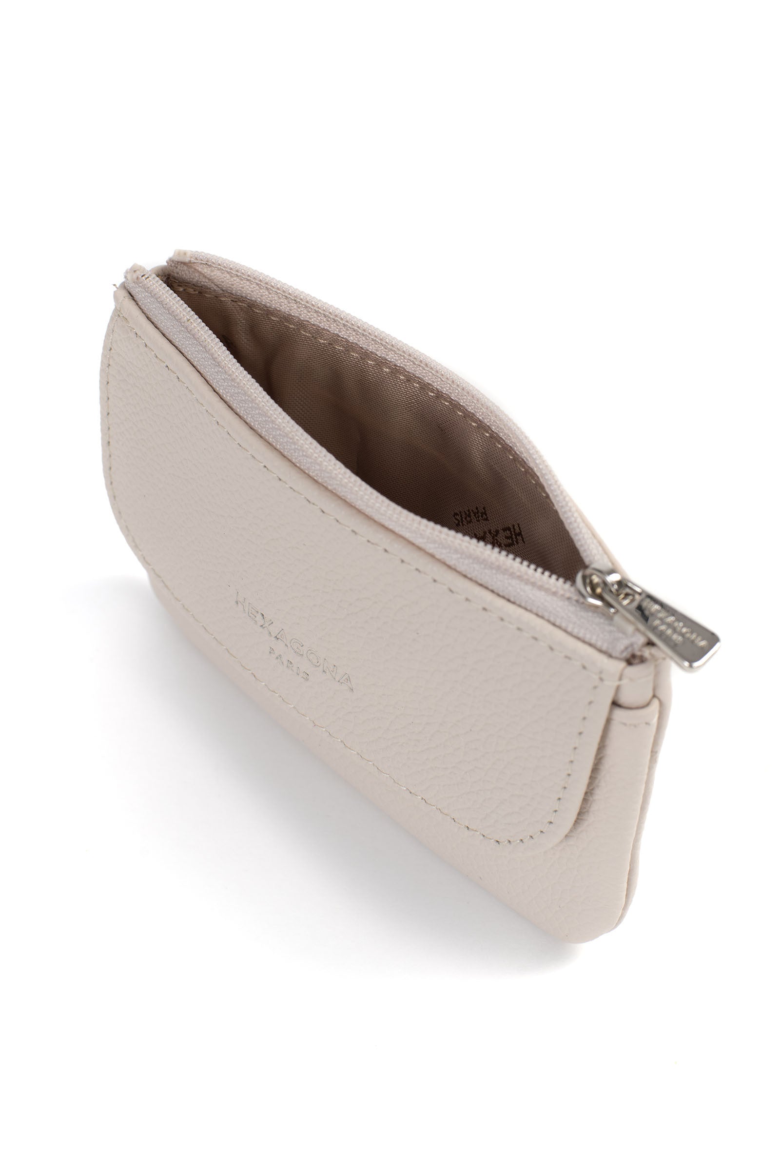 Innen: 1 Reißverschluss-Geldbörse. 1 flaches Fach mit Druckknopfklappe. 2 Kartenfächer.