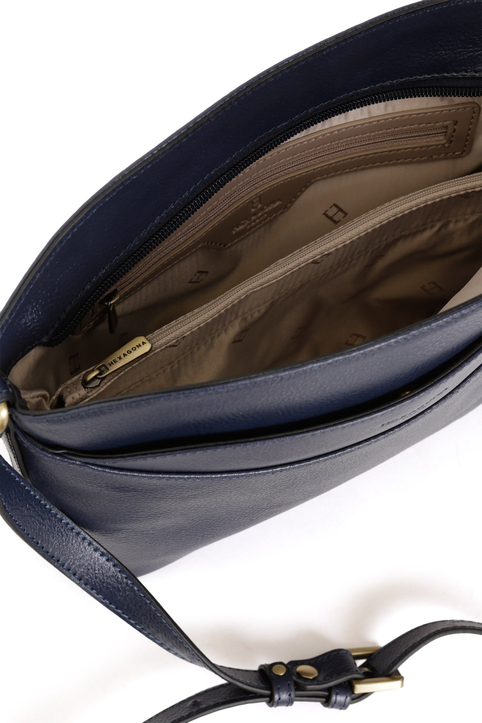 Diese Umhängetasche der Marke Hexagona verkörpert Chic und Weiblichkeit. Elegant und modern, ist sie aus pflanzlich gegerbtem Rindsleder gefertigt, was eine überlegene Qualität und eine außergewöhnliche Haltbarkeit garantiert. Ihre Verarbeitung in gebürstetem Bronze verleiht ihrem Design eine raffinierte Note.