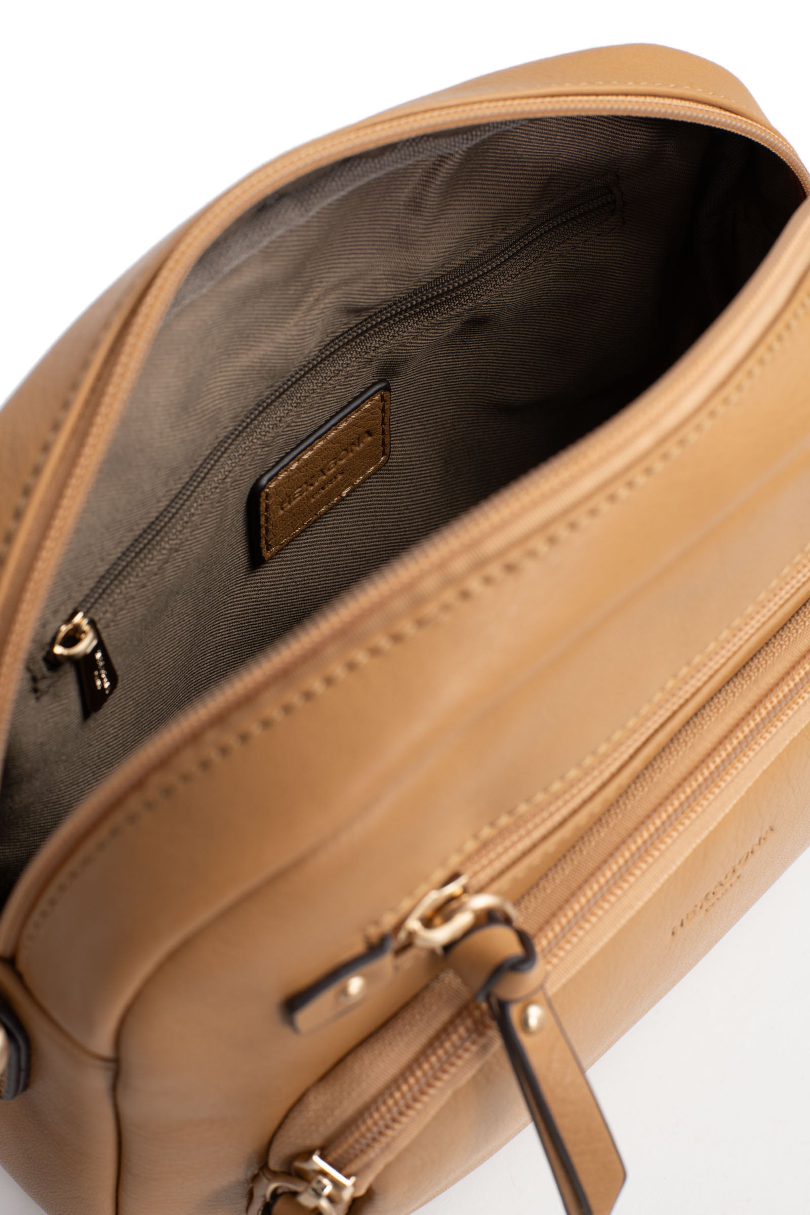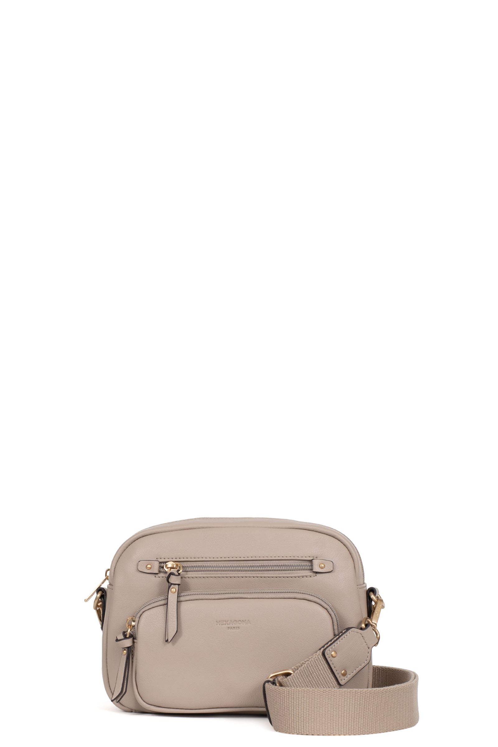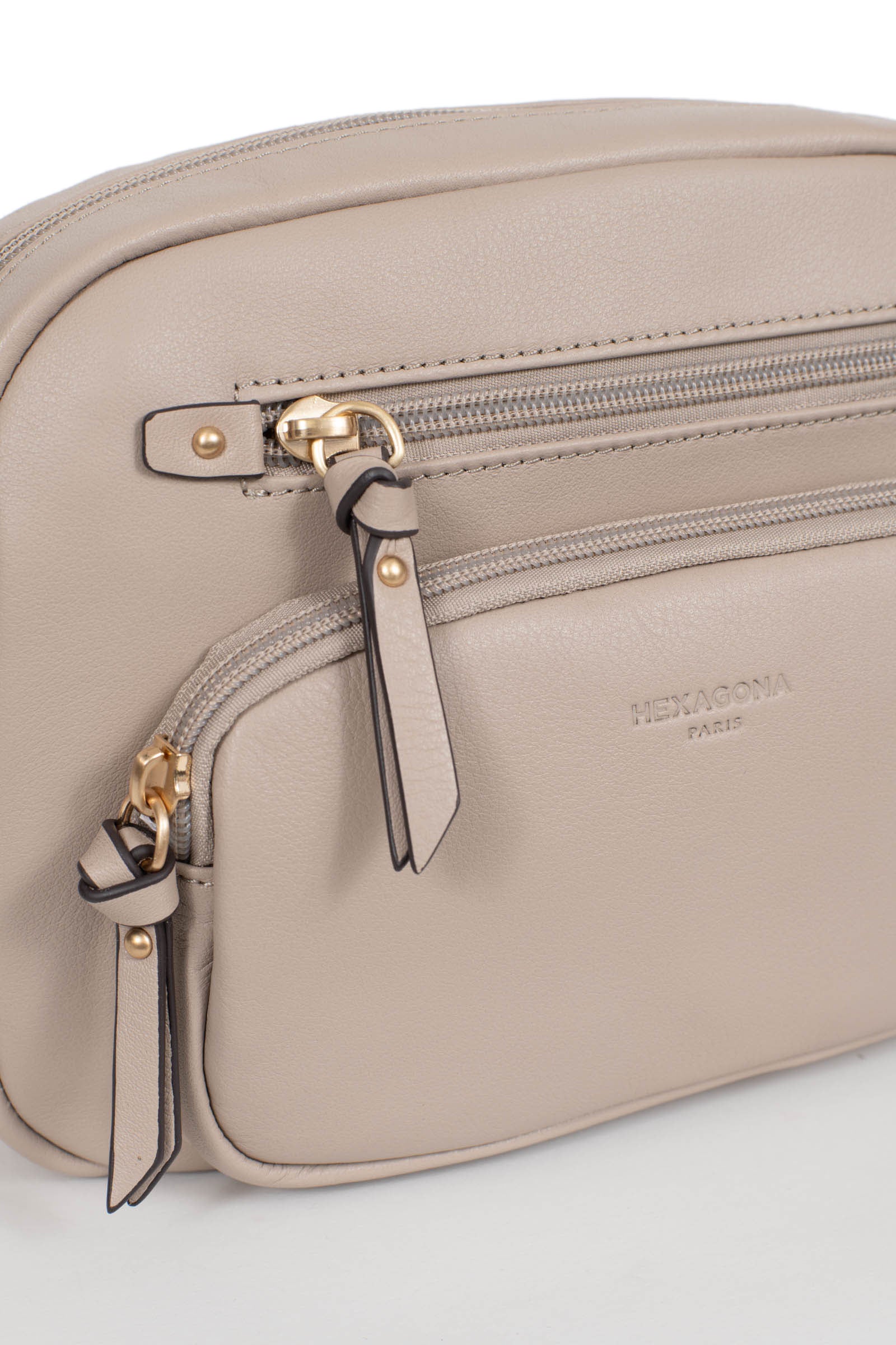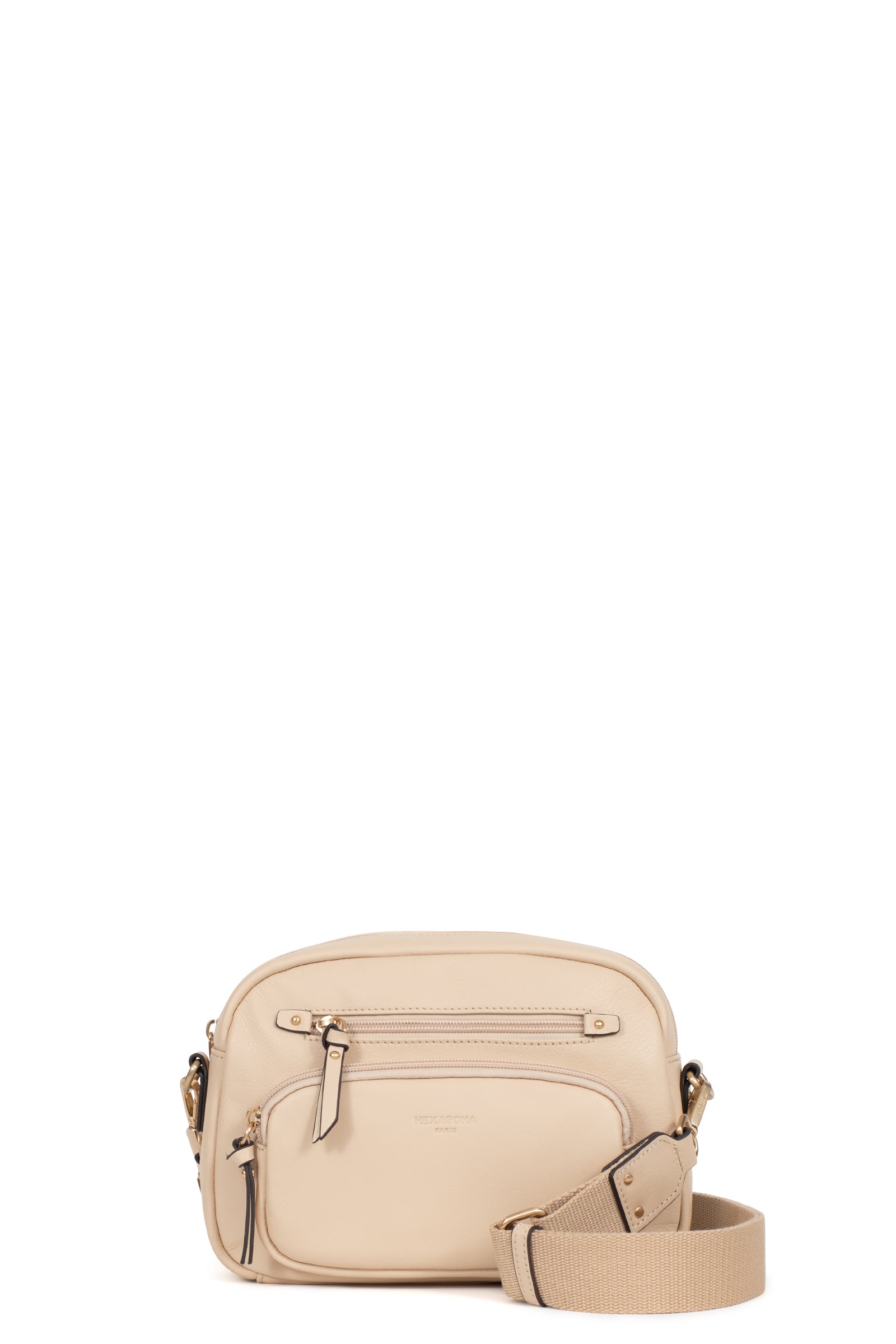 Die Umhängetasche der Marke Hexagona vereint Eleganz und Praktikabilität. Ihr Design aus weichem, fettem Rindsleder verleiht ihr eine angenehme Haptik, während die Verarbeitung in gebürstetem Gold einen Hauch von Raffinesse hinzufügt.