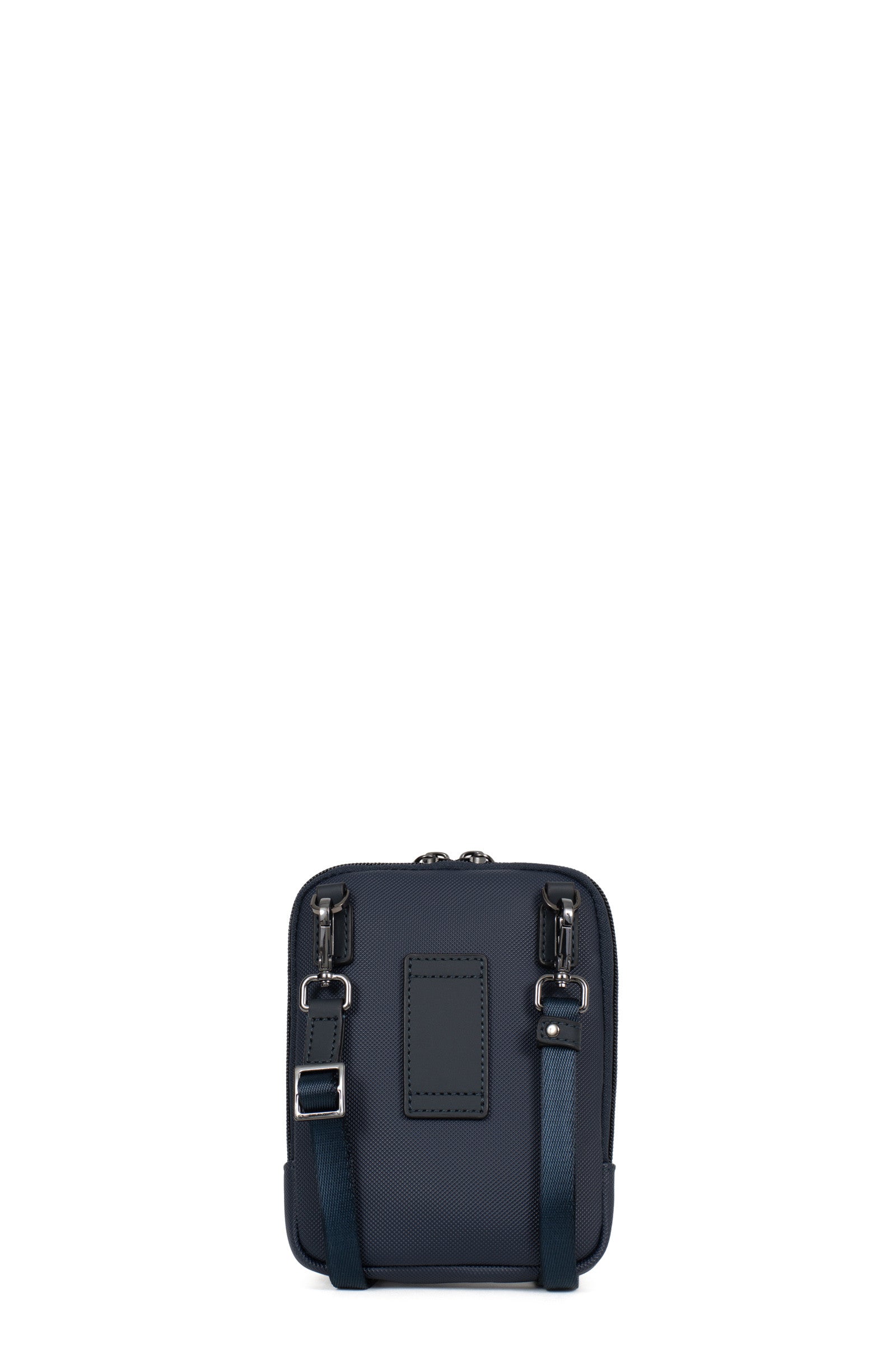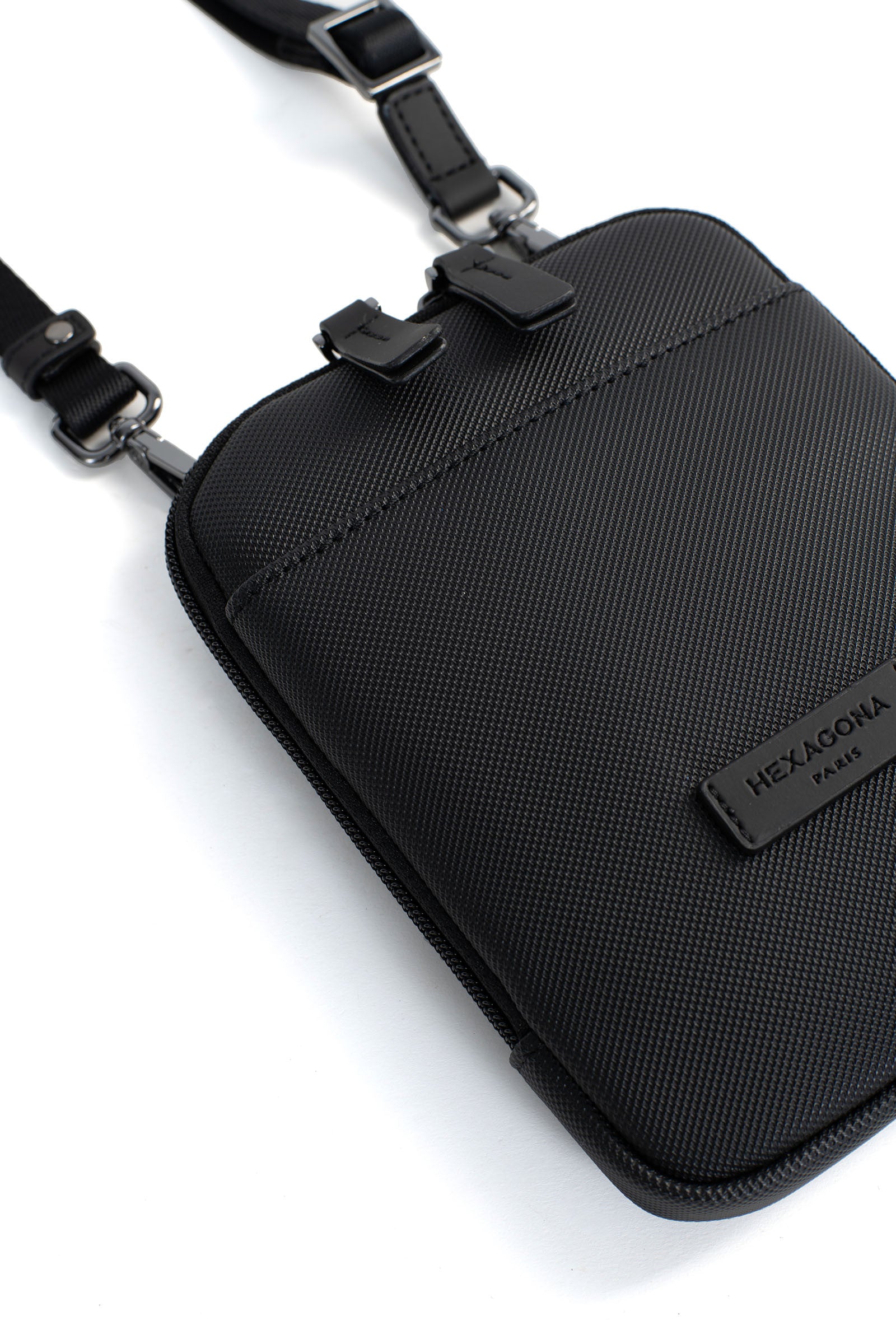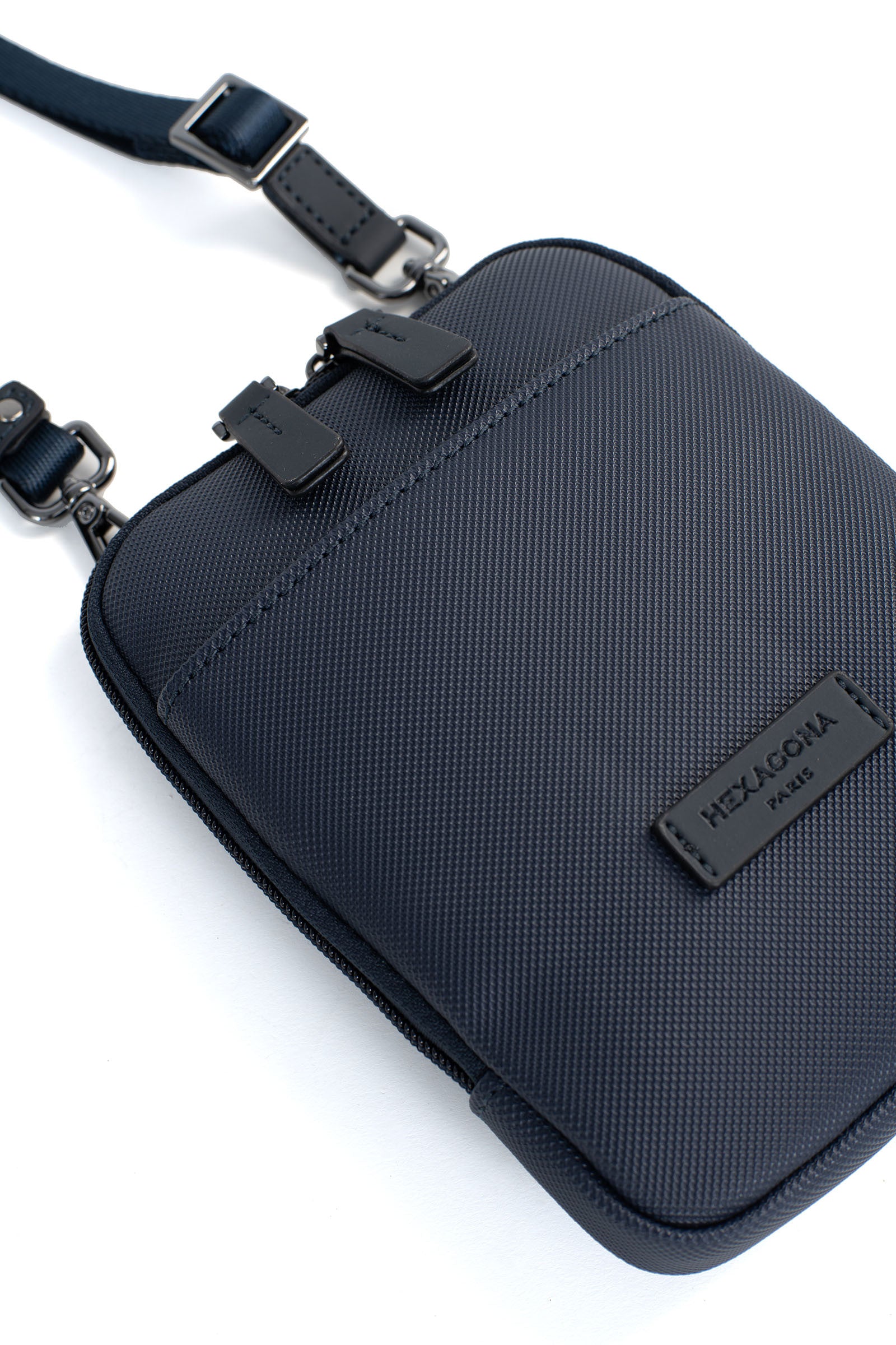 Hergestellt aus strukturiertem synthetischem Material, vereint diese Tasche Eleganz und Widerstandsfähigkeit gegen Abnutzung. Die Metallreißverschlüsse verleihen eine robuste Note, während ihre rechteckige Form den Innenraum optimiert und es ermöglicht, ein Smartphone, Karten und andere kleine Gegenstände leicht zu verstauen.