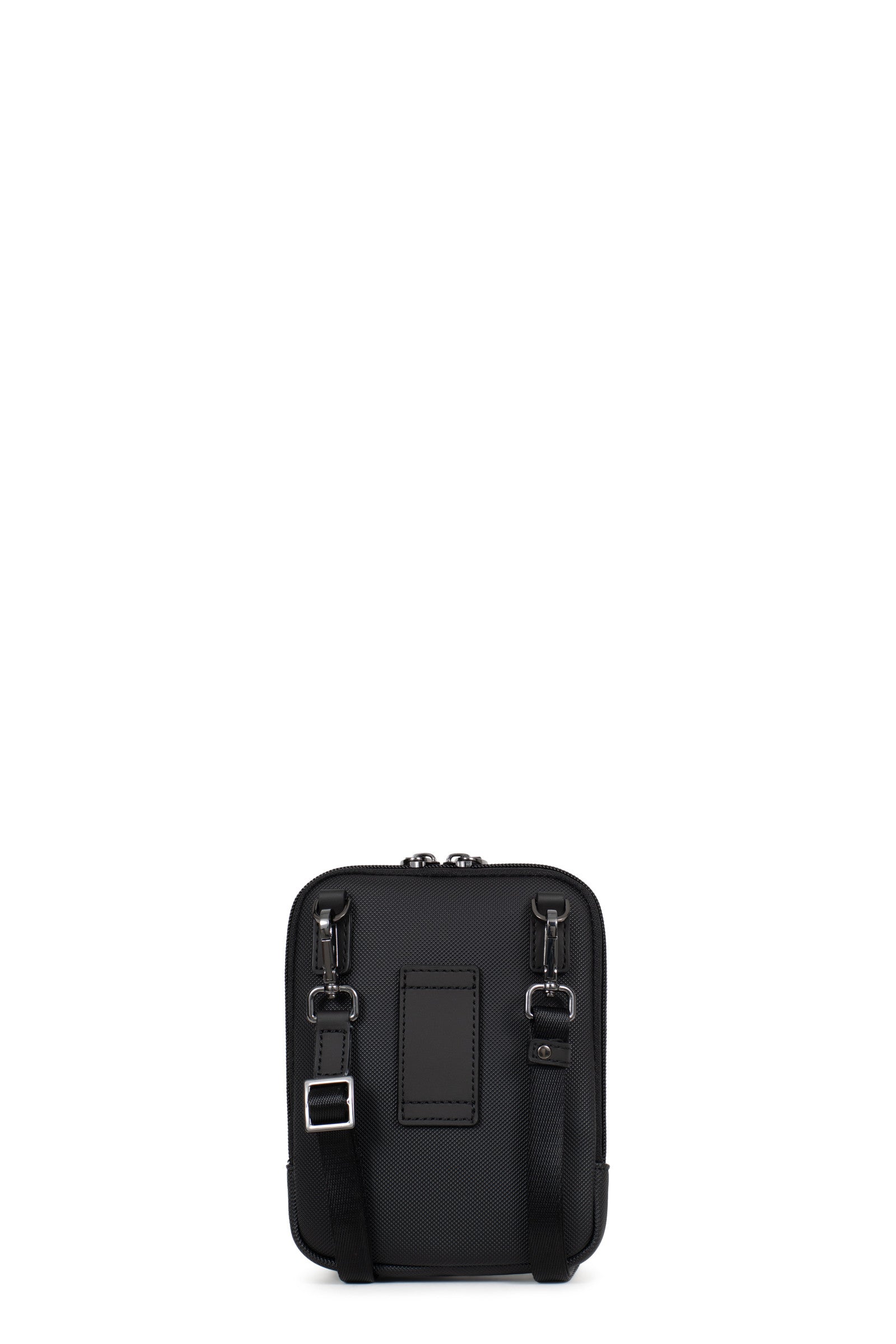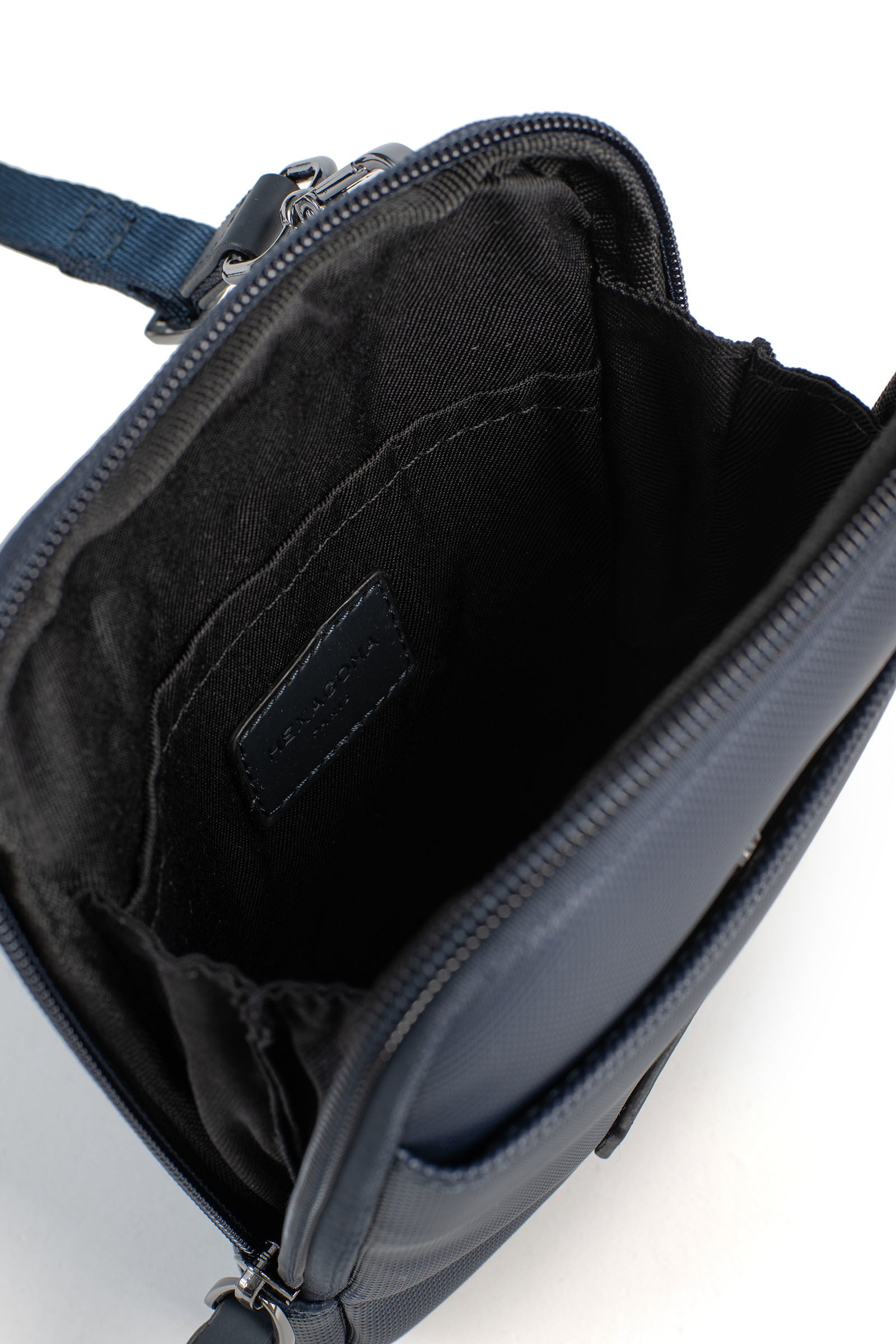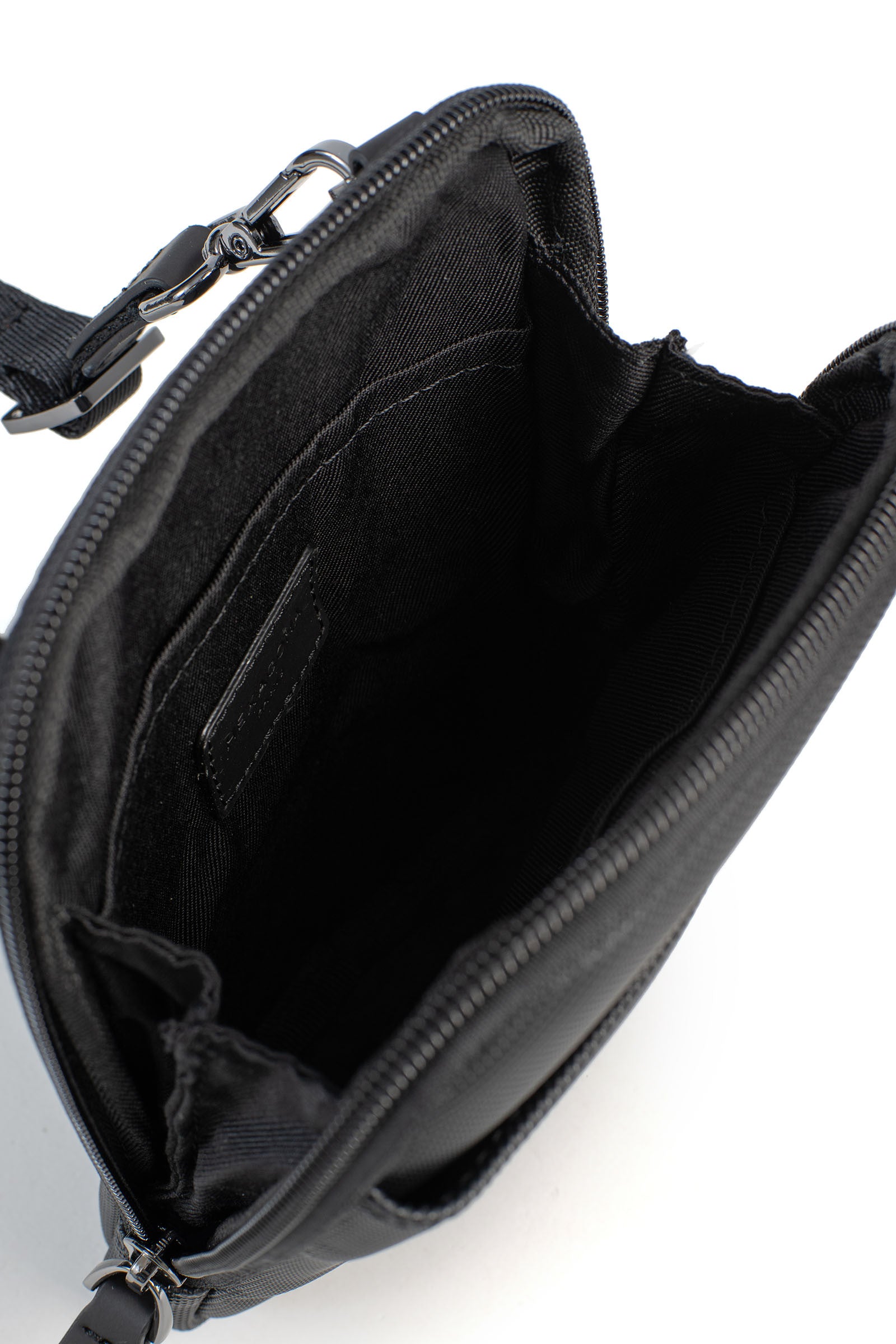 Hergestellt aus strukturiertem synthetischem Material, vereint diese Tasche Eleganz und Widerstandsfähigkeit gegen Abnutzung. Die Metallreißverschlüsse verleihen eine robuste Note, während ihre rechteckige Form den Innenraum optimiert und es ermöglicht, ein Smartphone, Karten und andere kleine Gegenstände leicht zu verstauen.