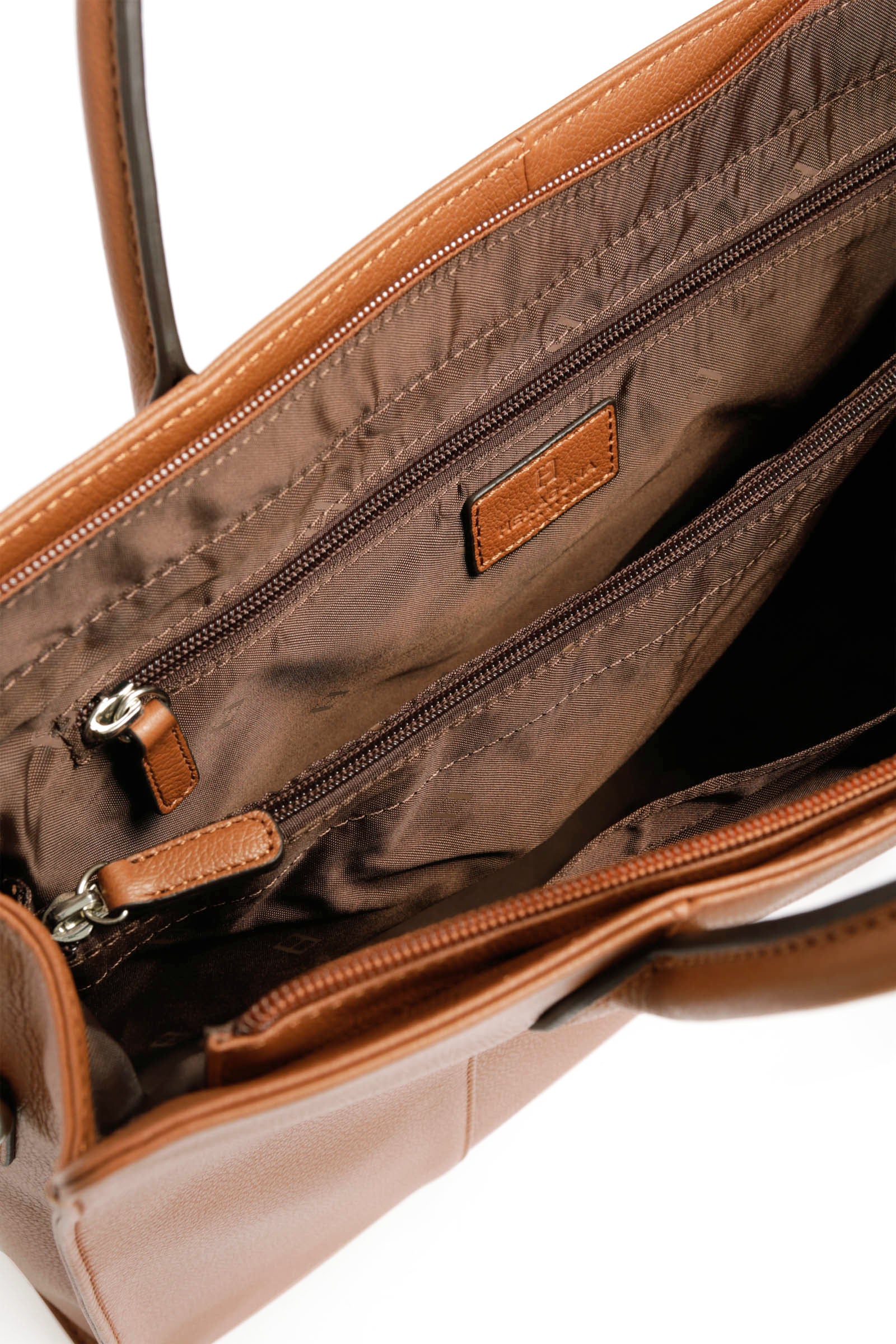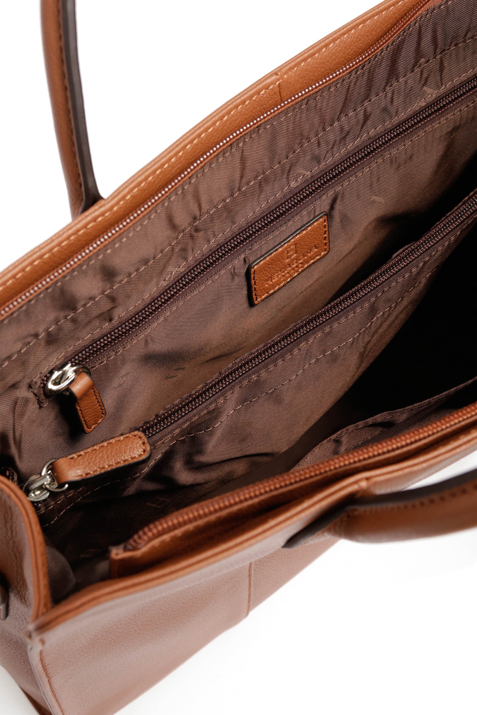 Innen: 1 Hauptfach mit 2 flachen Reißverschlusstaschen. 3 flache Taschen (darunter 1 Handyfach).