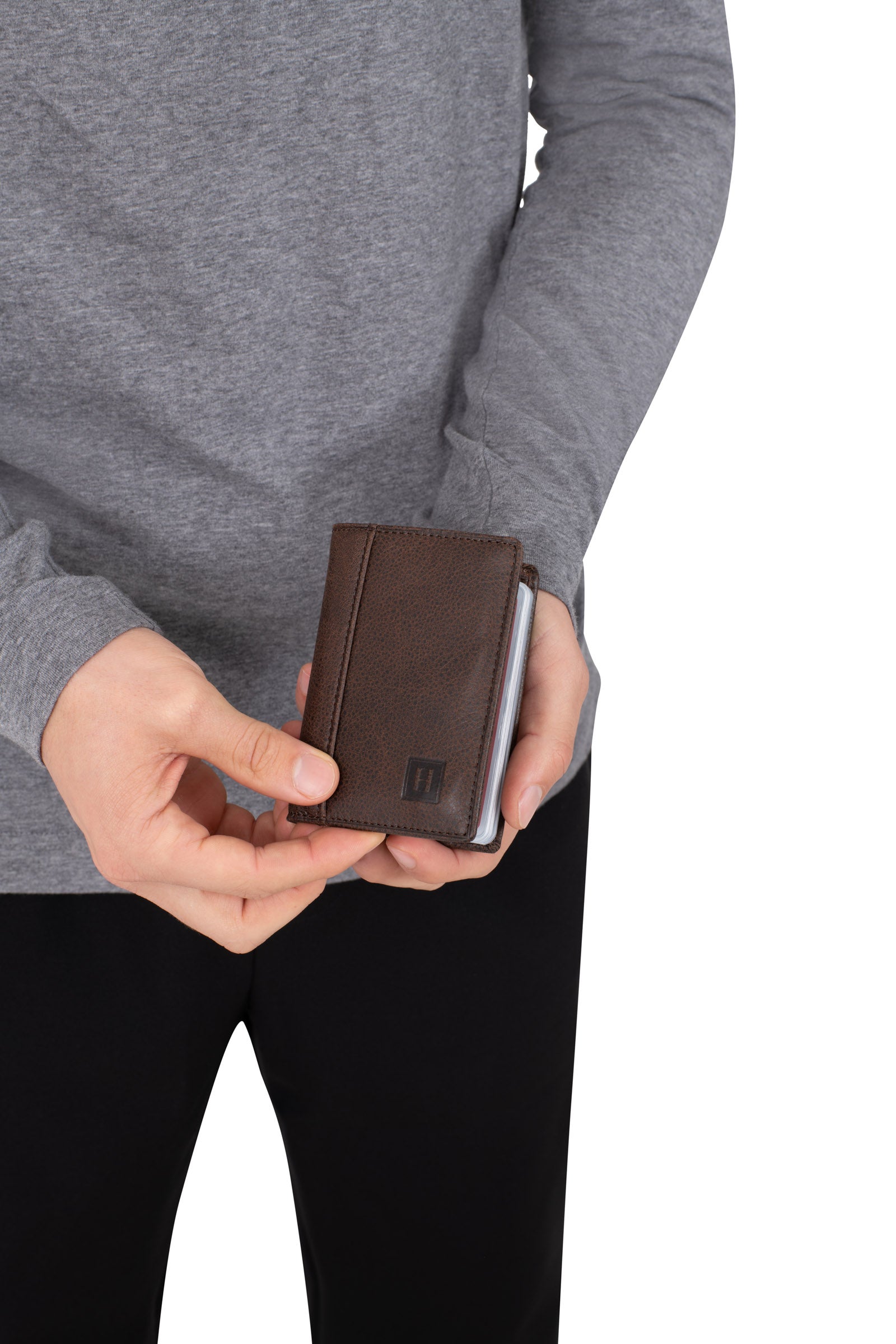 Im Inneren ist dieses Kartenetui clever mit mehreren Kartenfächern gestaltet, die die Organisation Ihrer Kreditkarten, Ausweise und anderer wichtiger Dokumente erleichtern. Das abnehmbare Kunststoffblatt ermöglicht zudem das Hinzufügen zusätzlicher Karten oder Scheine, wodurch dieses Accessoire sowohl praktisch als auch funktional ist.