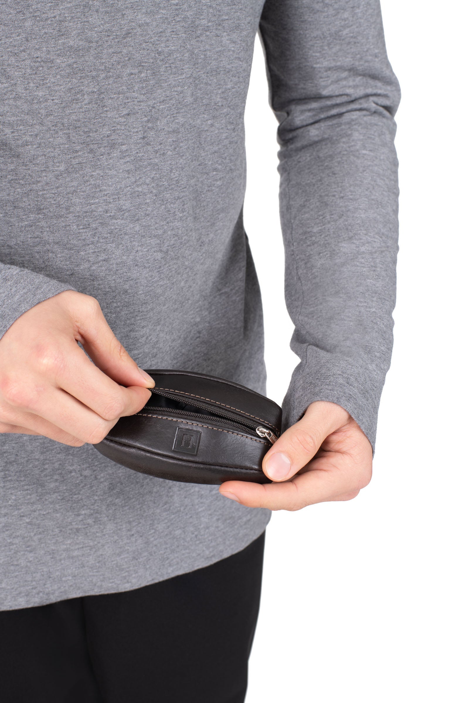 Entwickelt, um Praktikabilität und Ästhetik zu vereinen, ist sie perfekt zum Verstauen Ihrer Münzen, Karten und Scheine. Dank des robusten Reißverschlusses ist der Zugang zu ihrem Inhalt erleichtert und gleichzeitig die Sicherheit Ihrer Gegenstände gewährleistet. Ihre Konstruktion aus Rindsleder sorgt für eine bemerkenswerte Haltbarkeit, während die sorgfältigen Nähte eine elegante Verarbeitung hinzufügen.