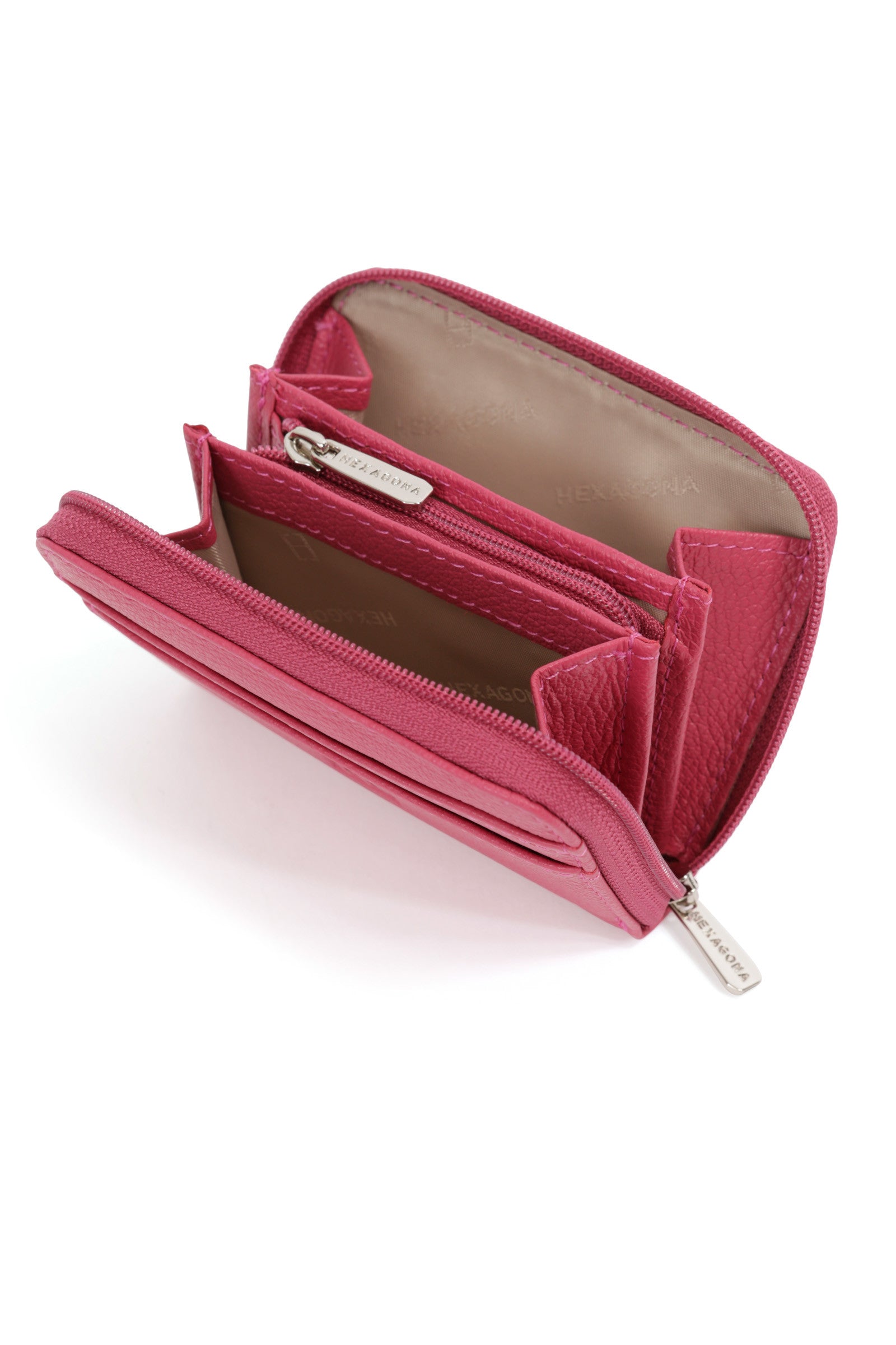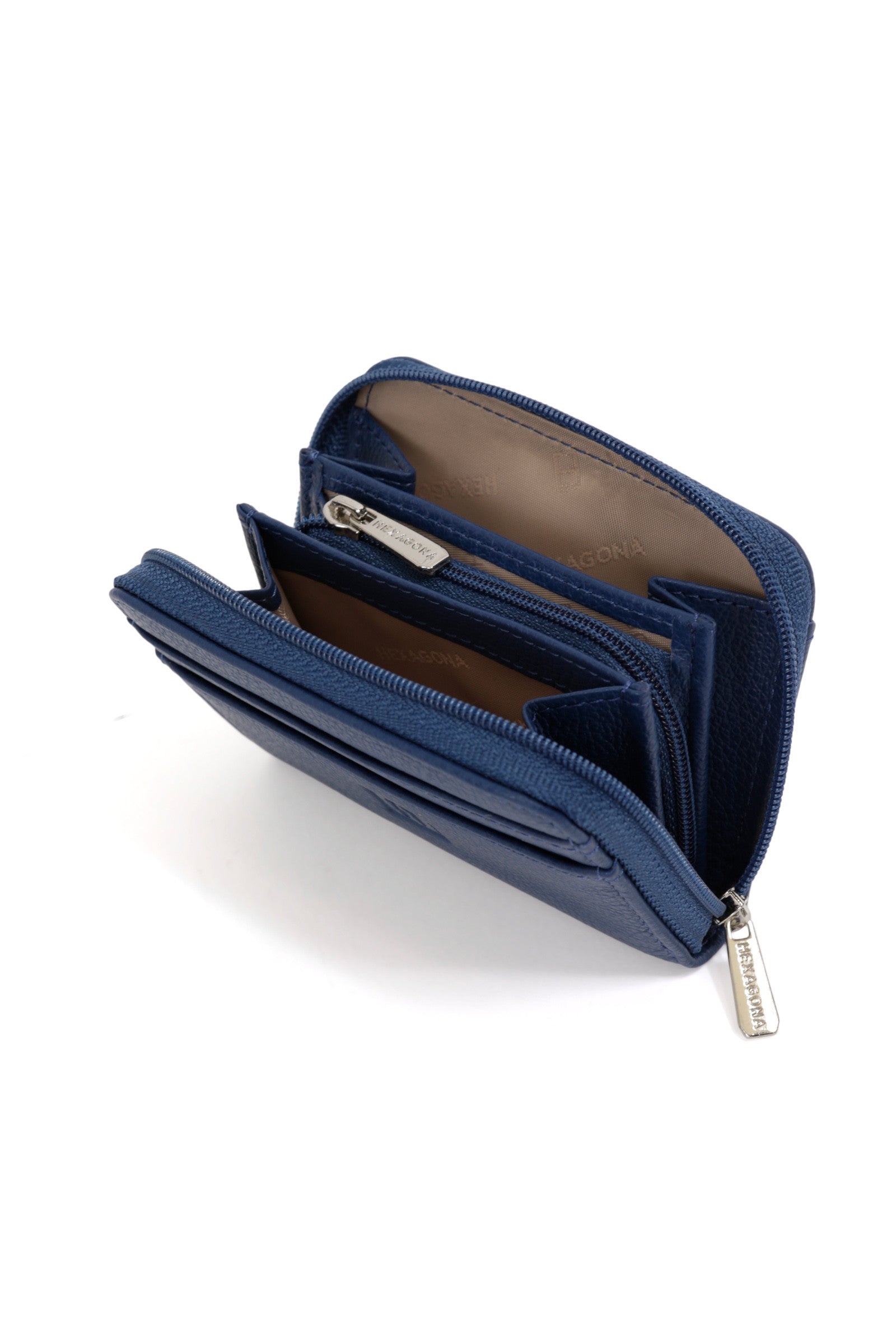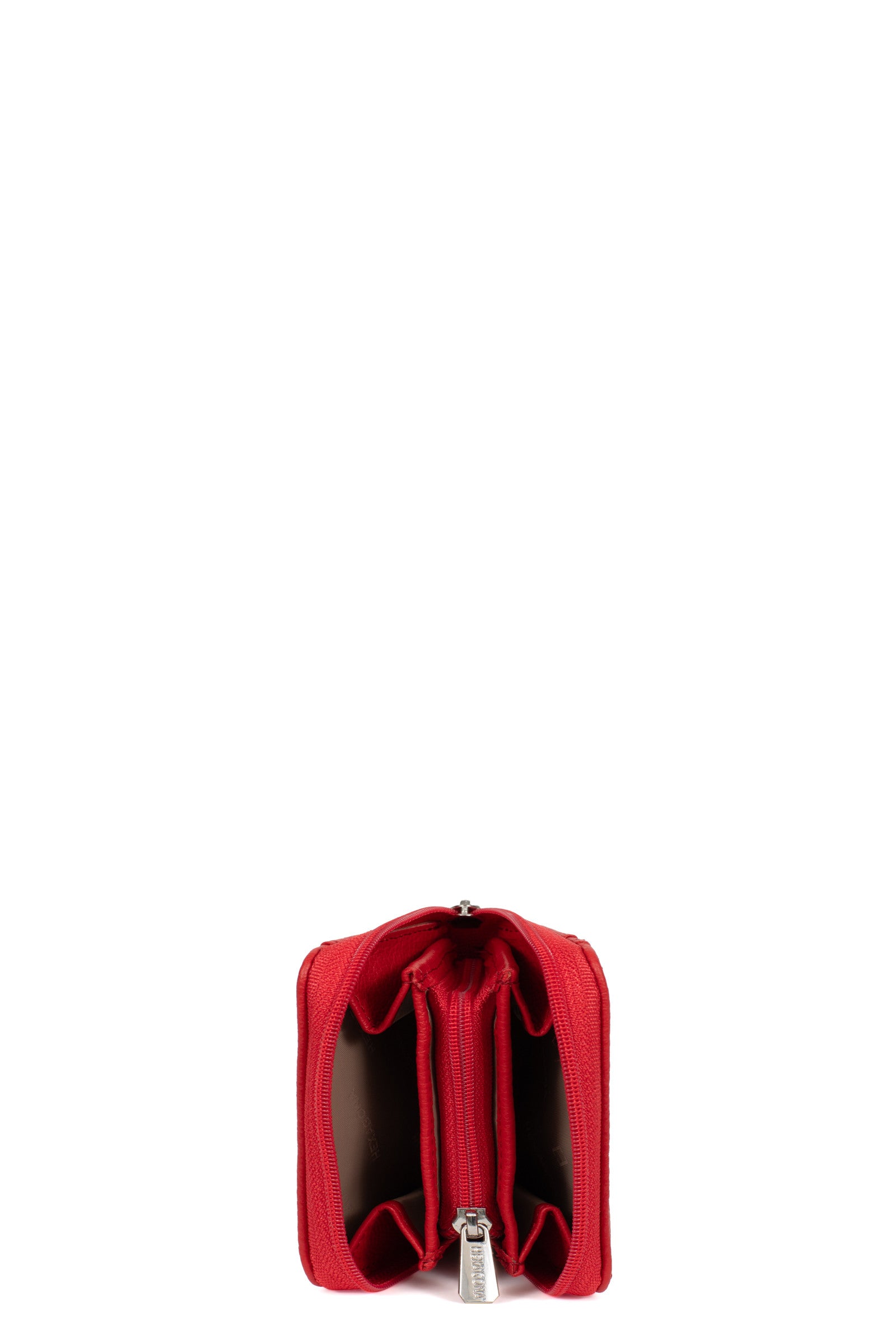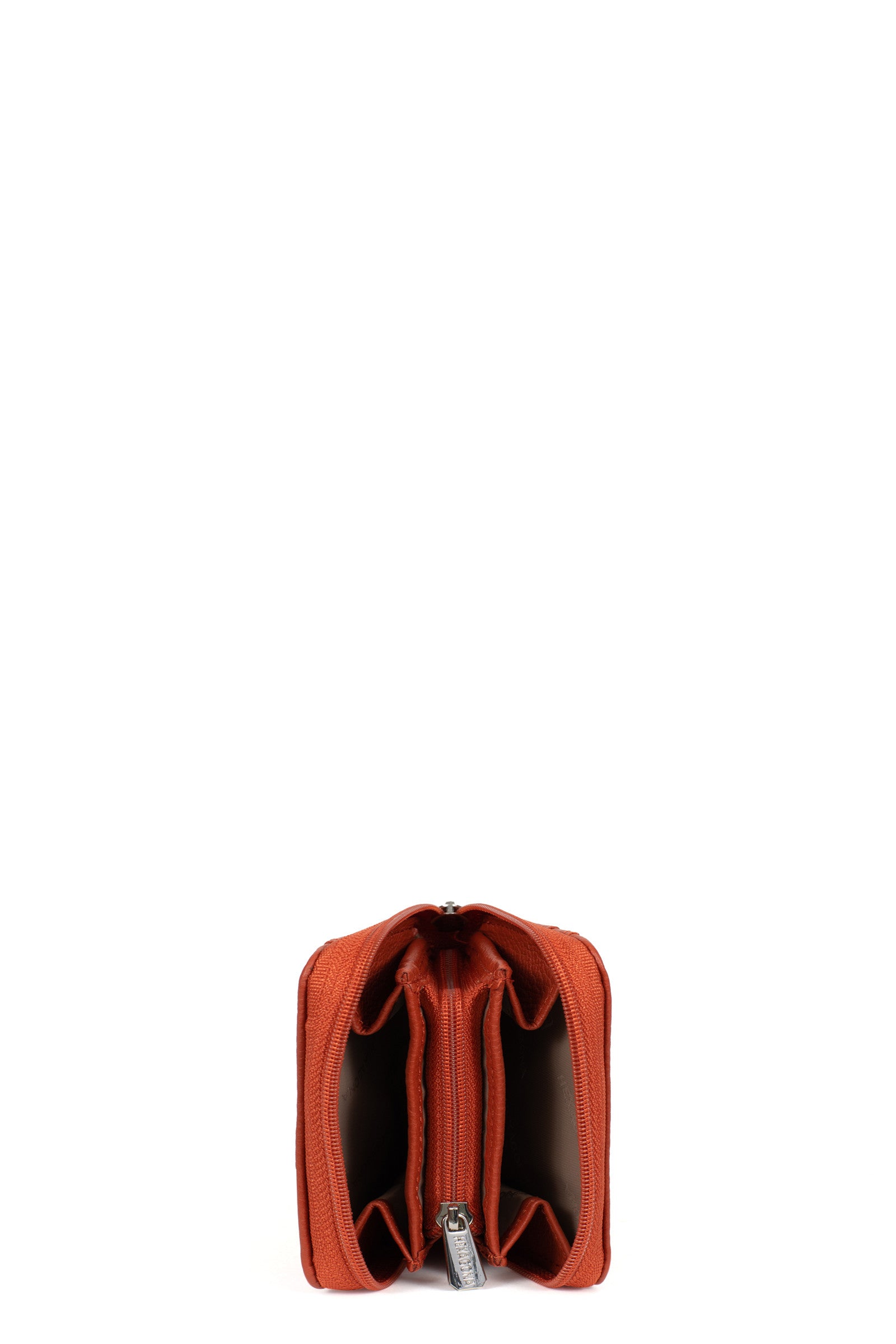 • Innen: 1 Hauptfach. 1 Reißverschluss-Geldbörse. 3 flache Fächer. 2 Kartenfächer.