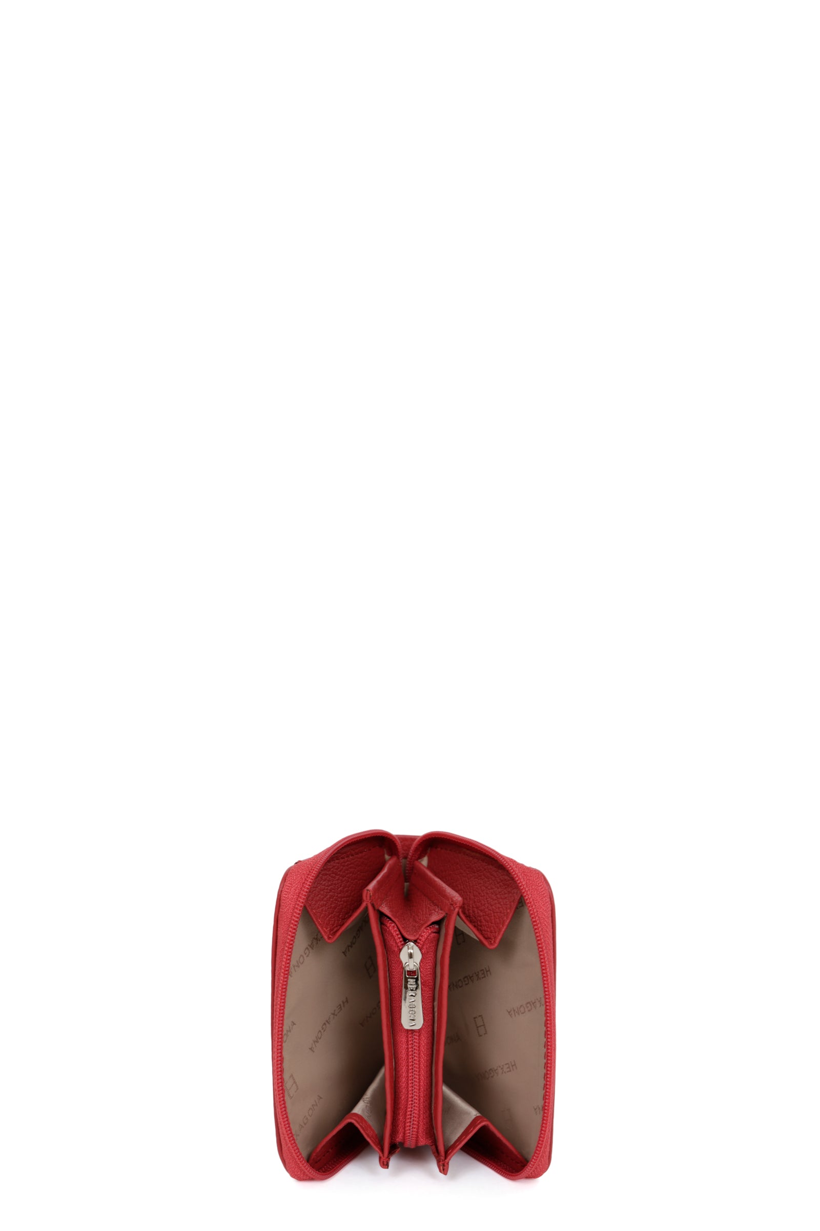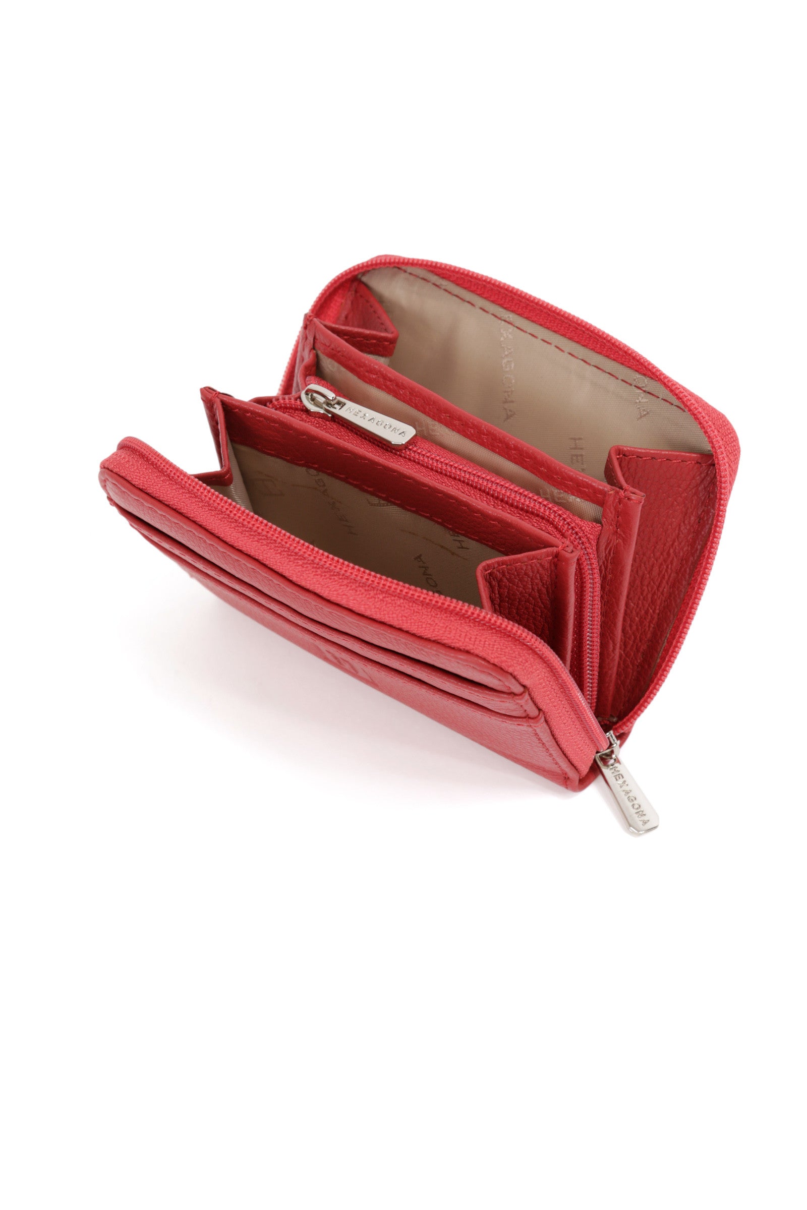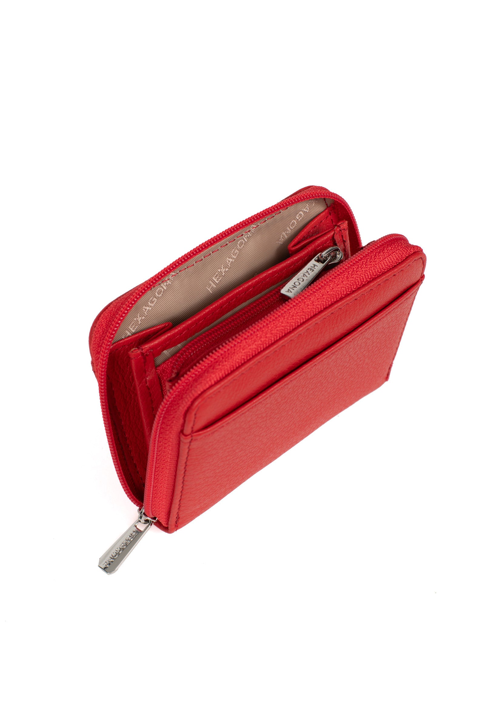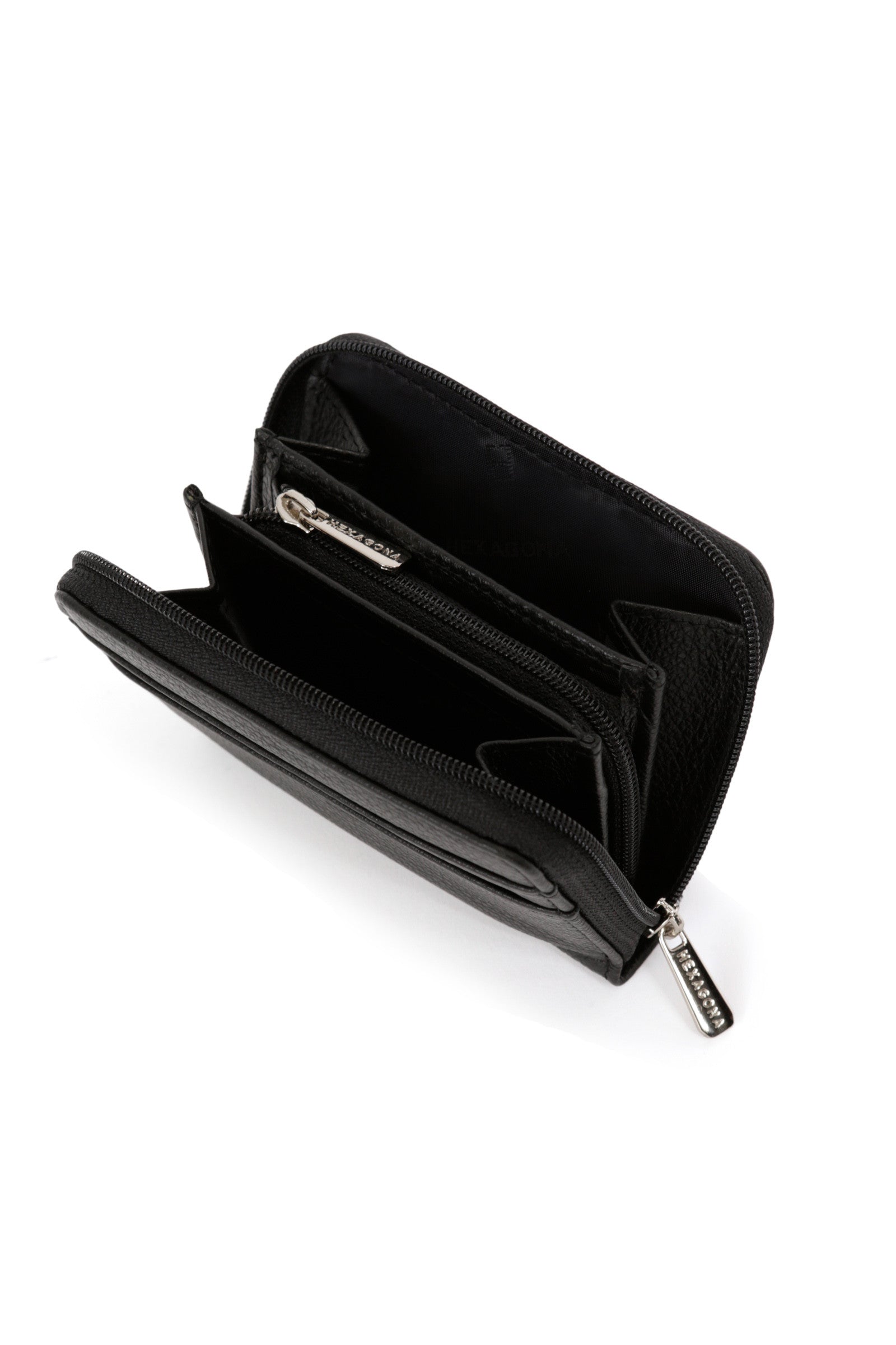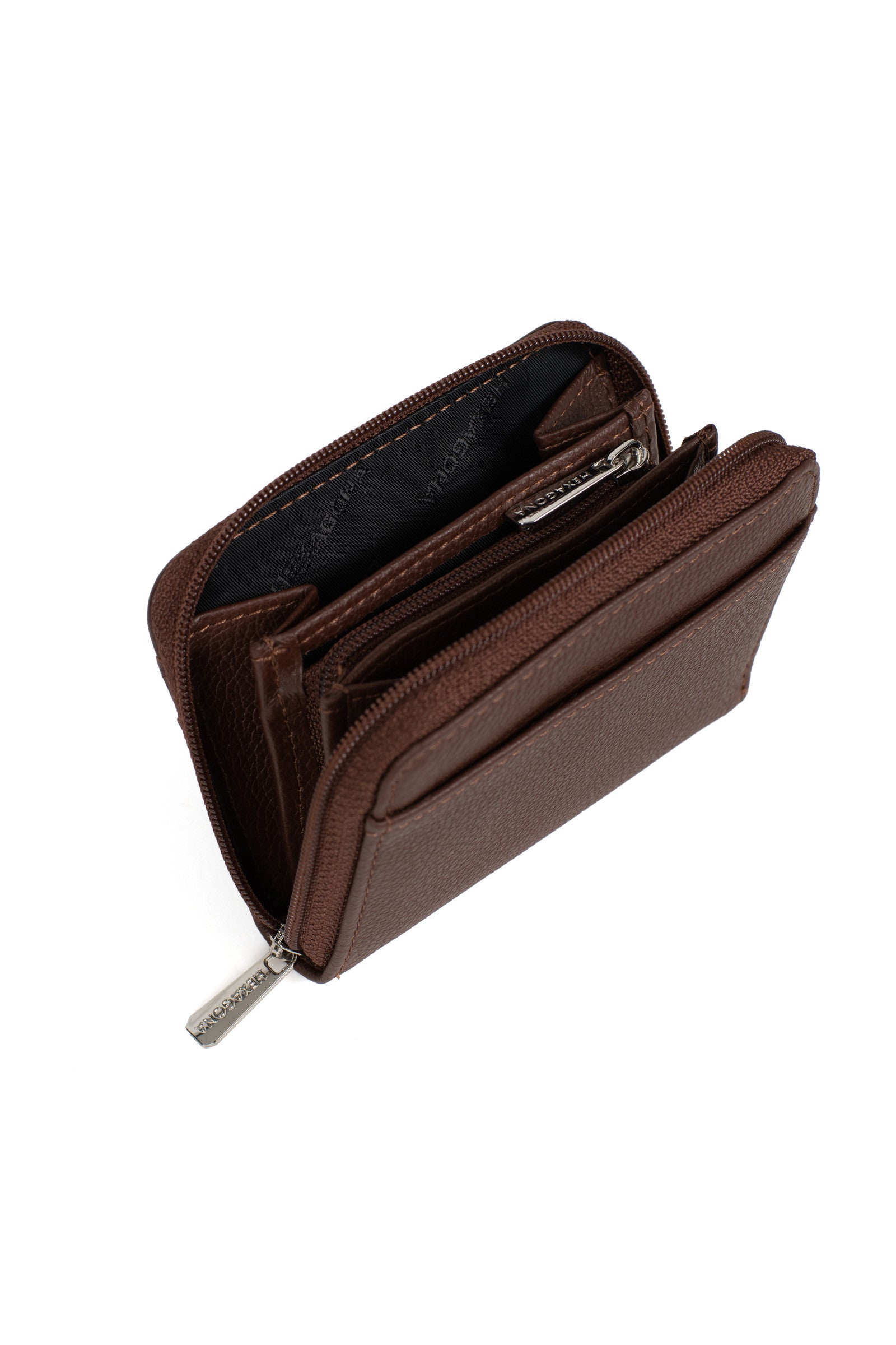 • Innen: 1 Hauptfach. 1 Reißverschluss-Geldbörse. 3 flache Fächer. 2 Kartenfächer.