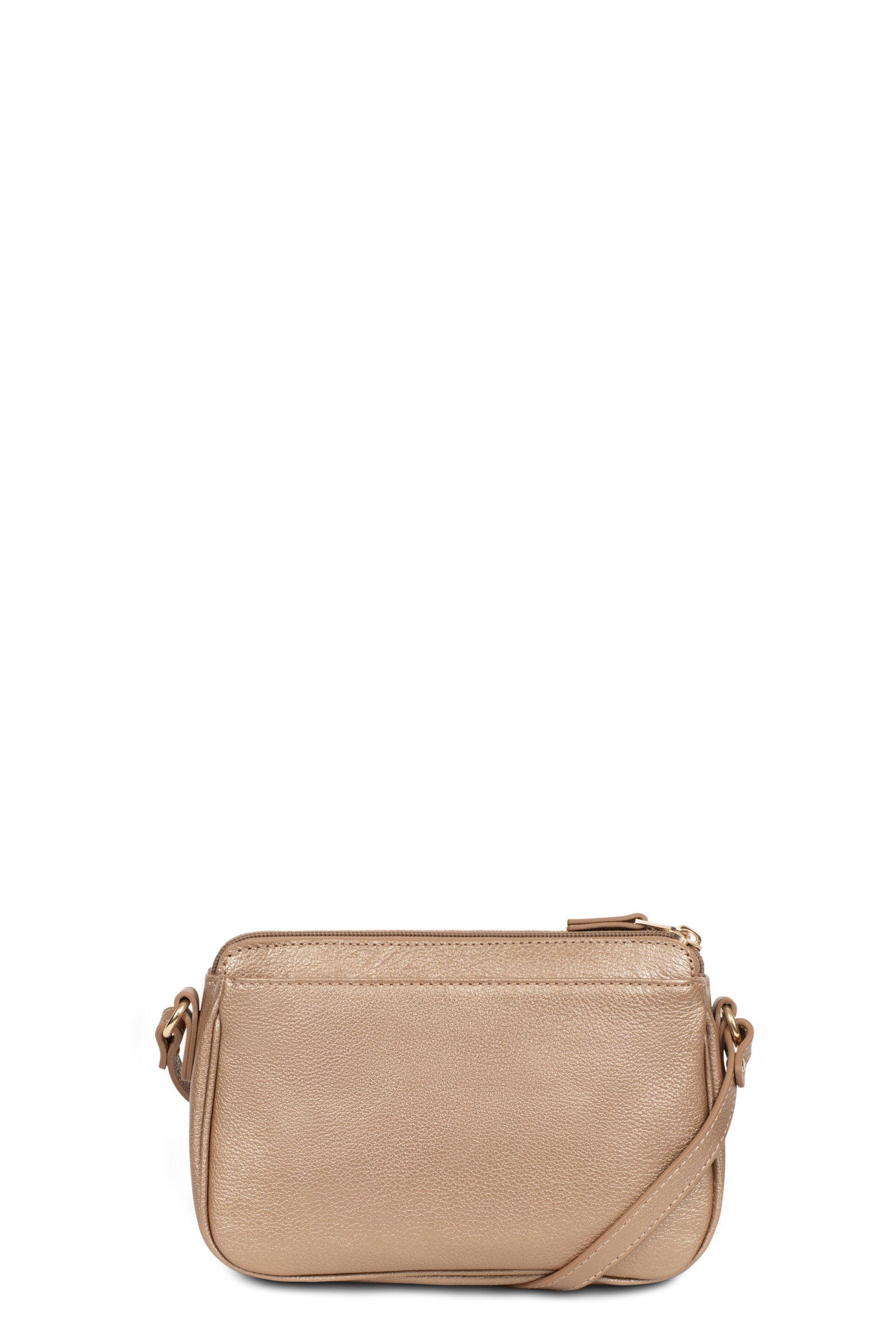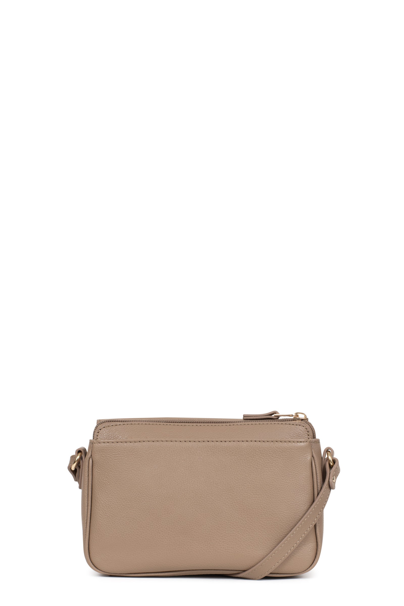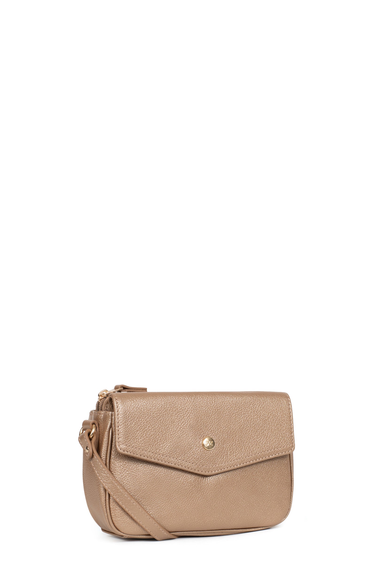 Die Umhängetasche aus genarbtem Rindsleder ist das ideale Accessoire, um Eleganz und Praktikabilität zu vereinen. Ihre weiche und leicht genarbte Textur, kombiniert mit goldenen Metallverzierungen, verleiht ihr ein anspruchsvolles Aussehen. Sie wurde für das Tragen über der Schulter entworfen und lässt sich dank des verstellbaren Schultergurts leicht anpassen.