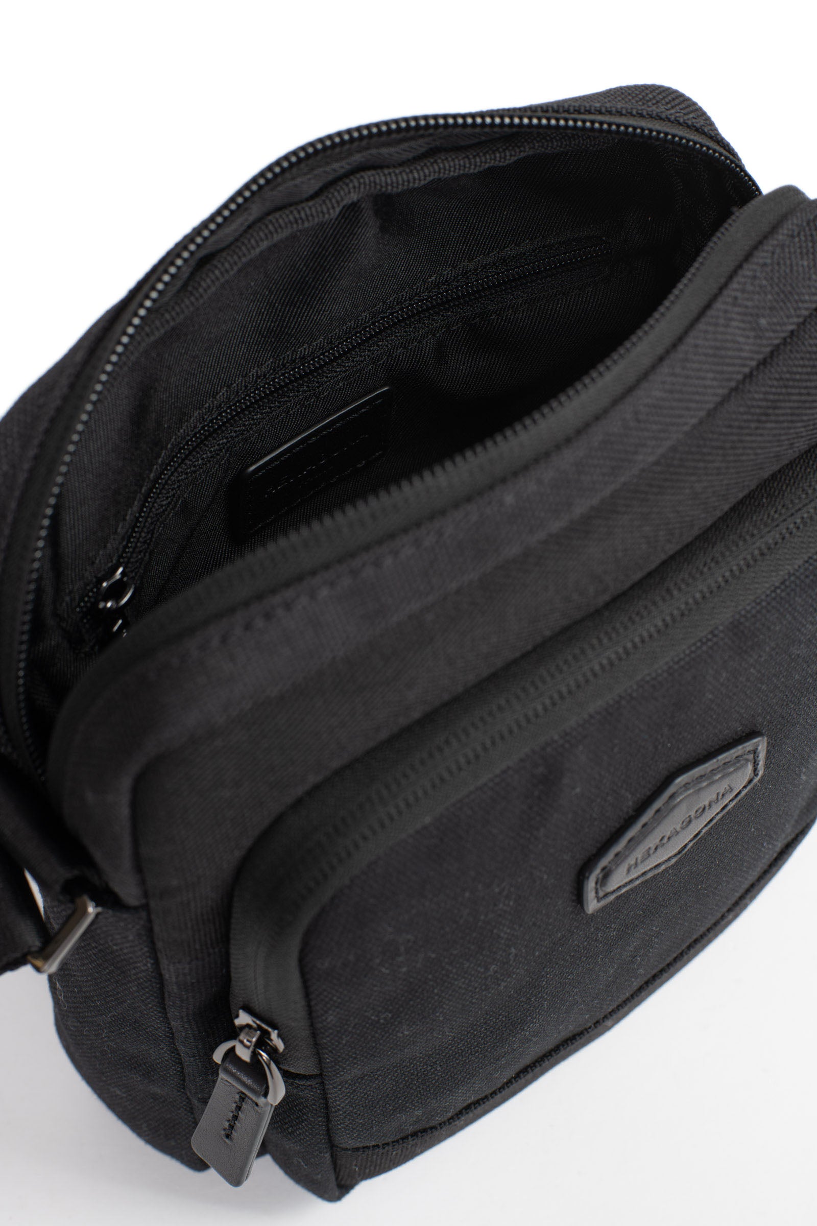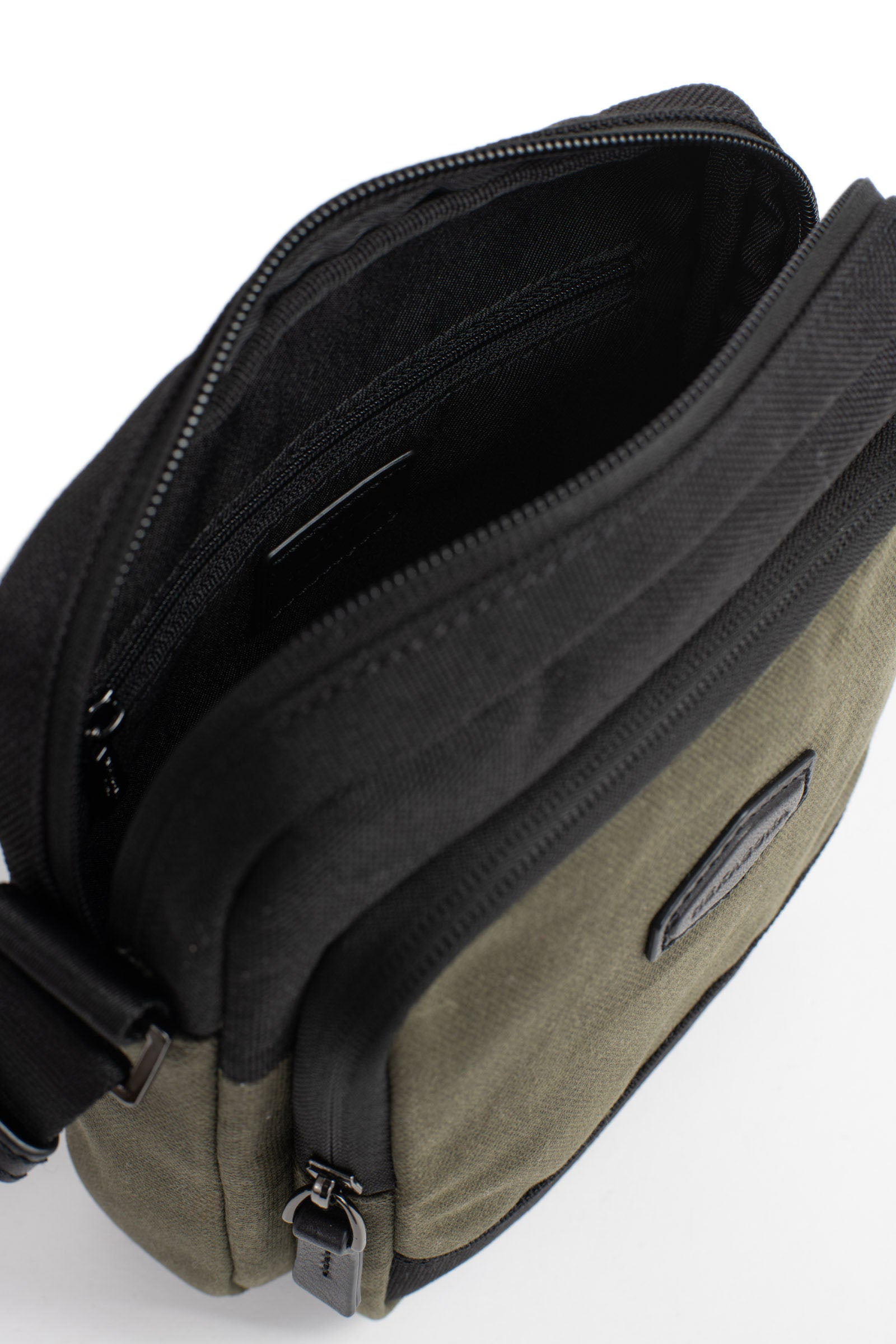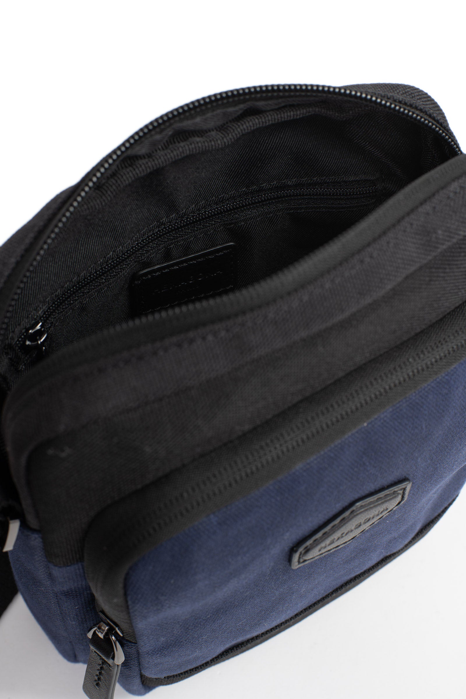 • Innen: 1 Hauptfach mit 1 flacher Reißverschlusstasche. 1 Handyfach.