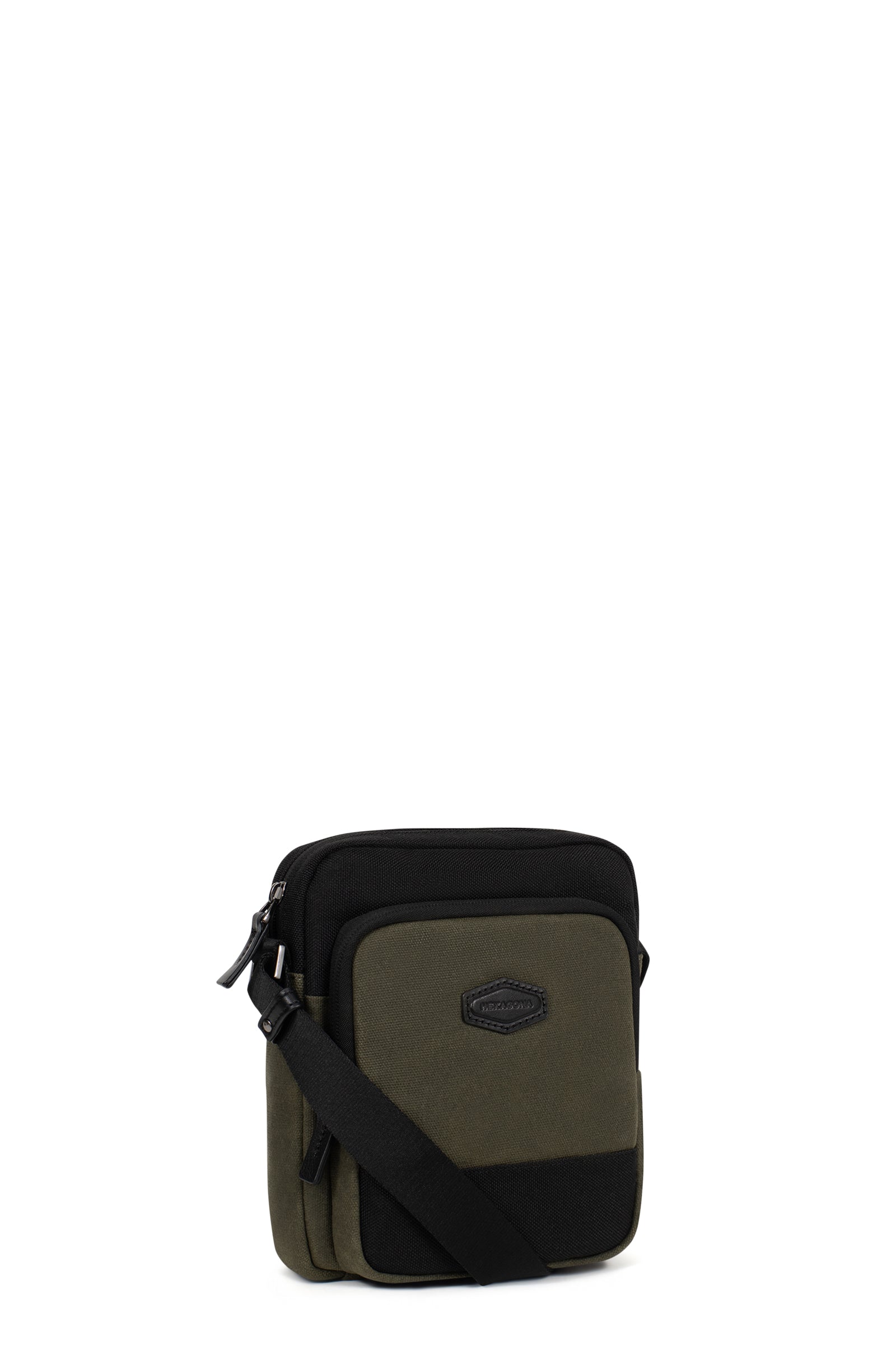 • Außen: 1 vordere Reißverschlusstasche. 1 flache hintere Reißverschlusstasche.