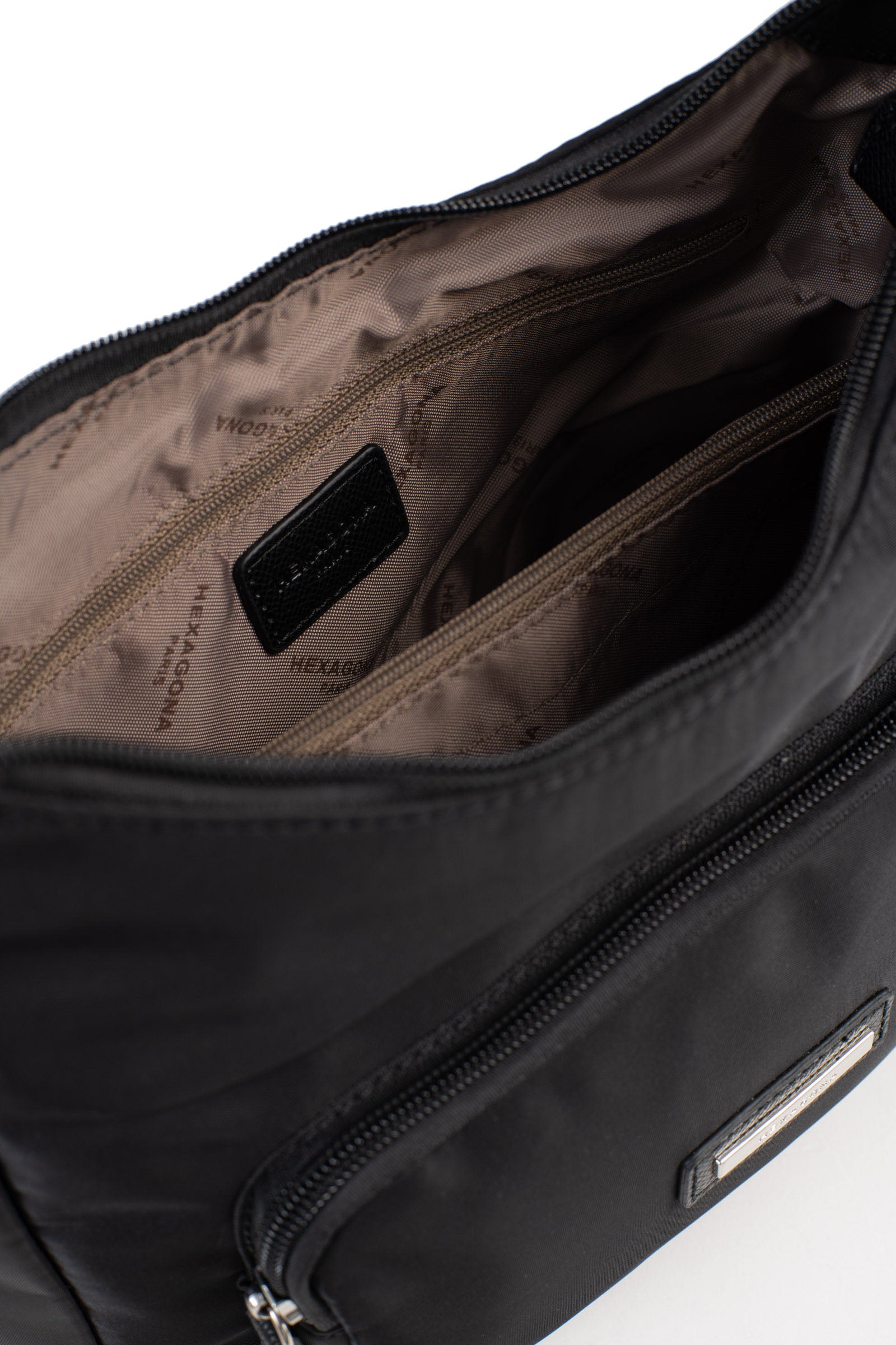 Interior : 1 main compartment with 1 zipped separation pocket. 1 flat zipped pocket. 2 flat pockets (including 1 phone compartment).