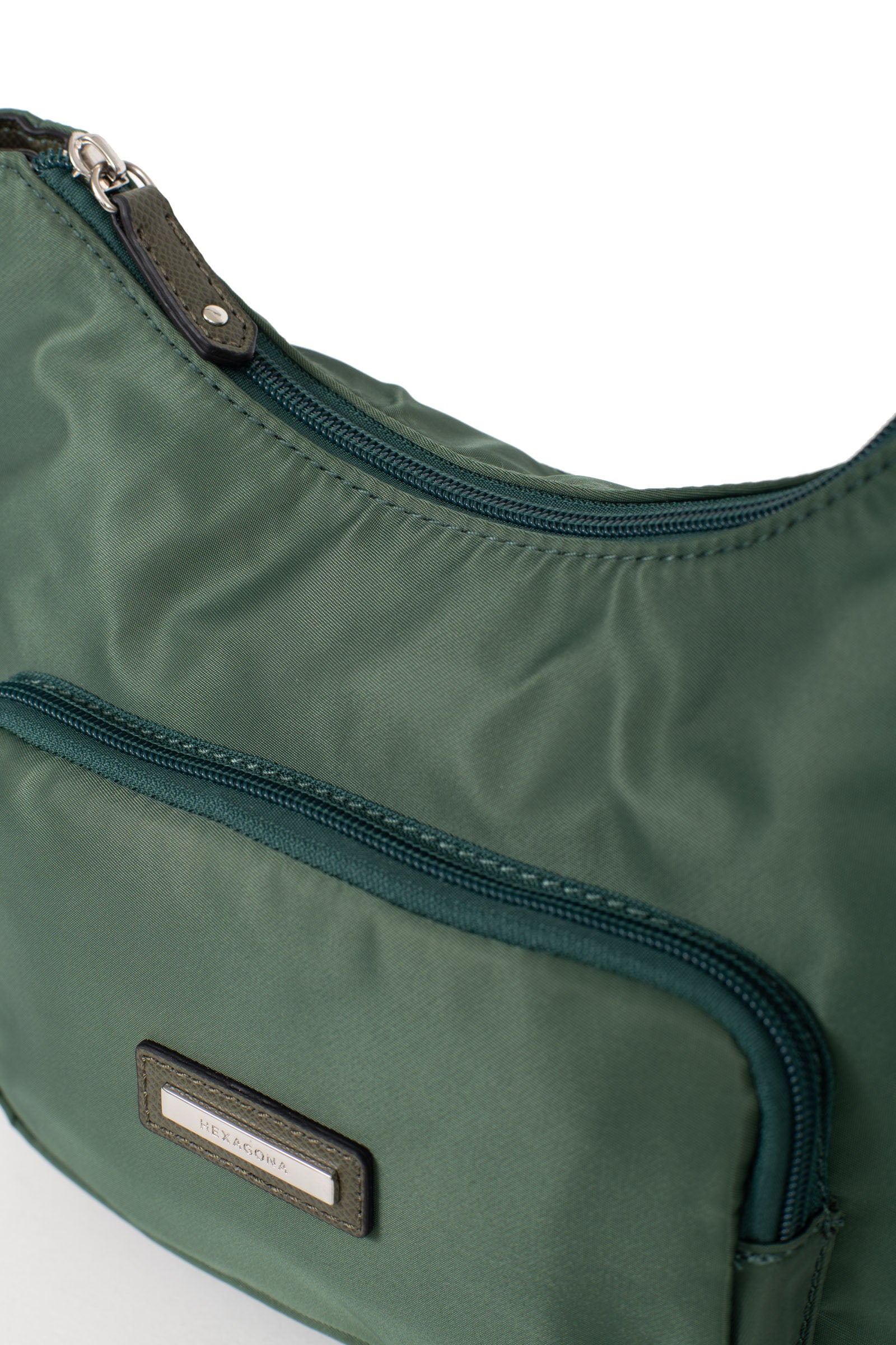 - Exterior: 1 front zipped pocket. 1 flat back zipped pocket.
