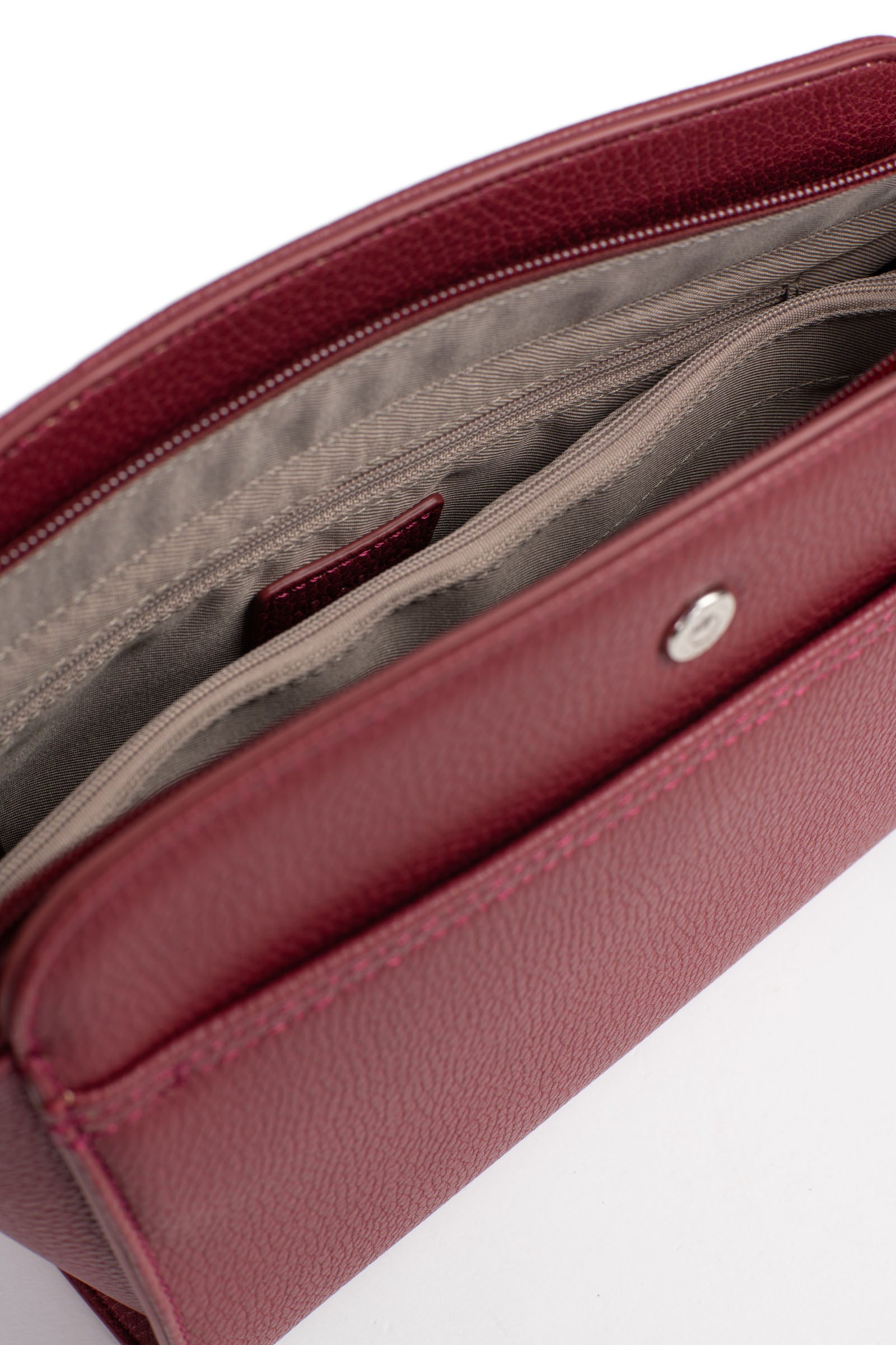 - Interior: 1 main compartment with 1 zippered separation pocket. 1 zippered flat pocket. 1 flat pocket.